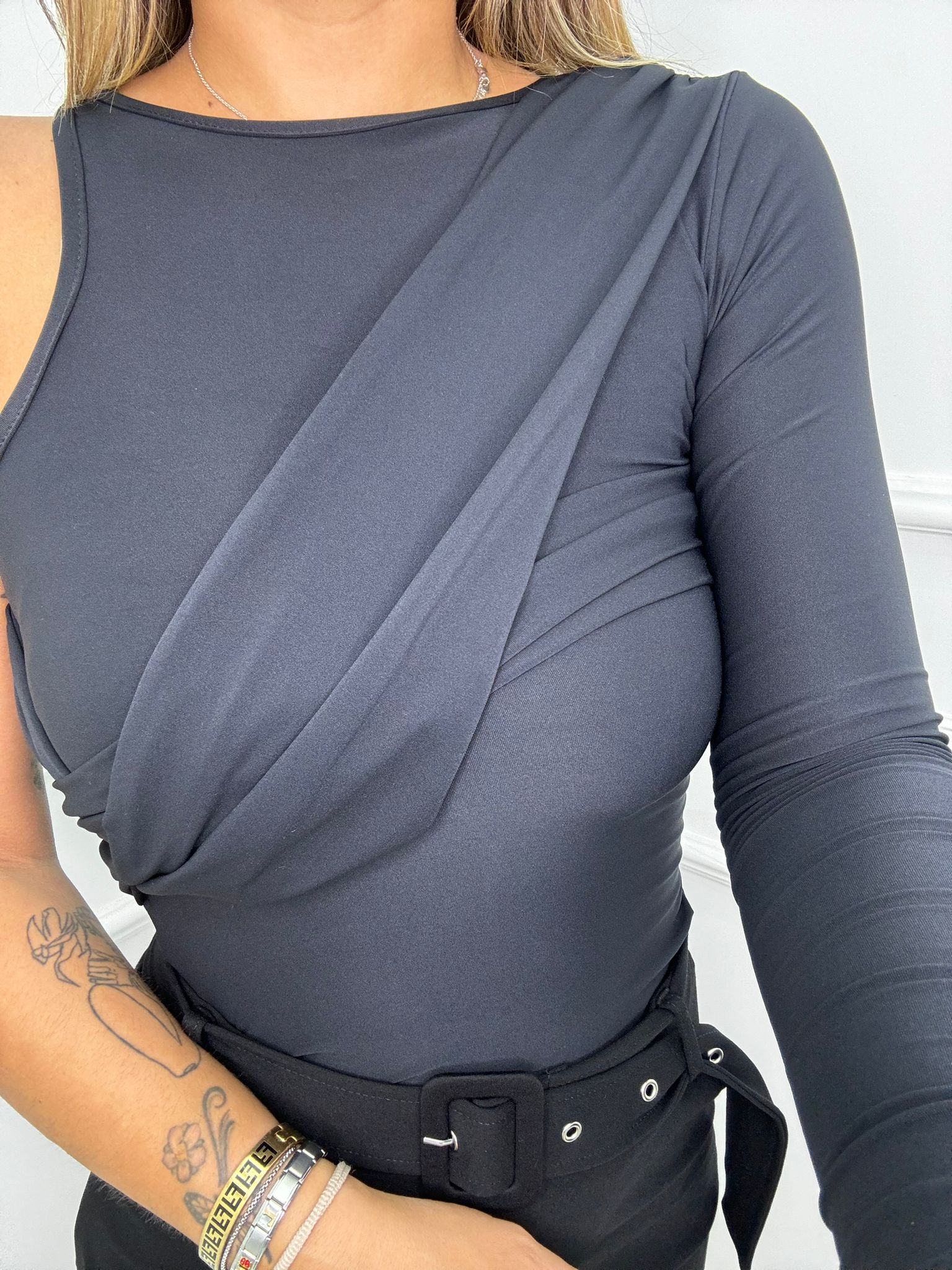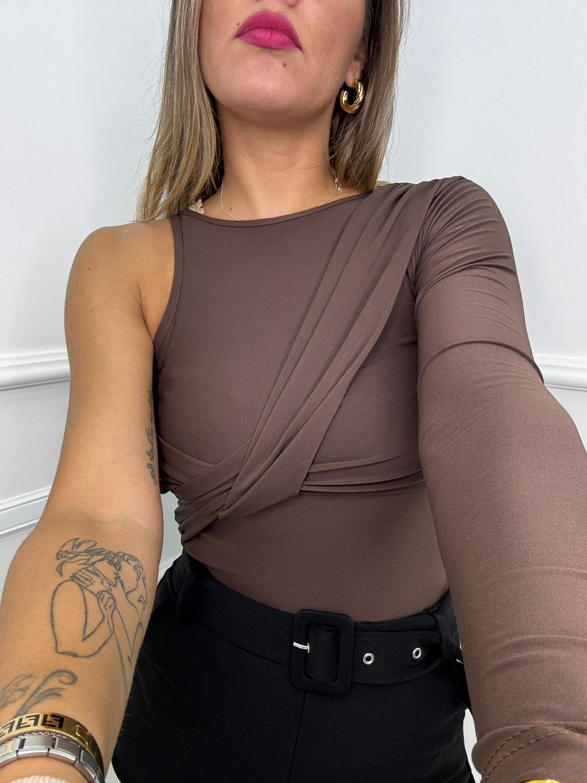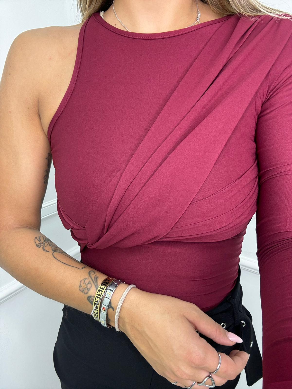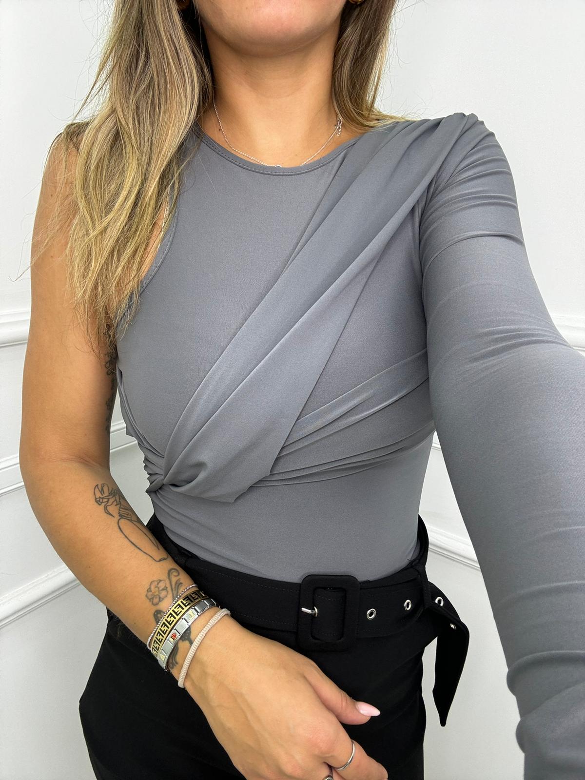Body in lycra mono spalla con drappeggio
