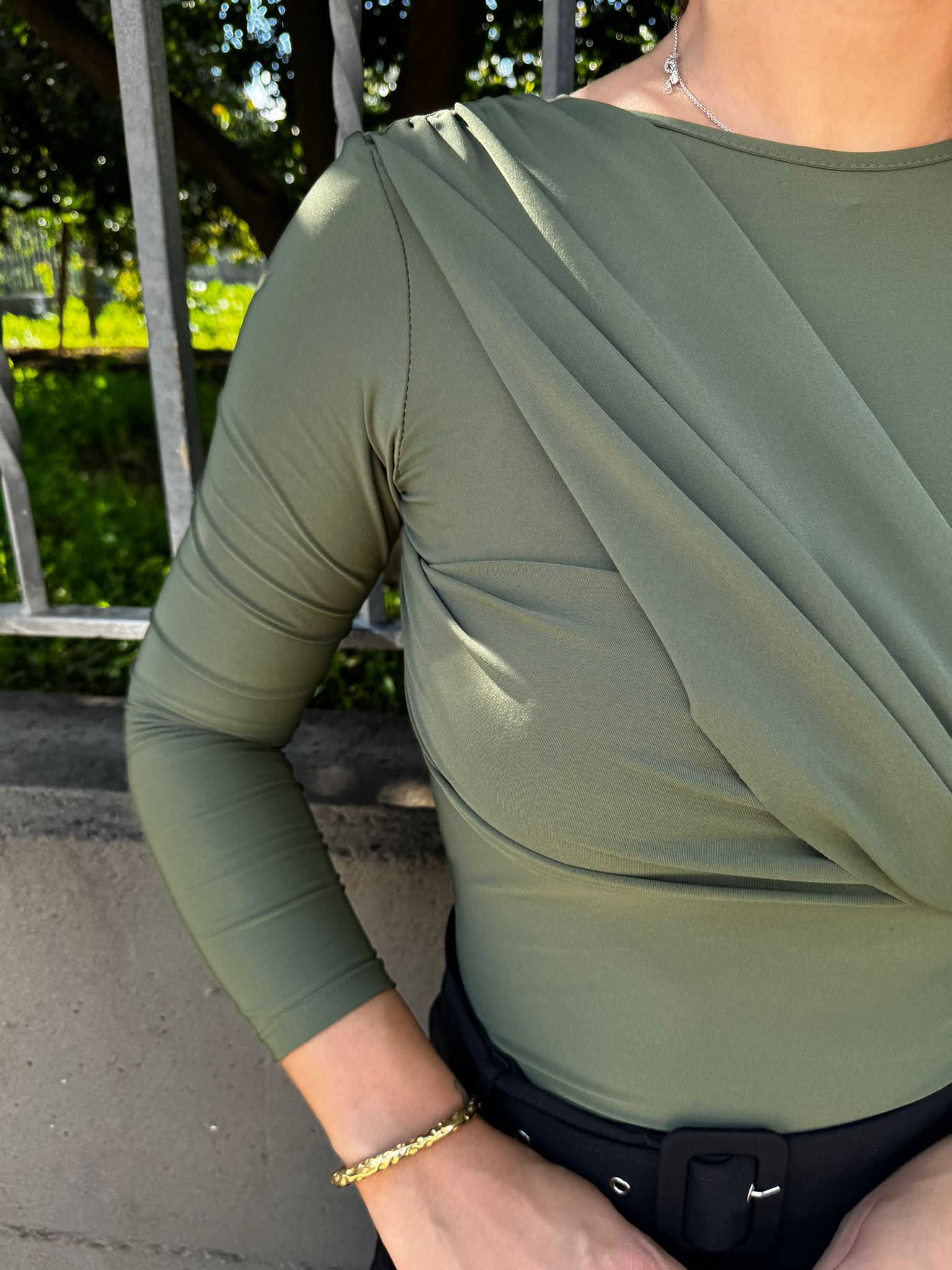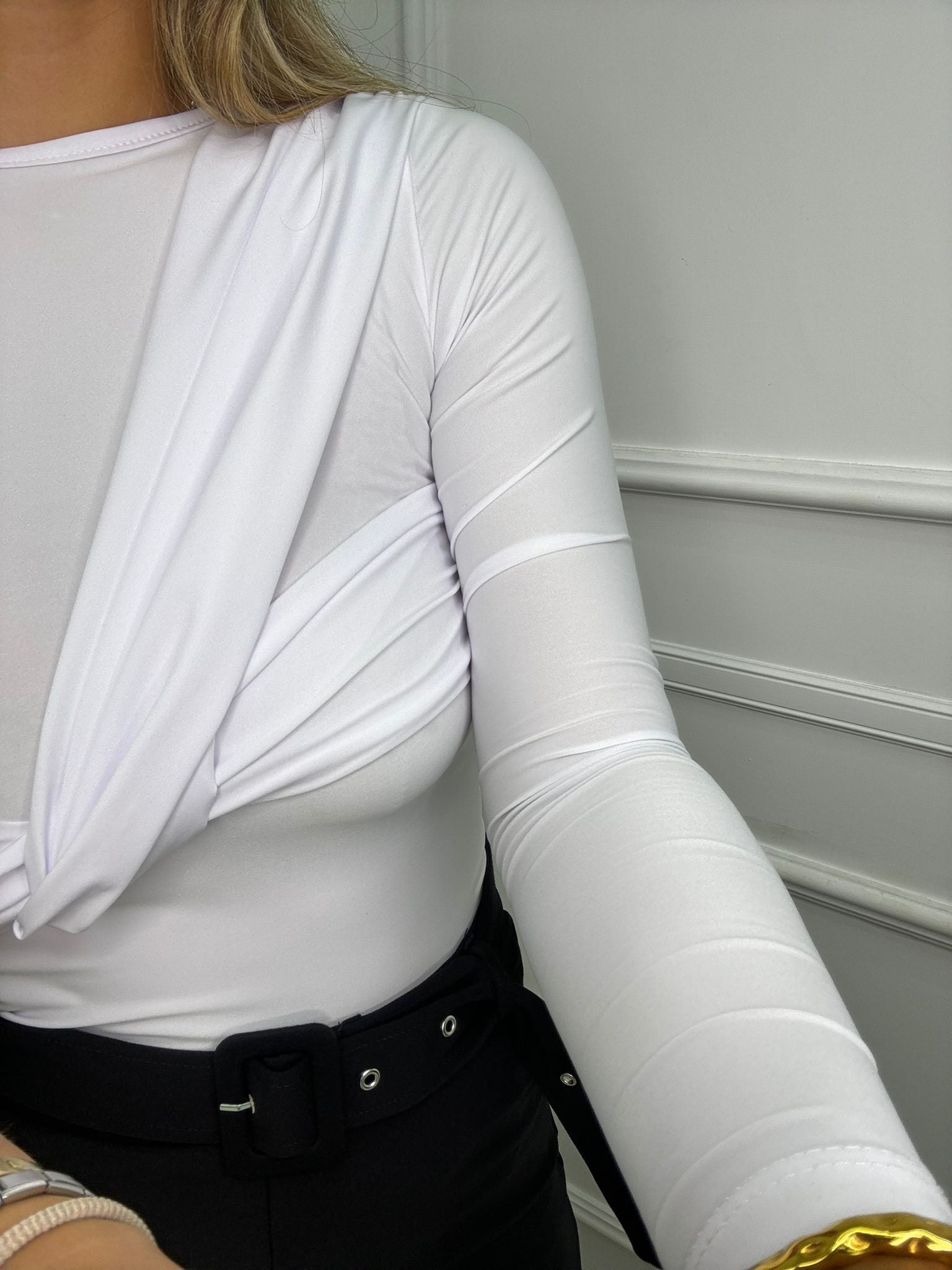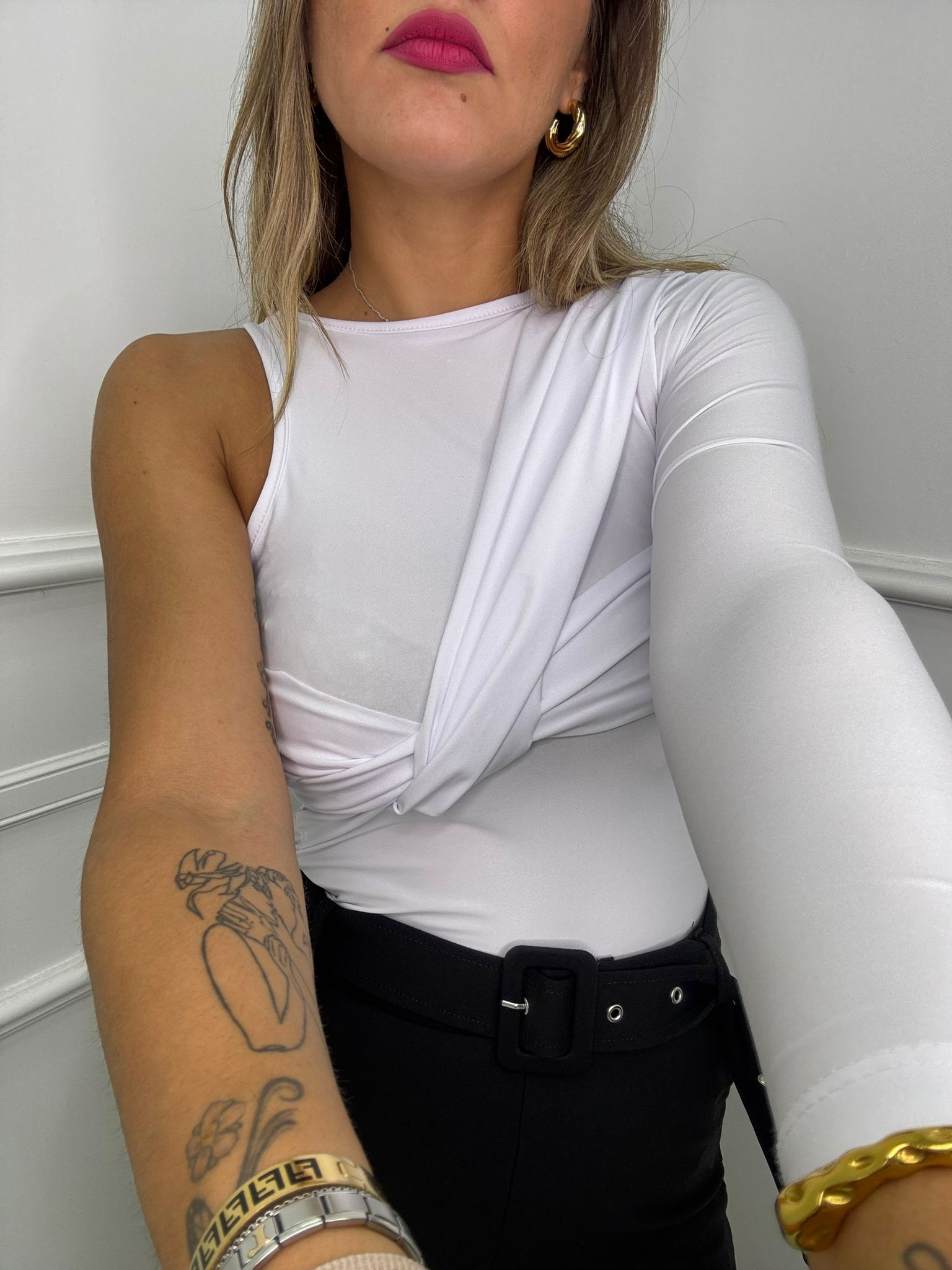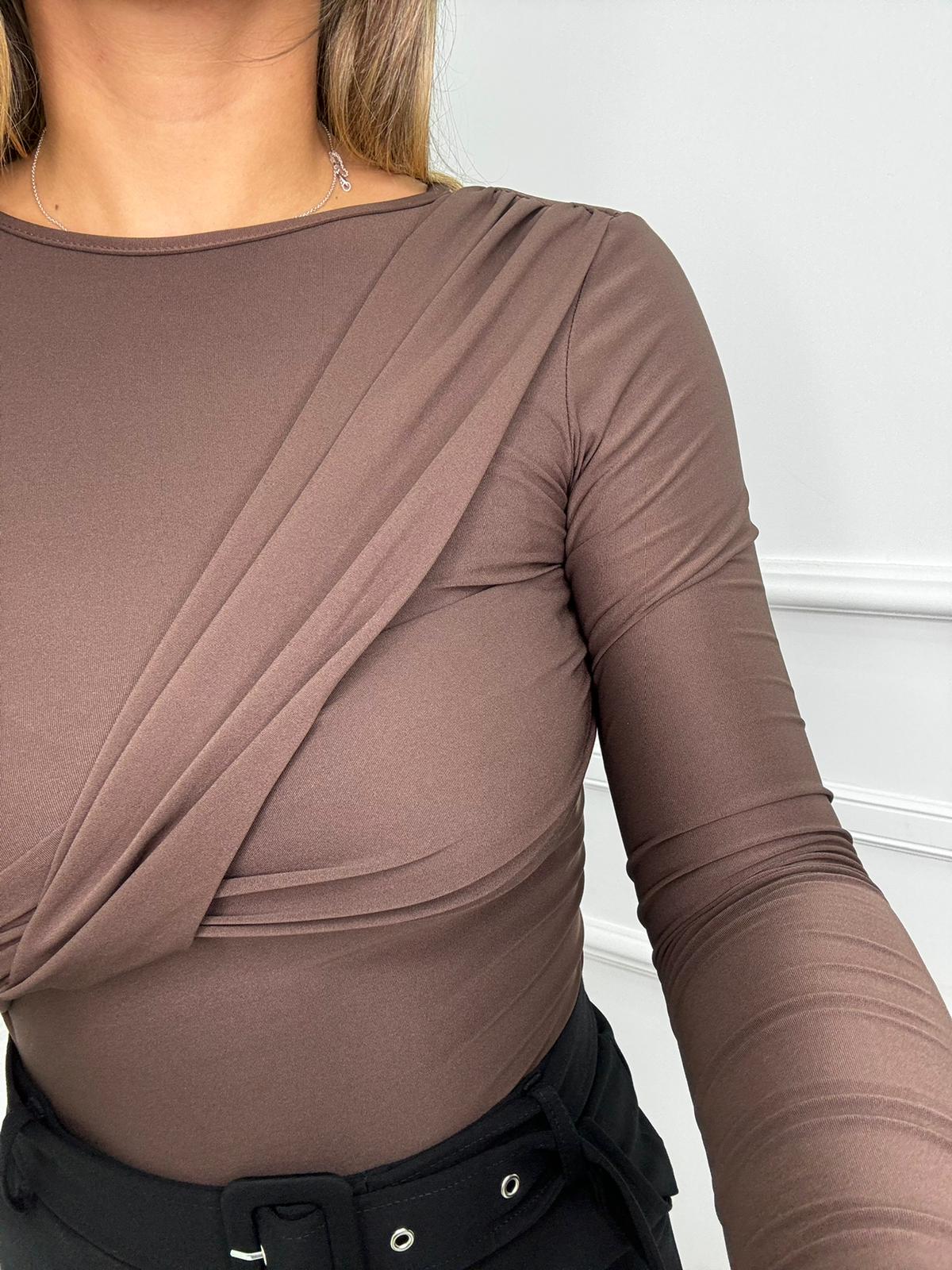 Body in lycra mono spalla con drappeggio