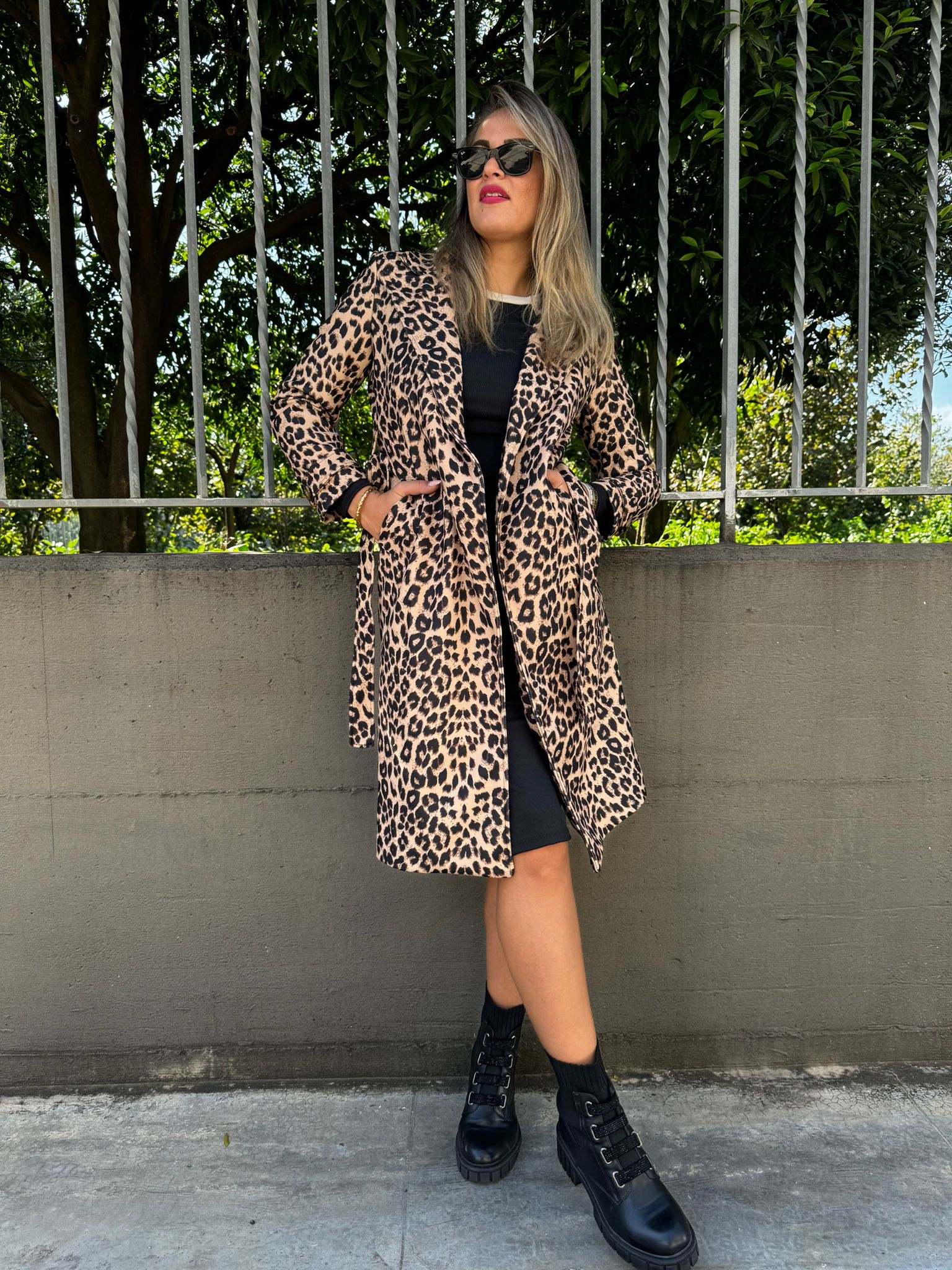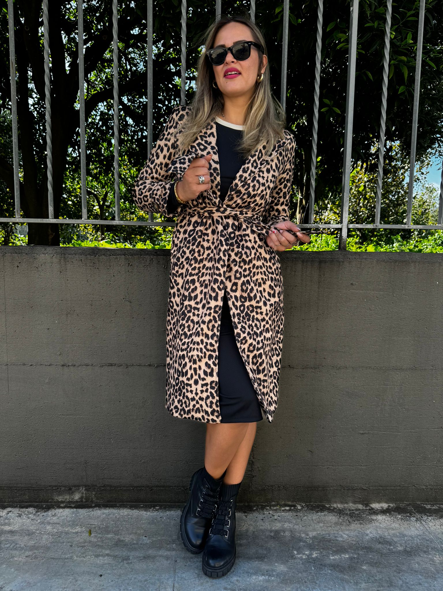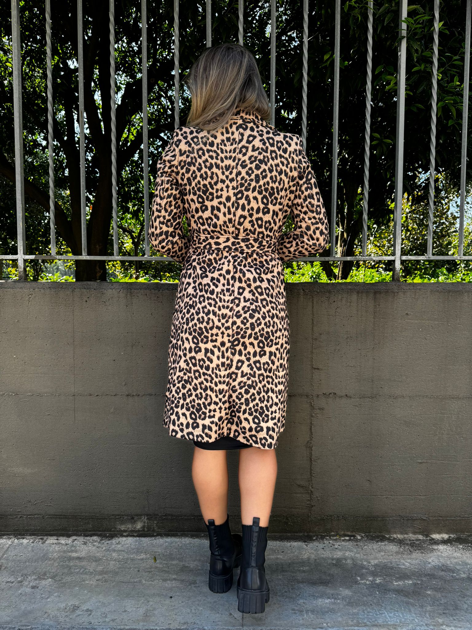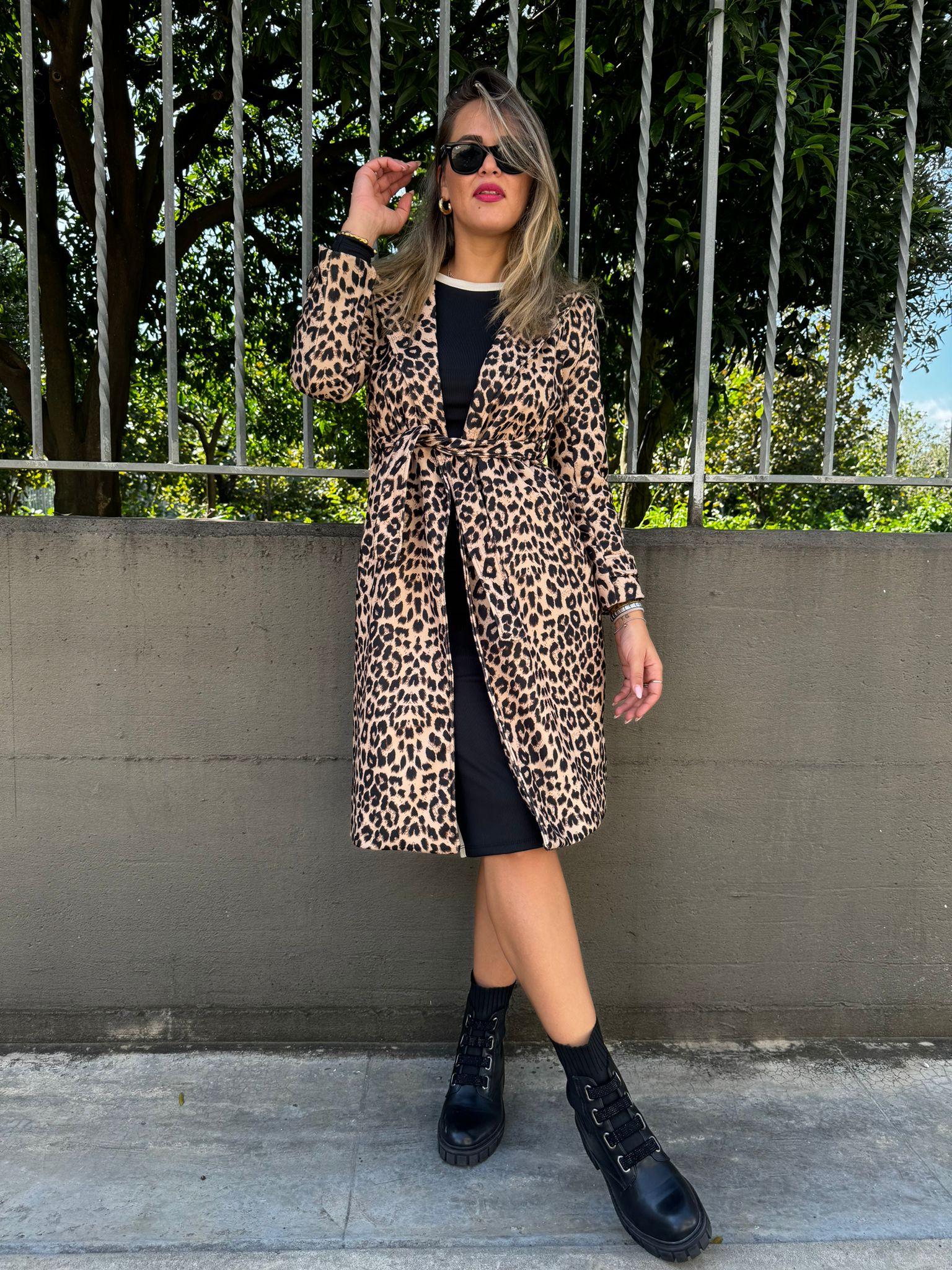 Cappotto animalier con cintura in vita