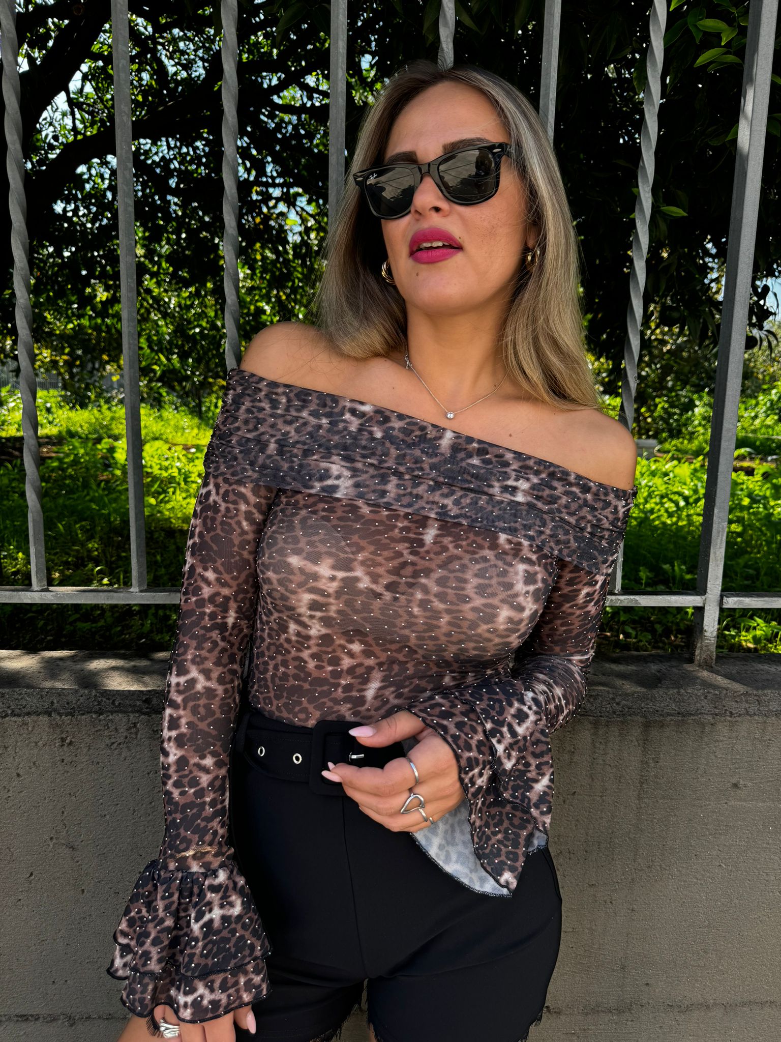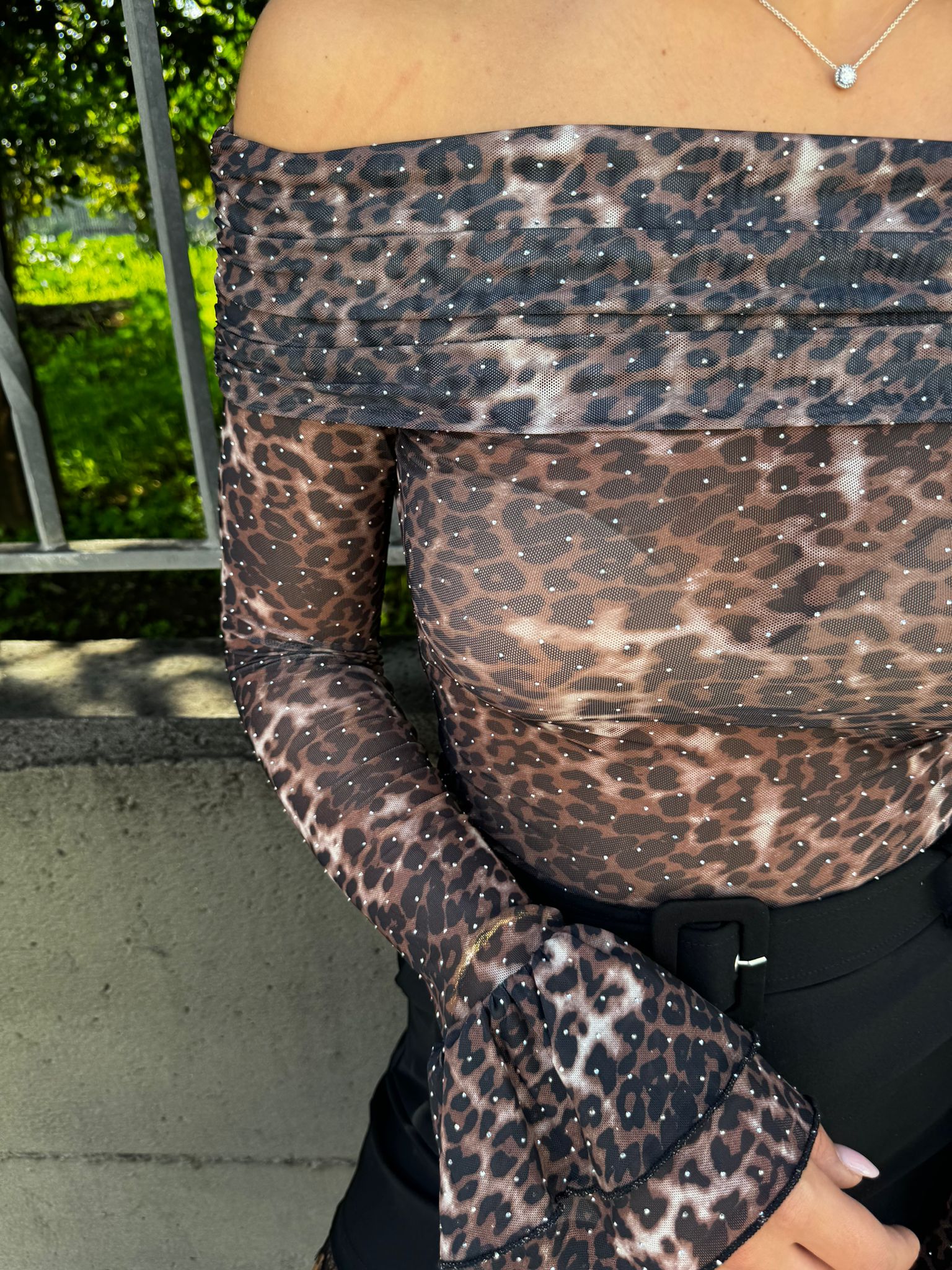 Maglia animalier velata con brillantini