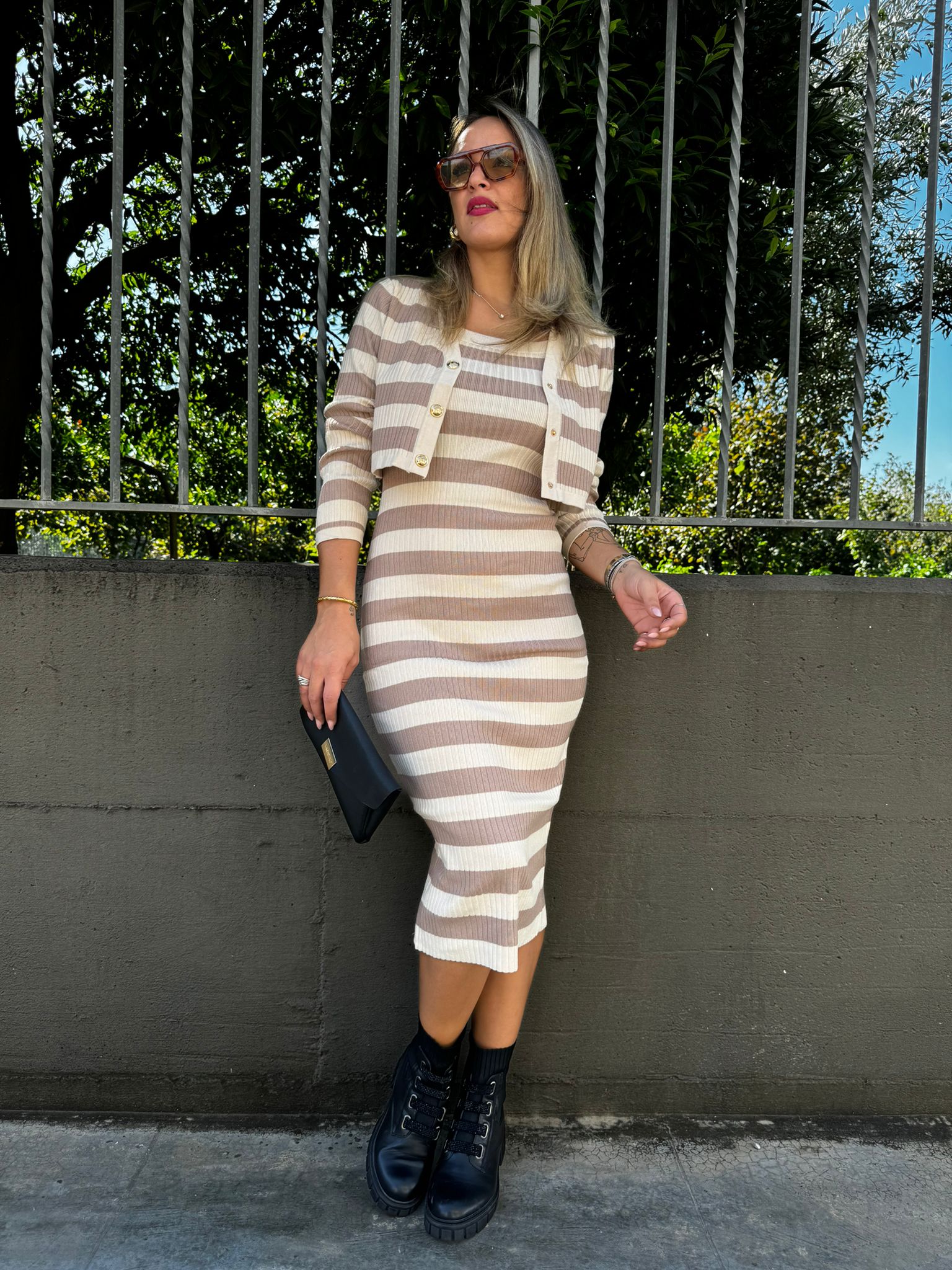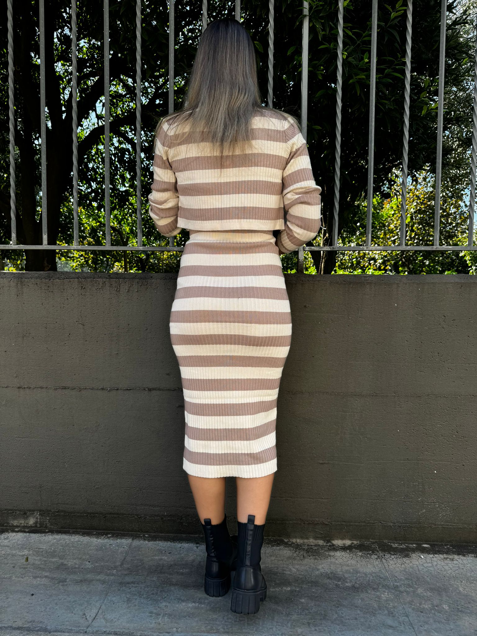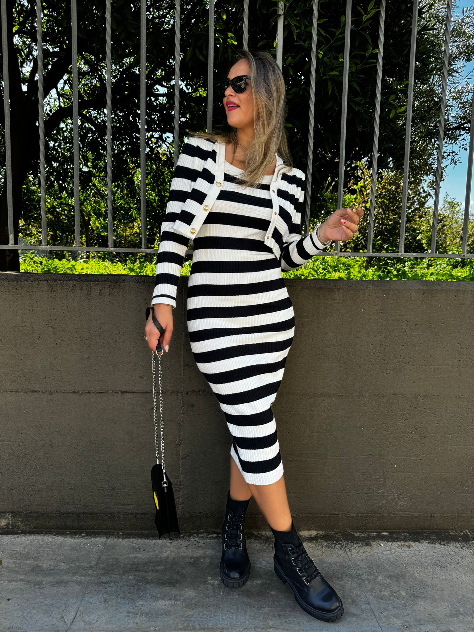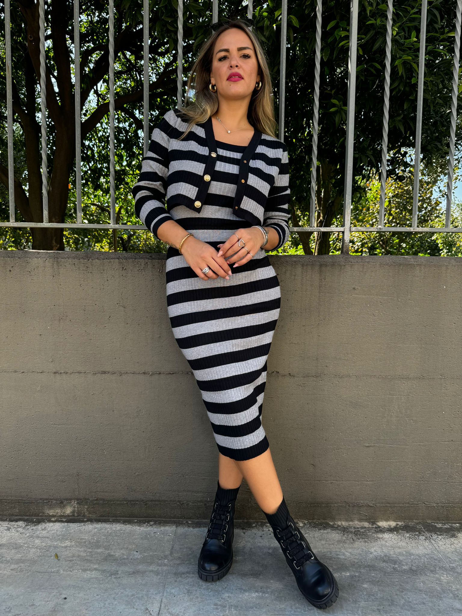 Coordinato 2 pezzi con vestito midi e cardigan crop