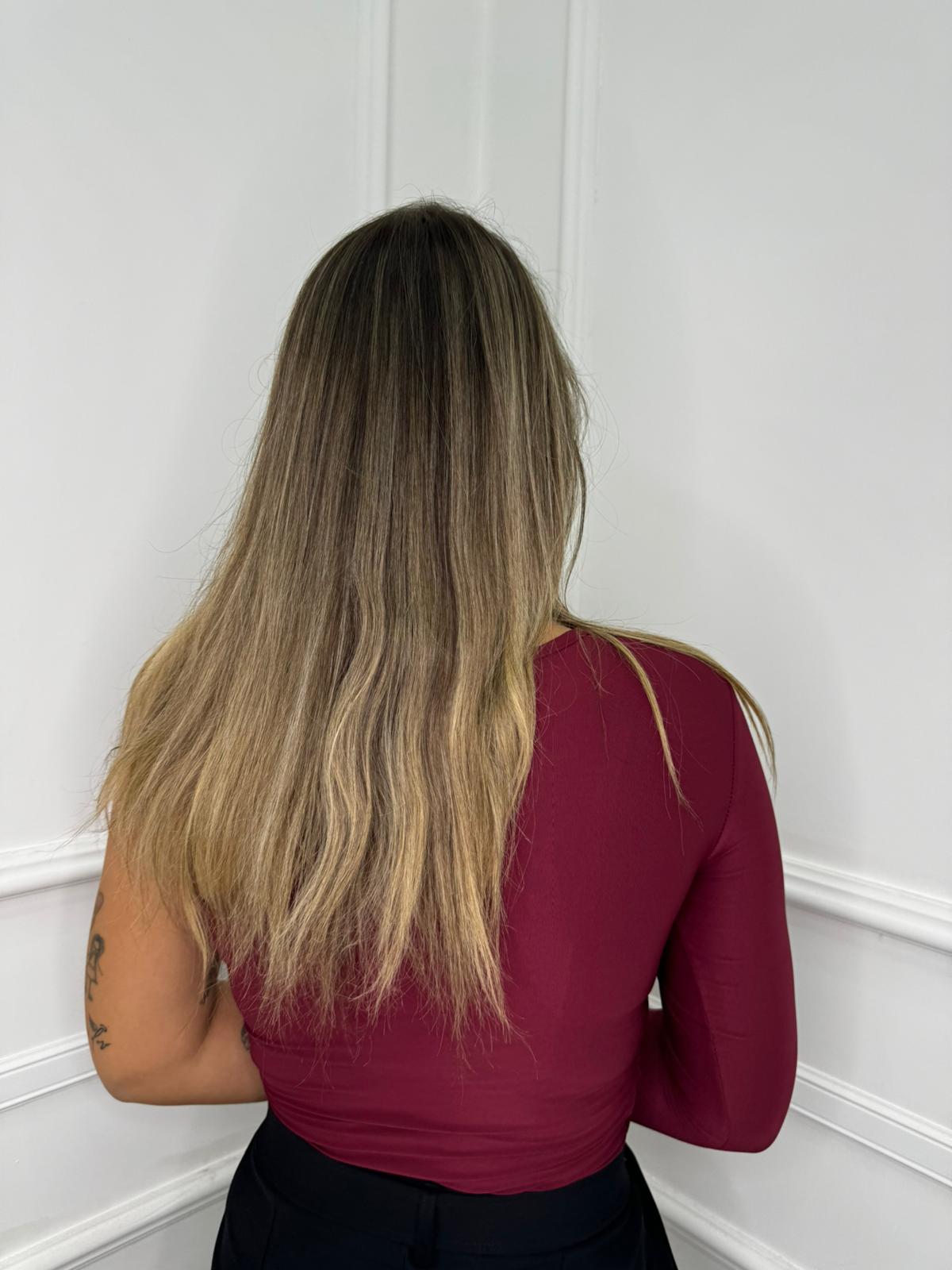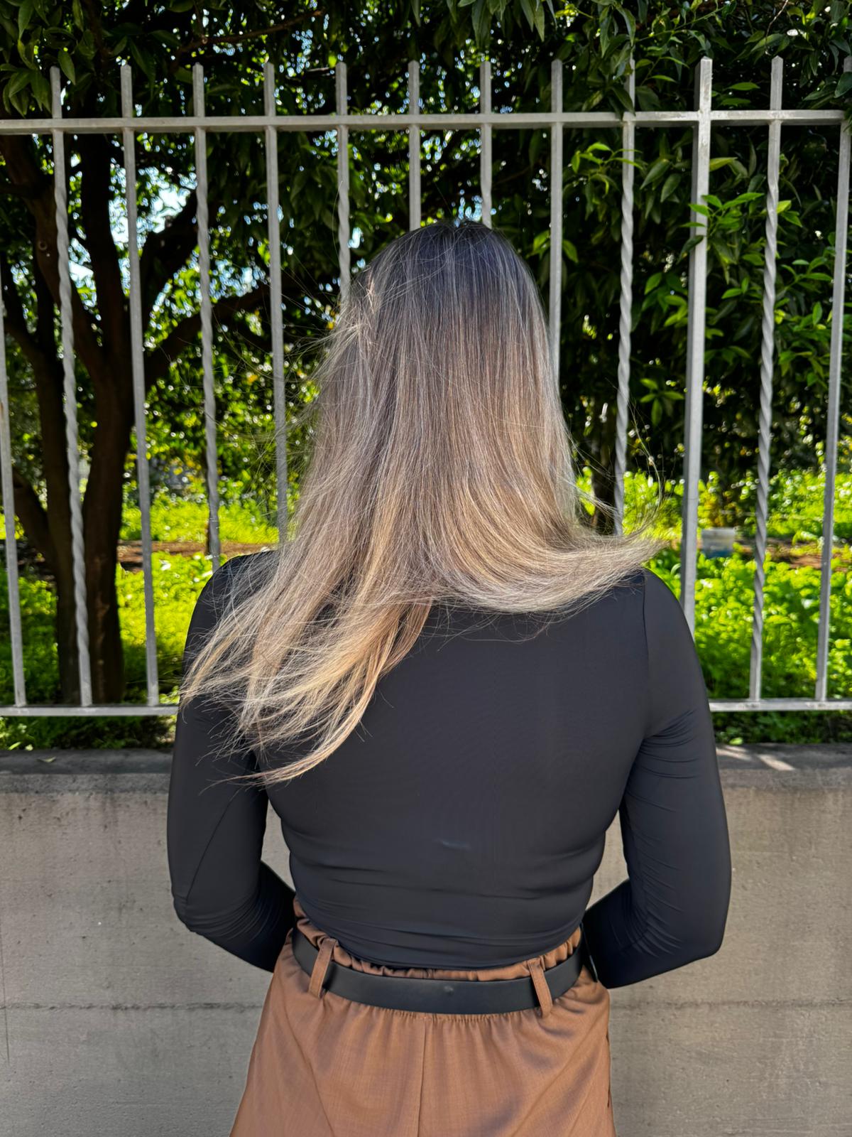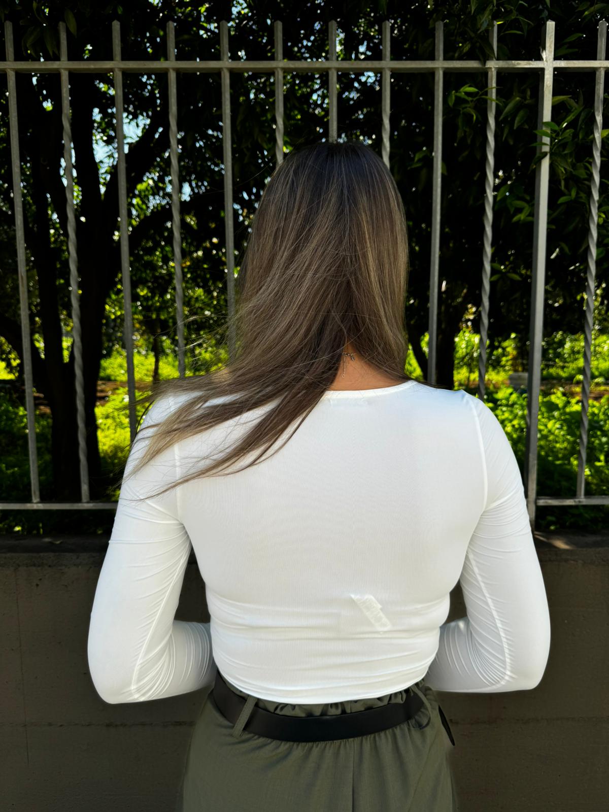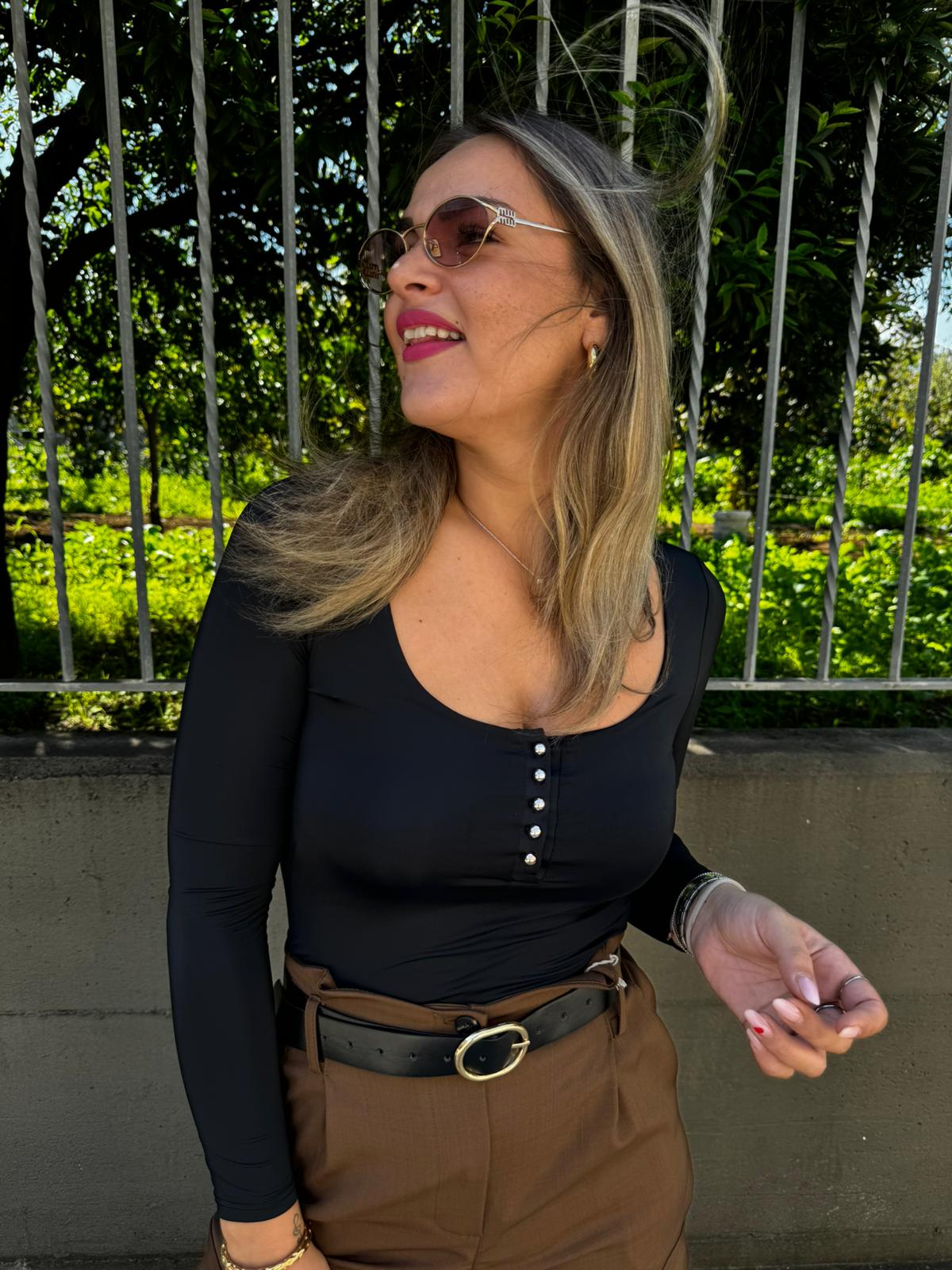 Body in lycra tinta unita con bottoncini oro