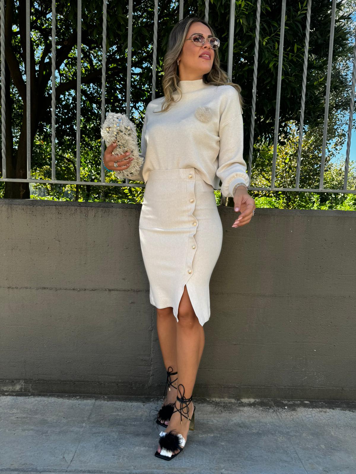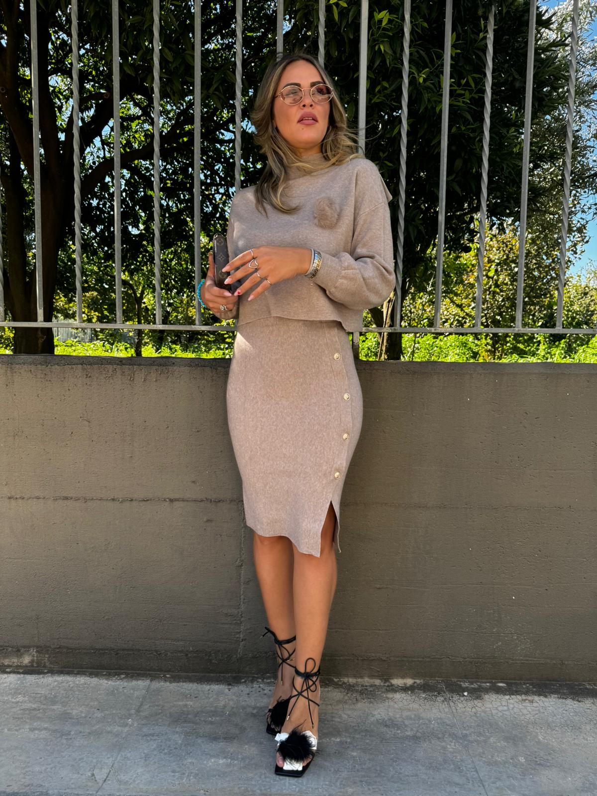 Coordinato 2 pezzi con longuette e maglia con spilla