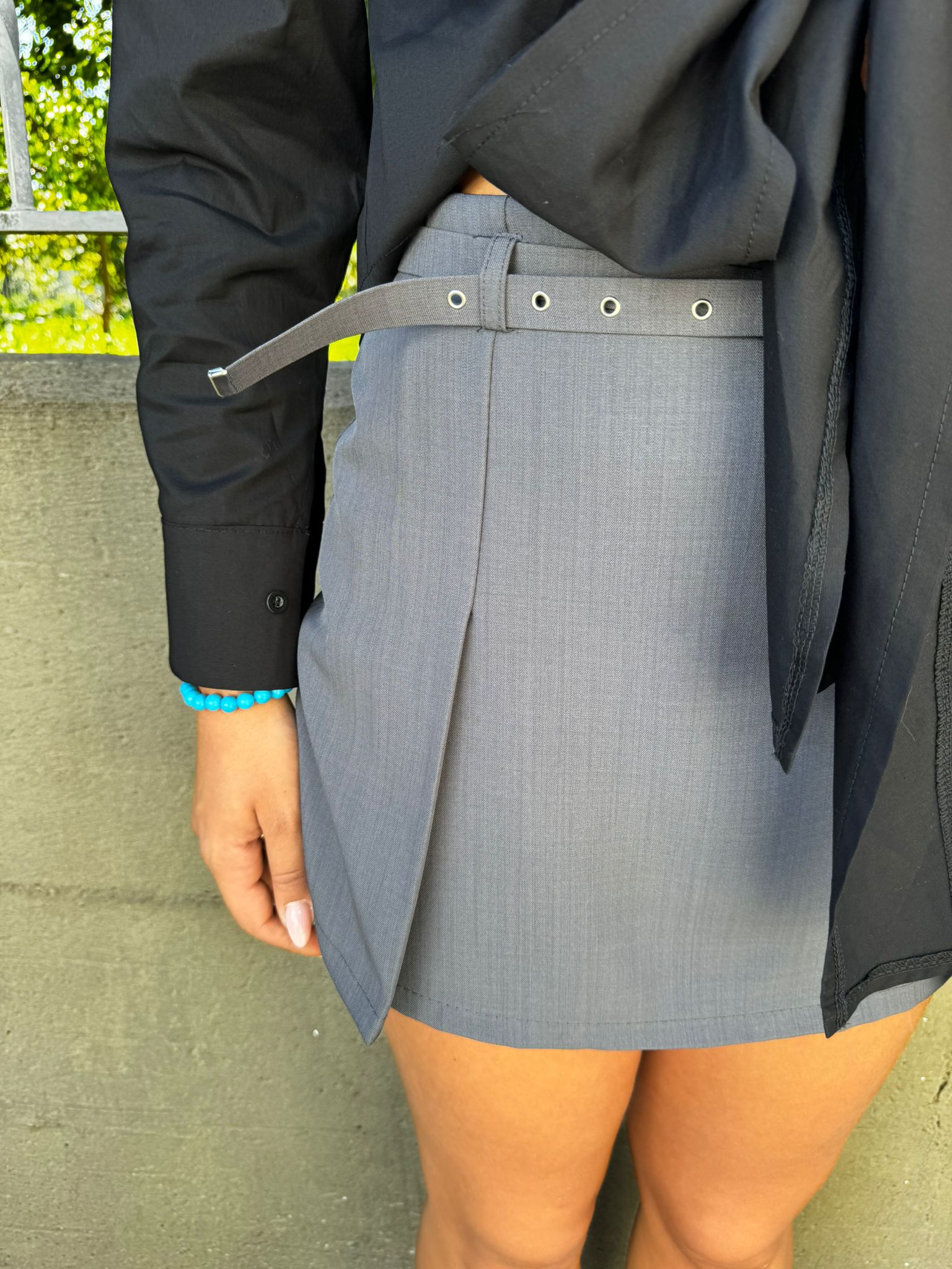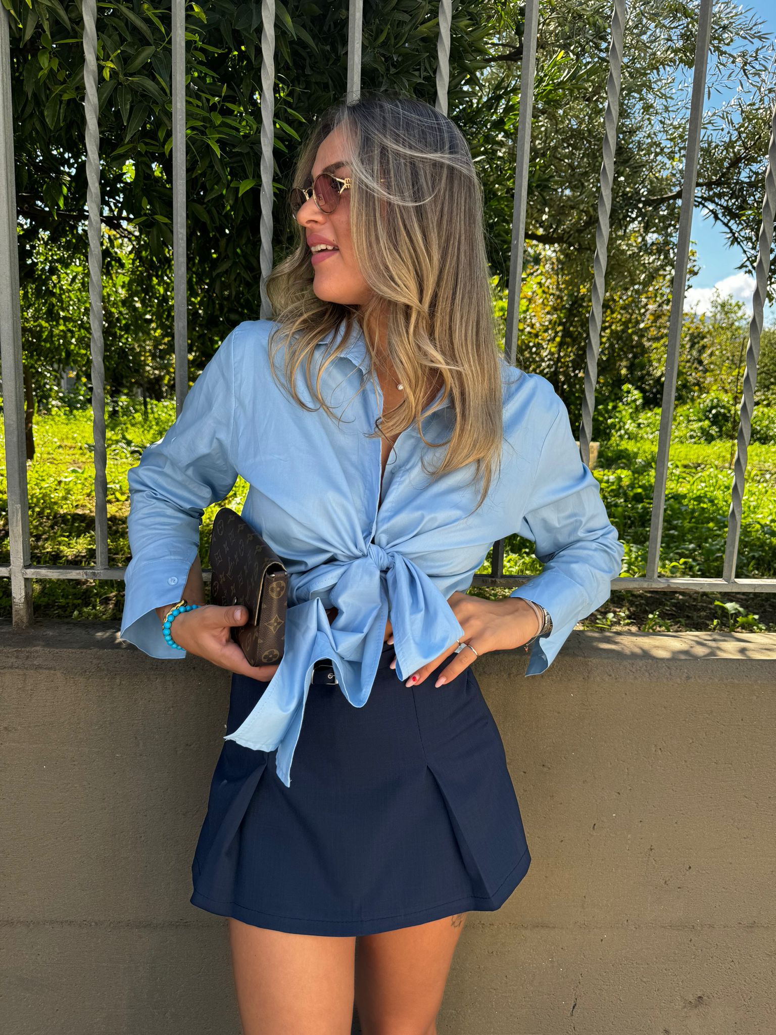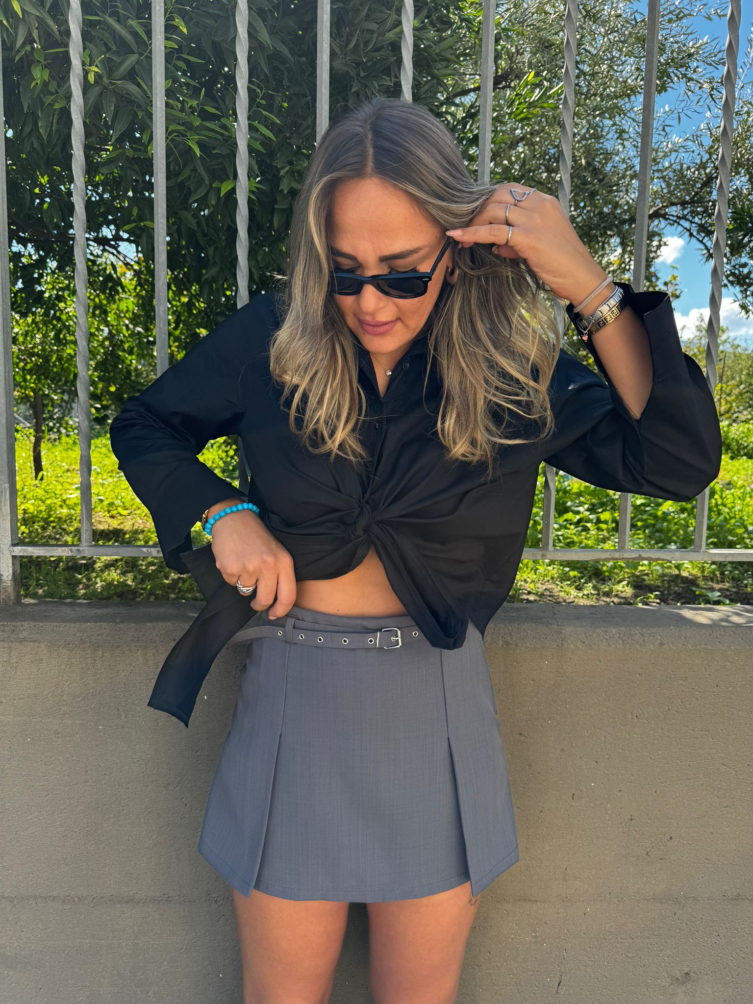 Coordinato 3 pezzi con mini gonna e cardigan lungo