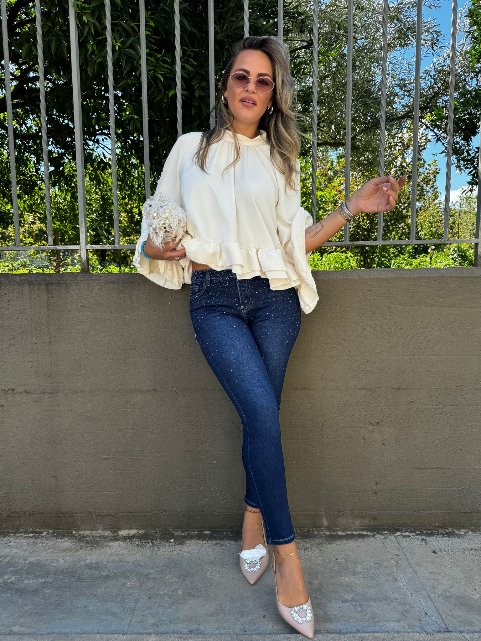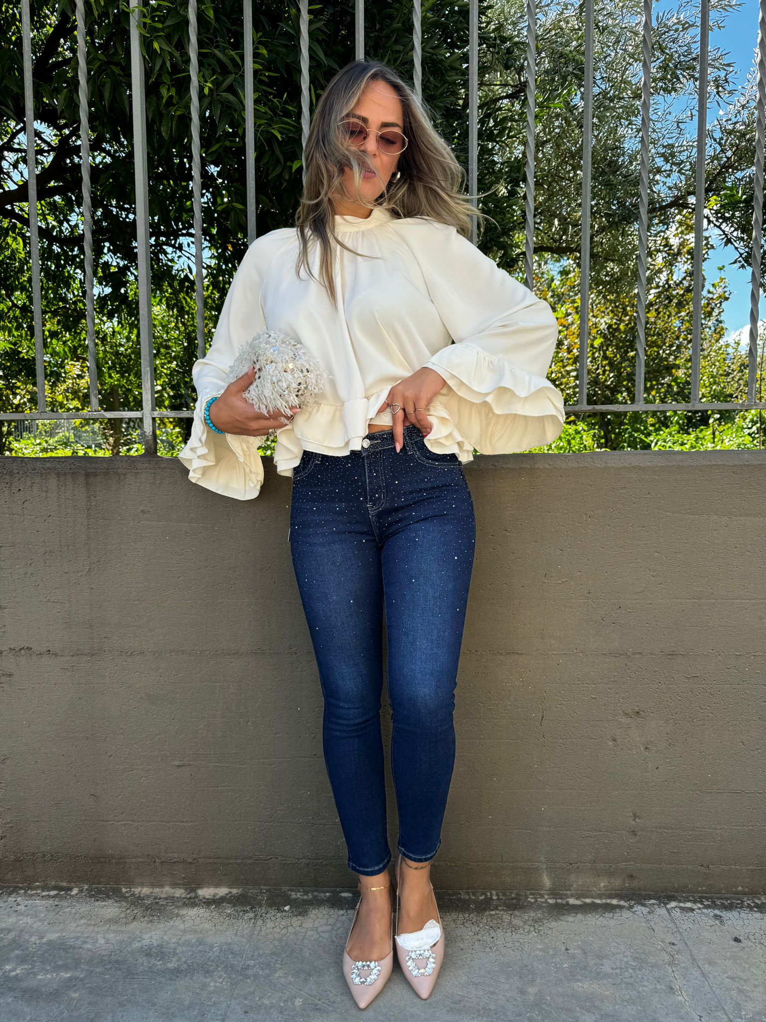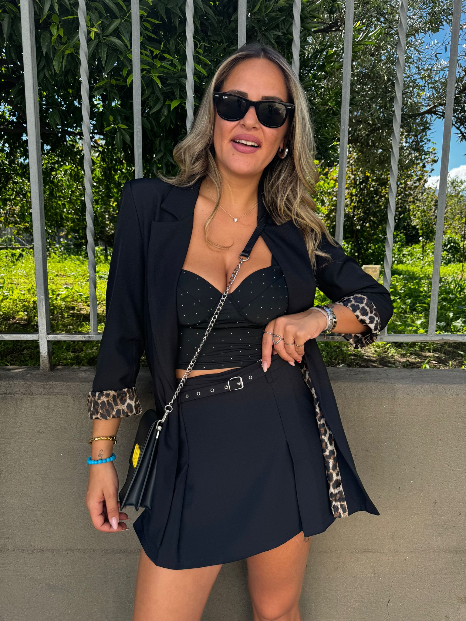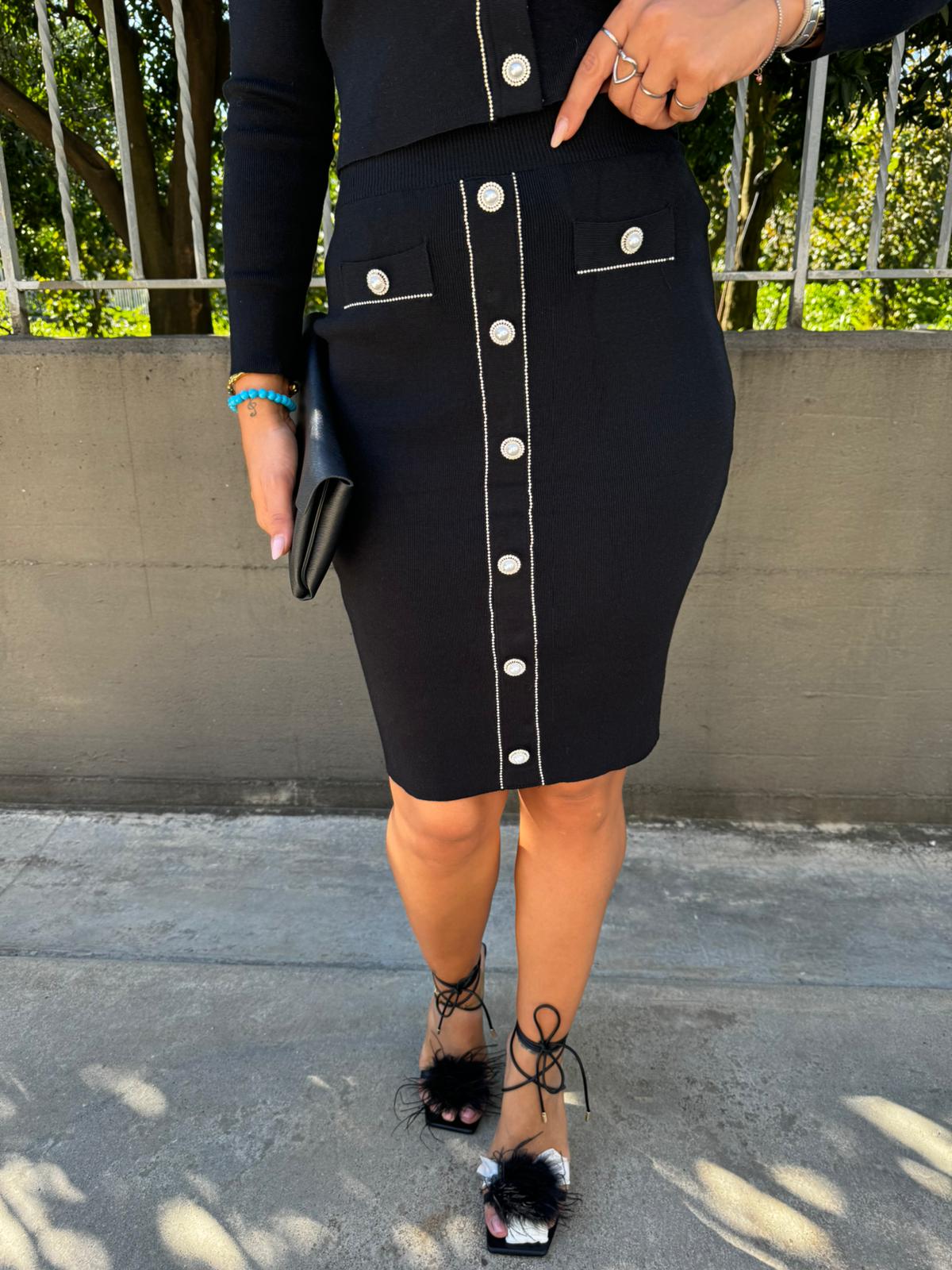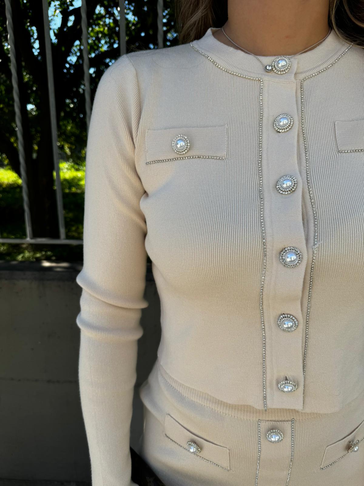 Coordinato 2 pezzi con longuette e cardigan swarovski