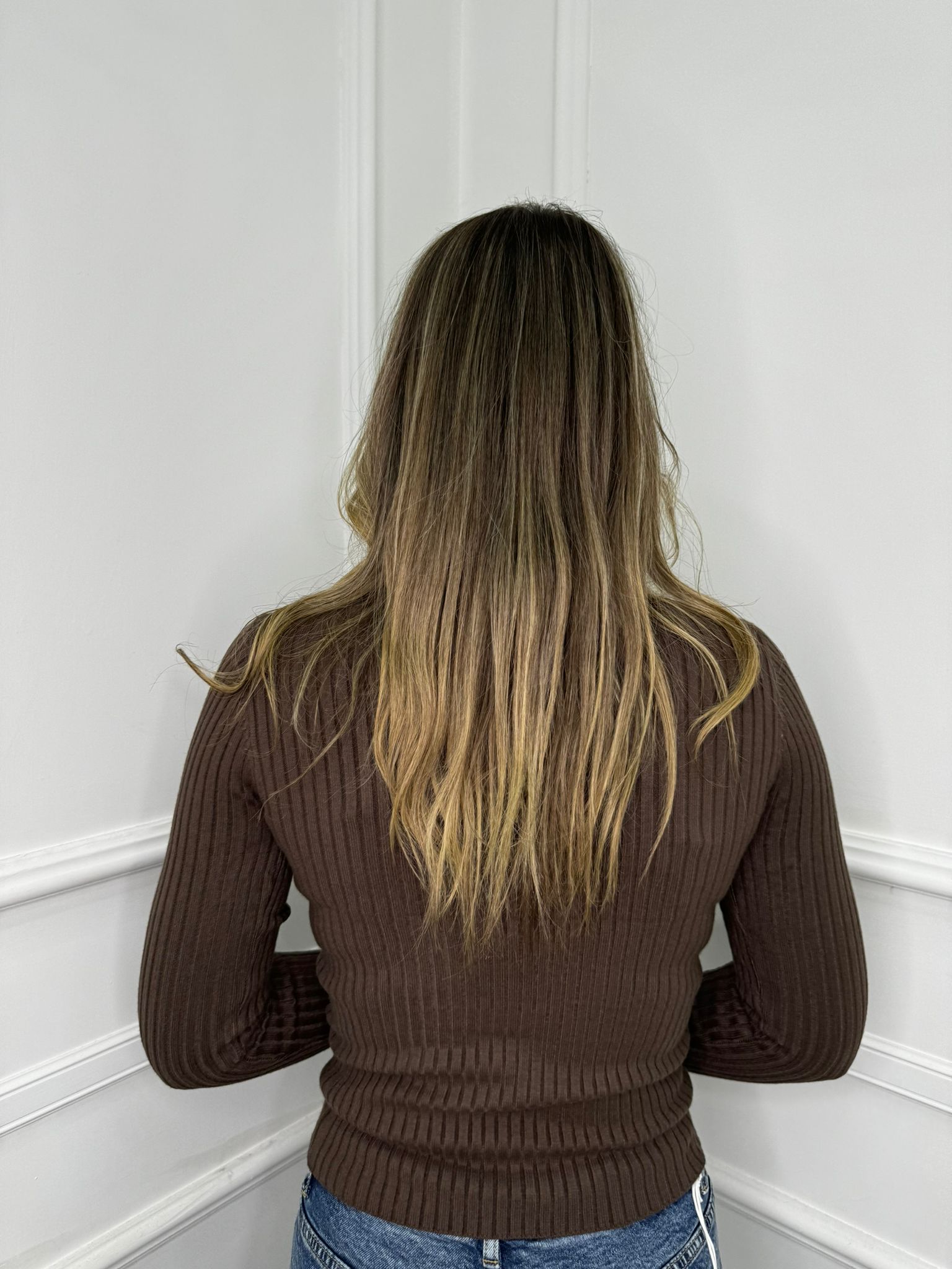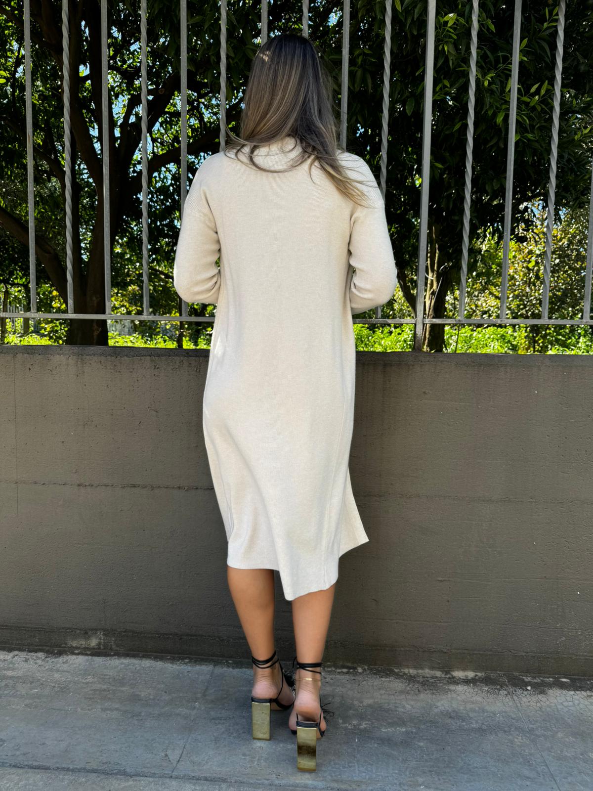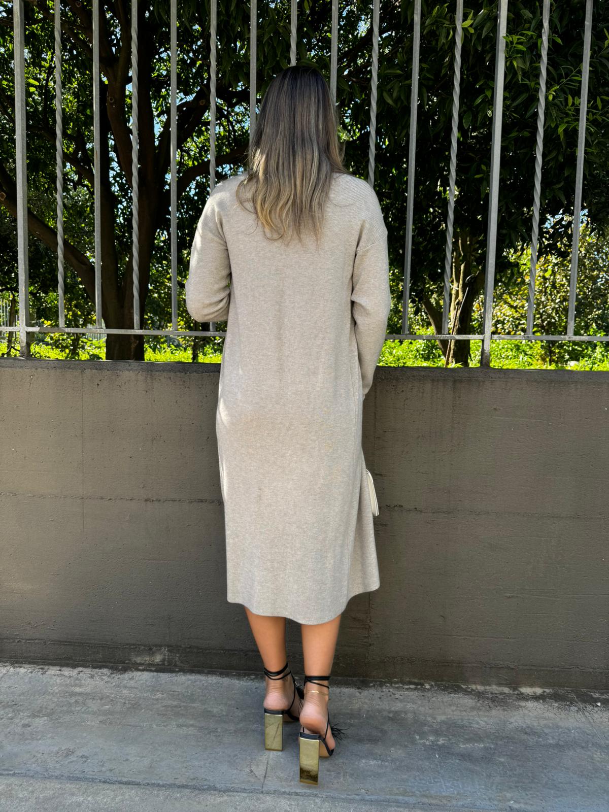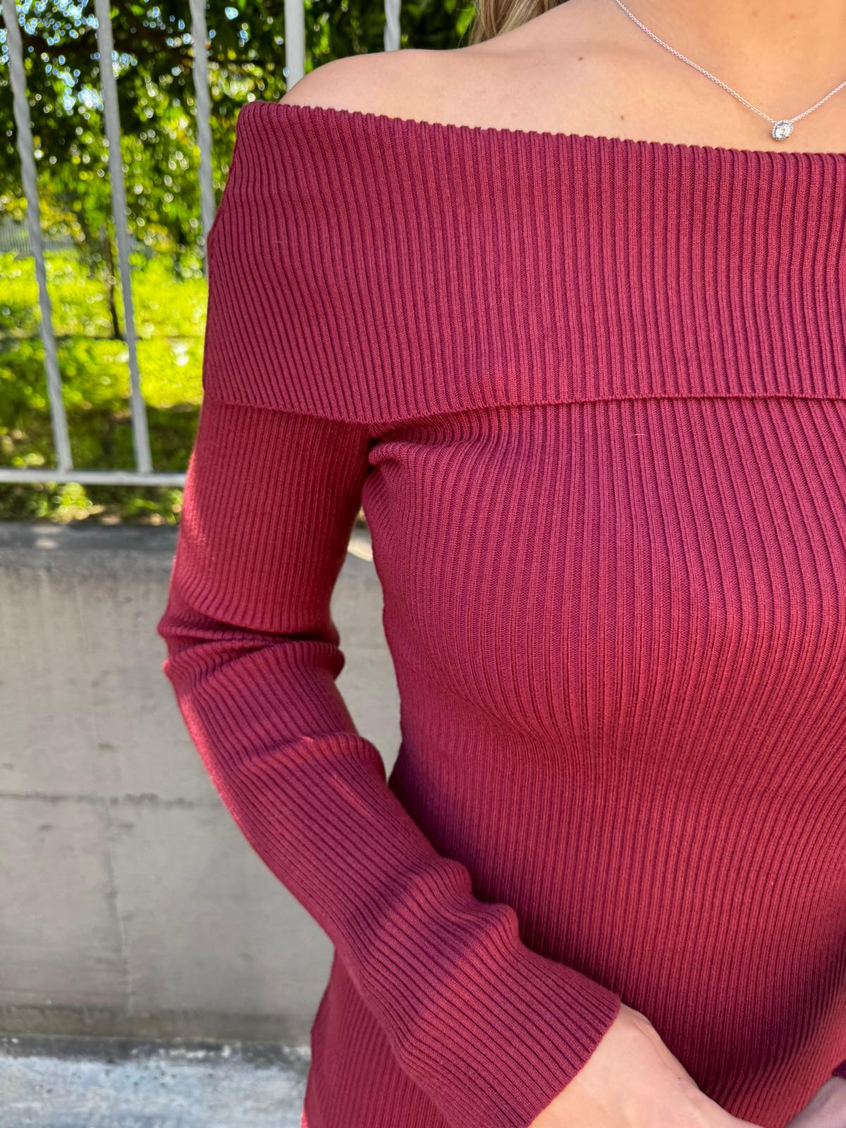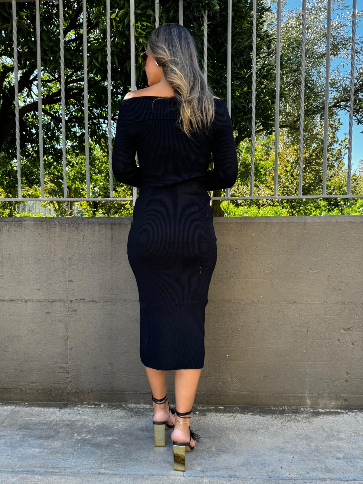 Vestito lungo a coste con scollo a barca e spacco laterale