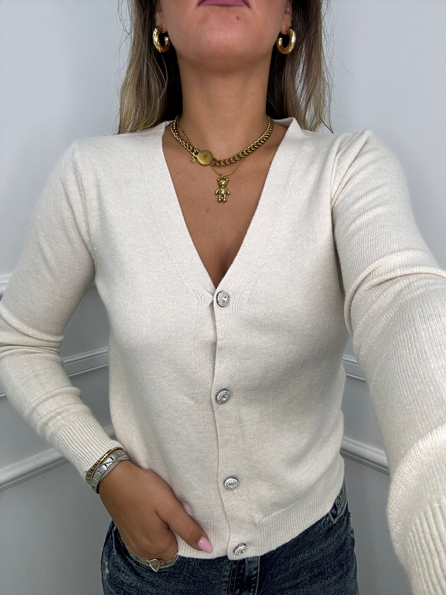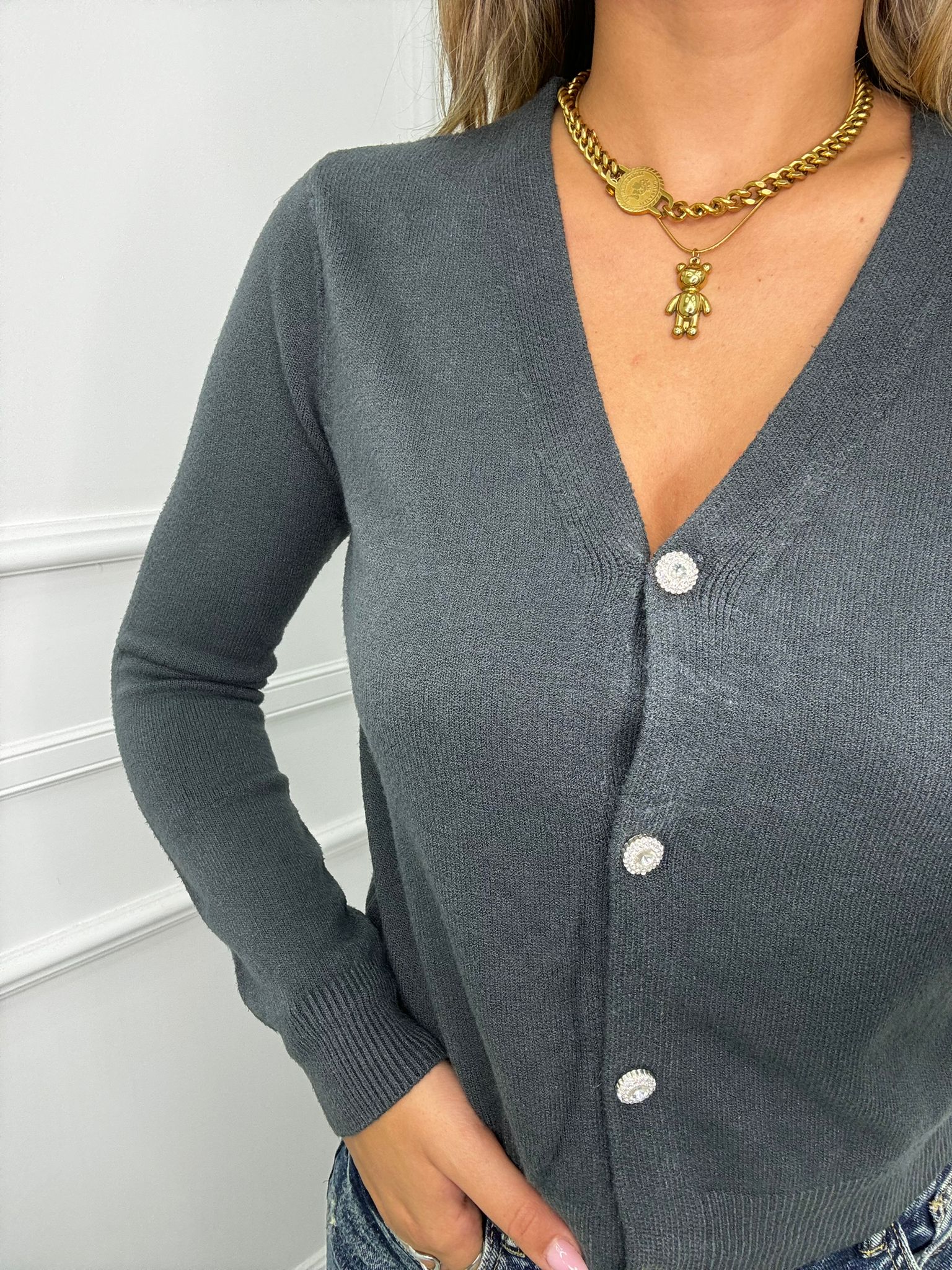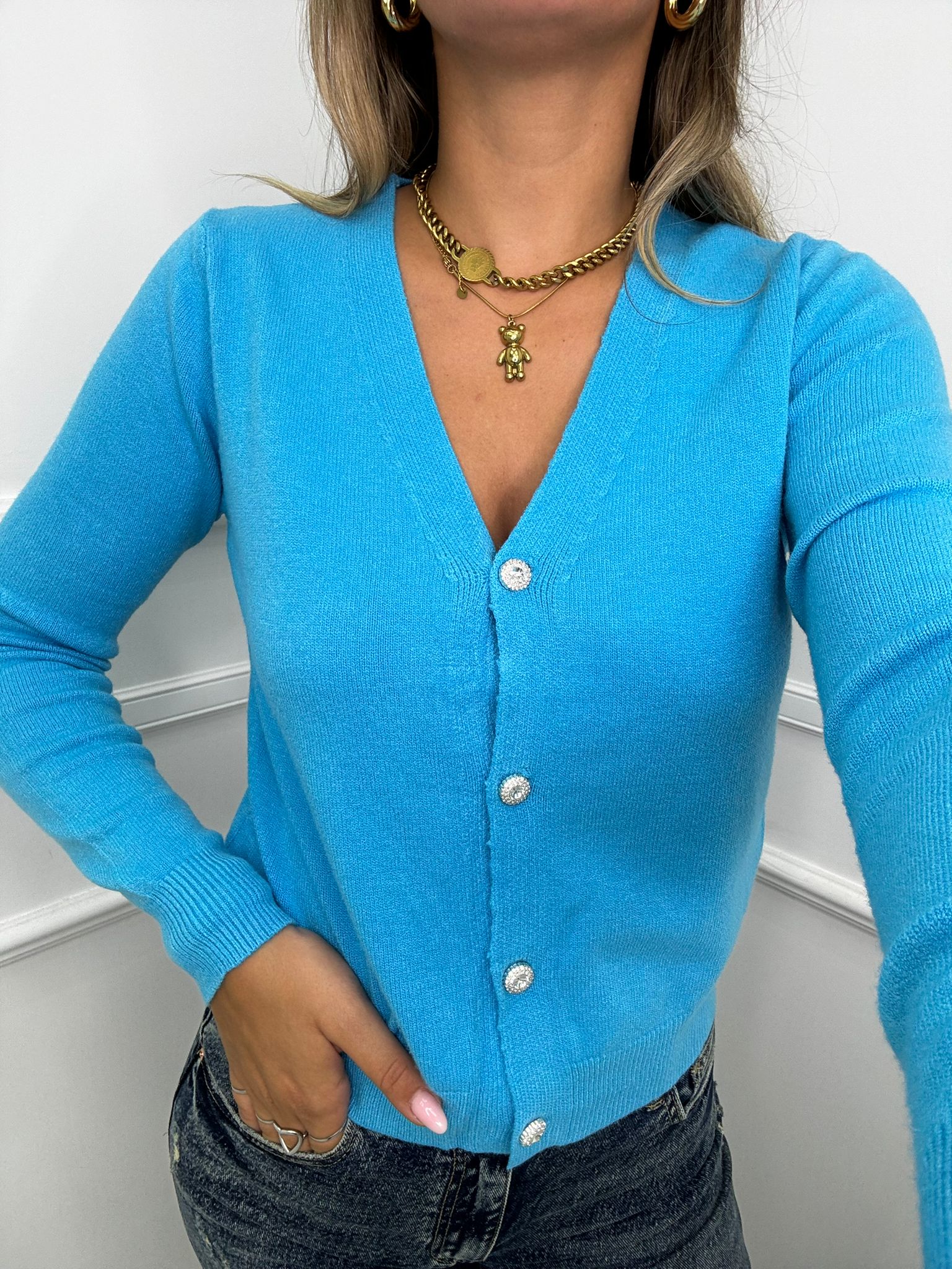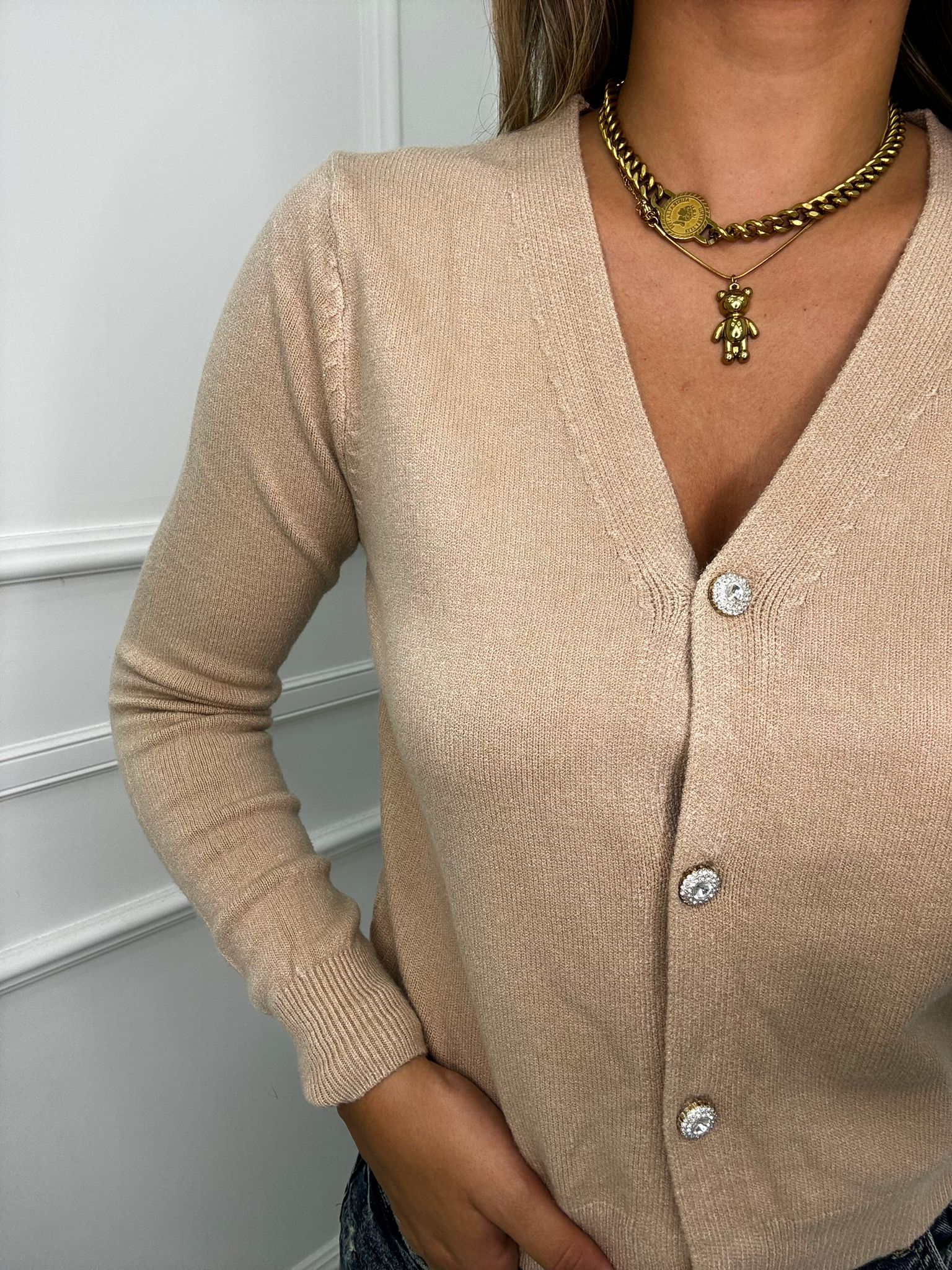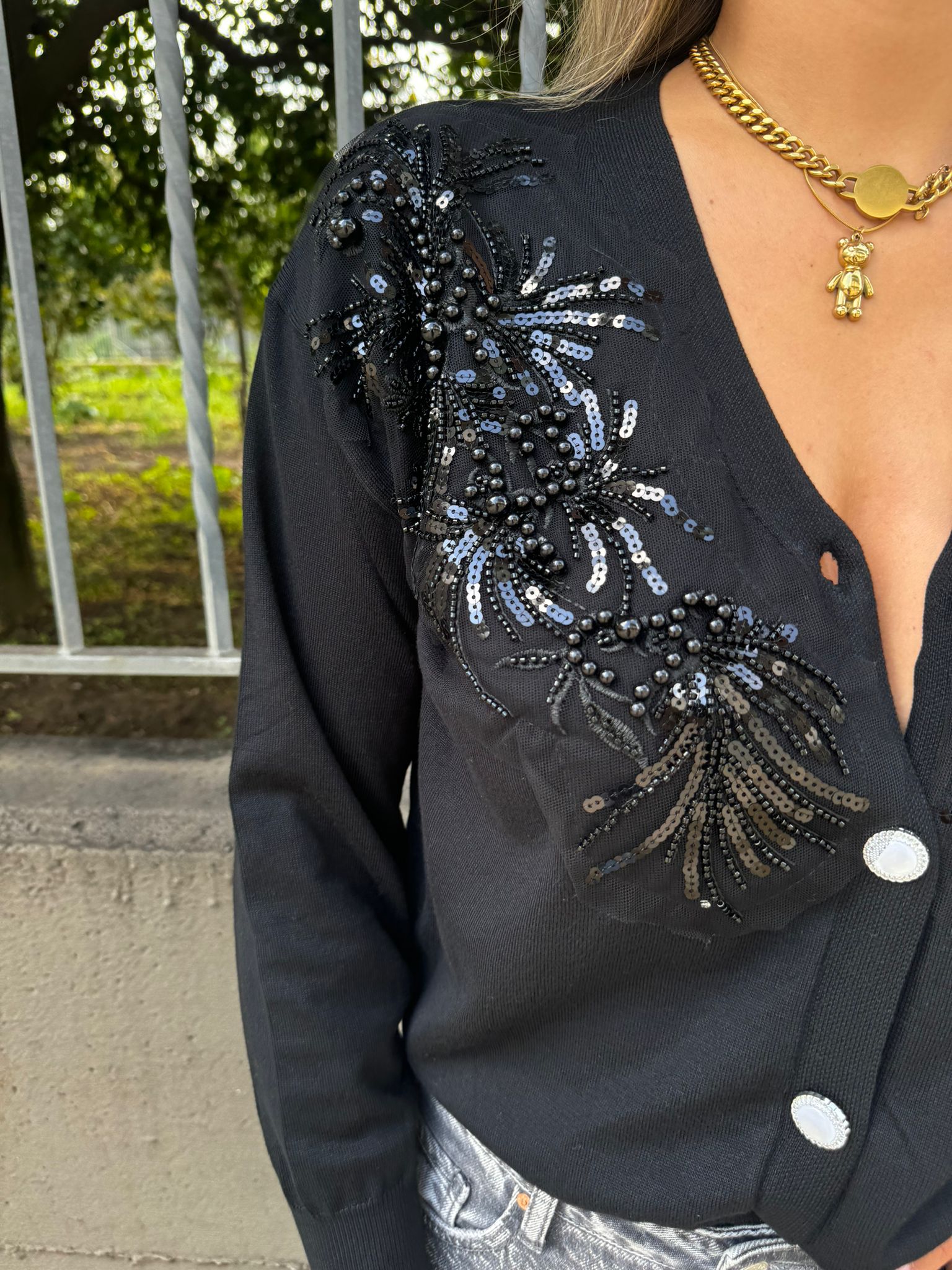 Cardigan tinta unita con applicazioni swarvoski tono su tono