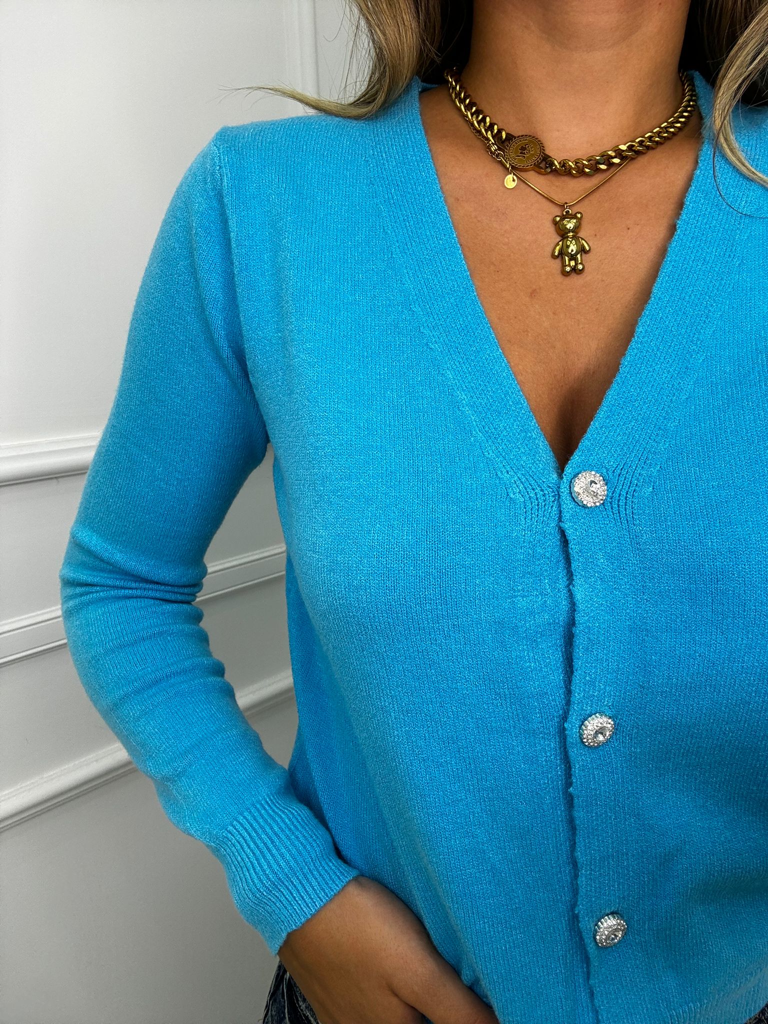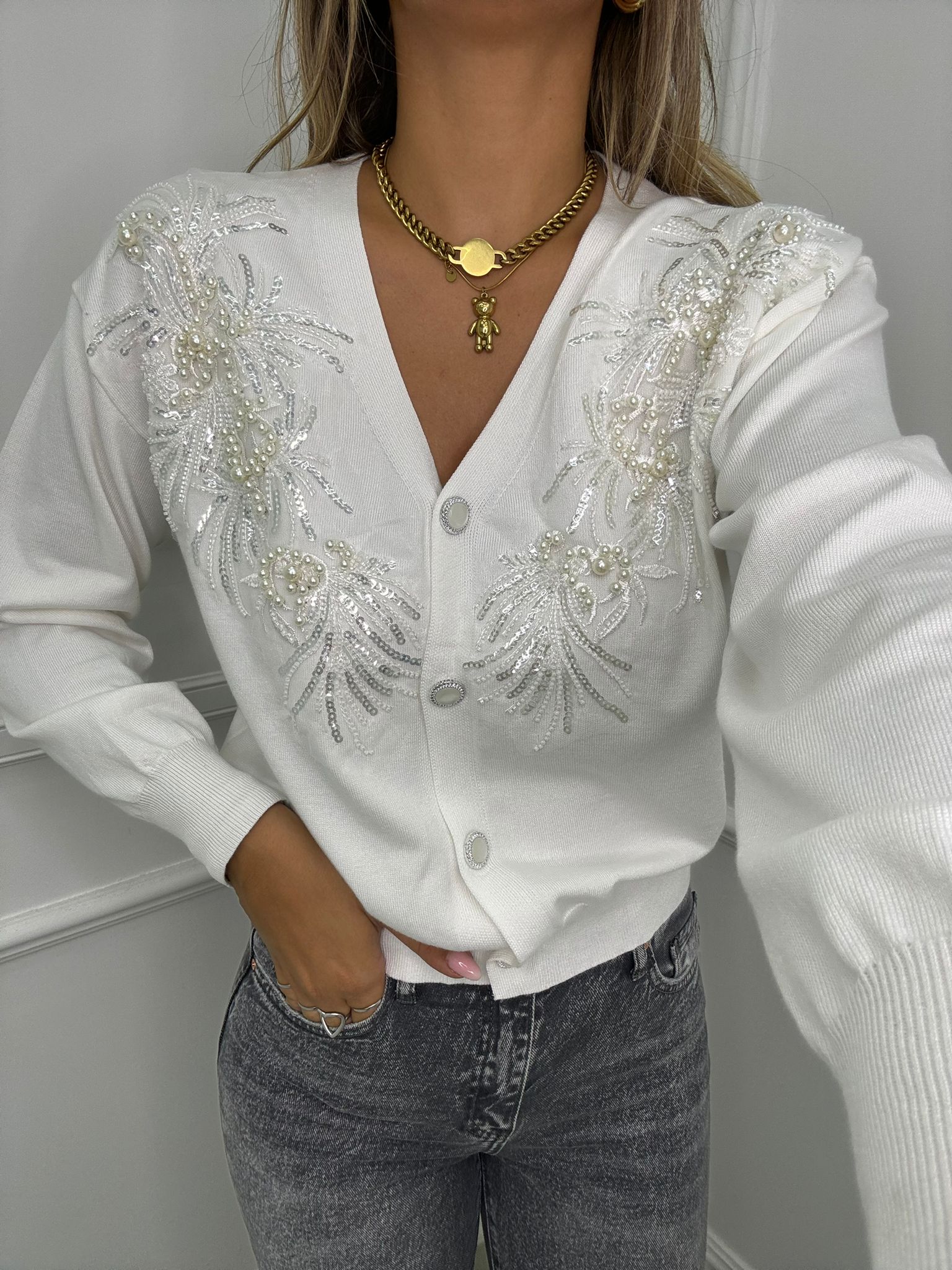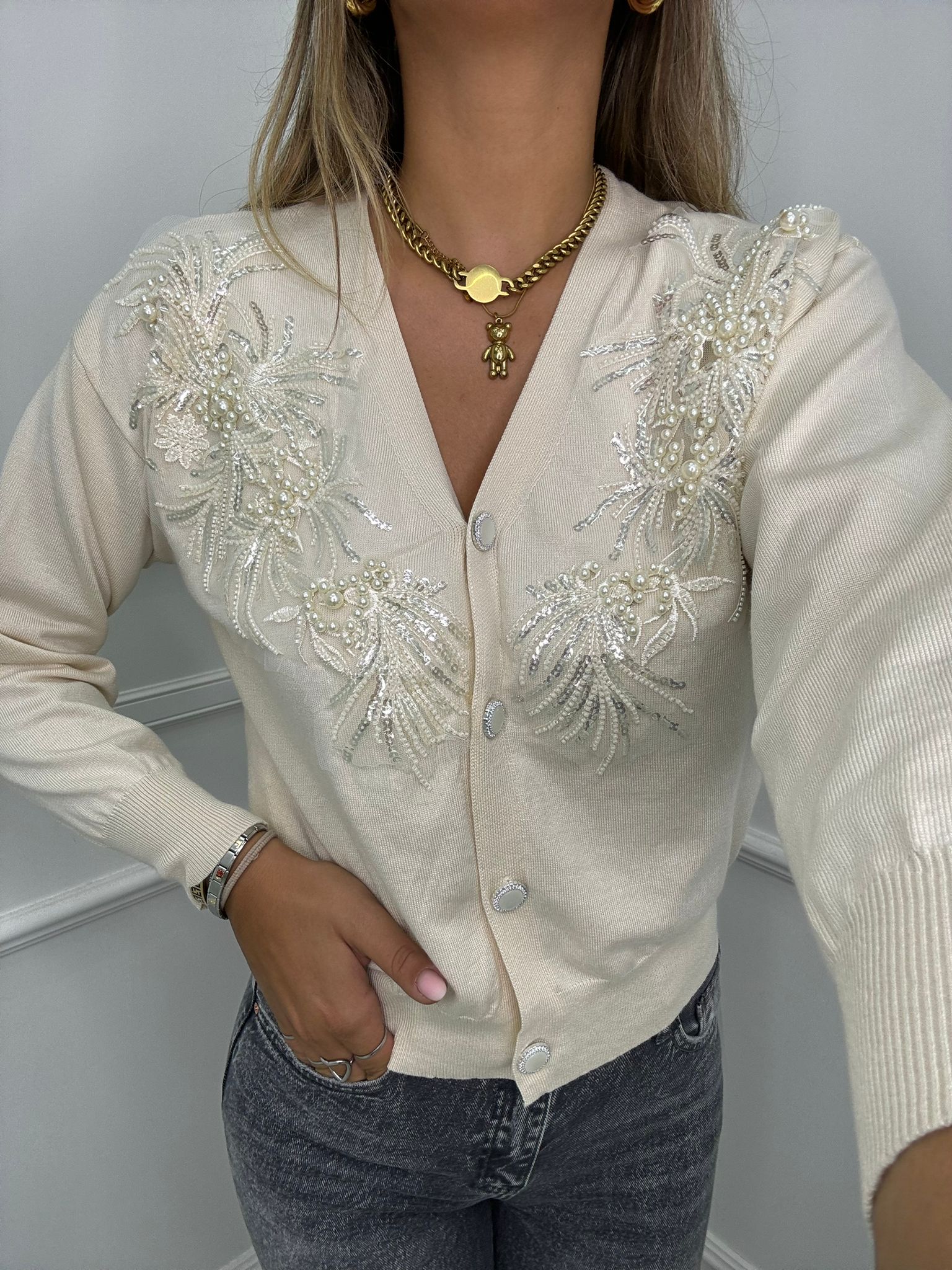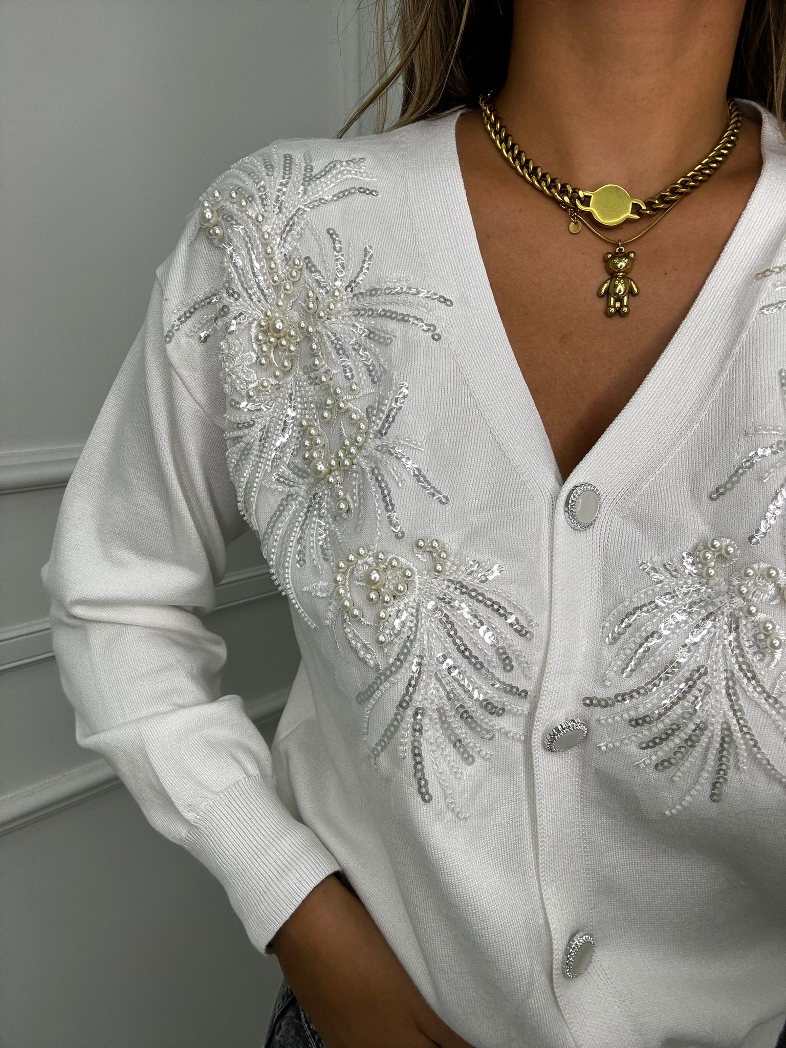 Cardigan tinta unita con applicazioni swarvoski tono su tono