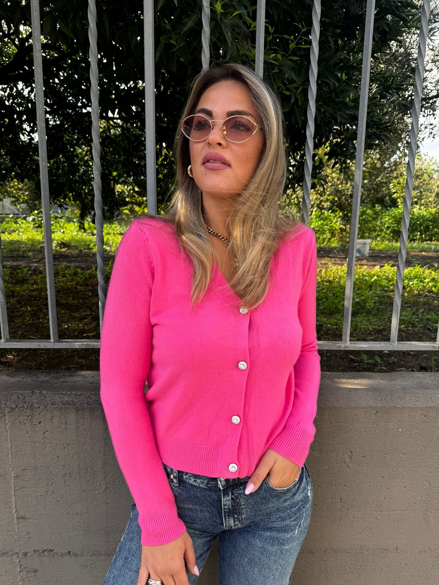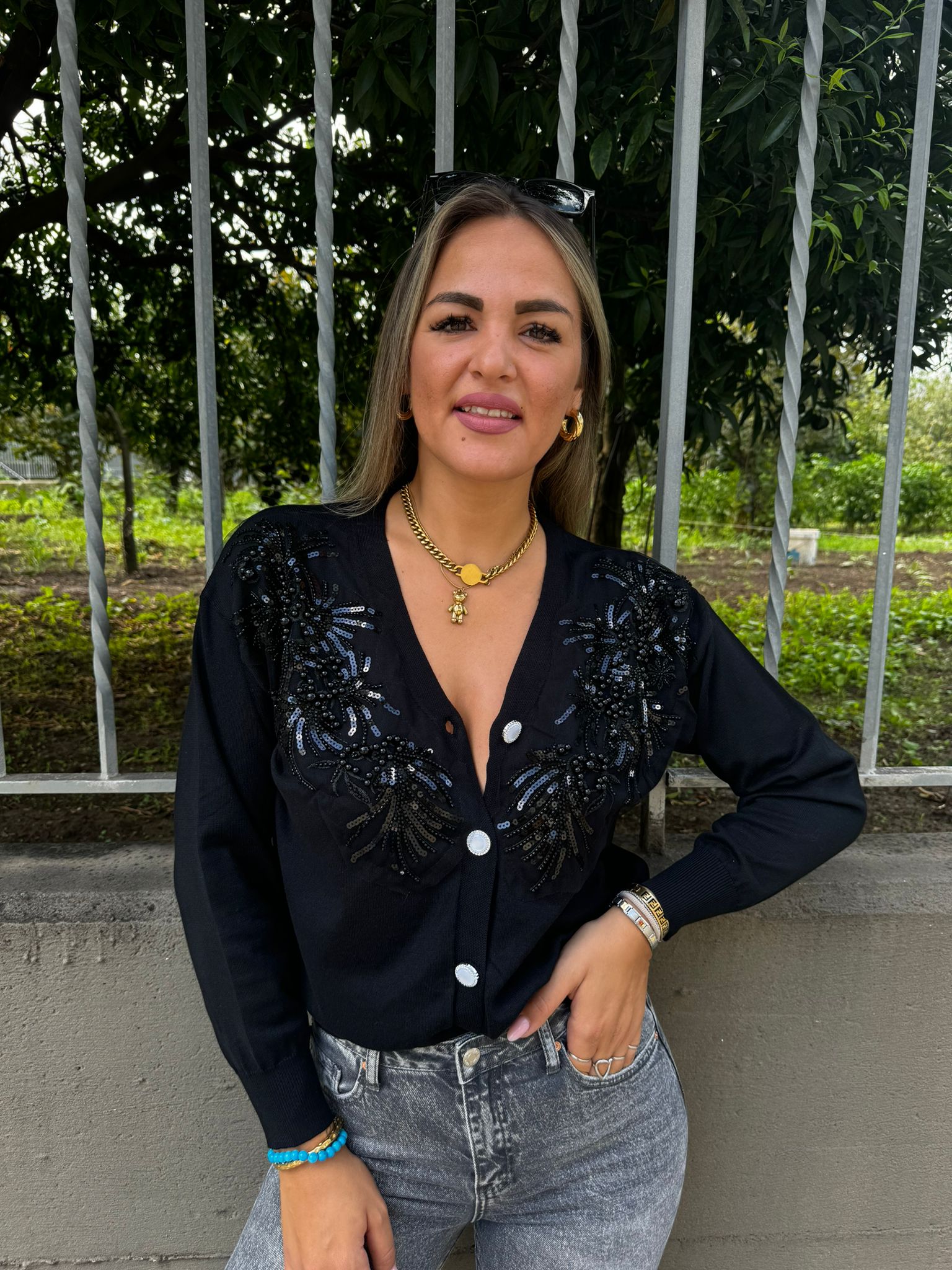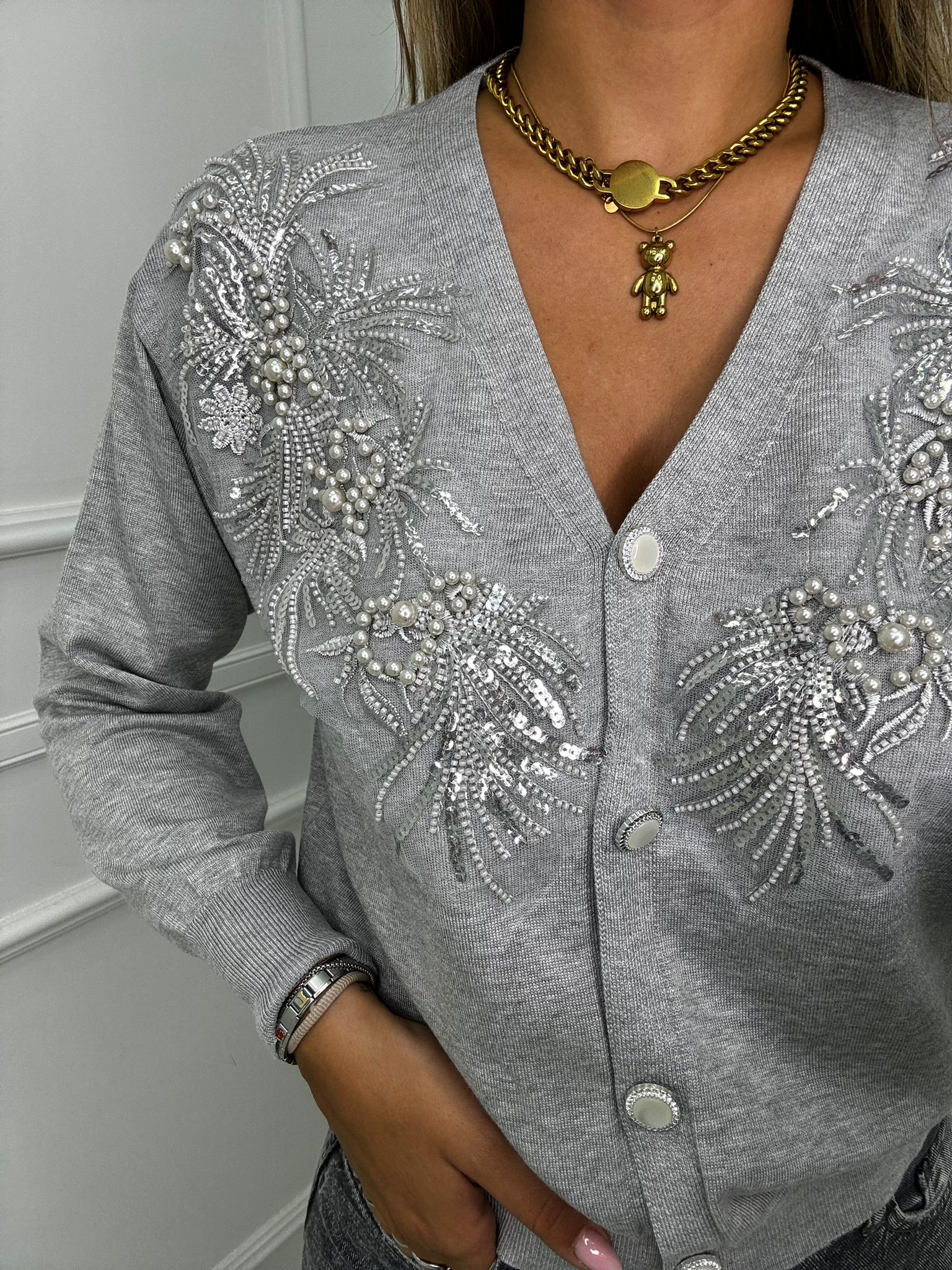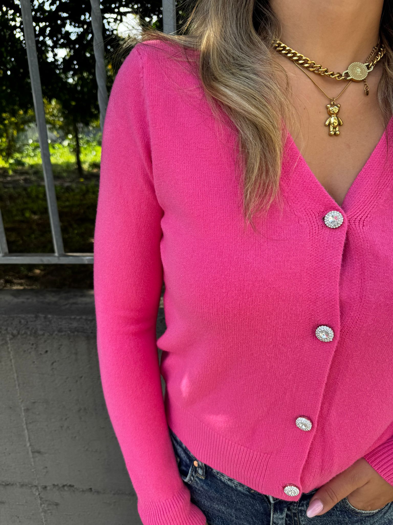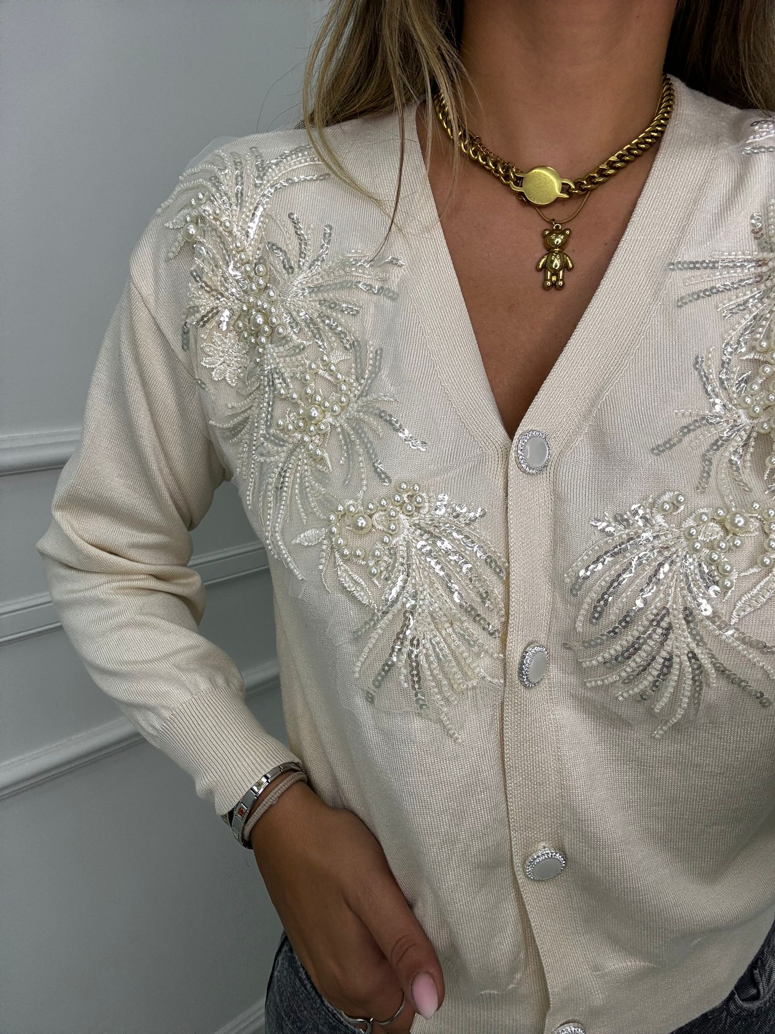 Cardigan tinta unita con applicazioni swarvoski tono su tono
