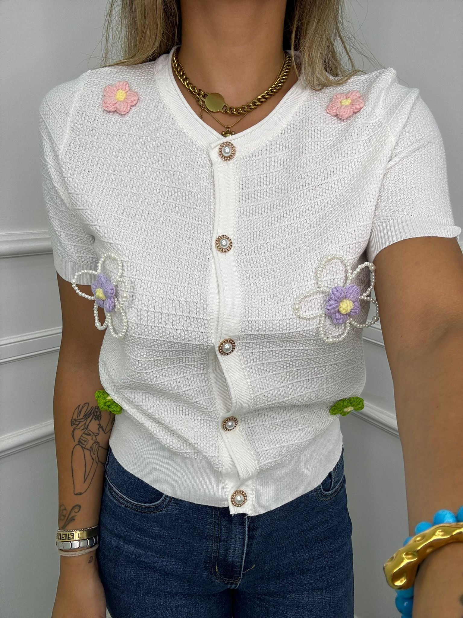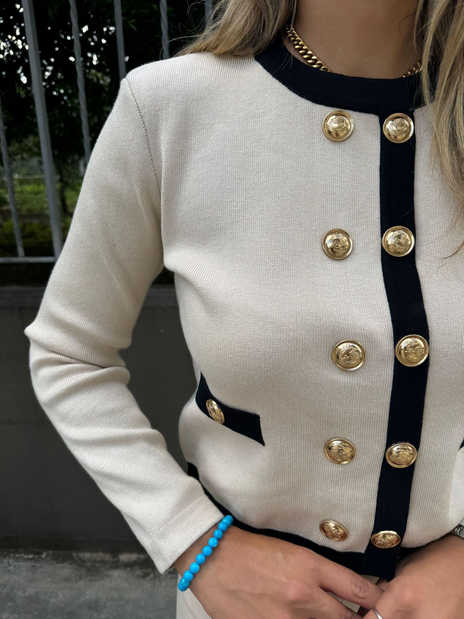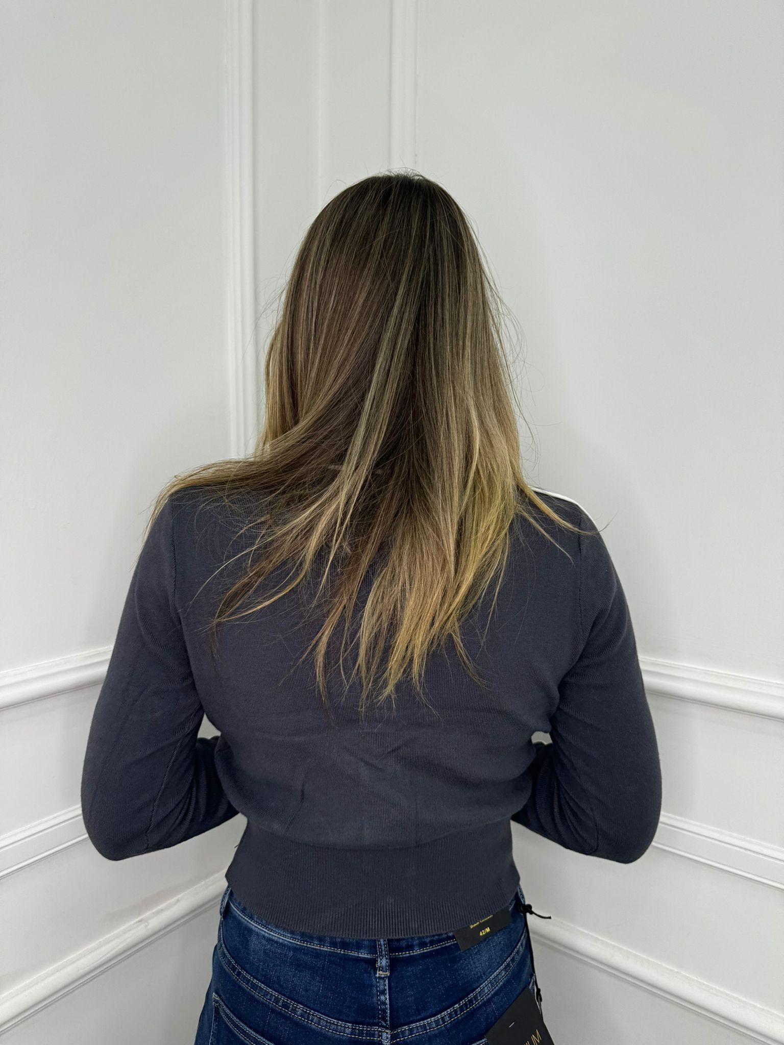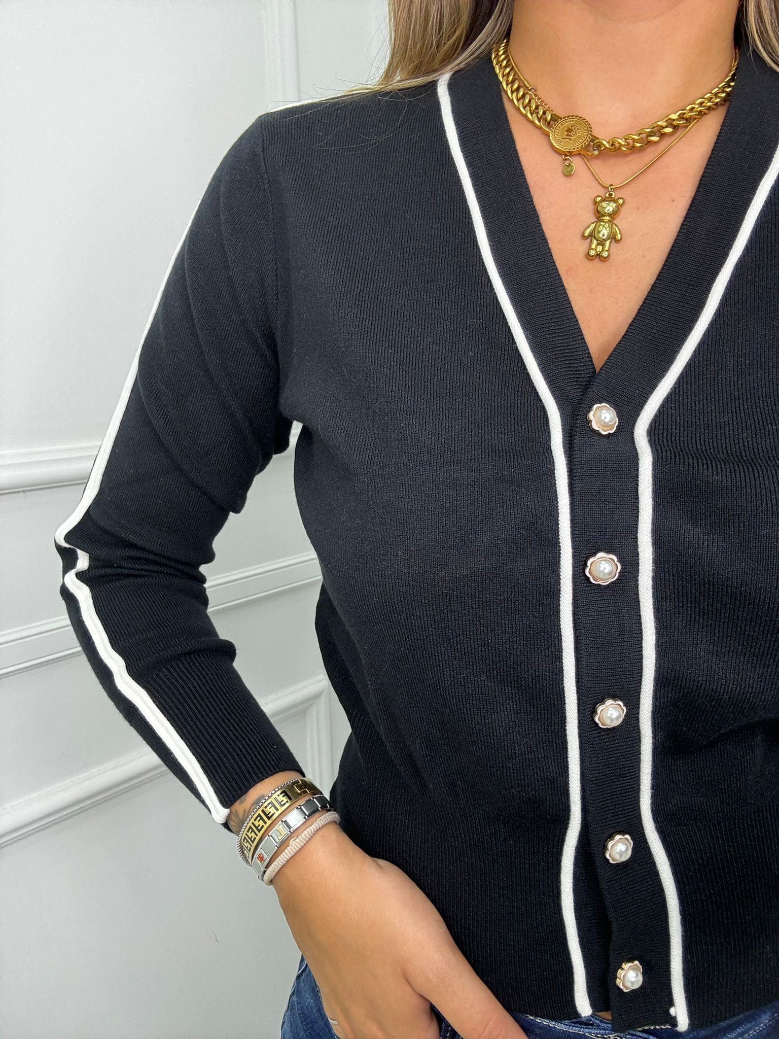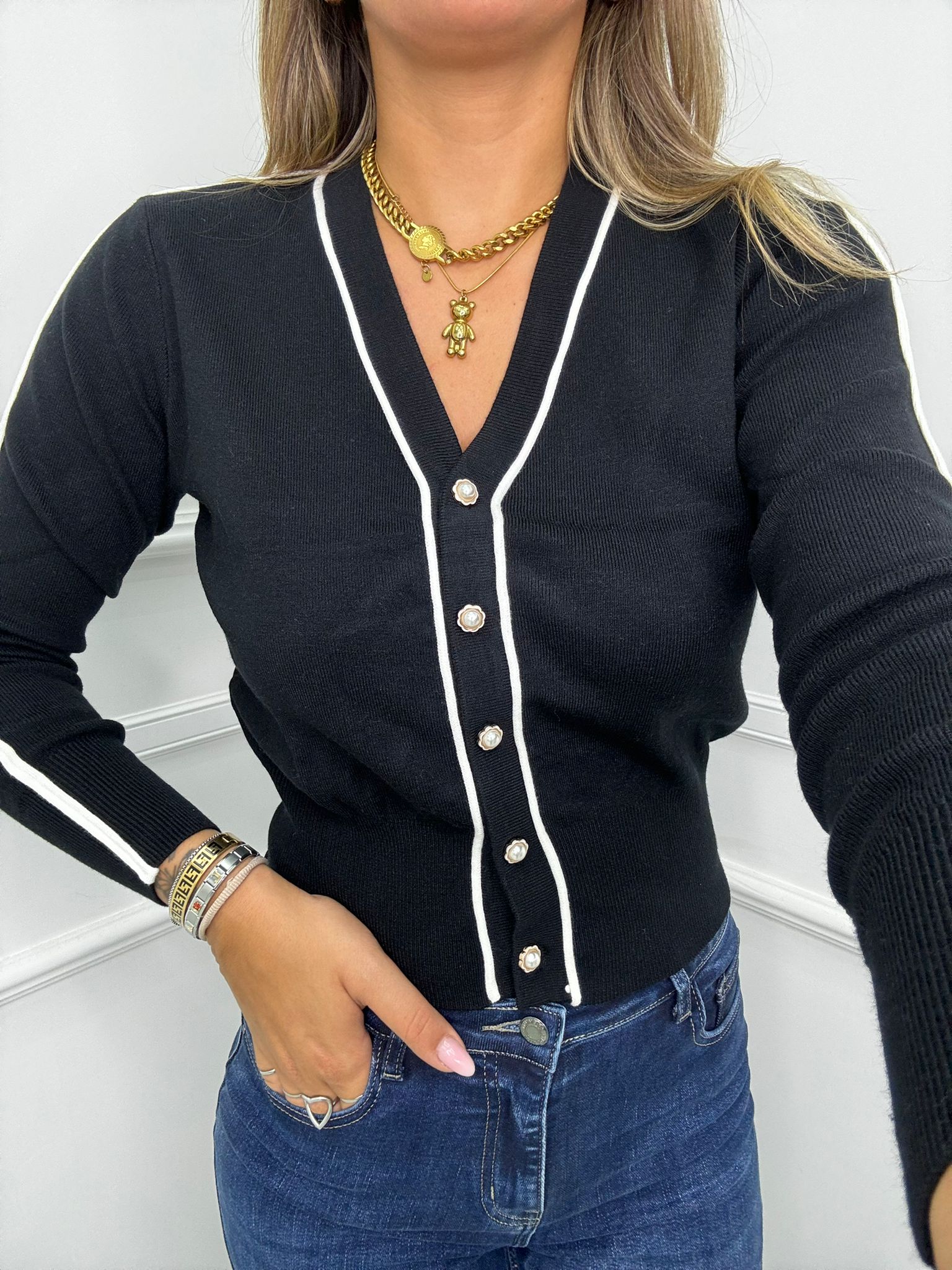 Cardigan tinta unita con applicazioni swarvoski tono su tono