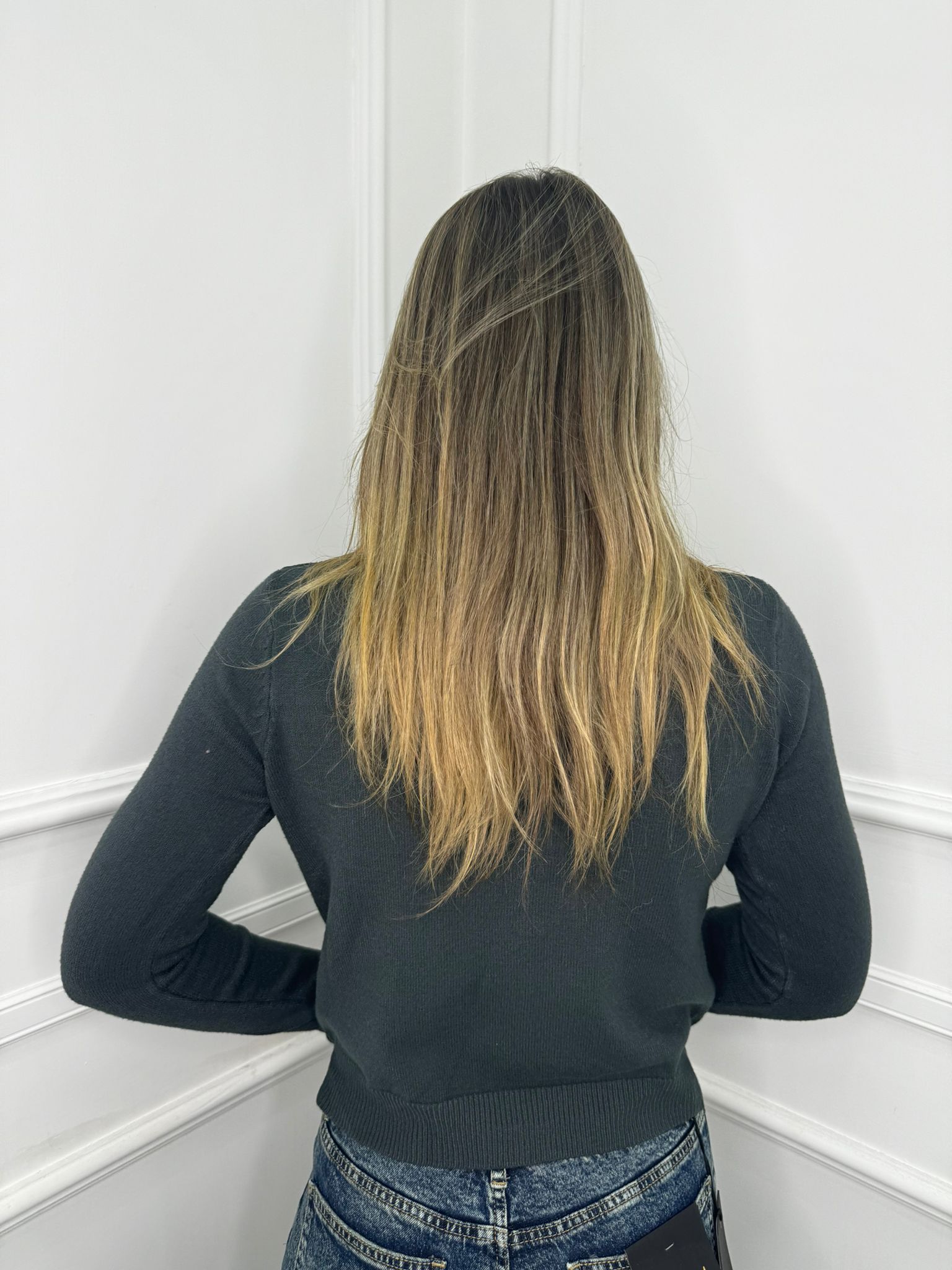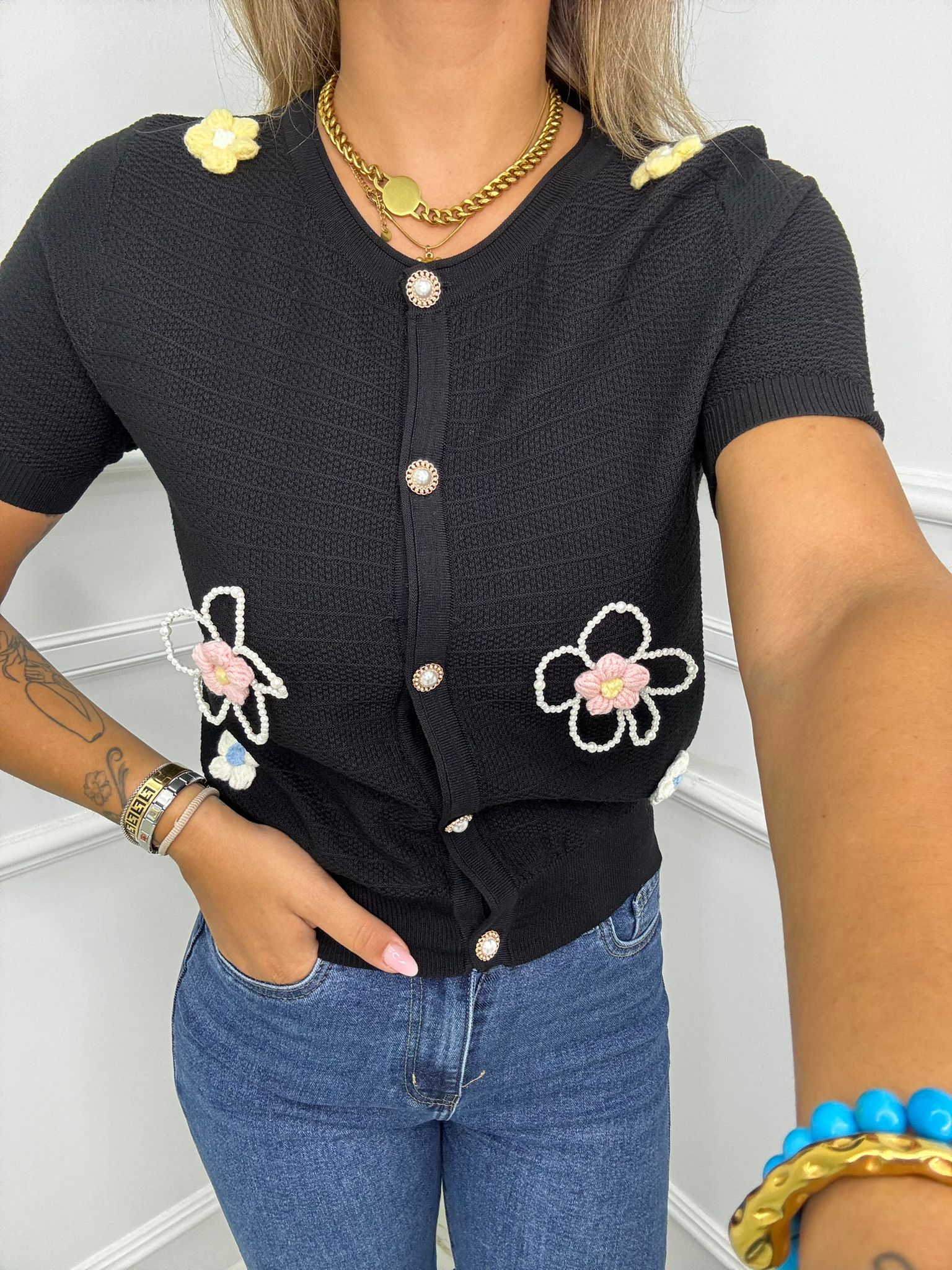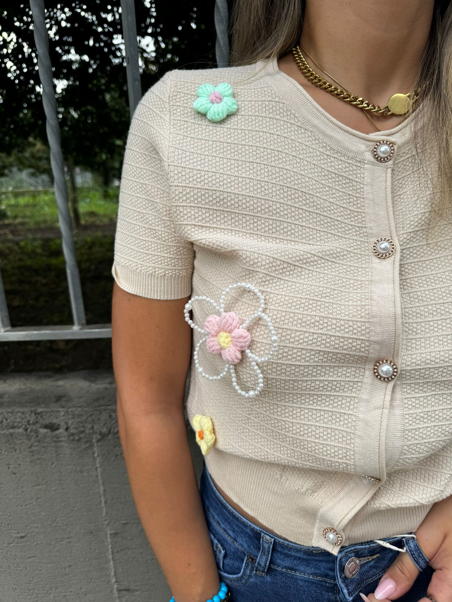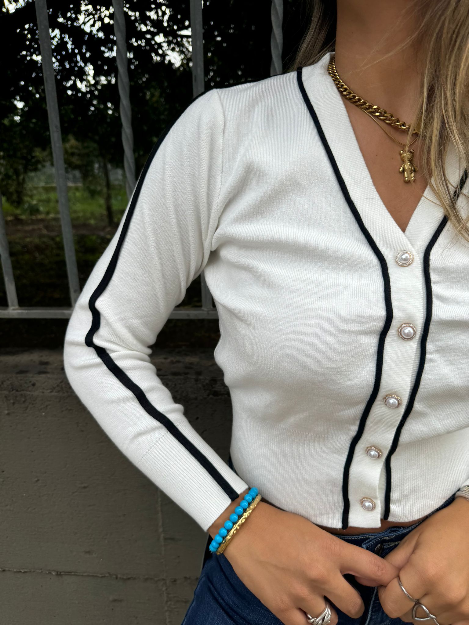 Cardigan tinta unita con applicazioni swarvoski tono su tono
