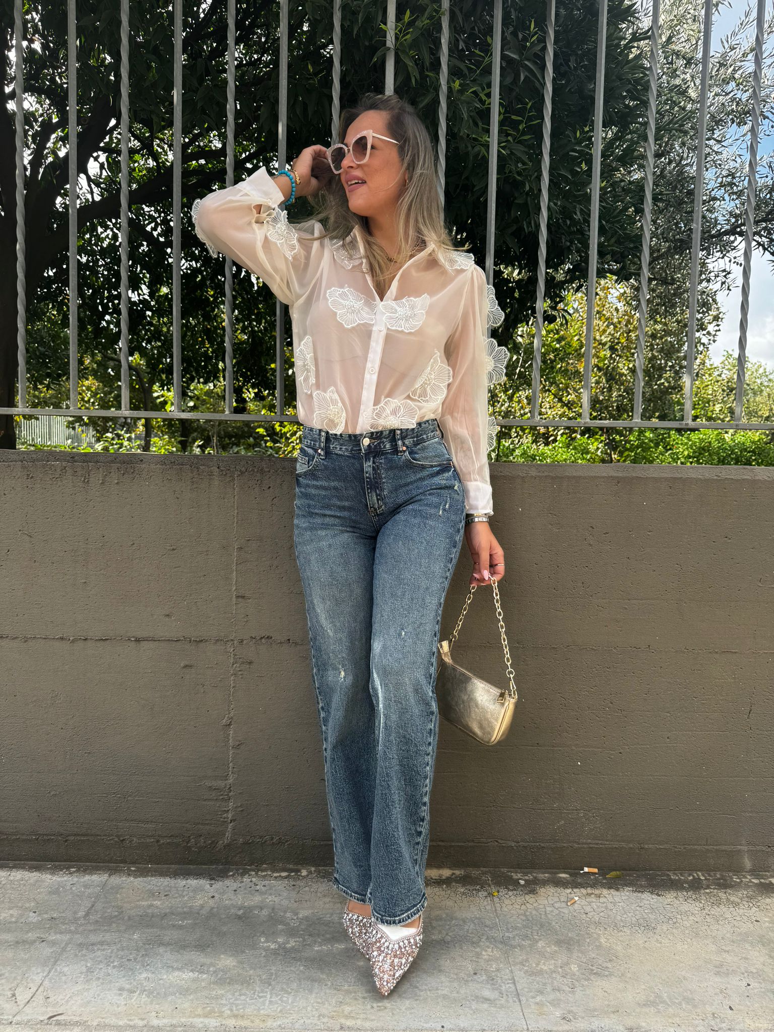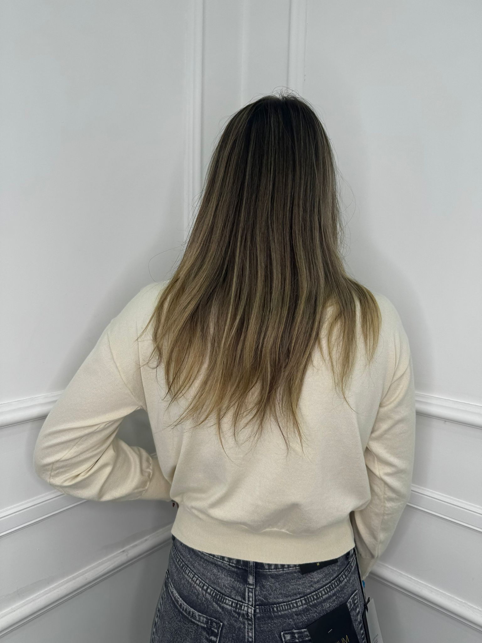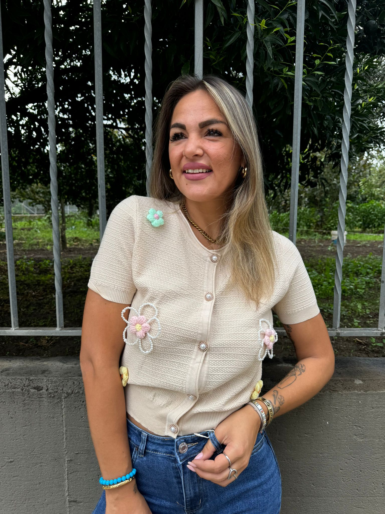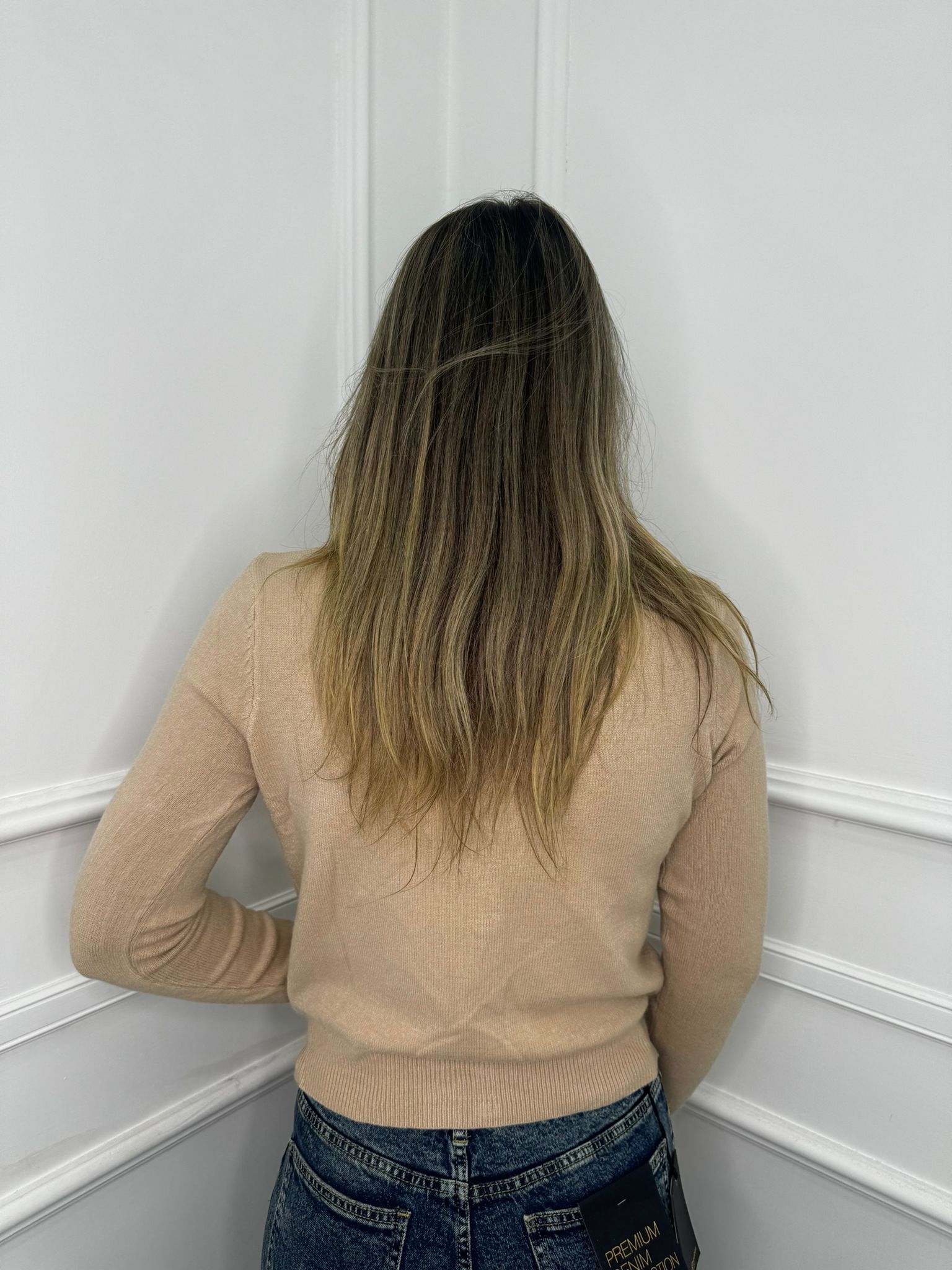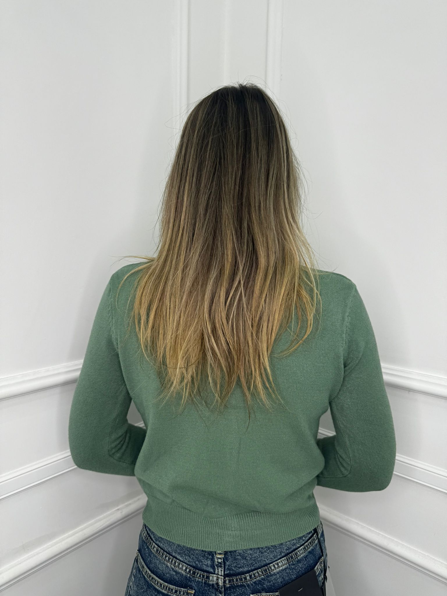 Cardigan tinta unita con applicazioni swarvoski tono su tono