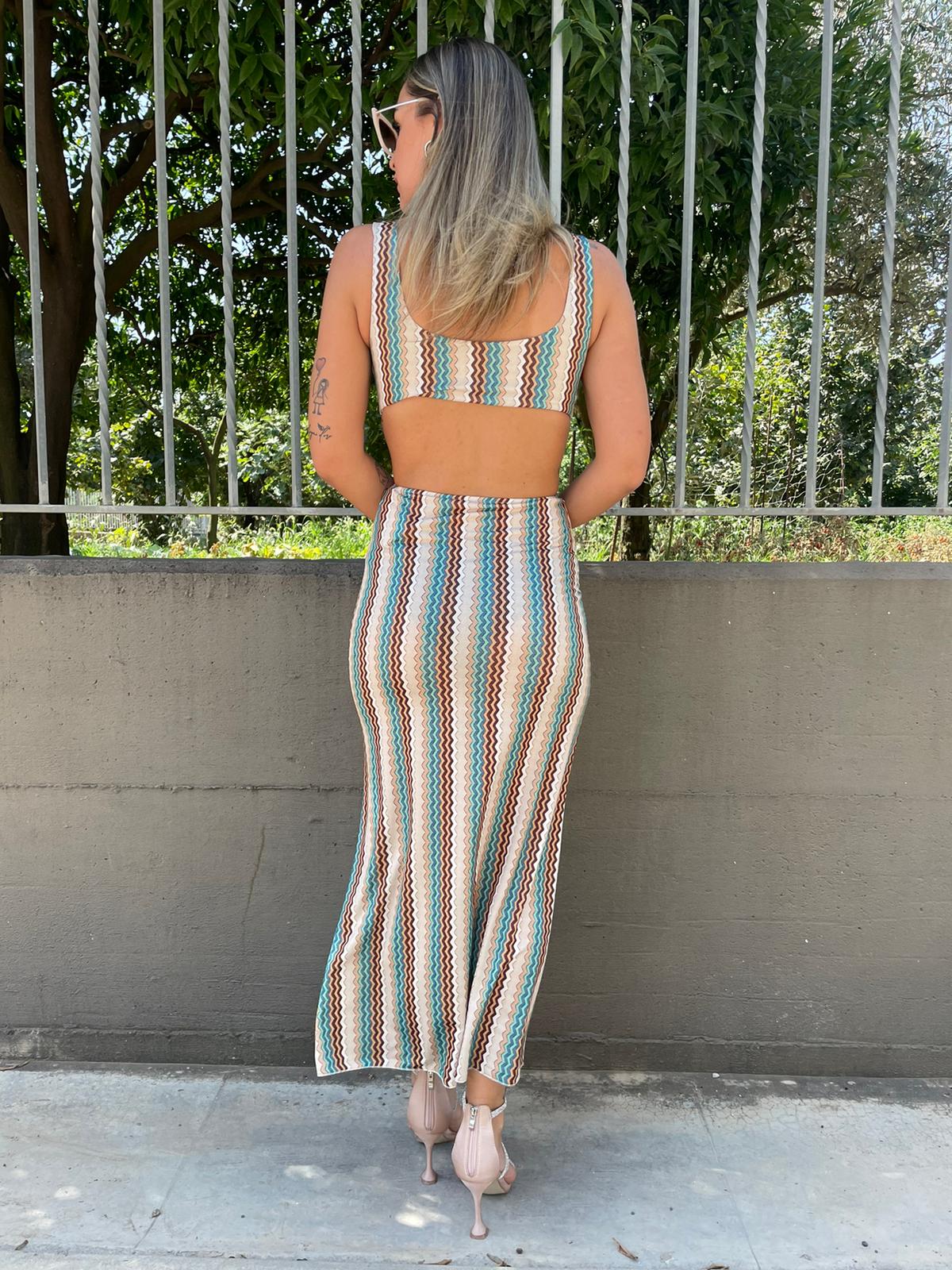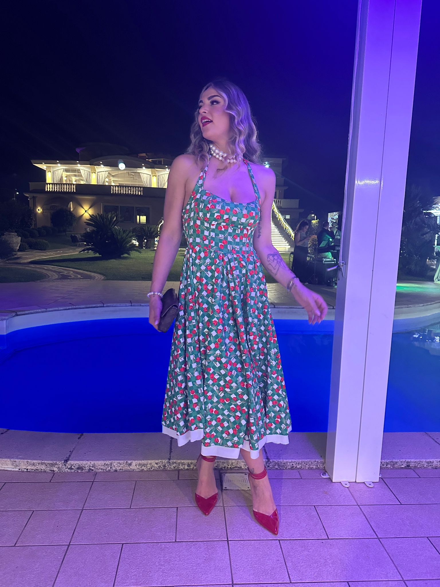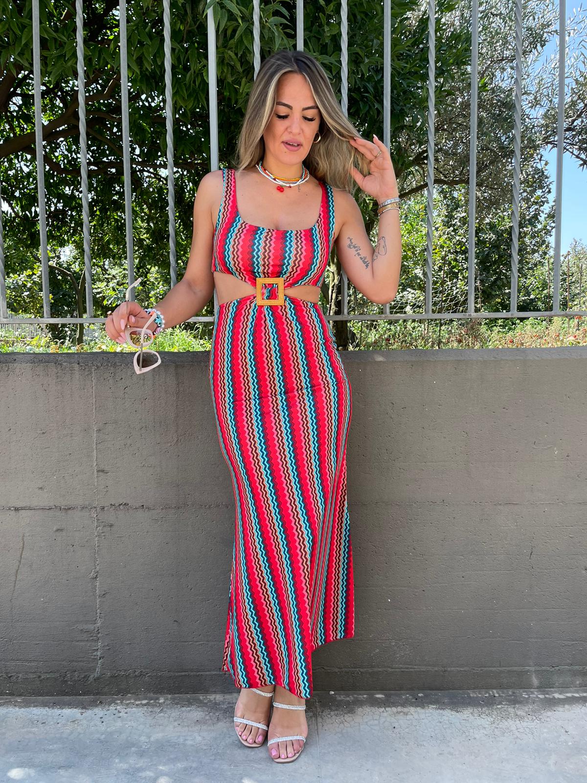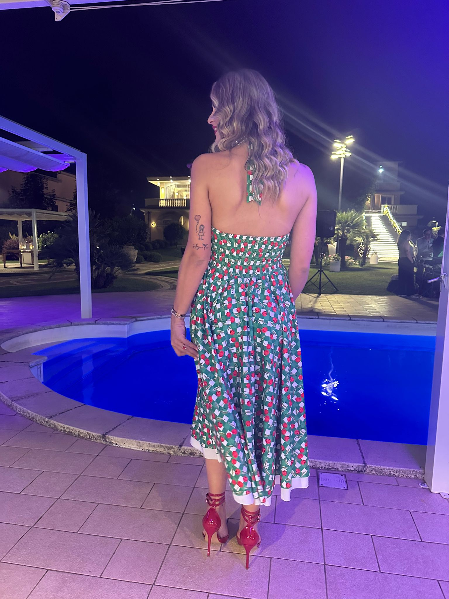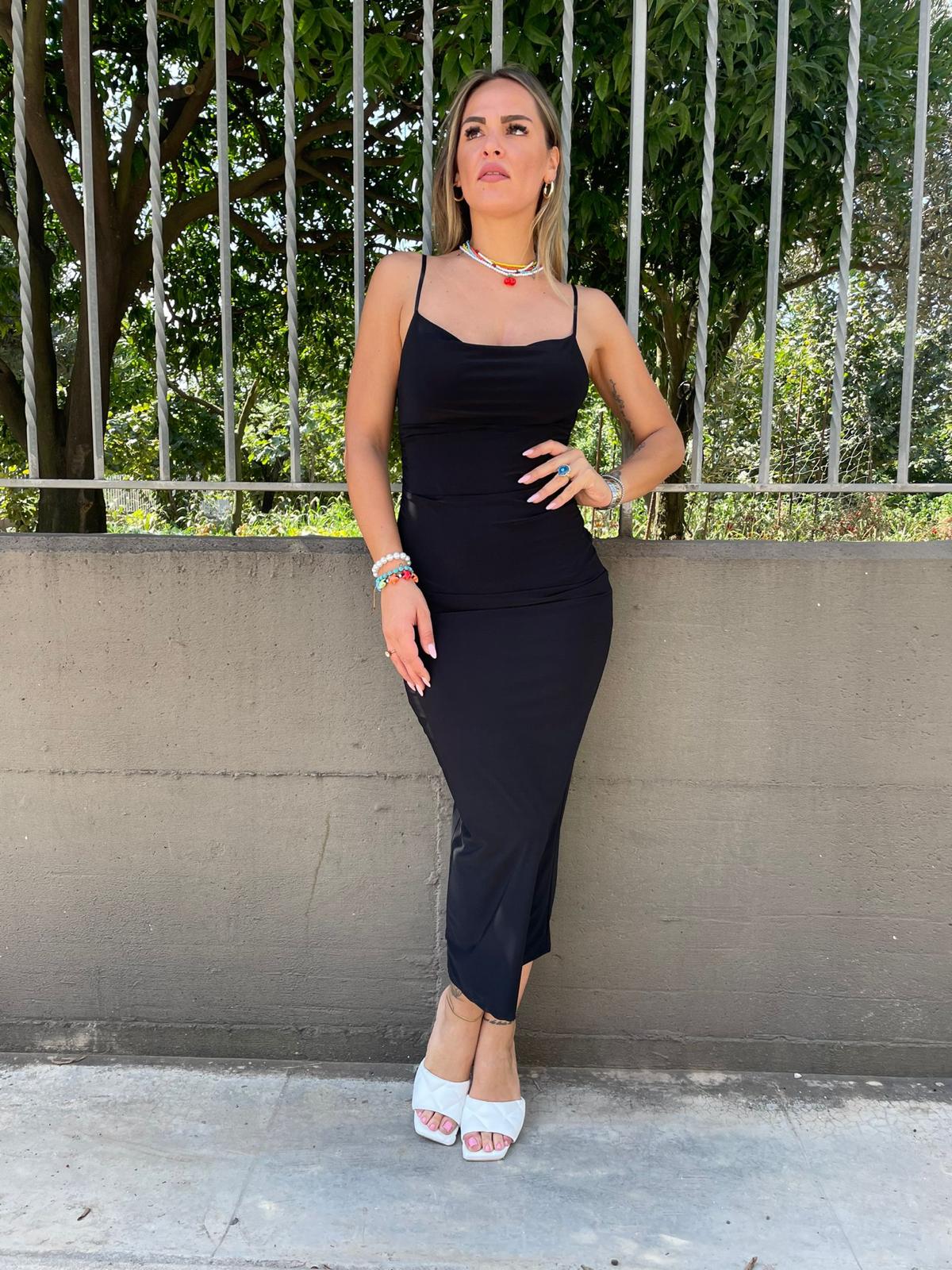 Vestito lungo in lycra con scollo morbido e schiena scoperta