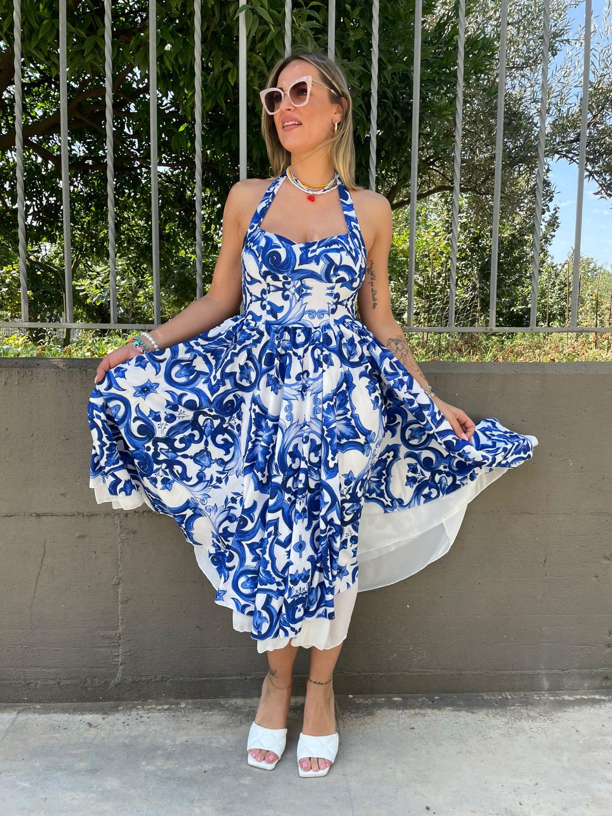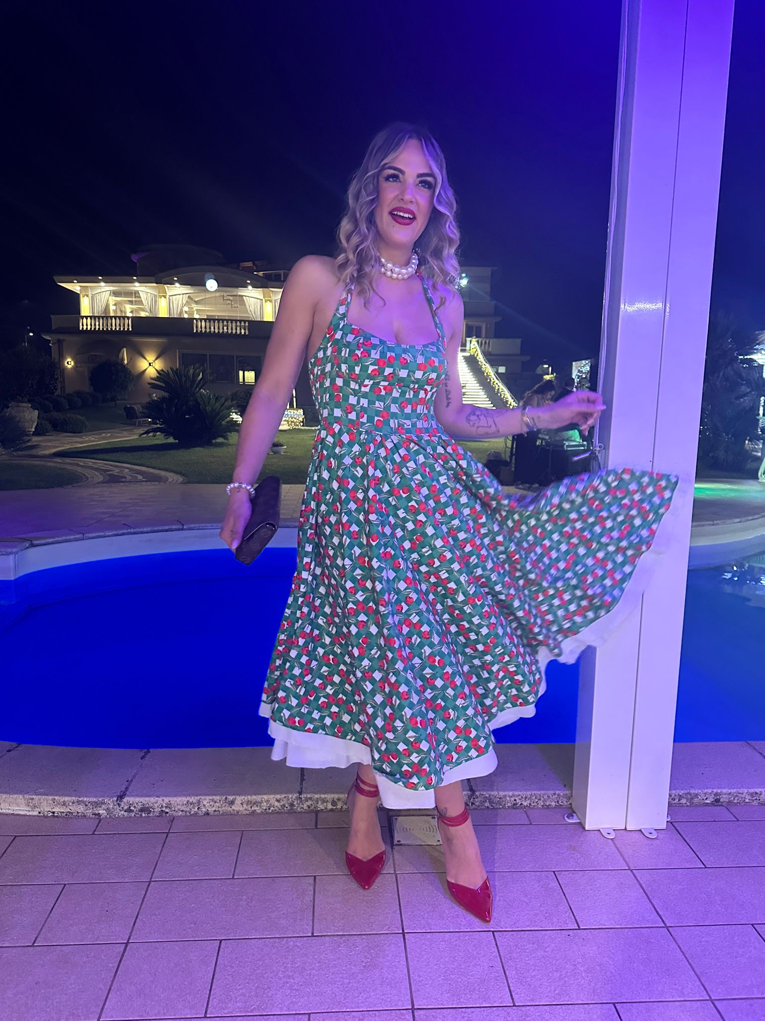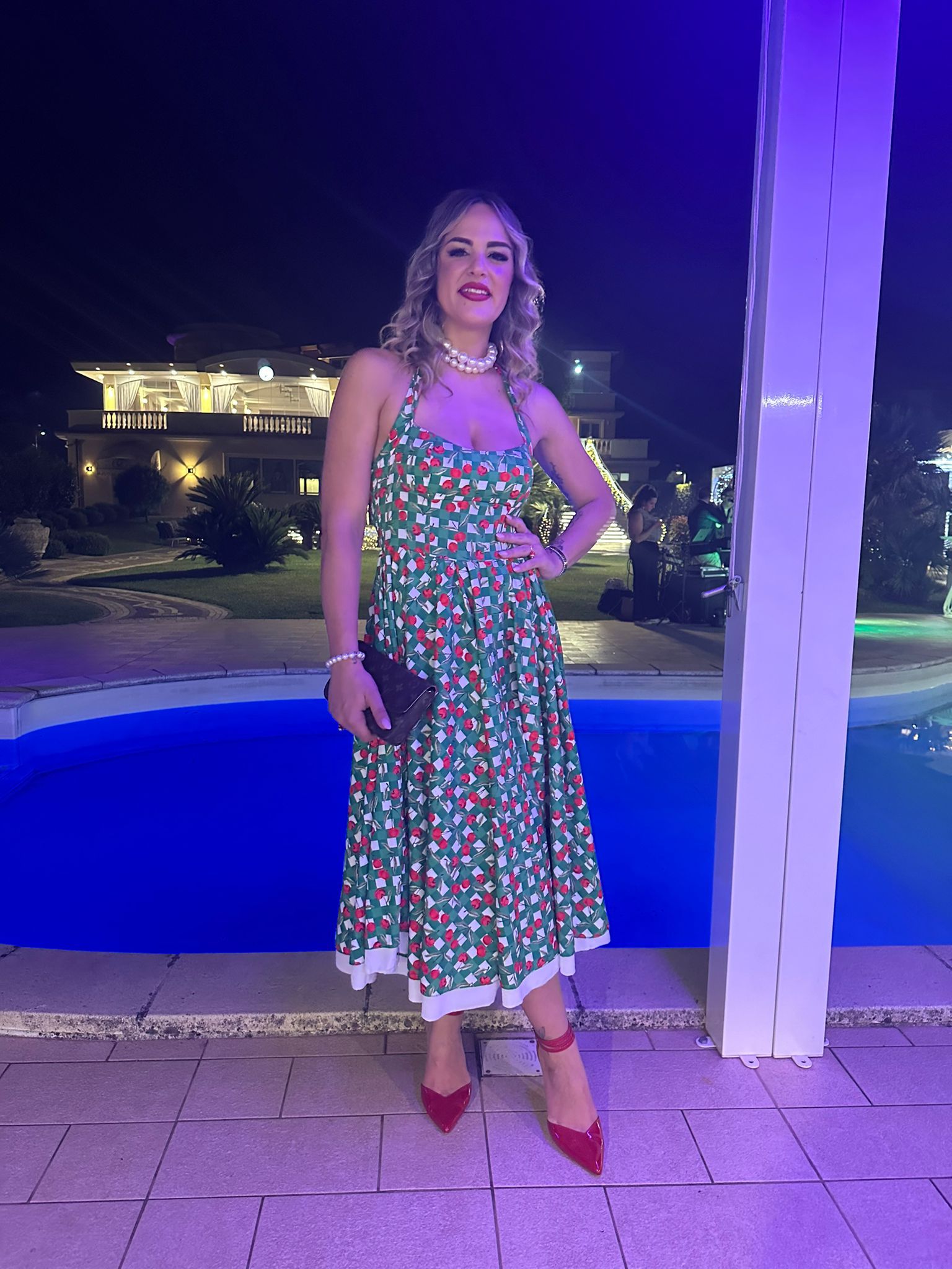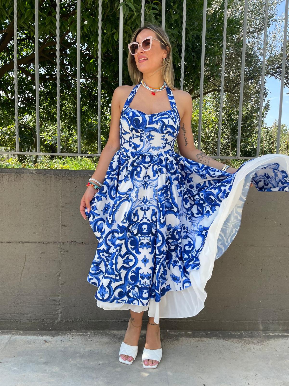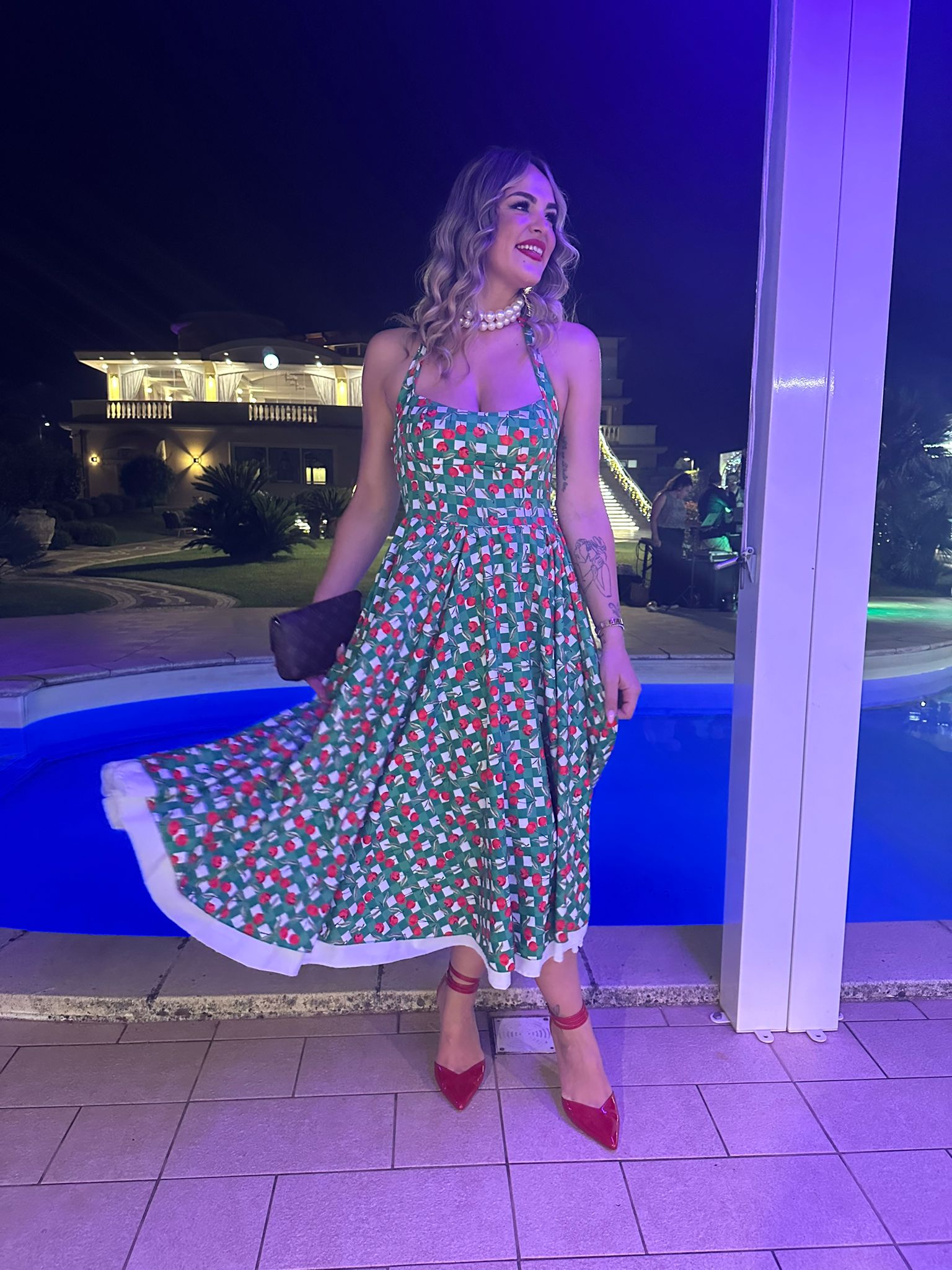Vestito lungo in lycra con scollo morbido e schiena scoperta