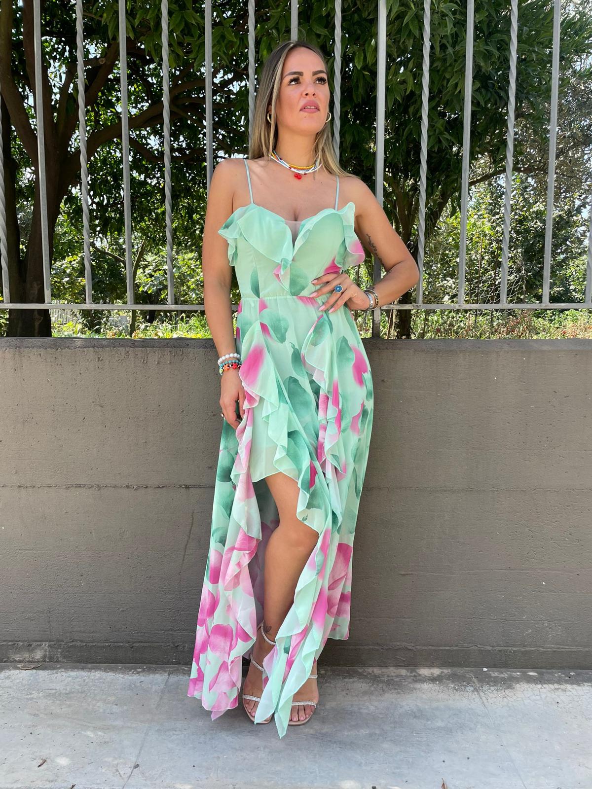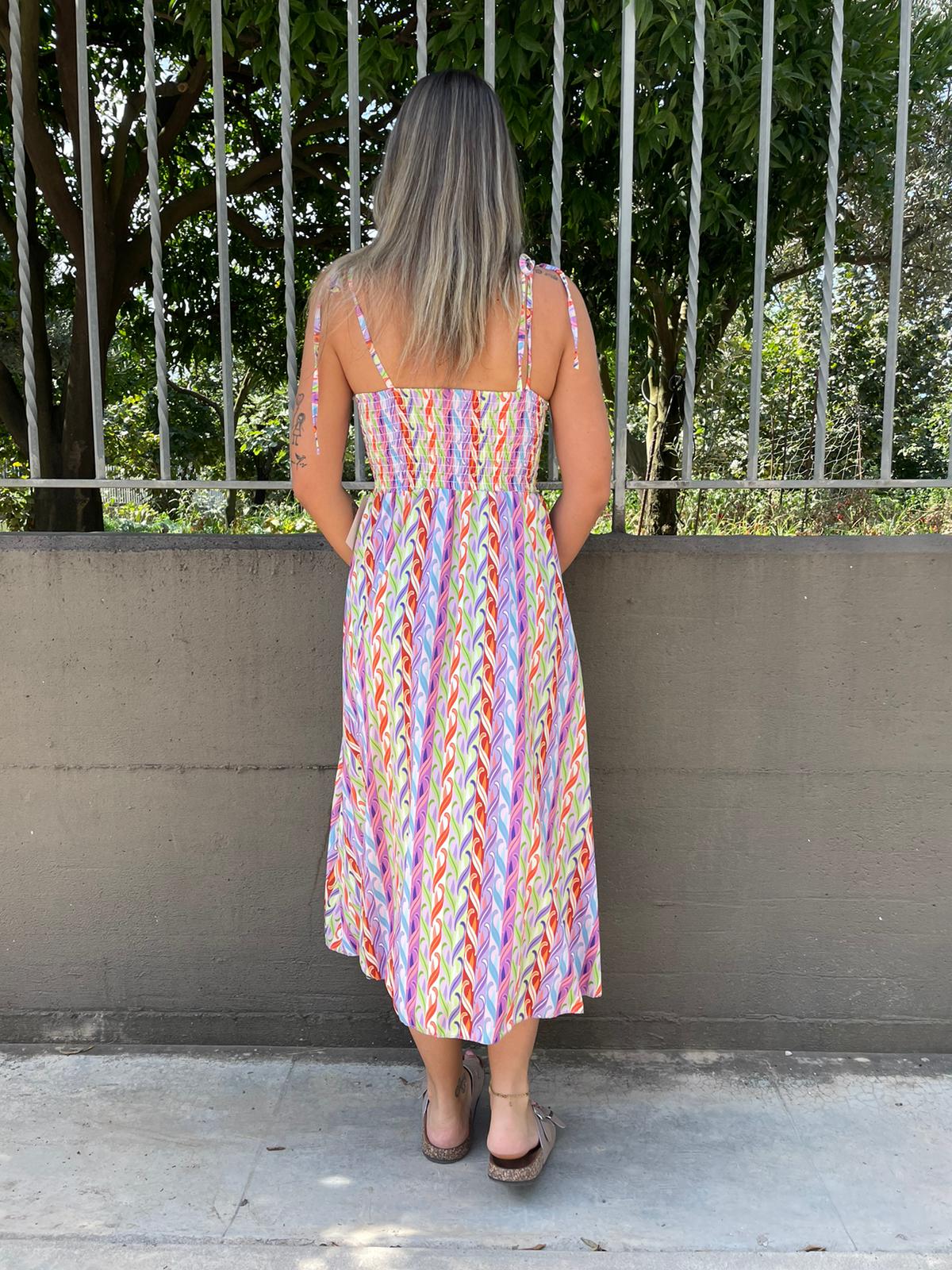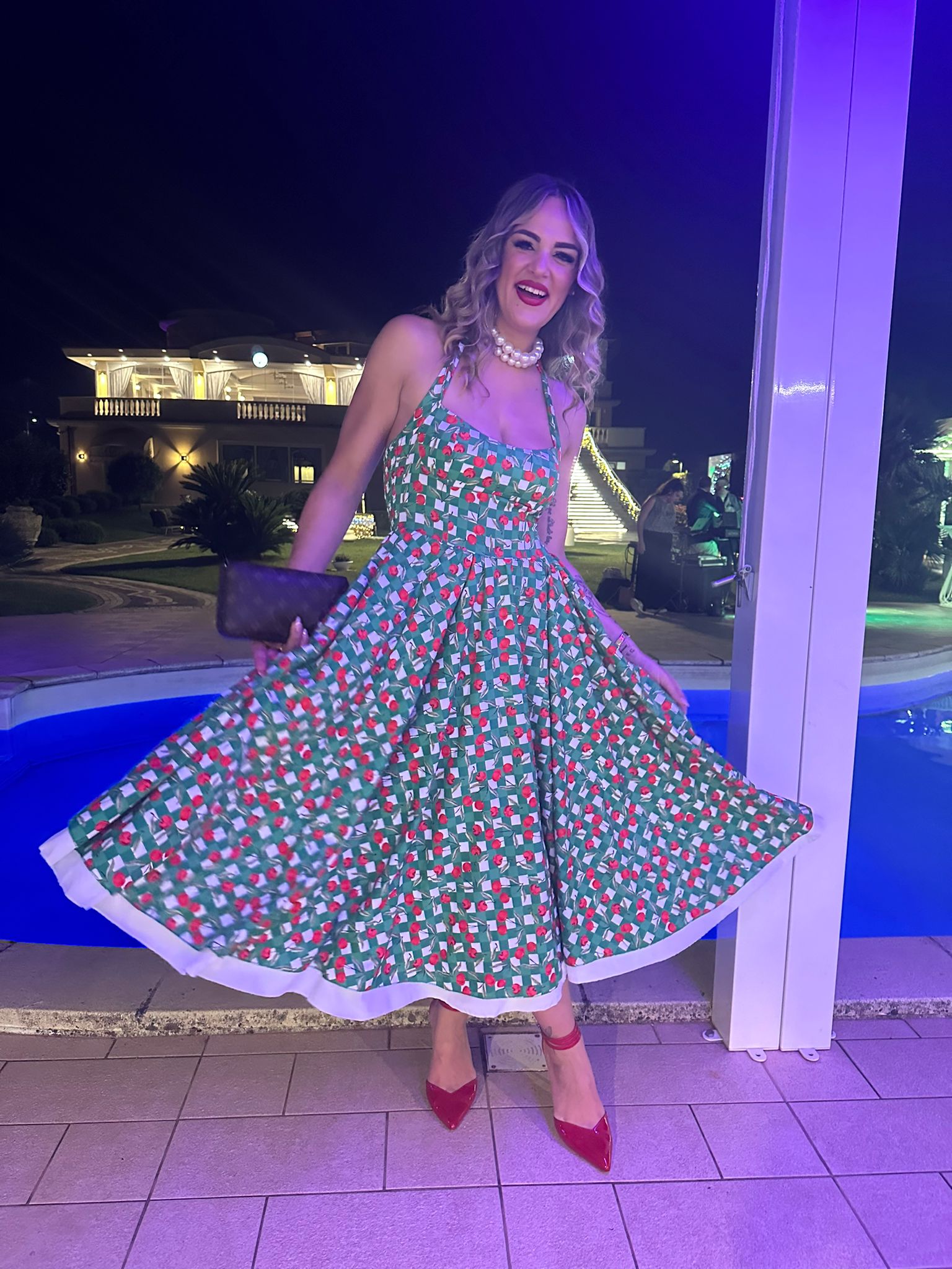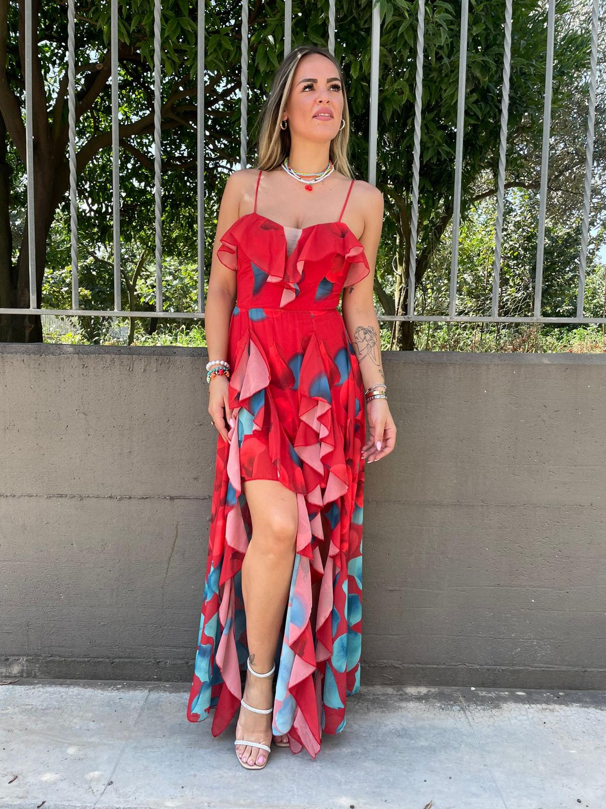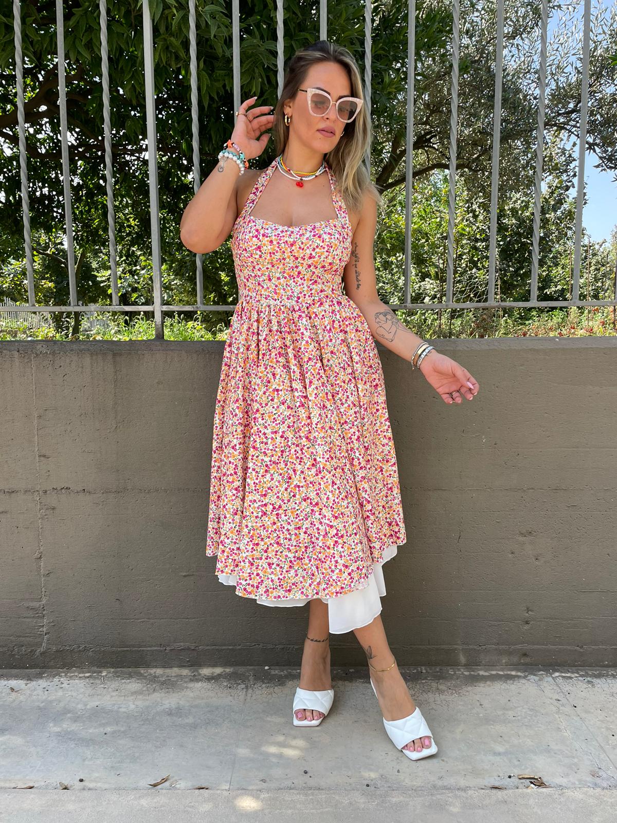Vestito lungo in lycra con scollo morbido e schiena scoperta
