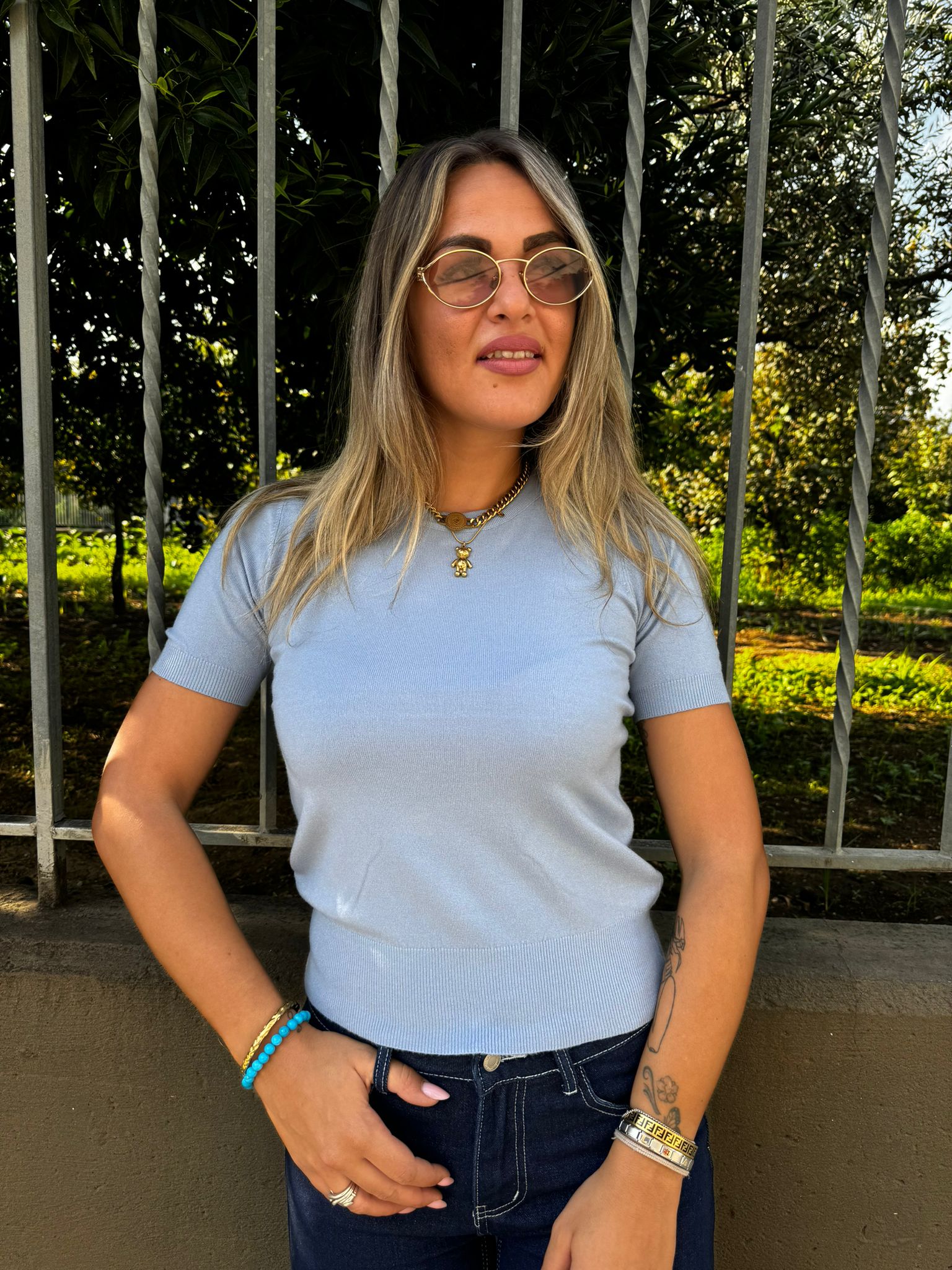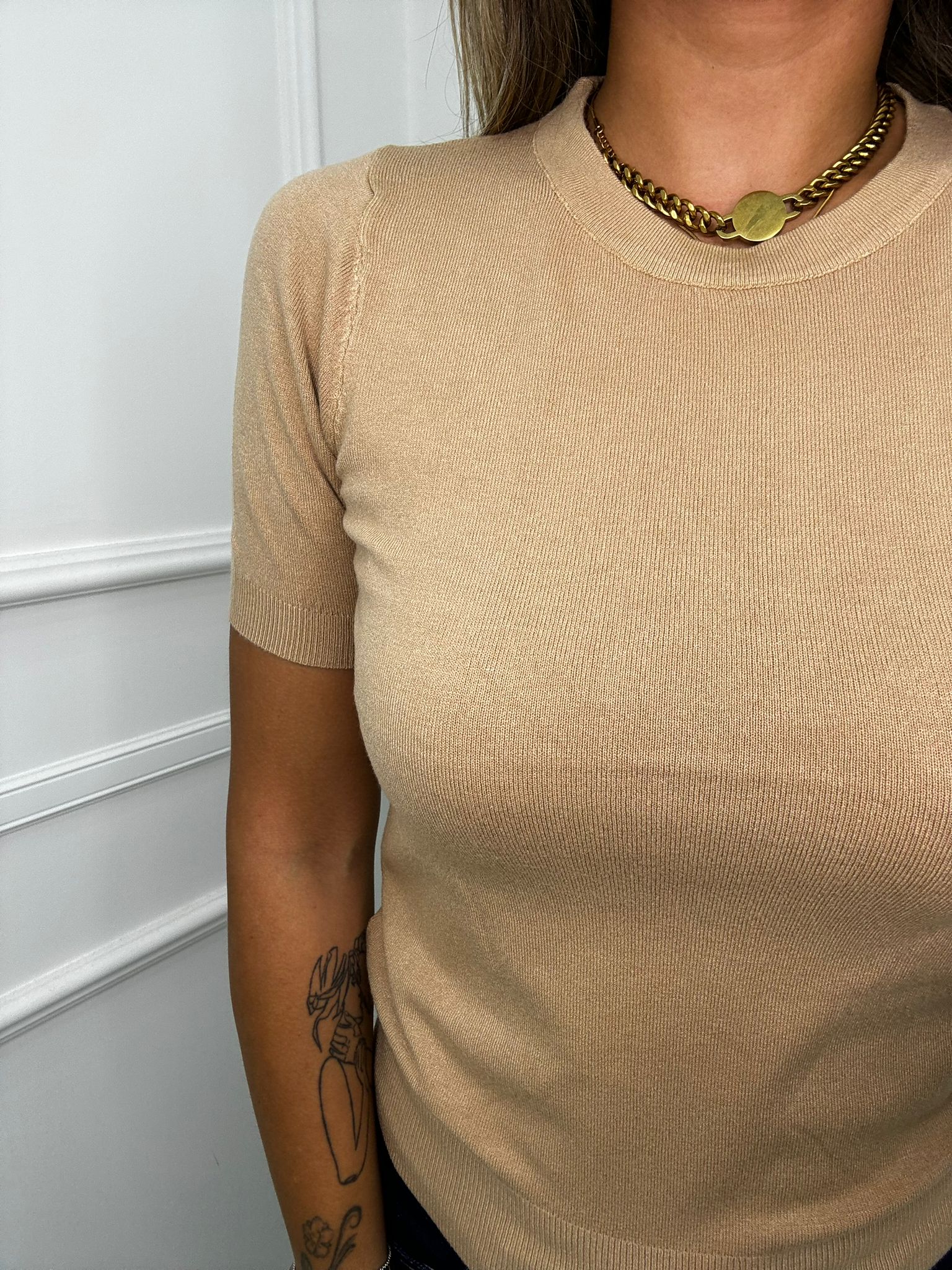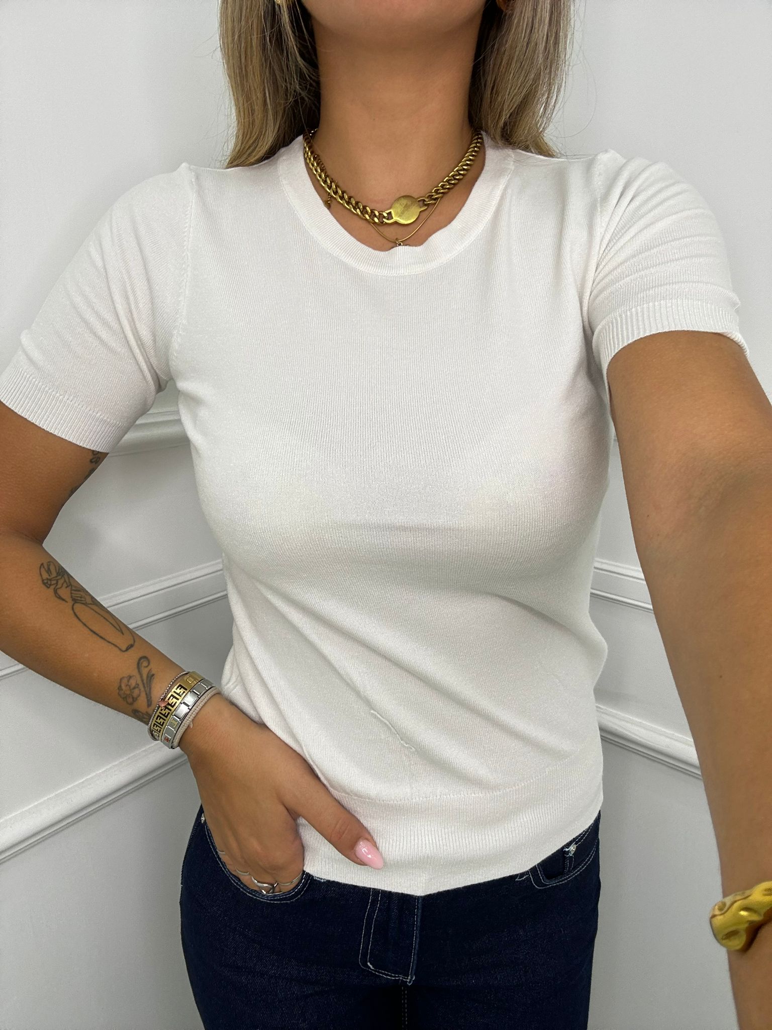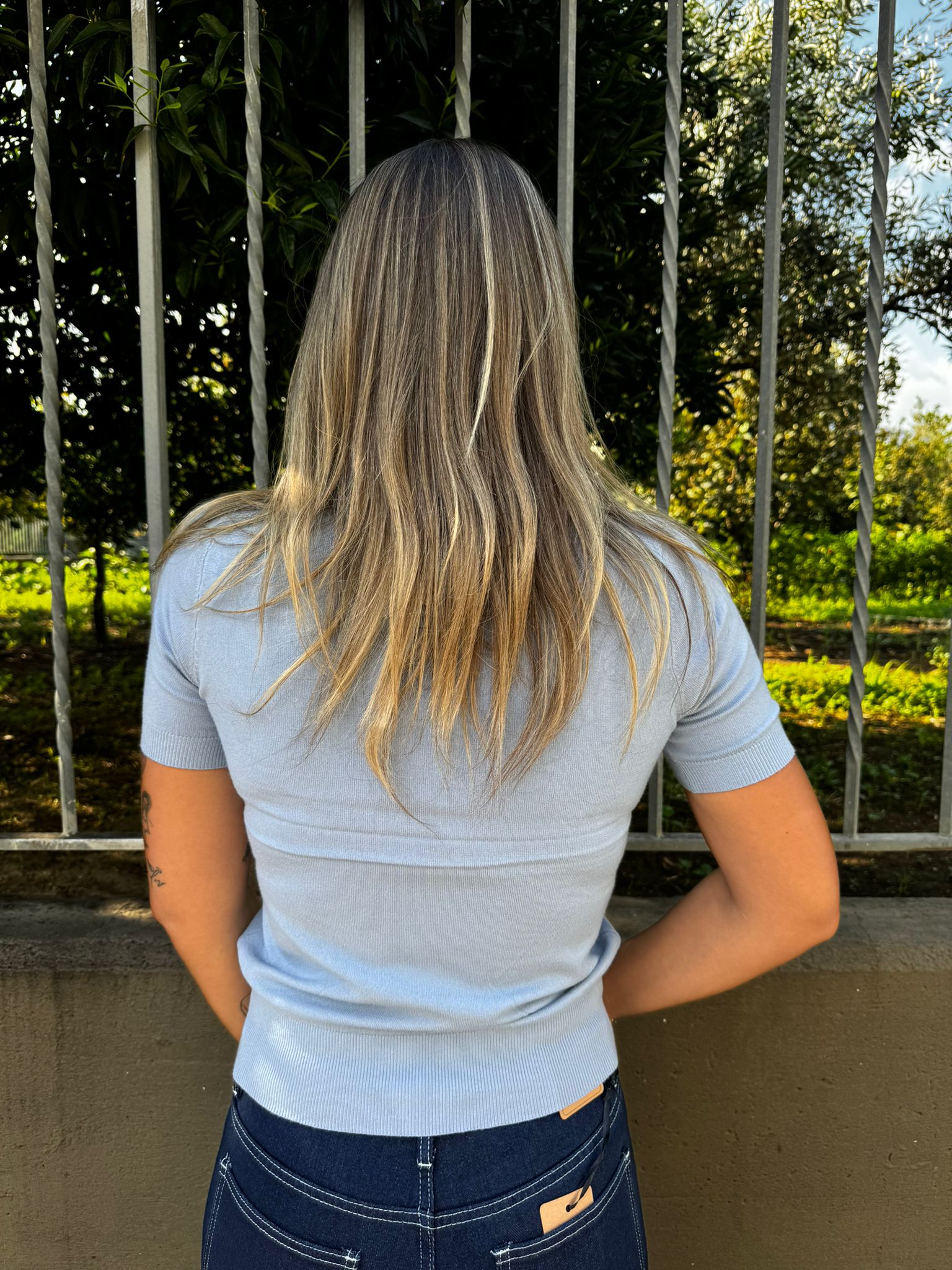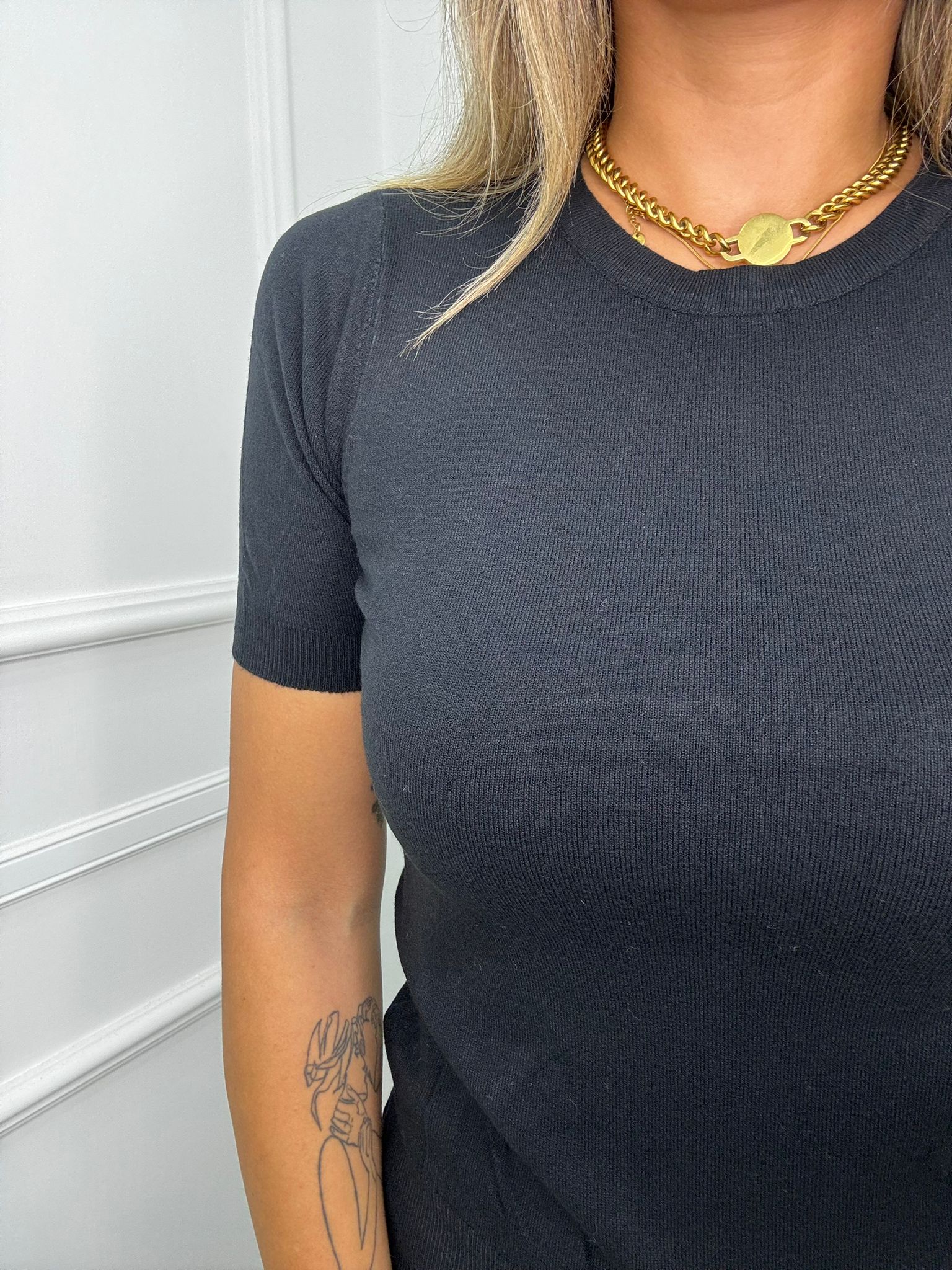 Maglia in simil lana mezza manica con bottoni oro dietro