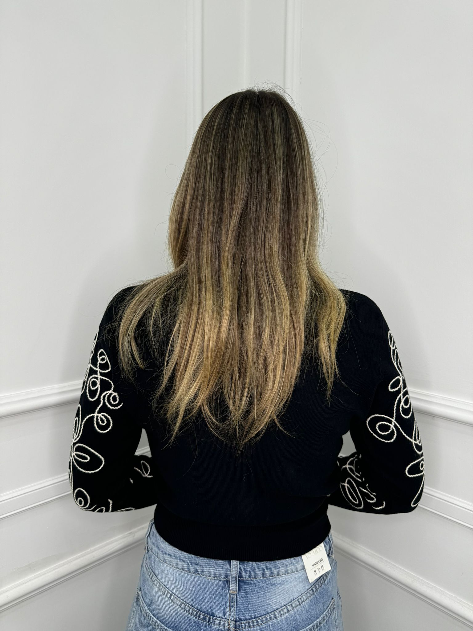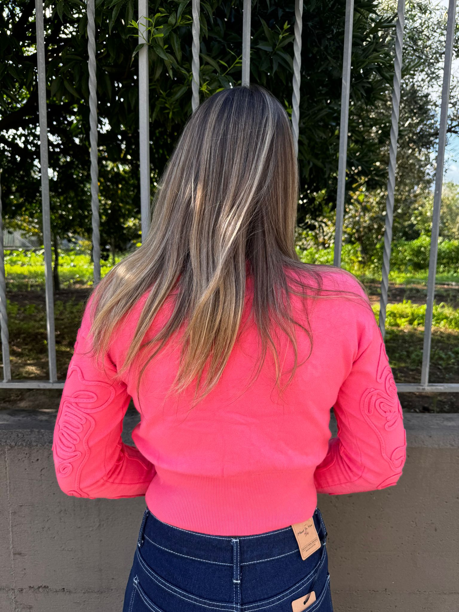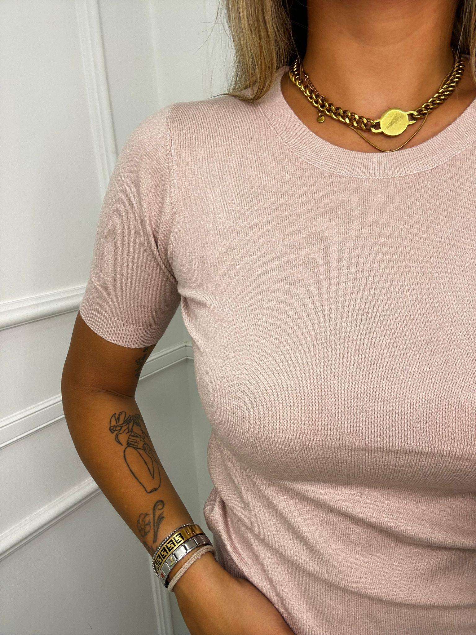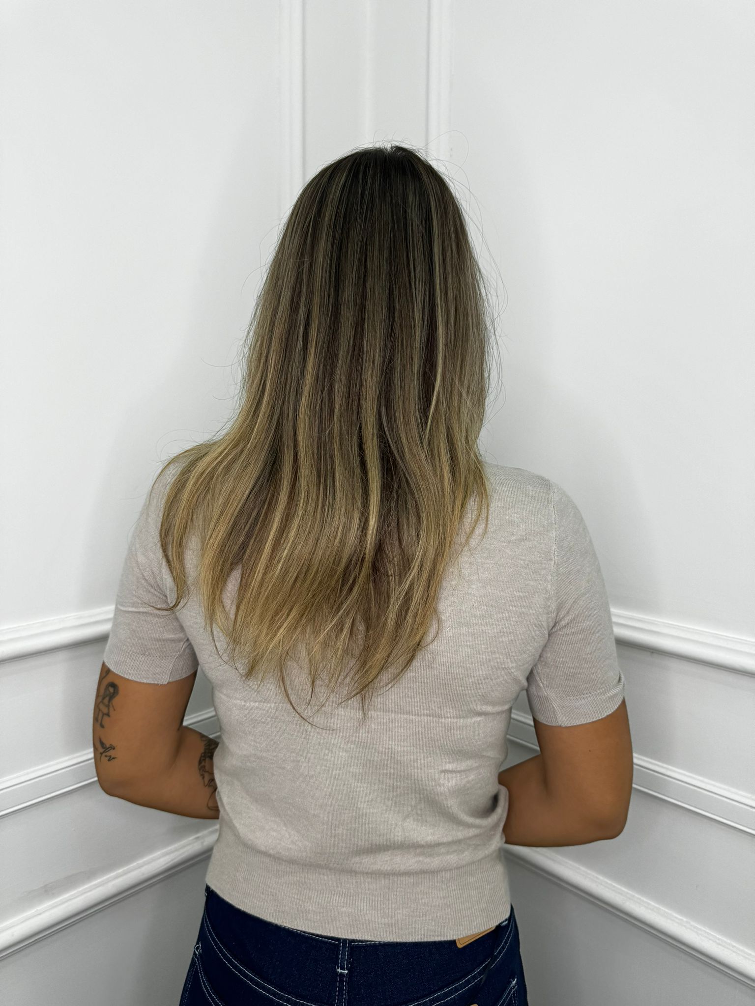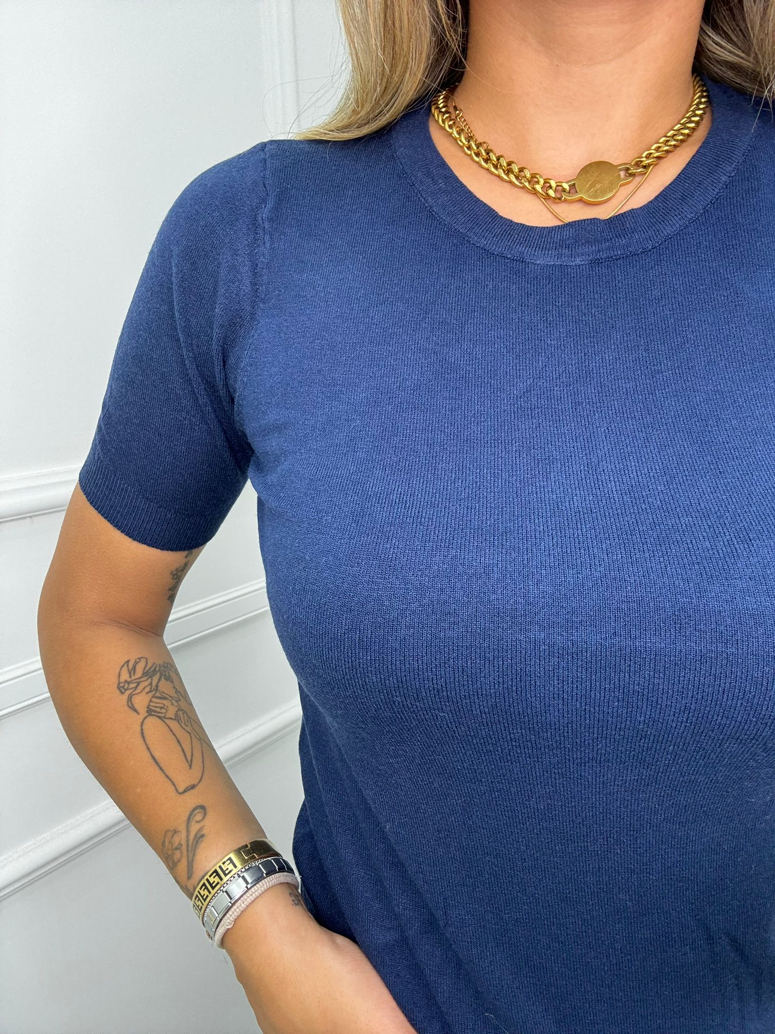 Maglia in simil lana mezza manica con bottoni oro dietro