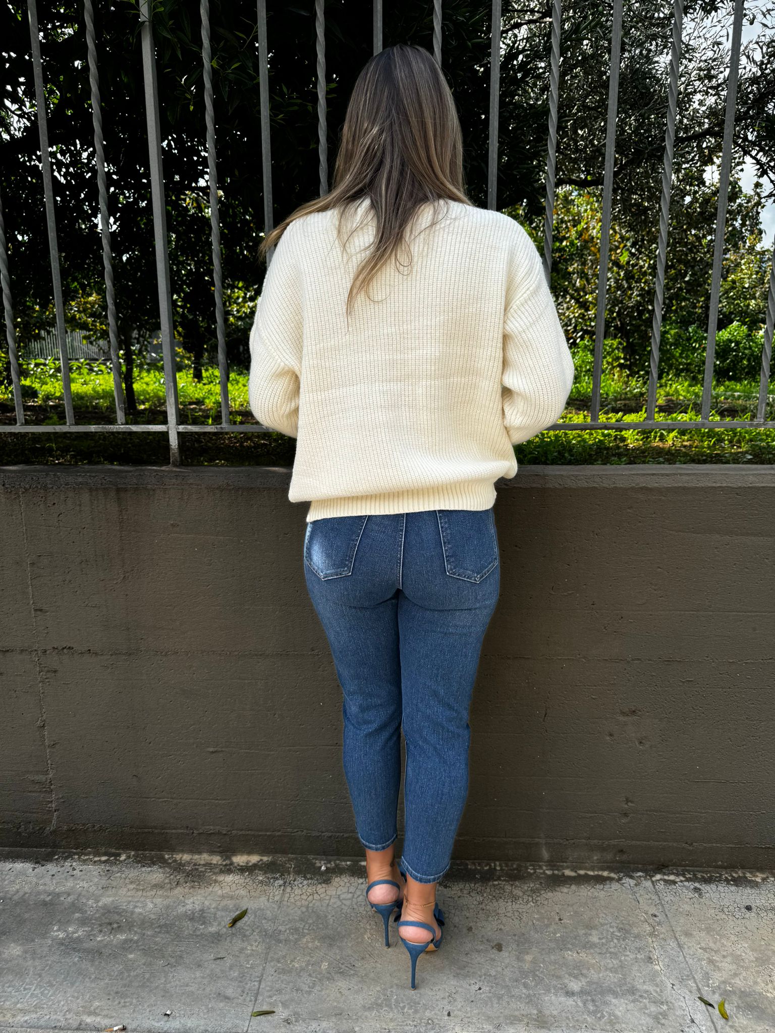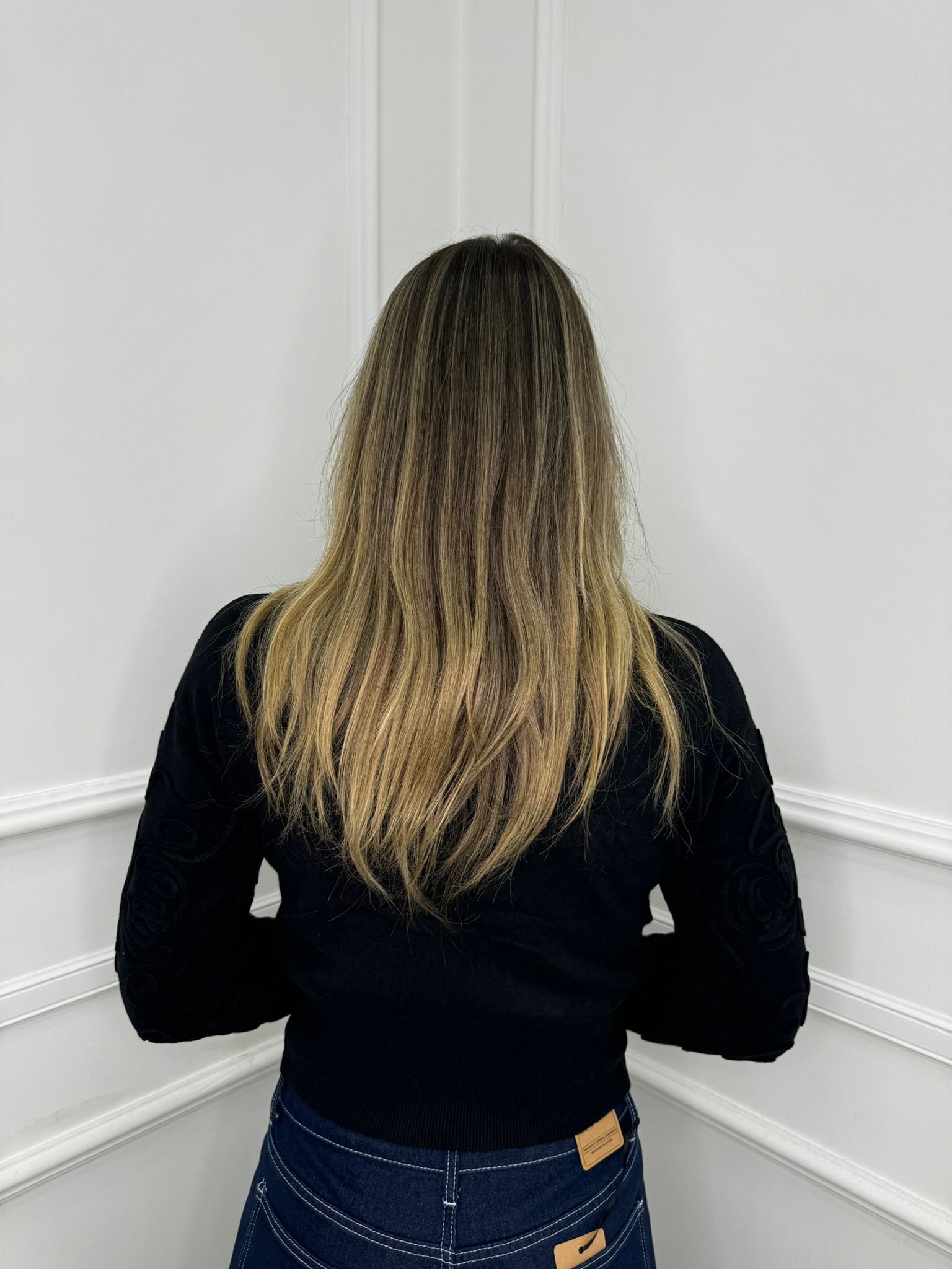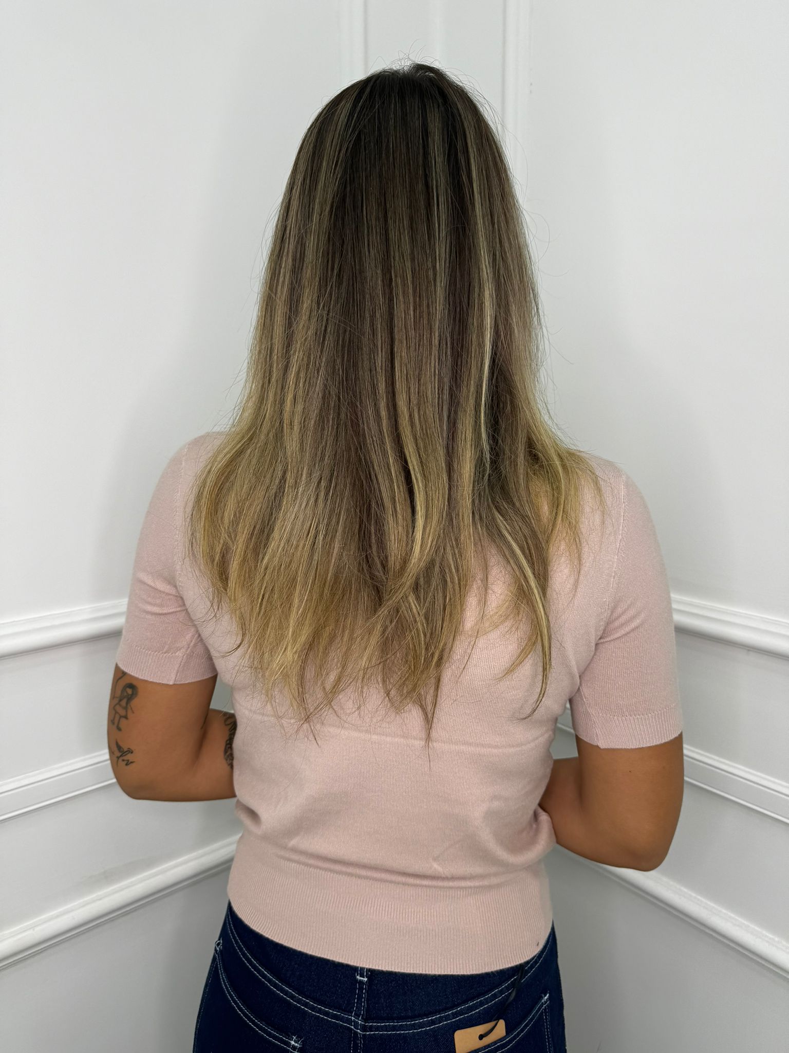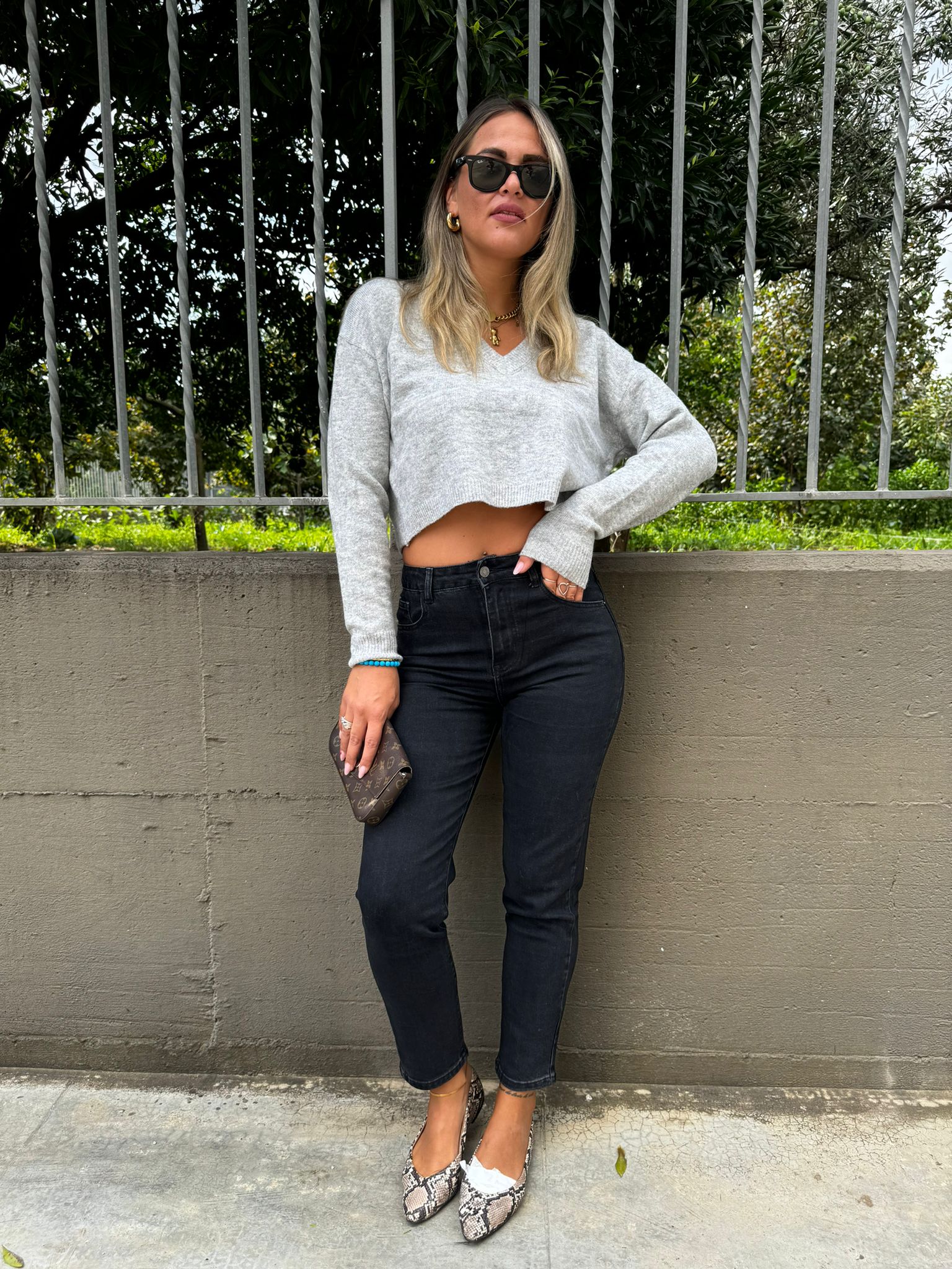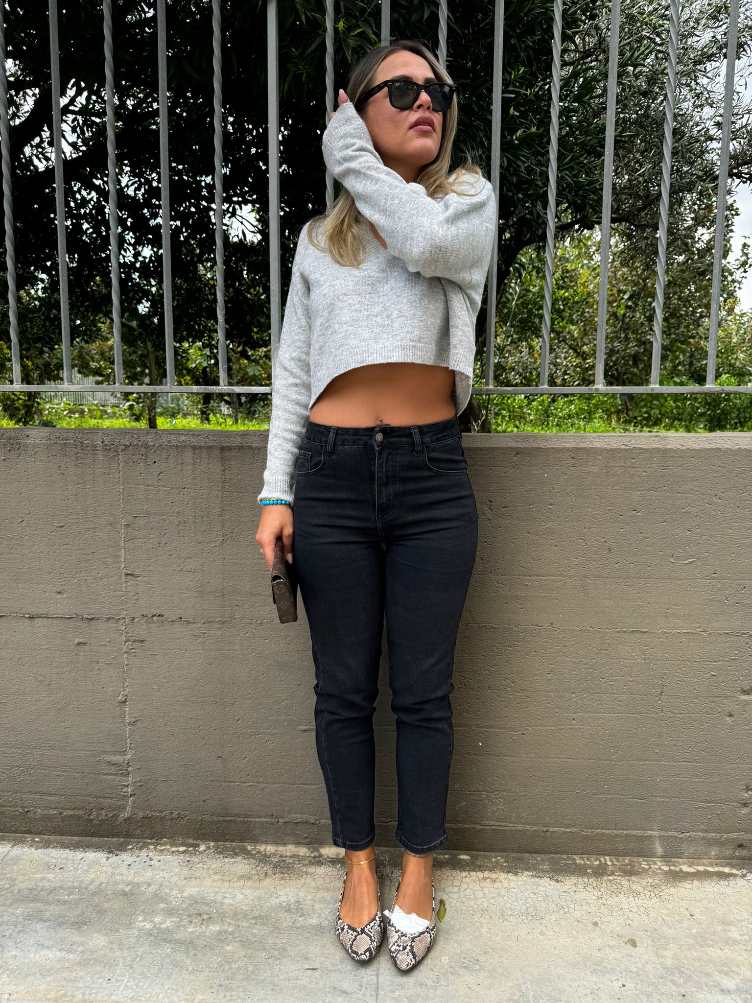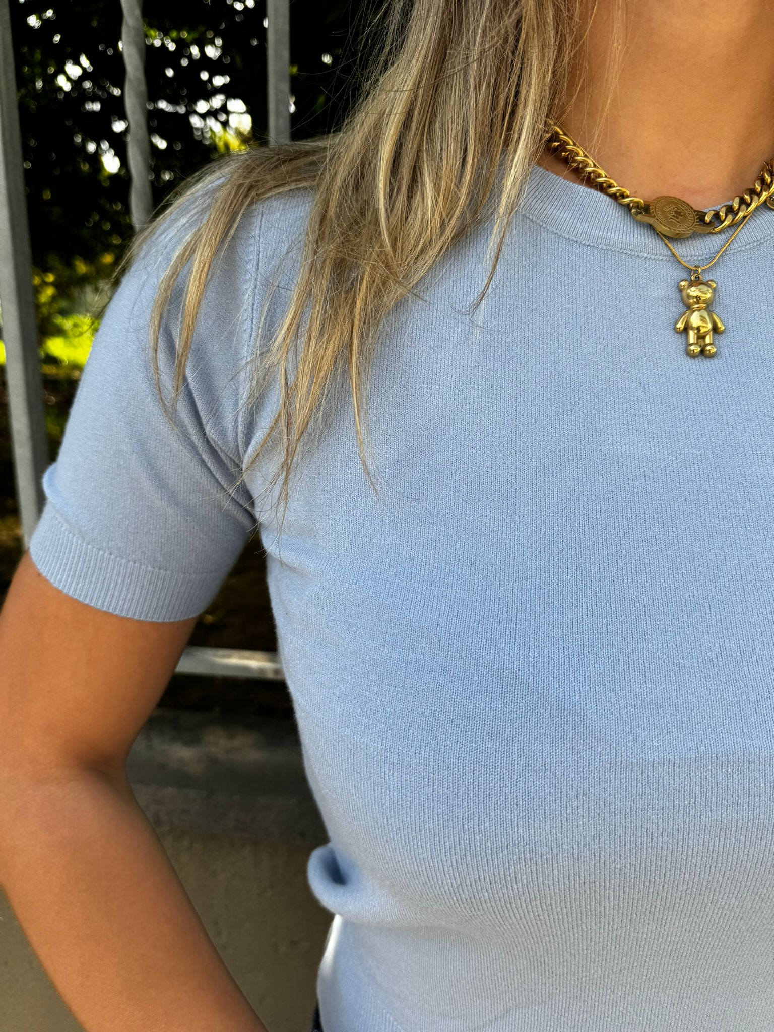 Maglia in simil lana mezza manica con bottoni oro dietro