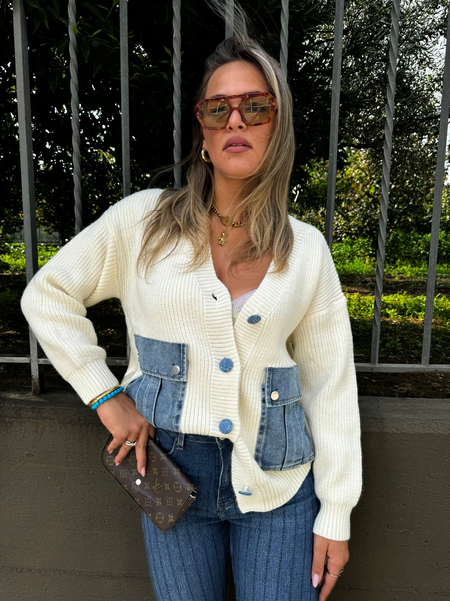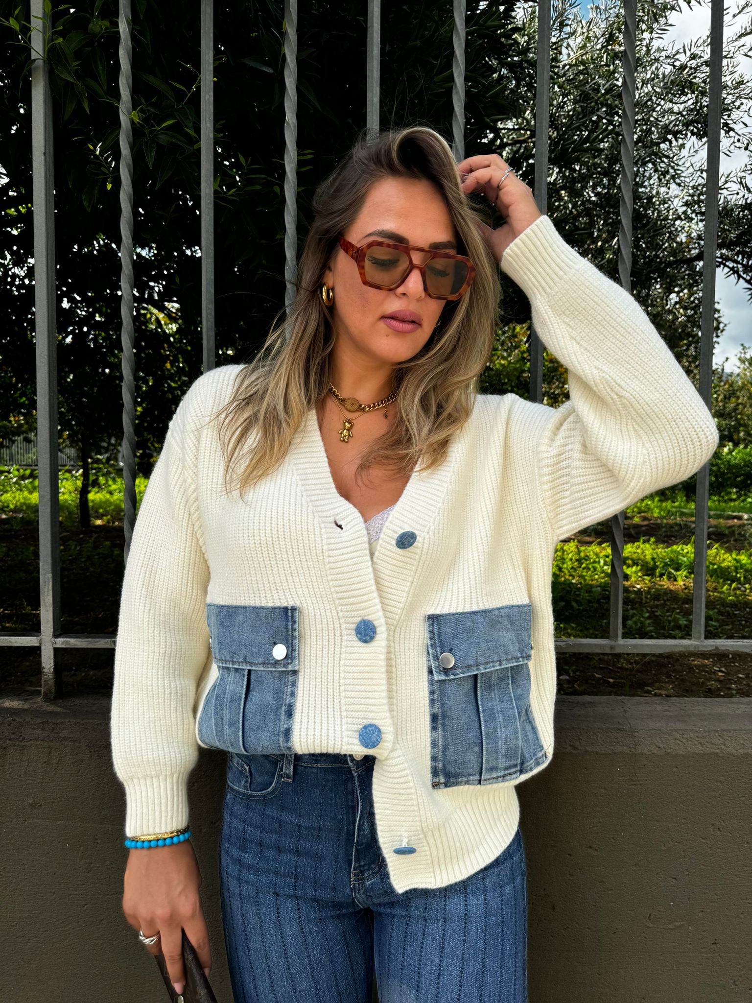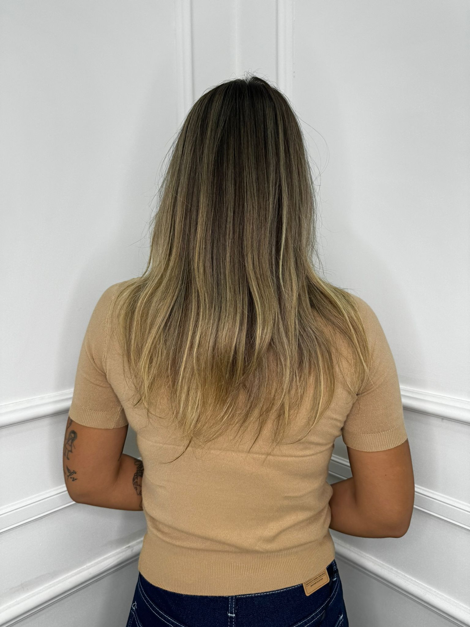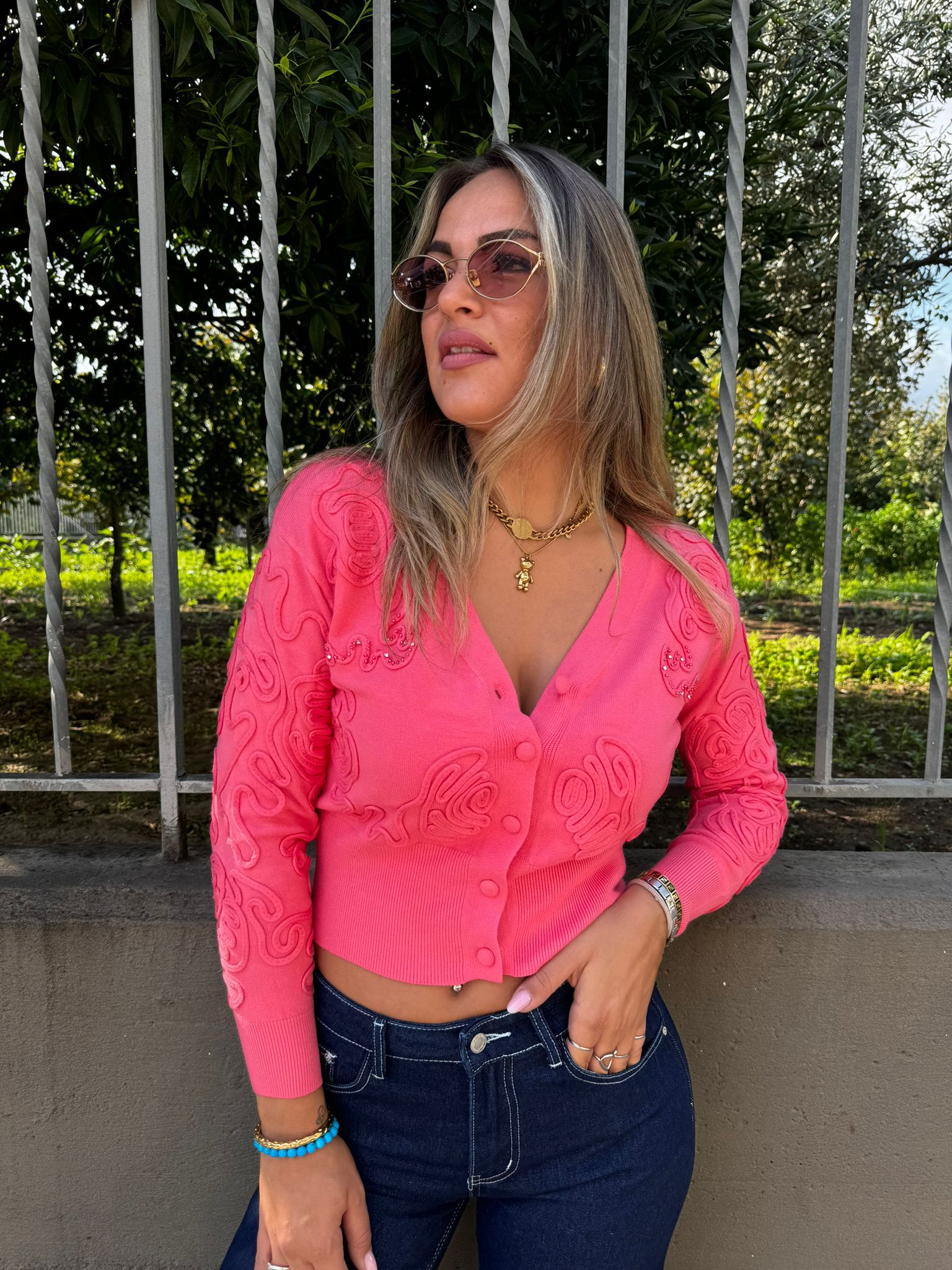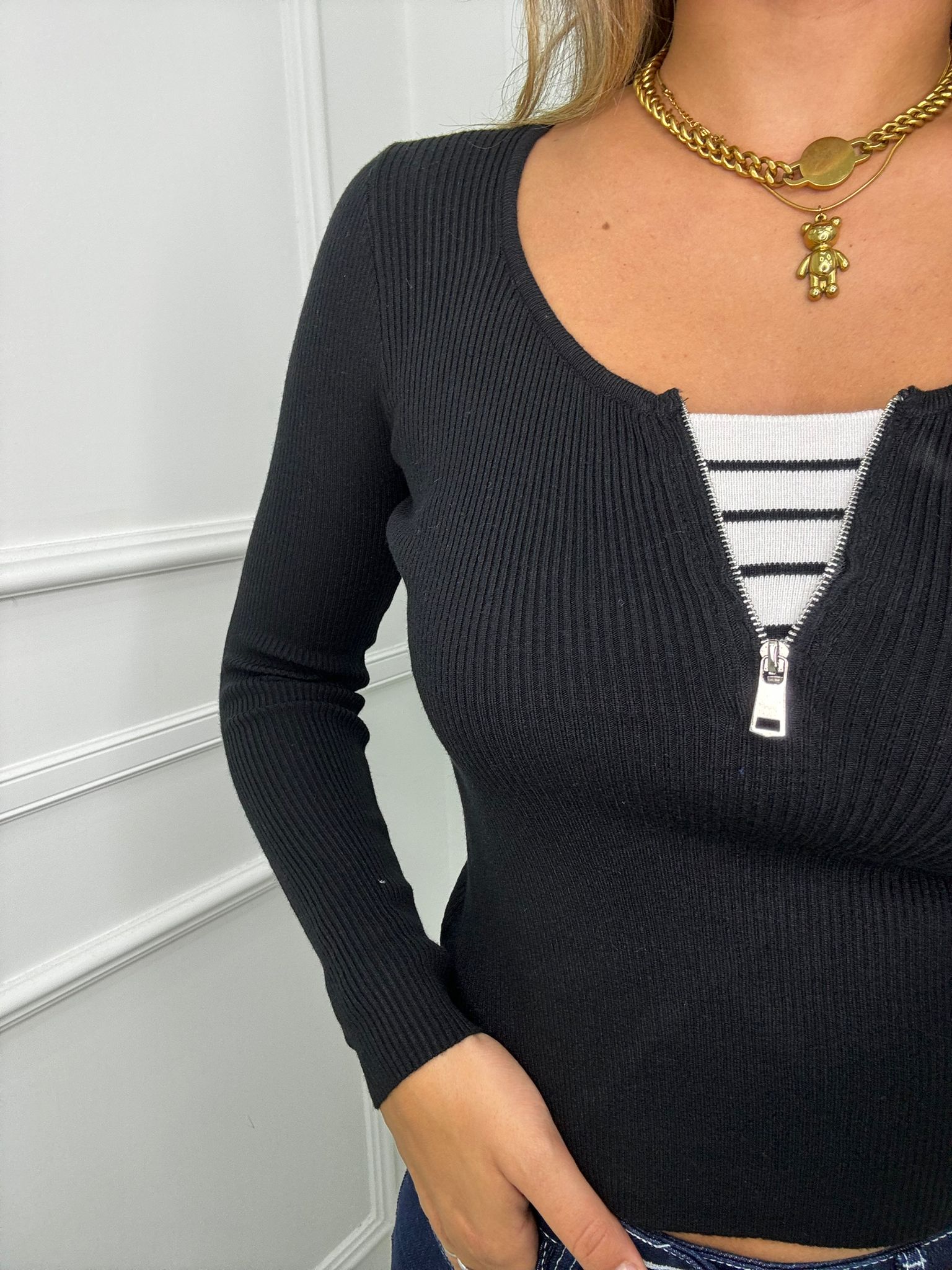 Maglia in simil lana mezza manica con bottoni oro dietro