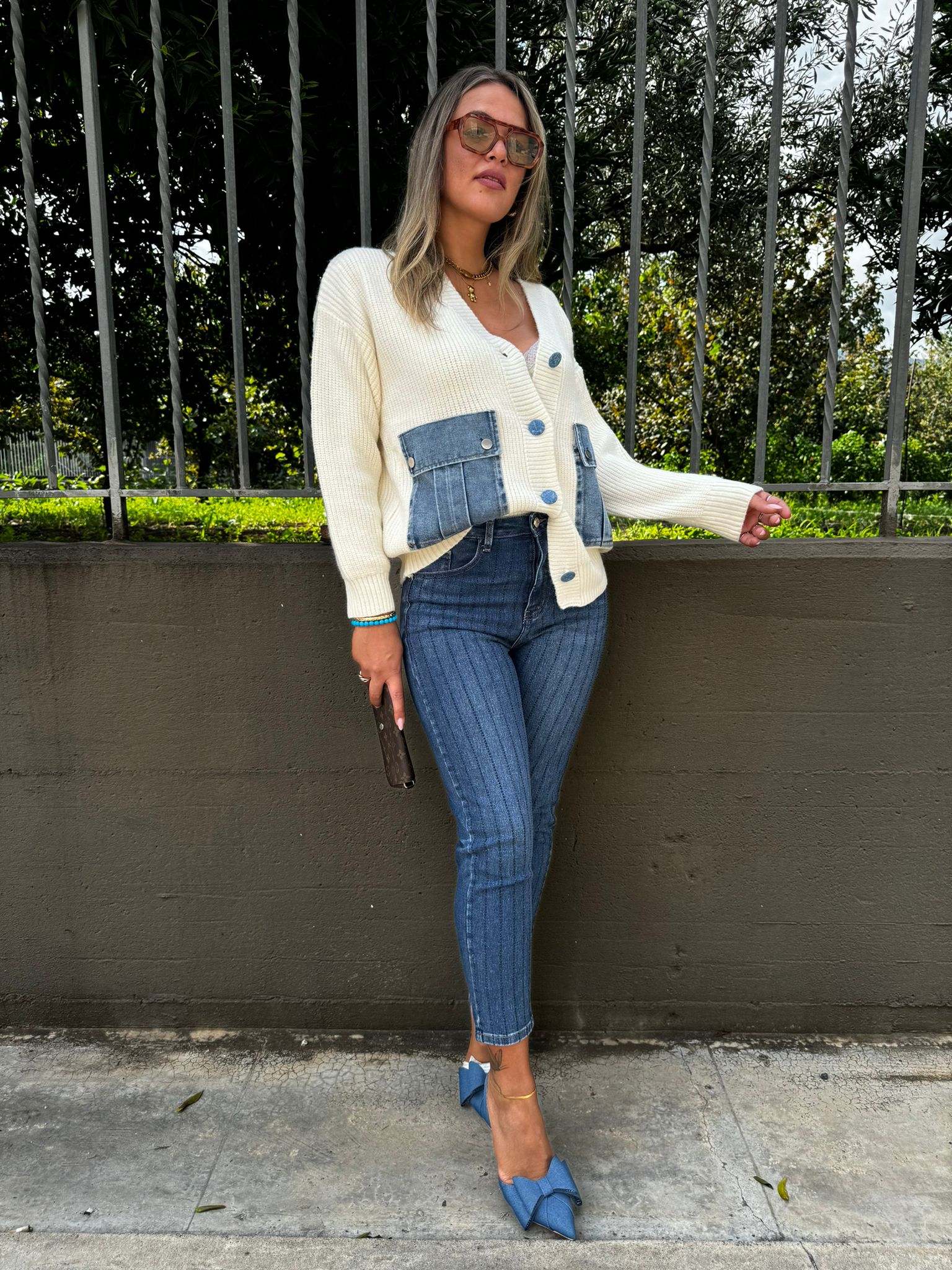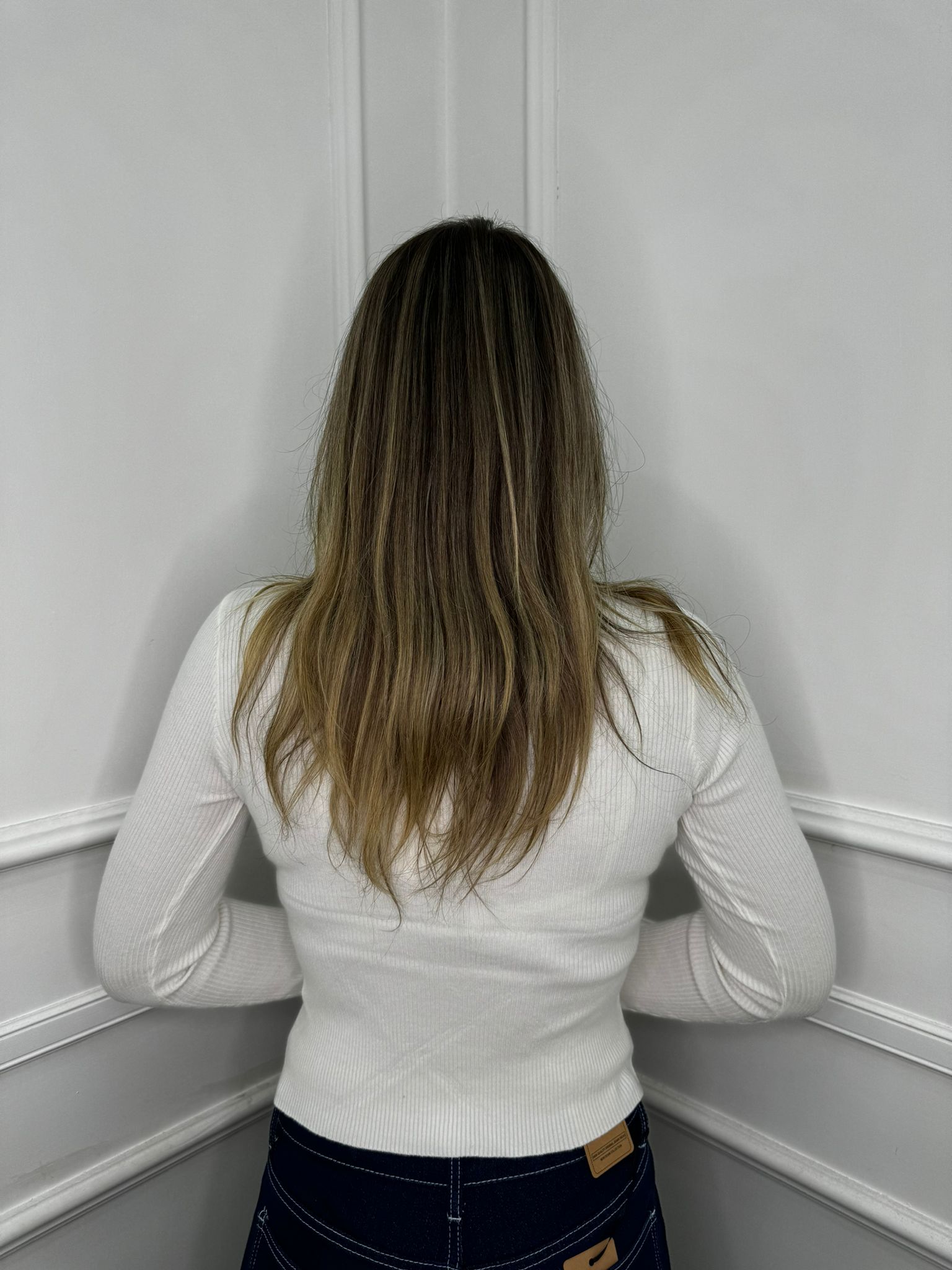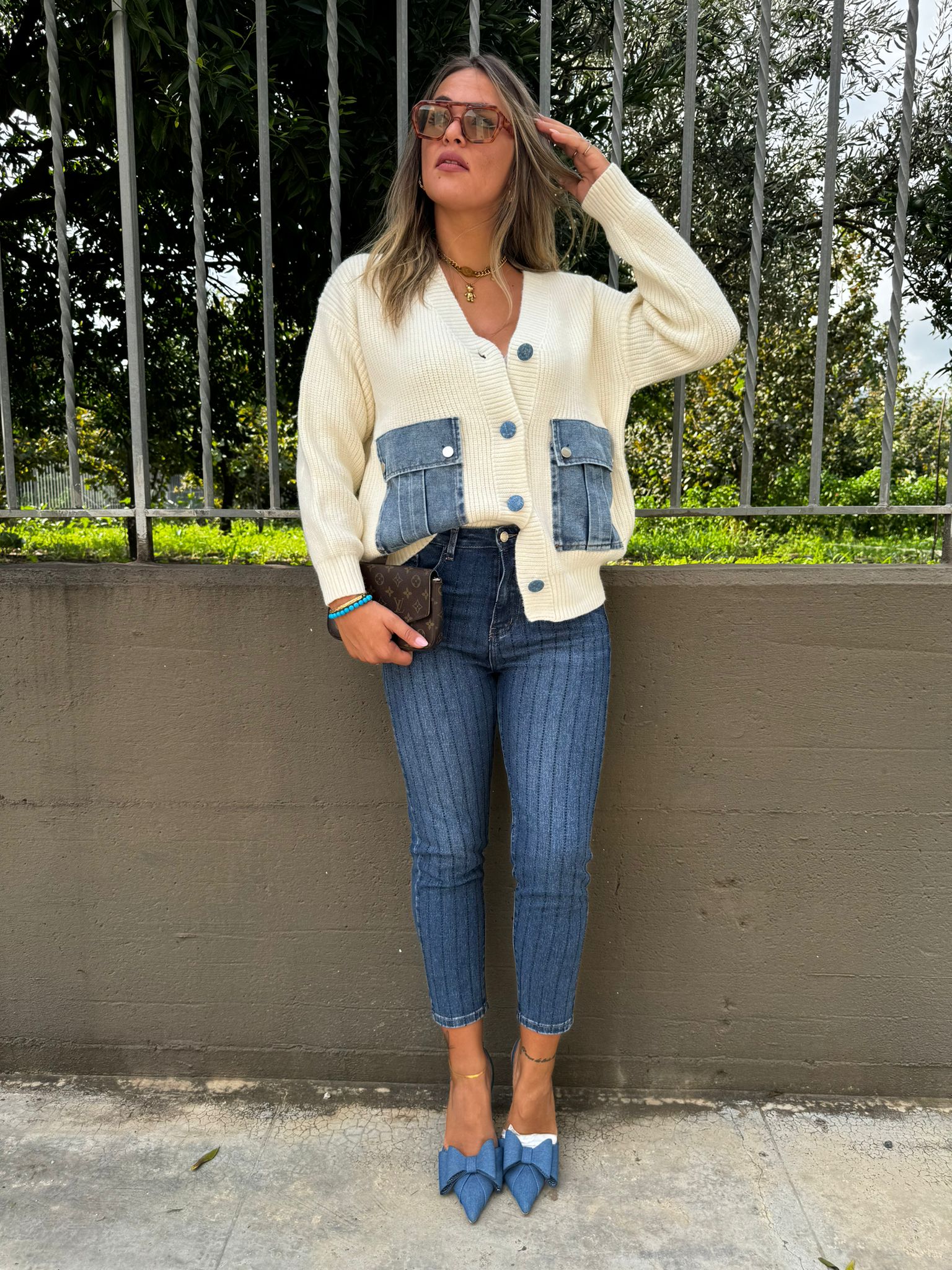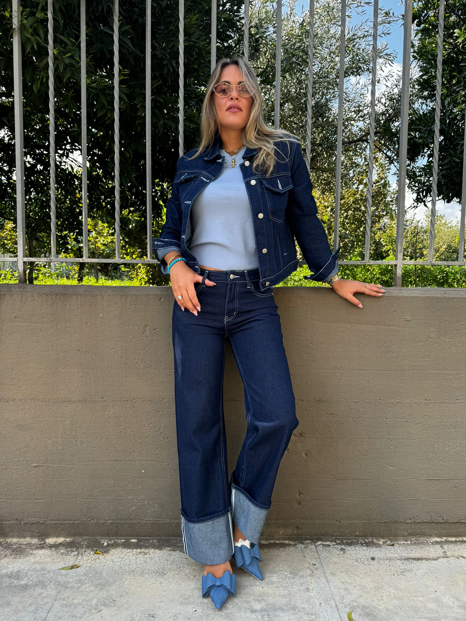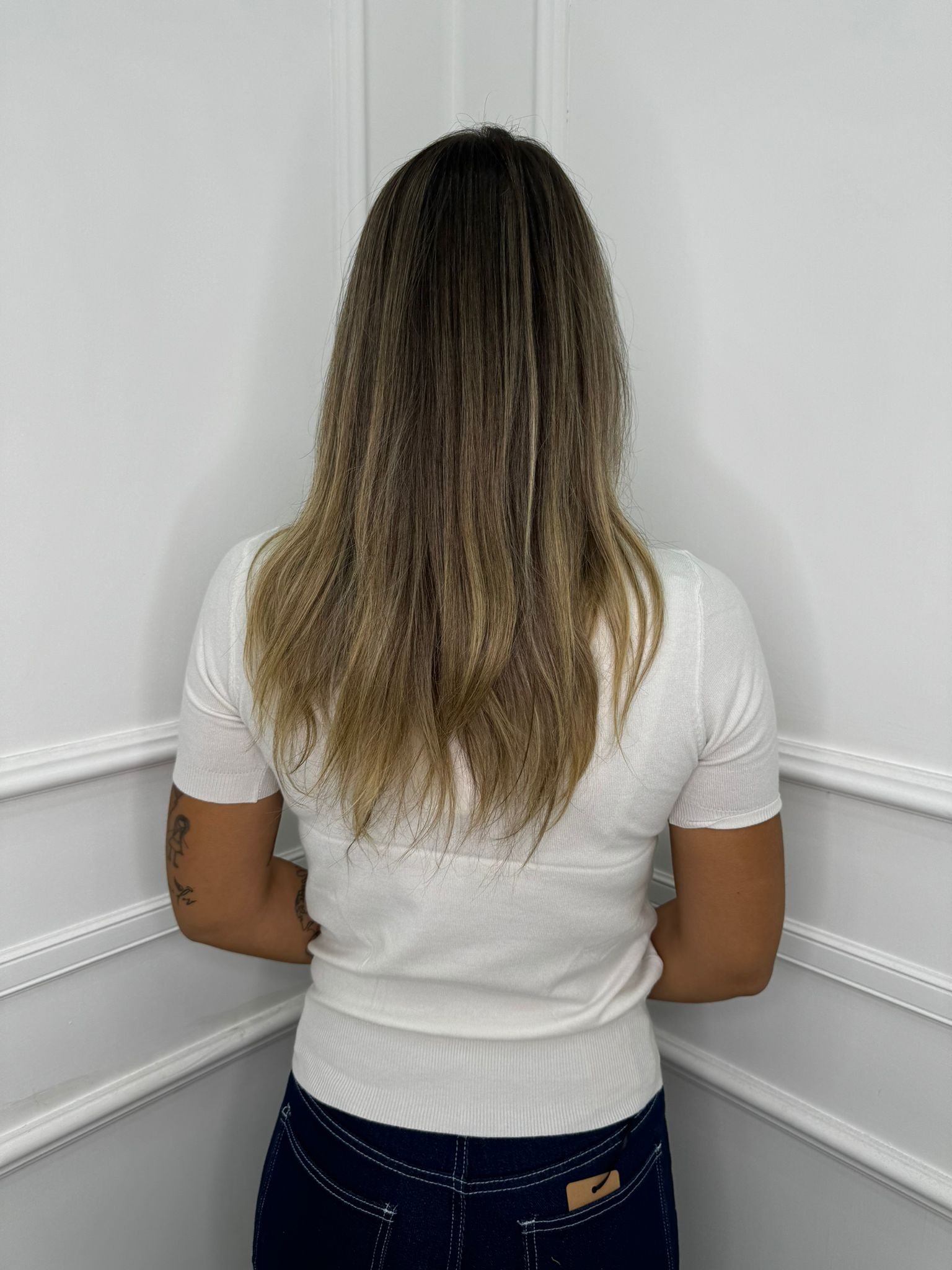 Maglia in simil lana mezza manica con bottoni oro dietro