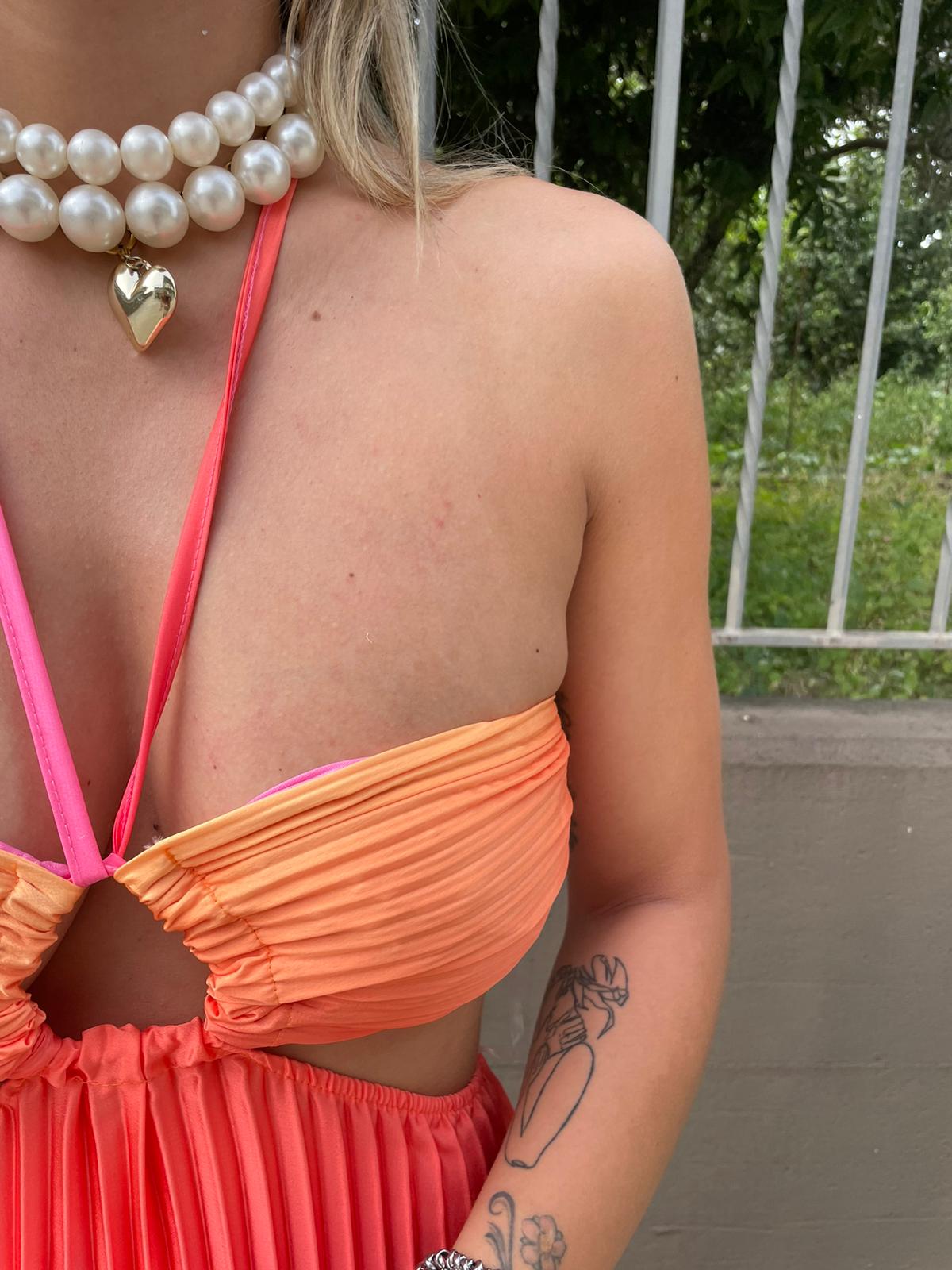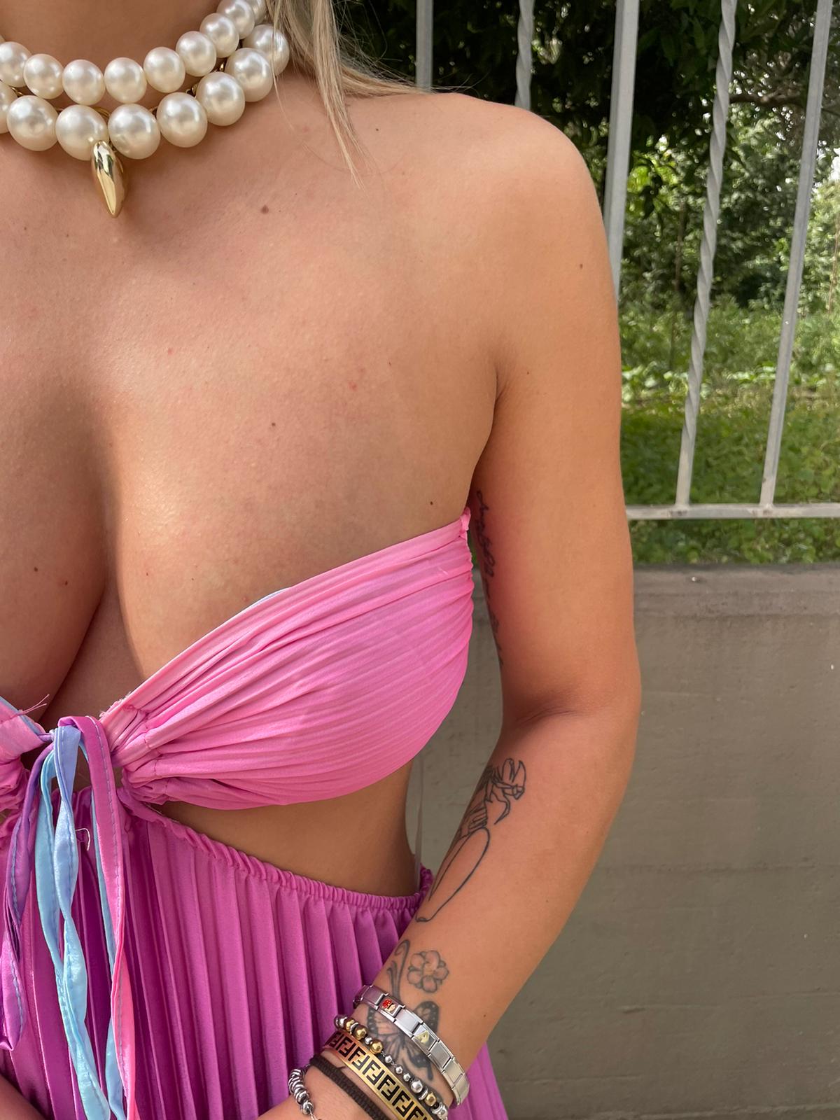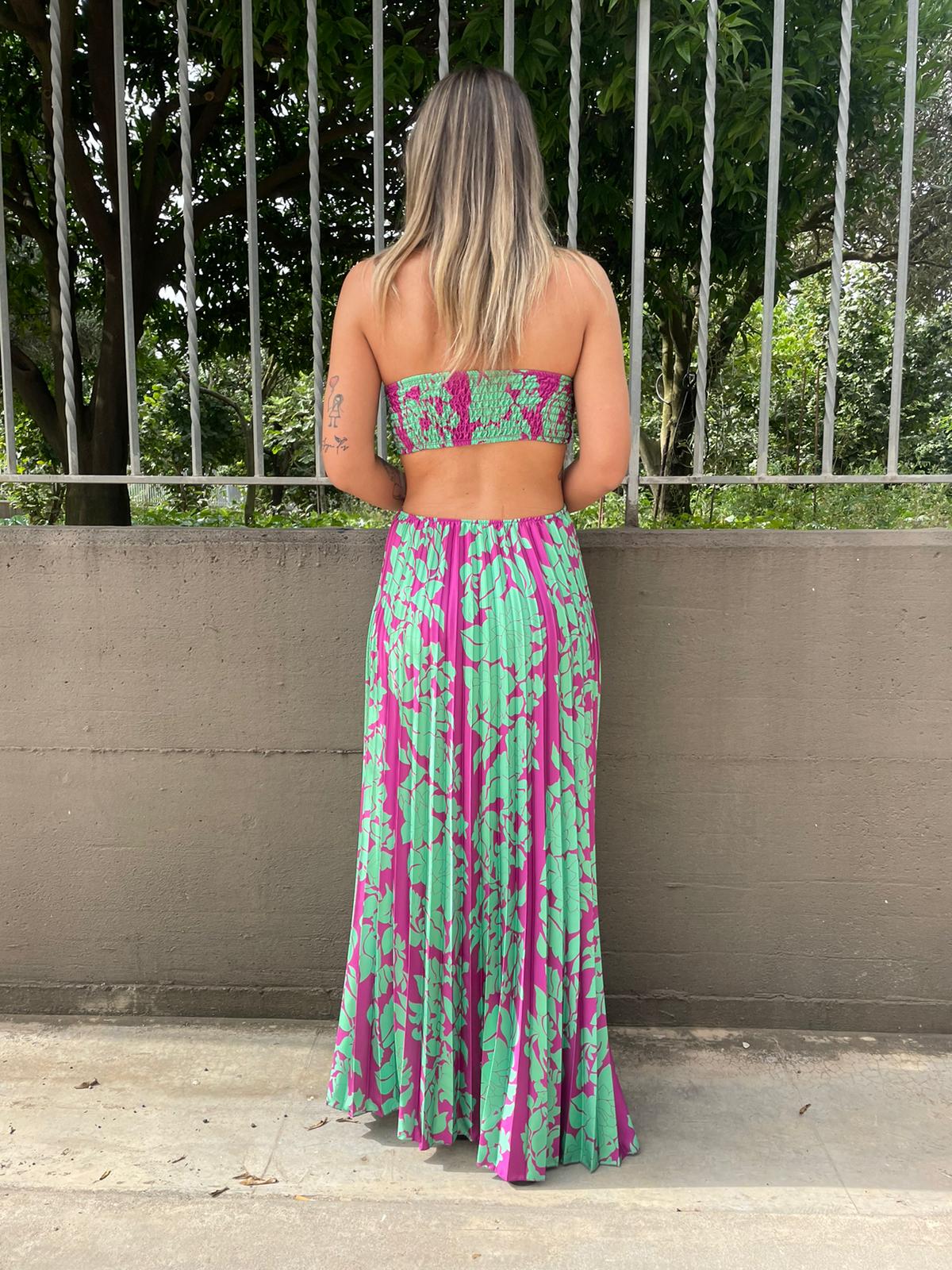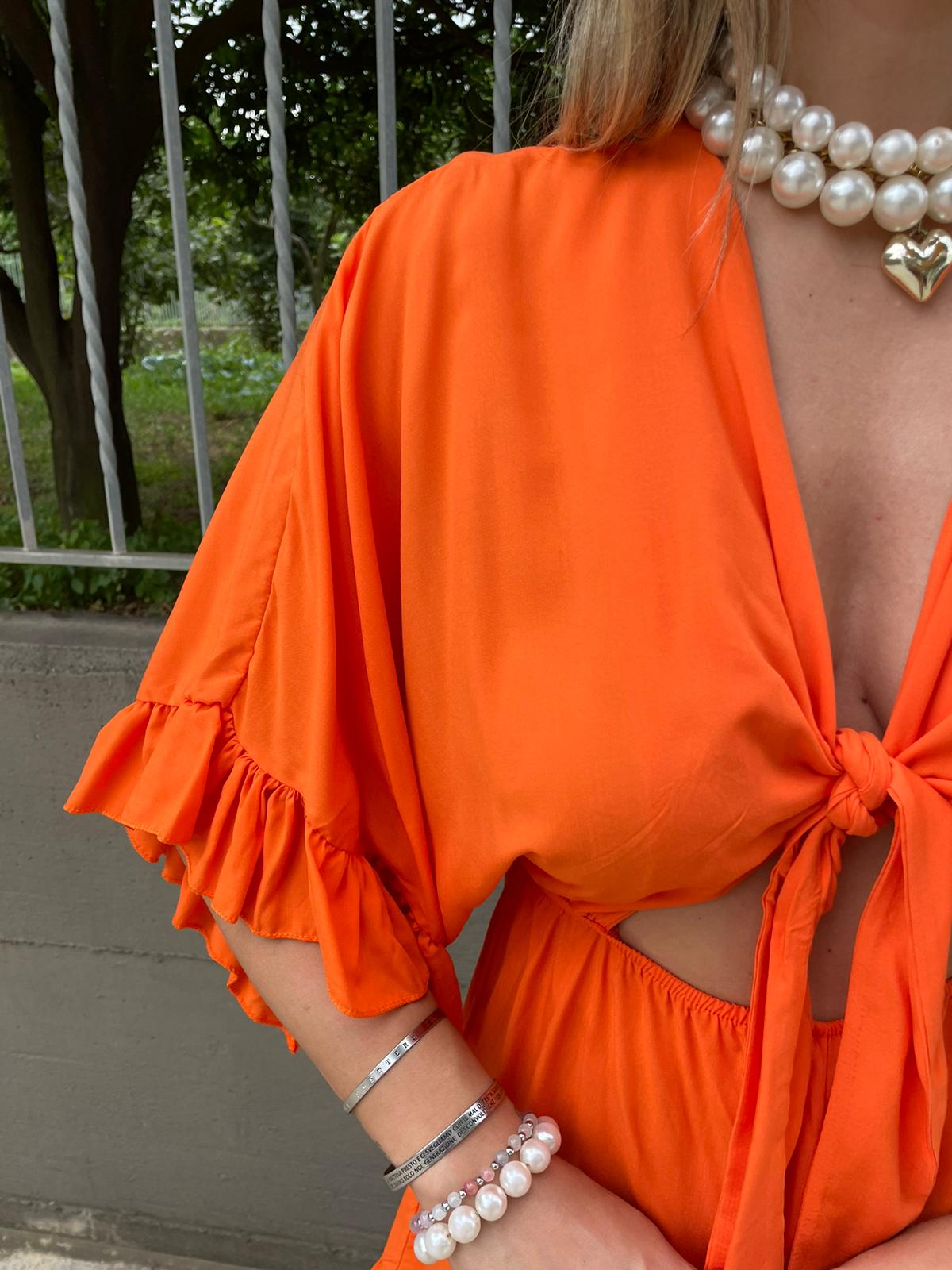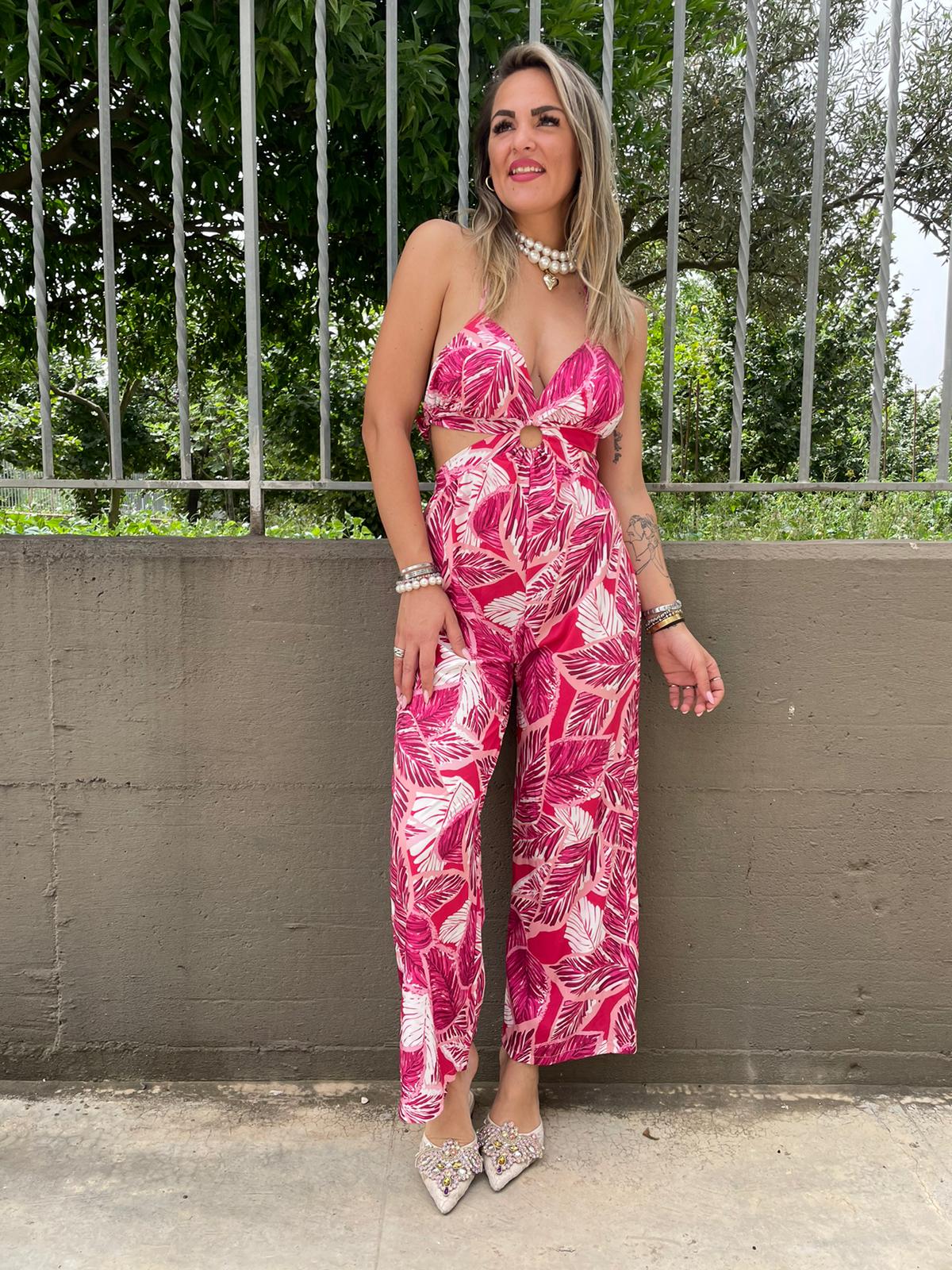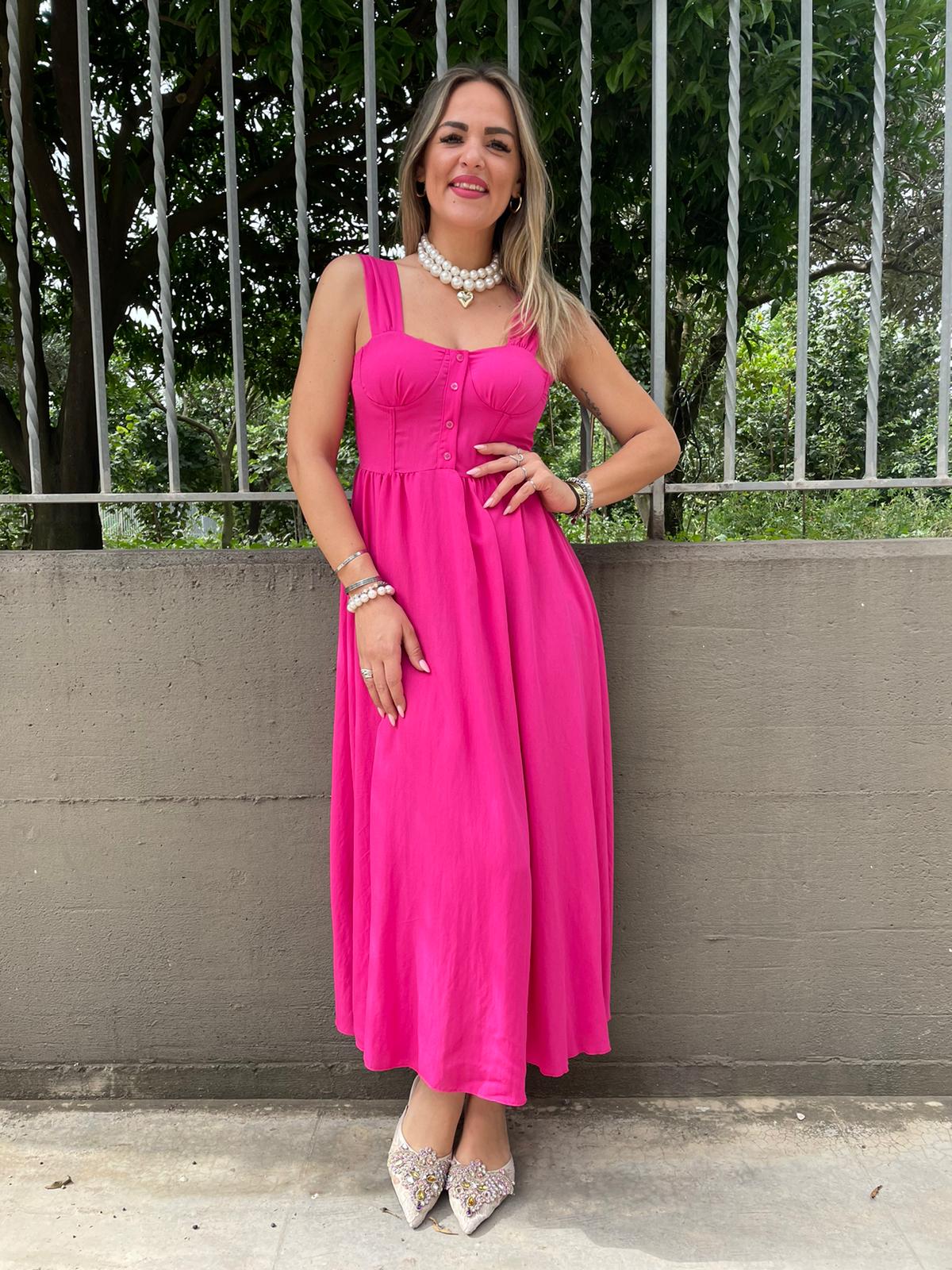 Vestito midi fantasia fiori scampanato con laccetti alle spalle