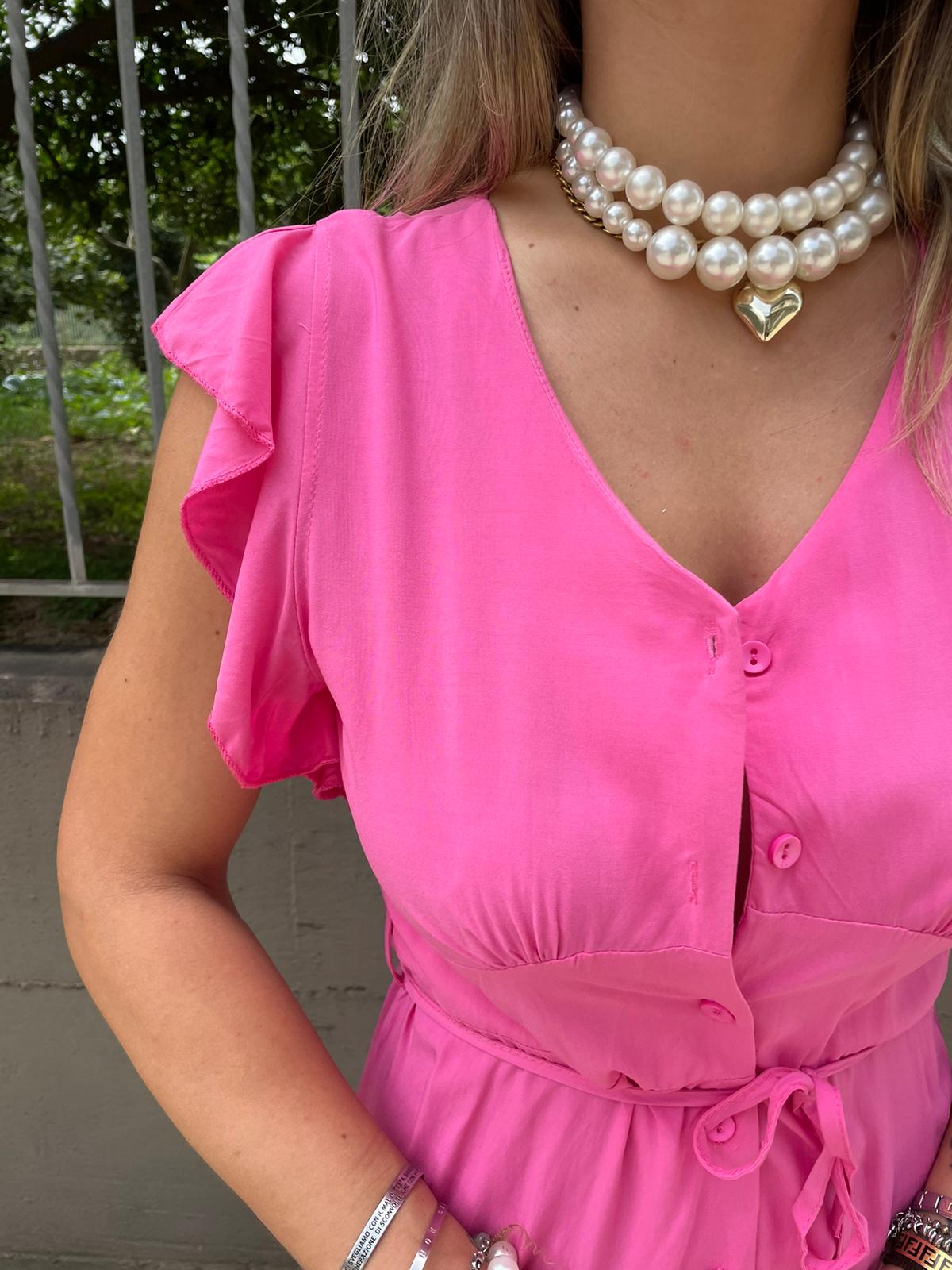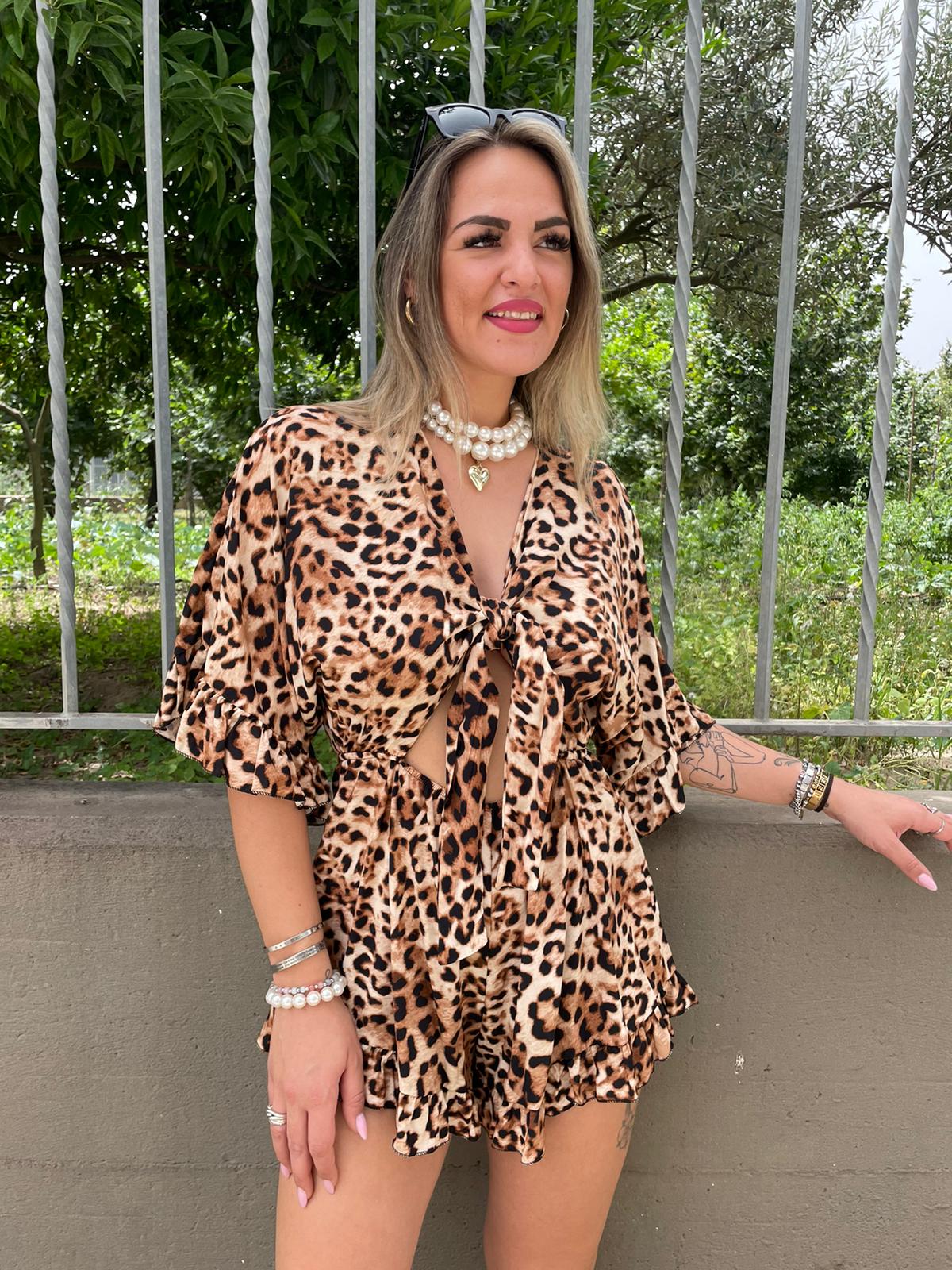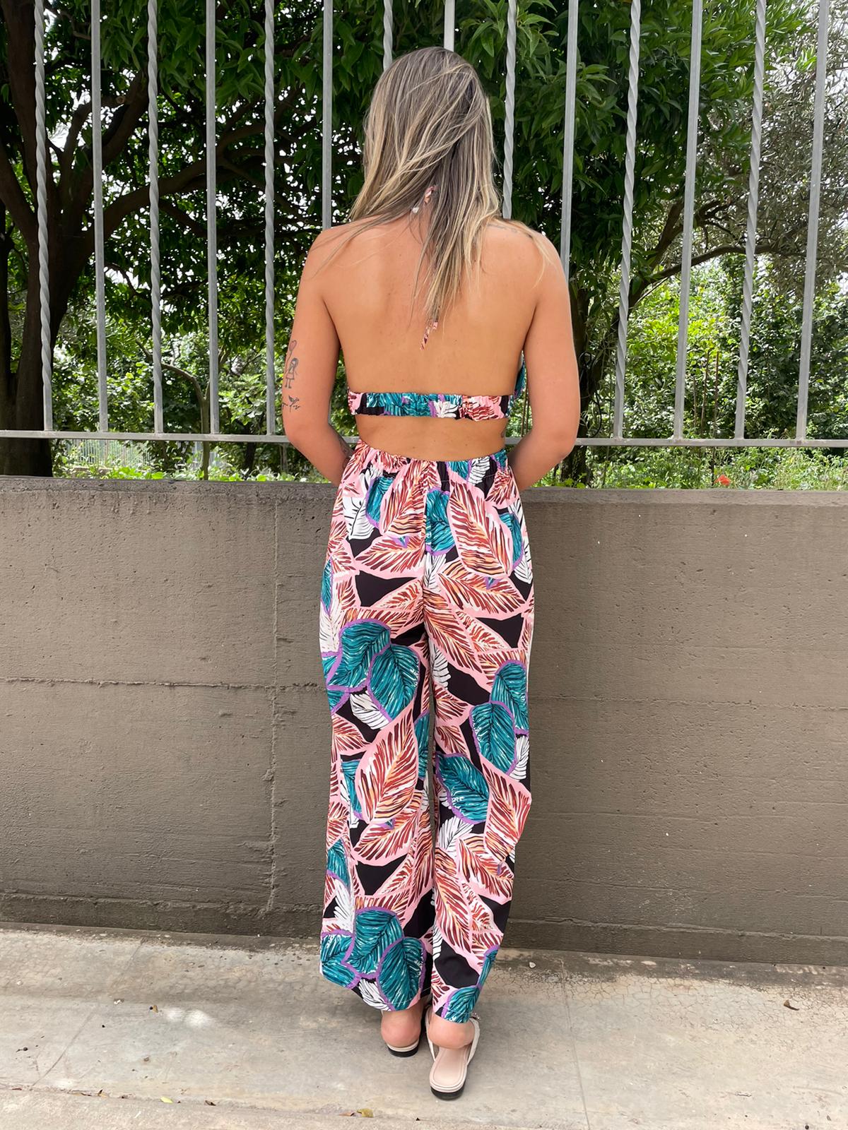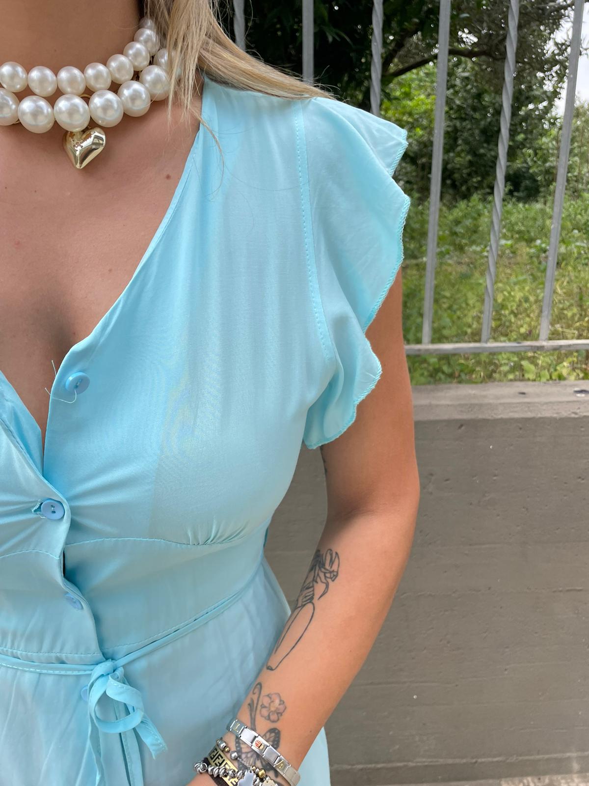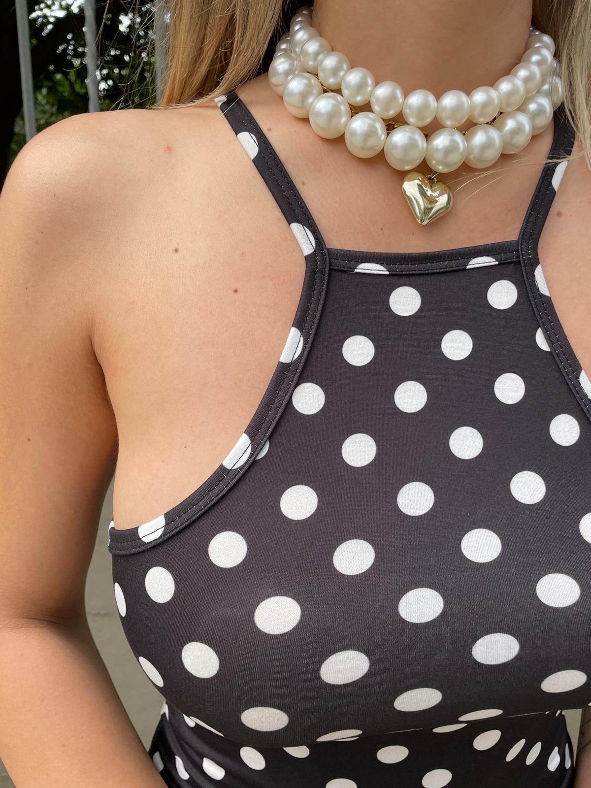 Vestito midi fantasia fiori scampanato con laccetti alle spalle