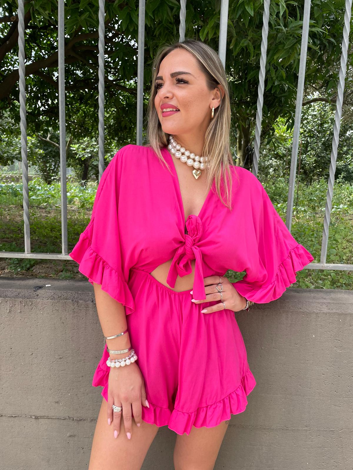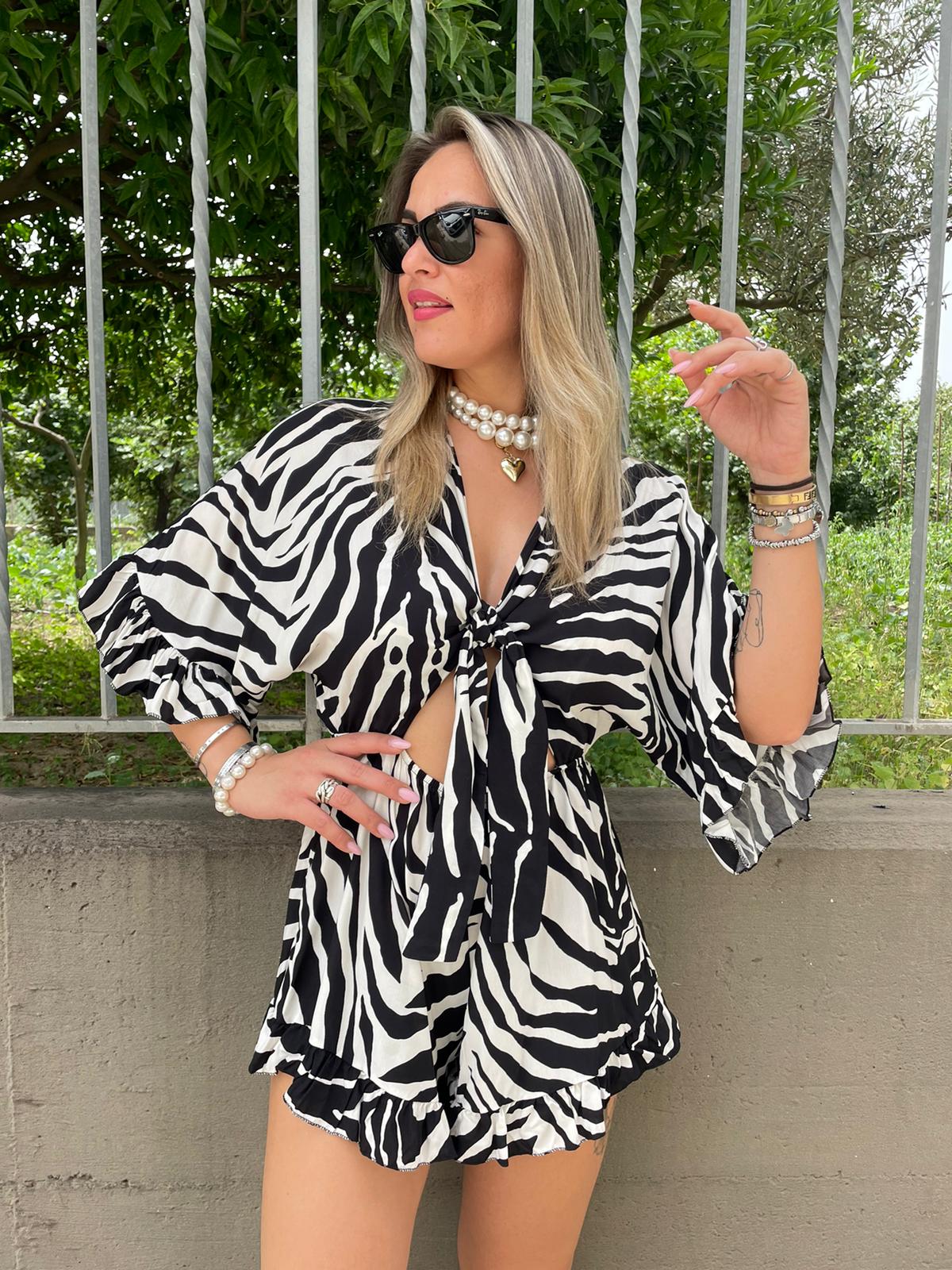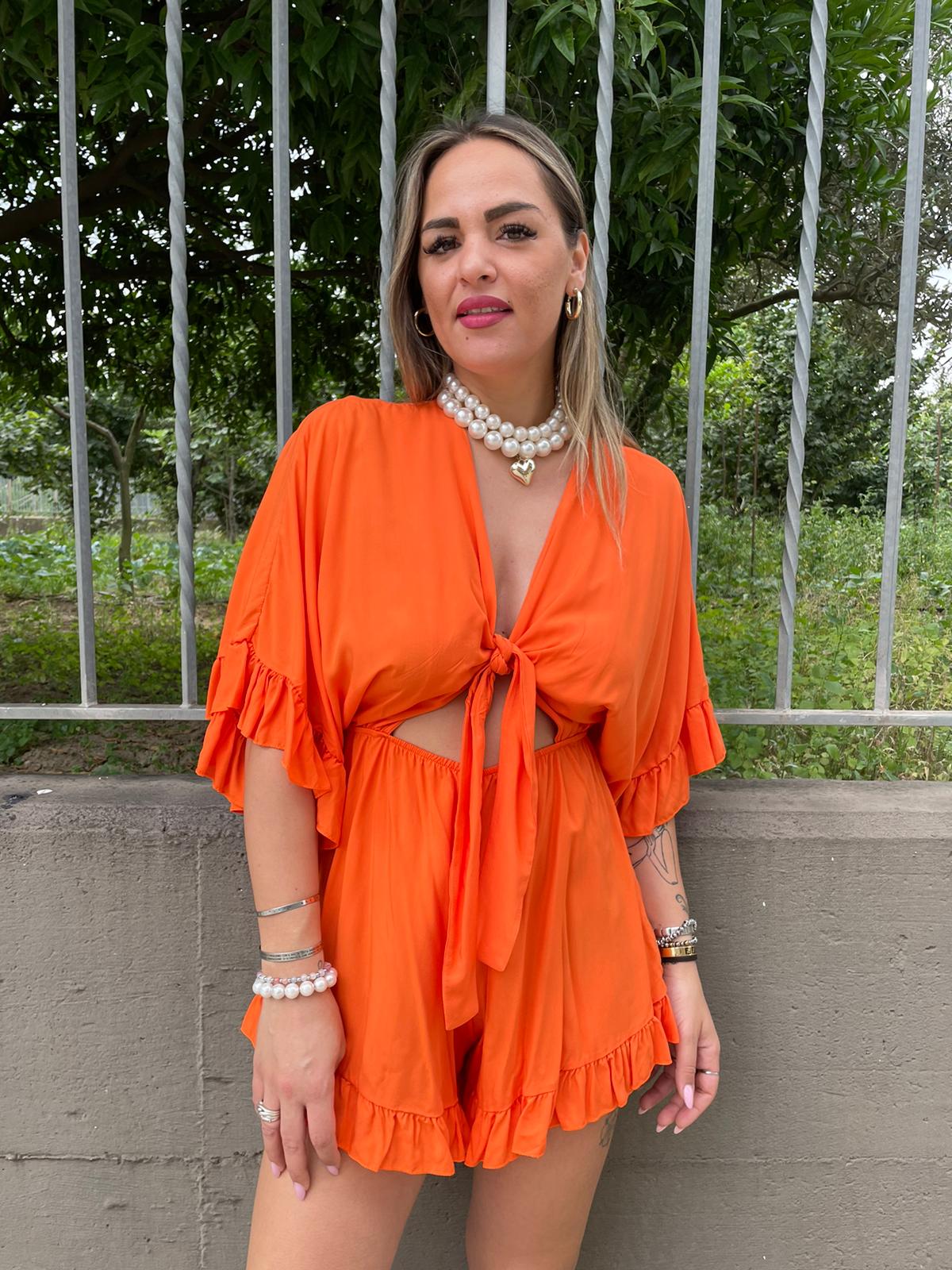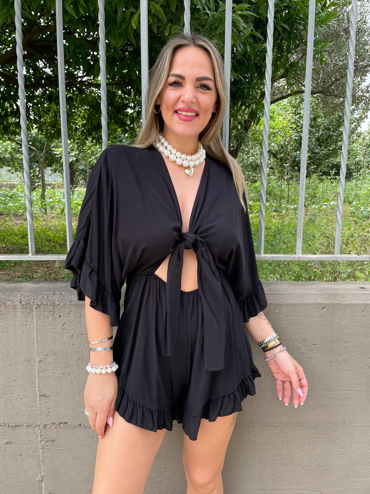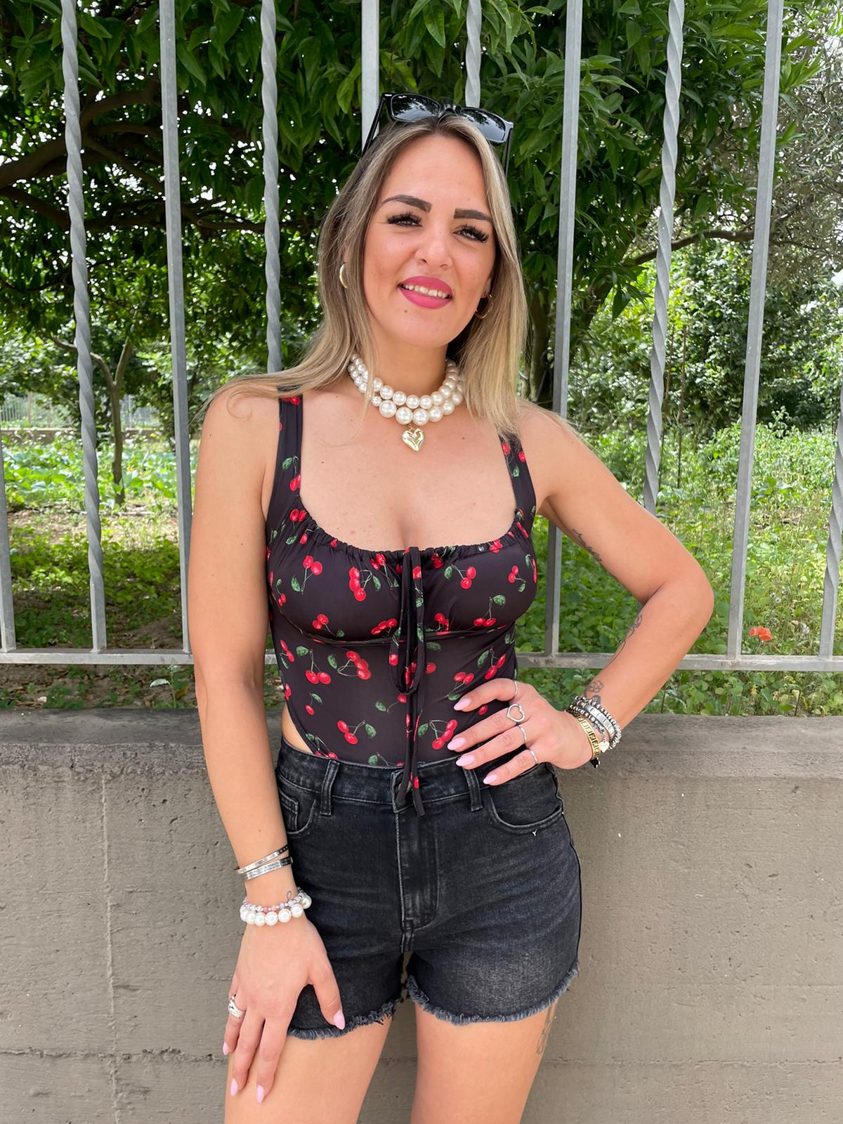 Vestito midi fantasia fiori scampanato con laccetti alle spalle