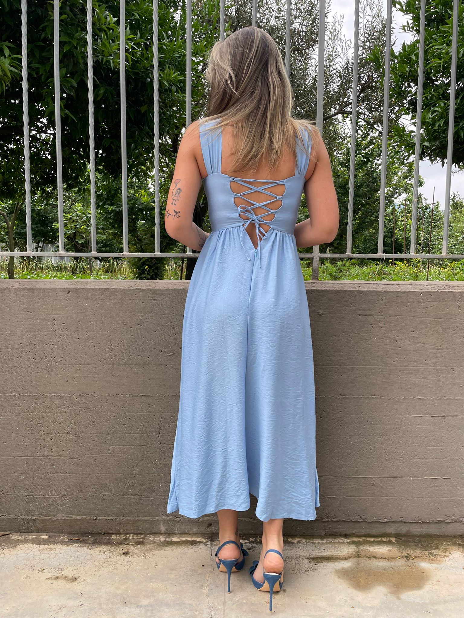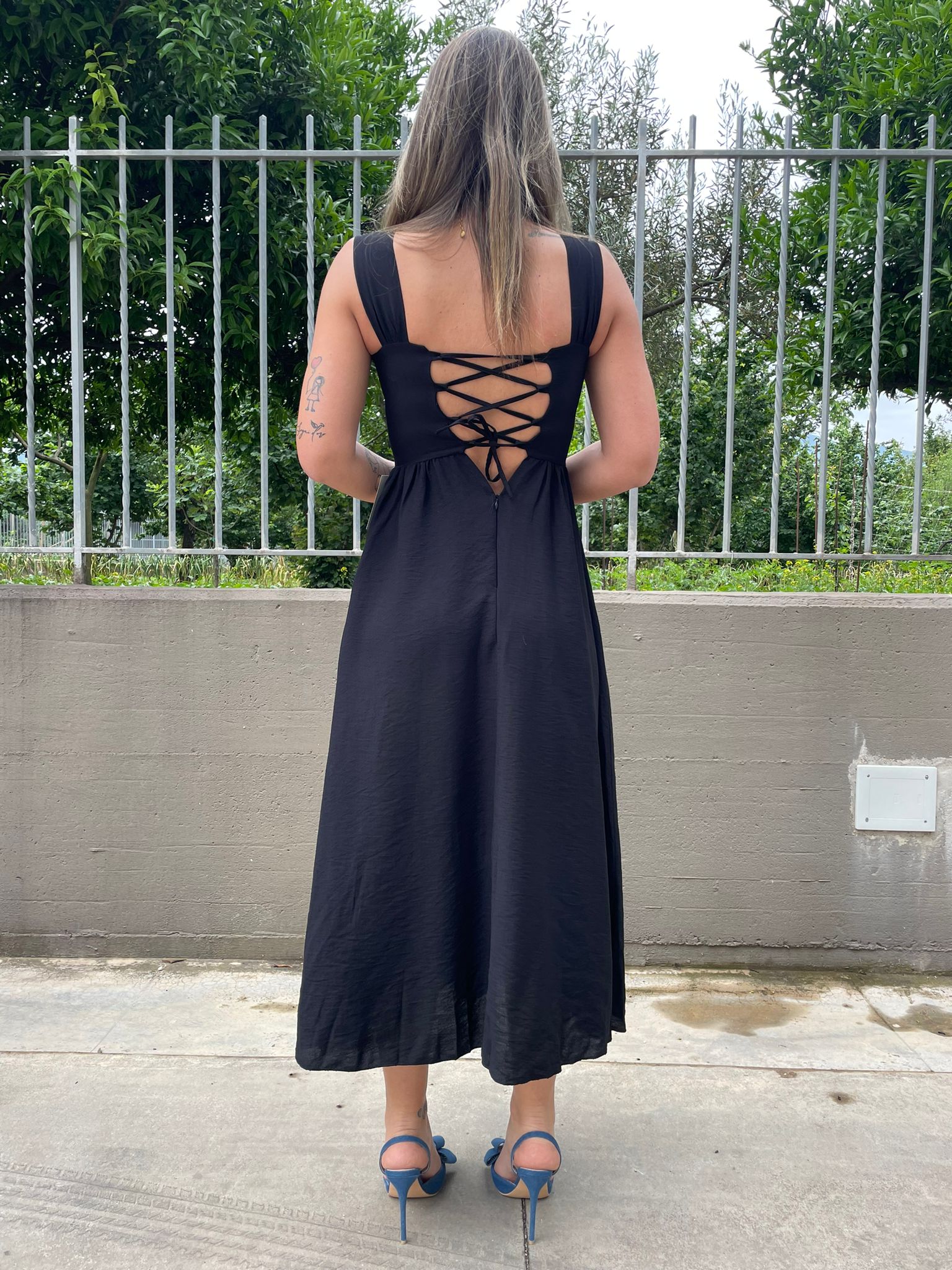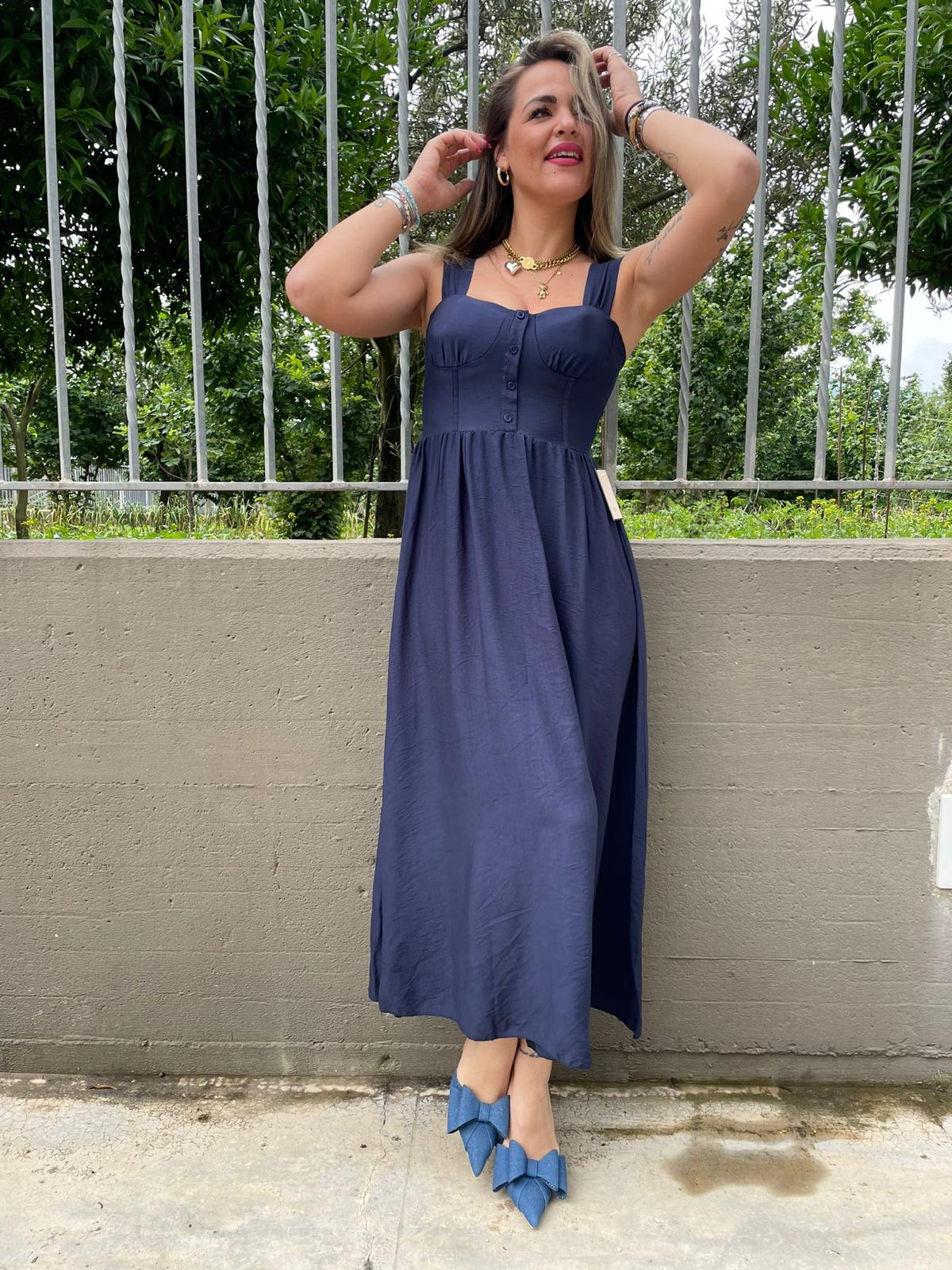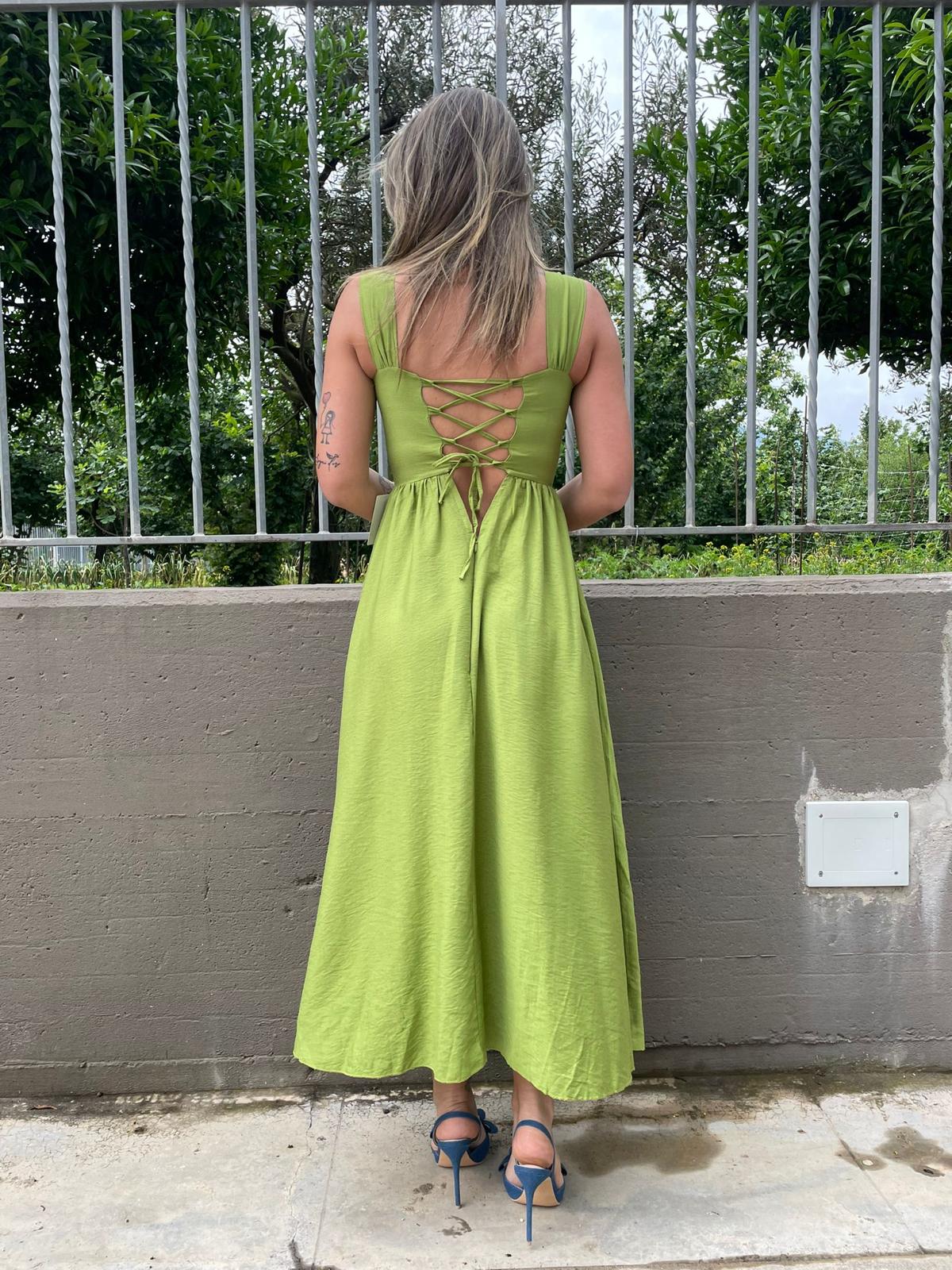 Vestito effetto lino con finto corpetto e lacci alla schiena