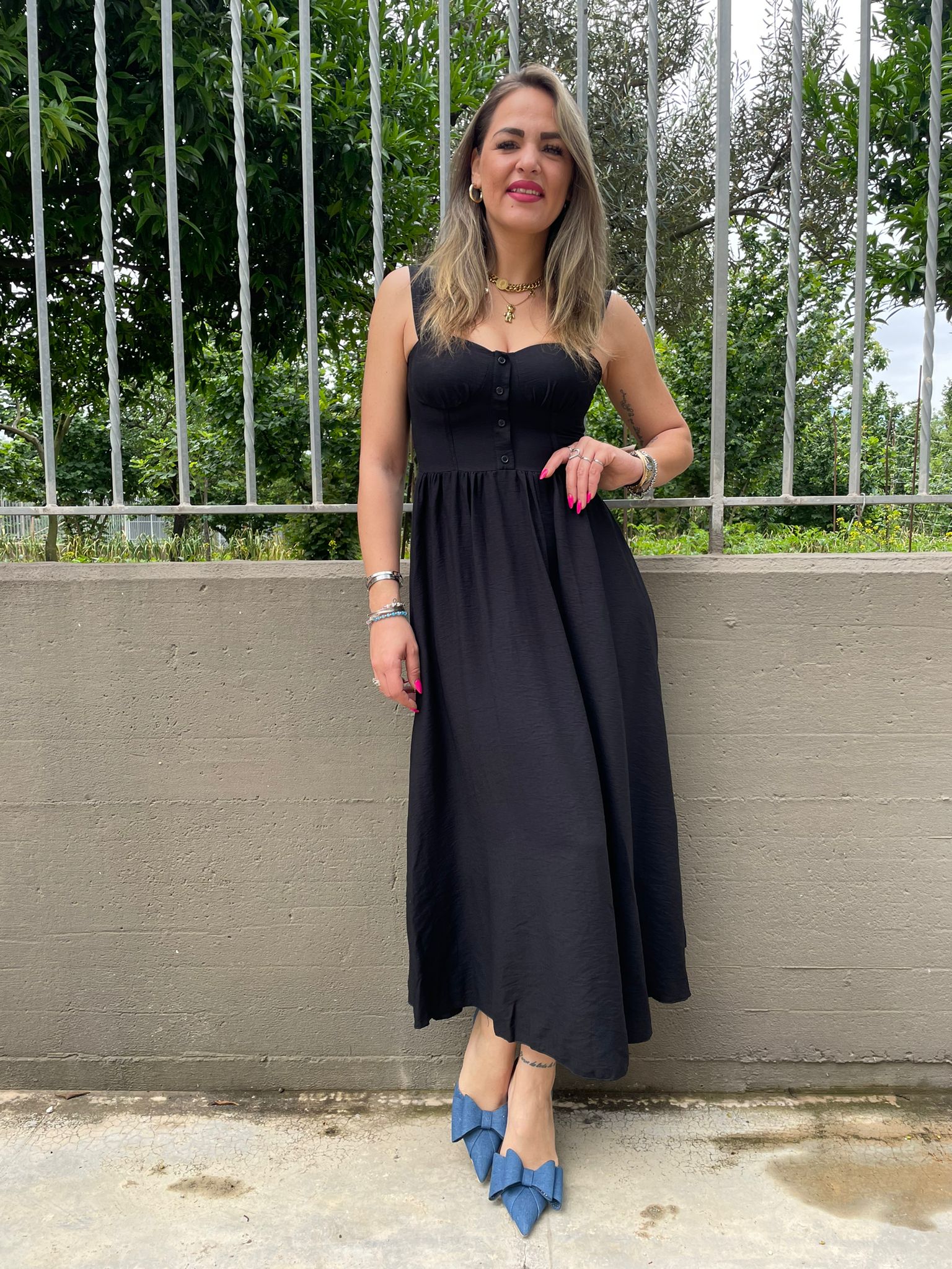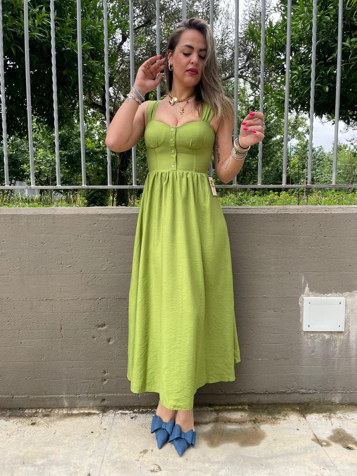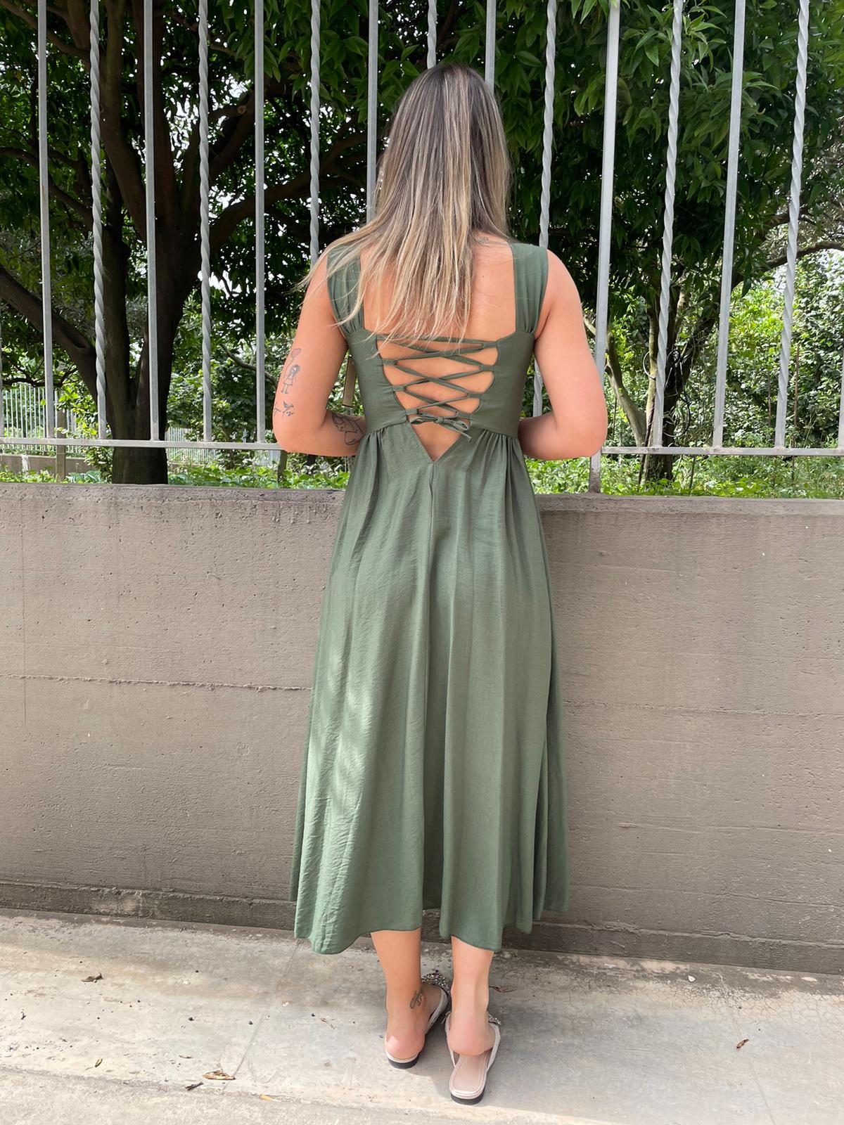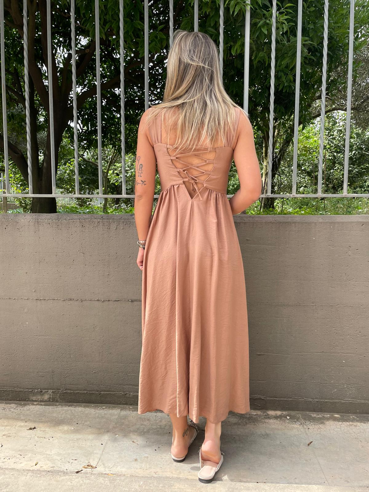Vestito effetto lino con finto corpetto e lacci alla schiena