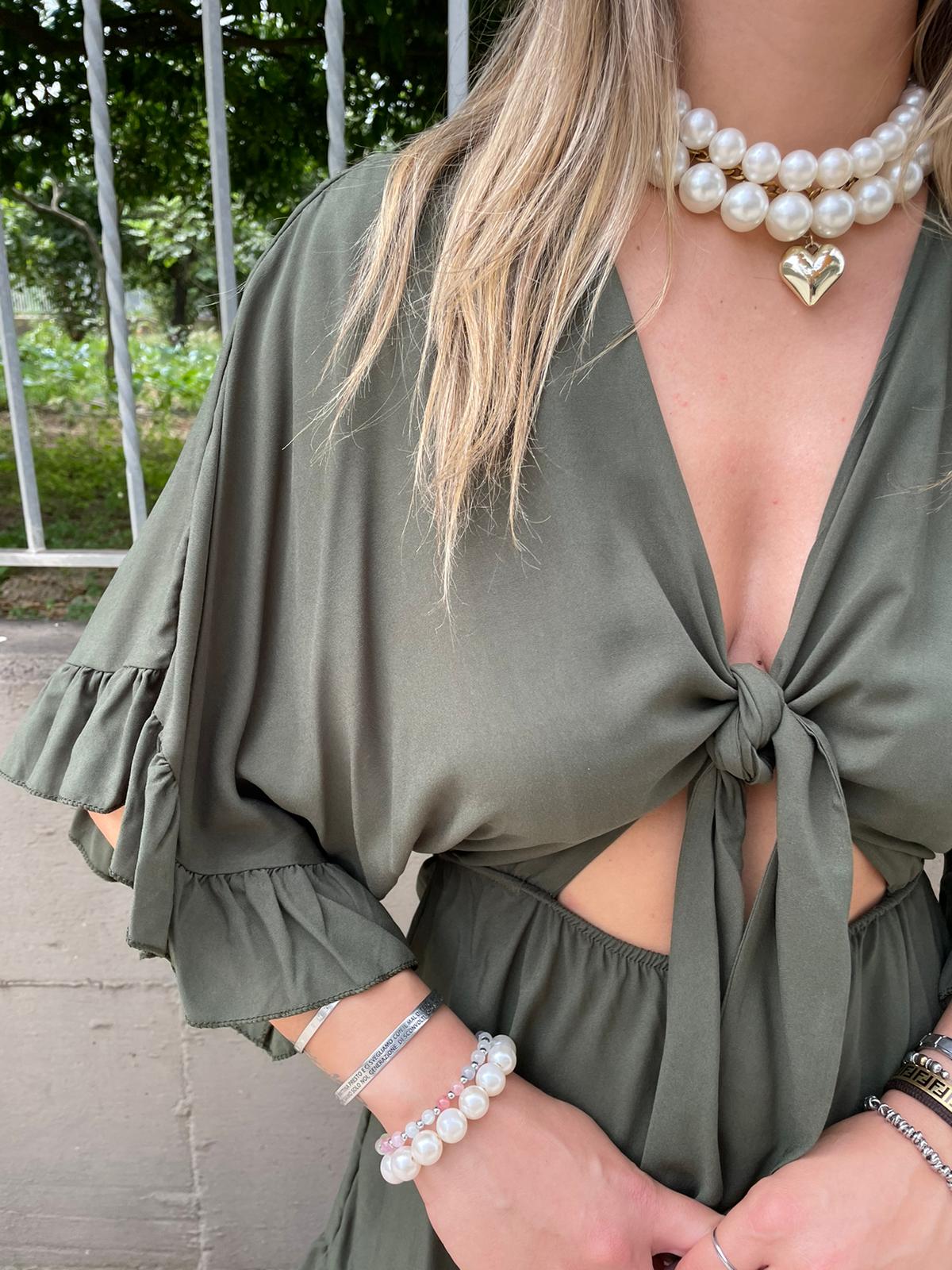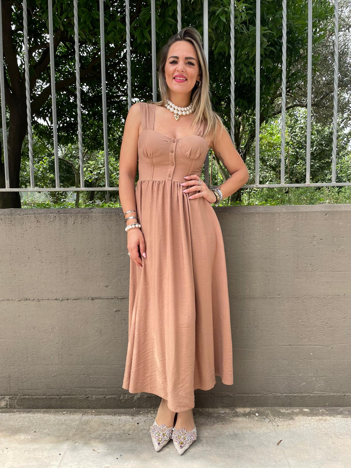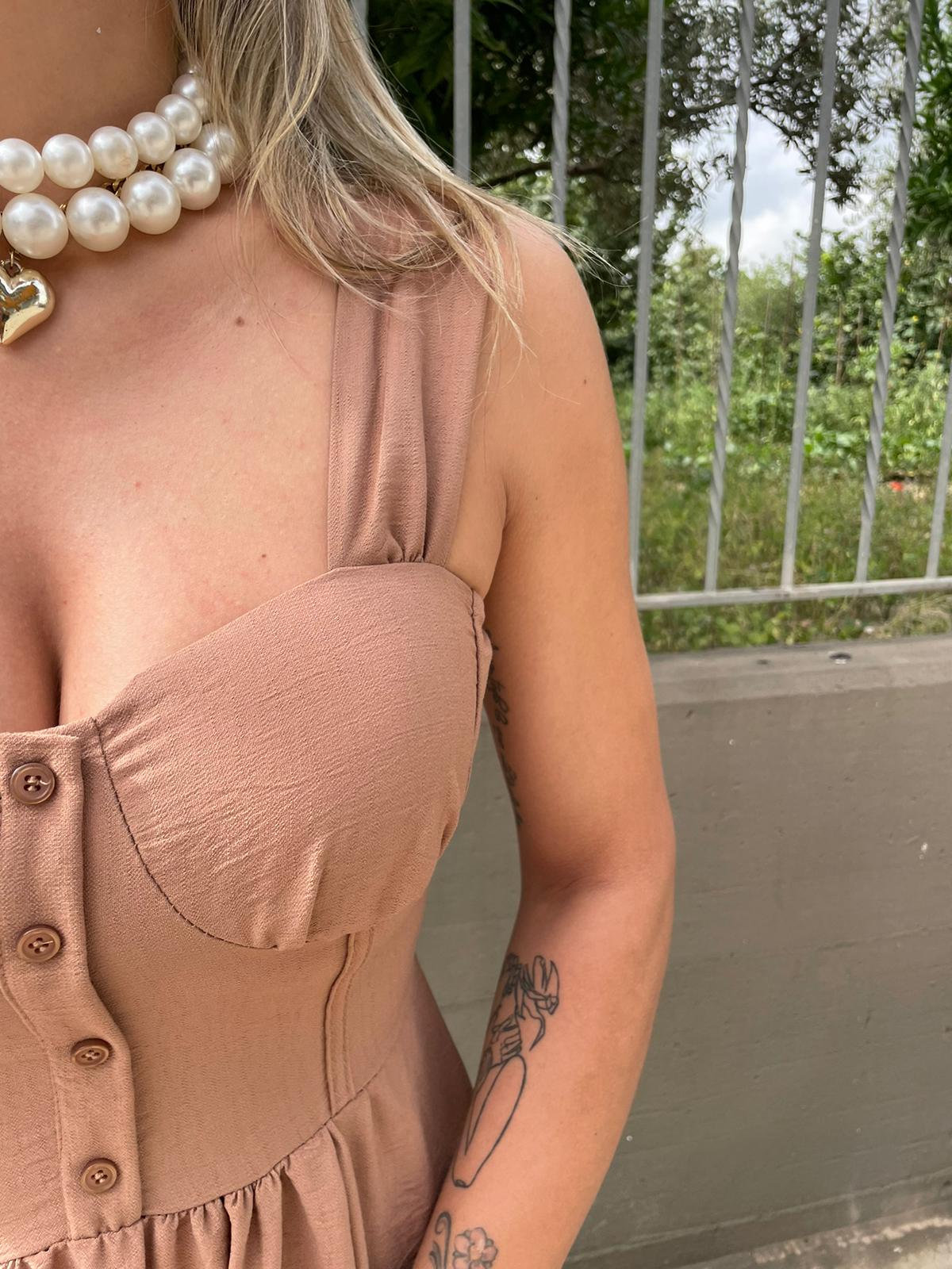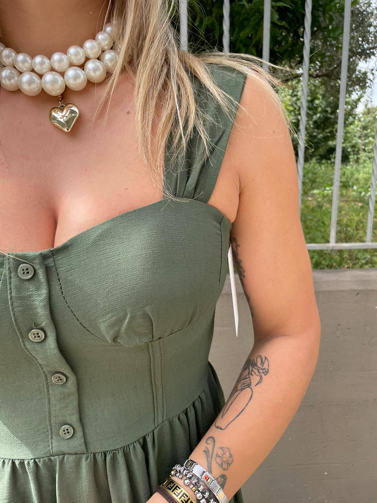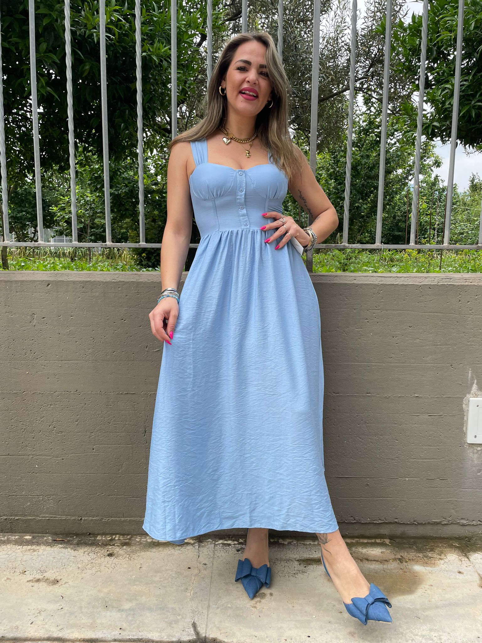 Vestito effetto lino con finto corpetto e lacci alla schiena