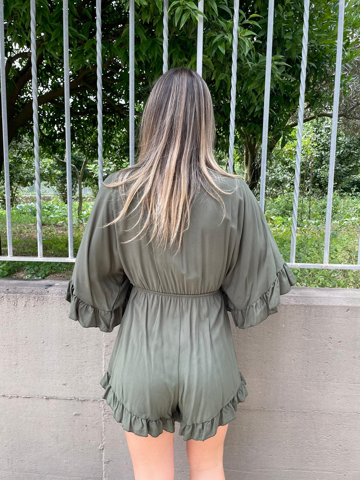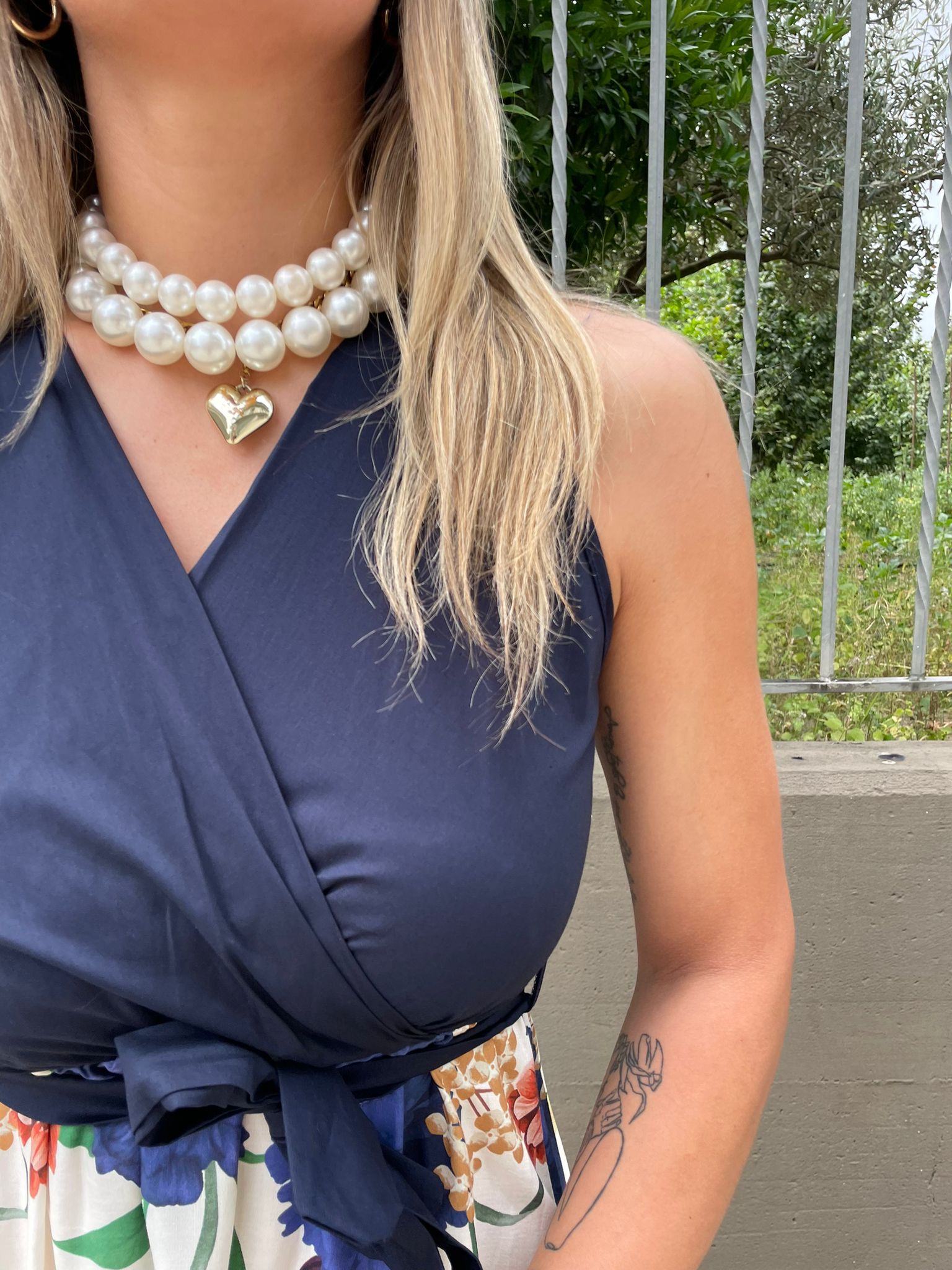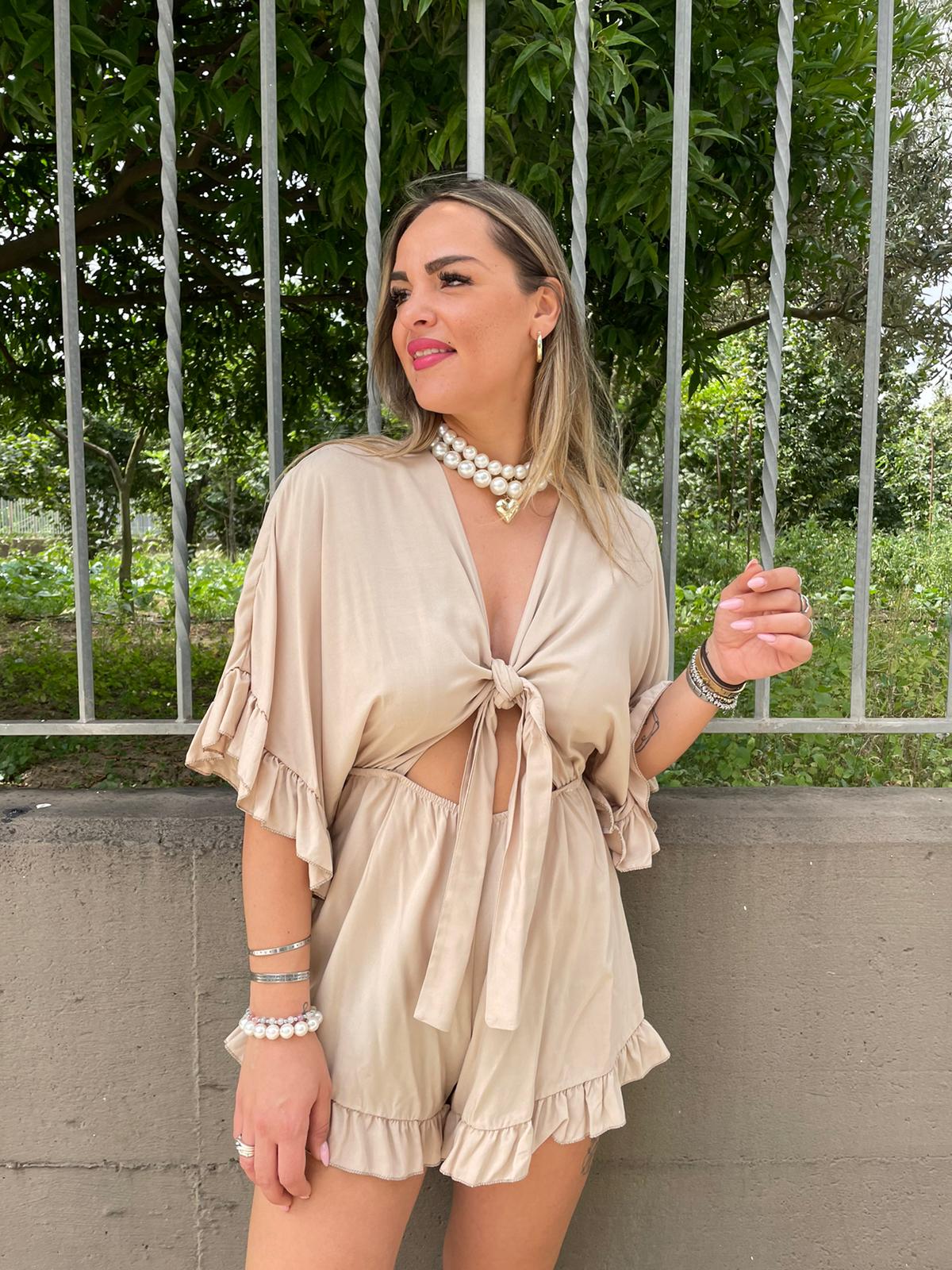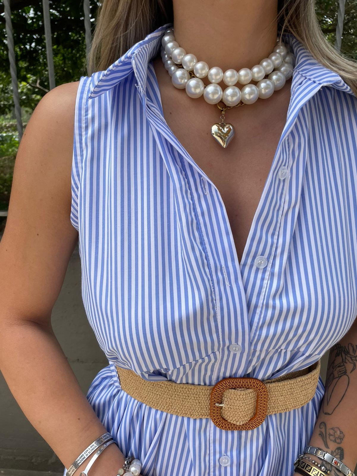 Vestito effetto lino con finto corpetto e lacci alla schiena