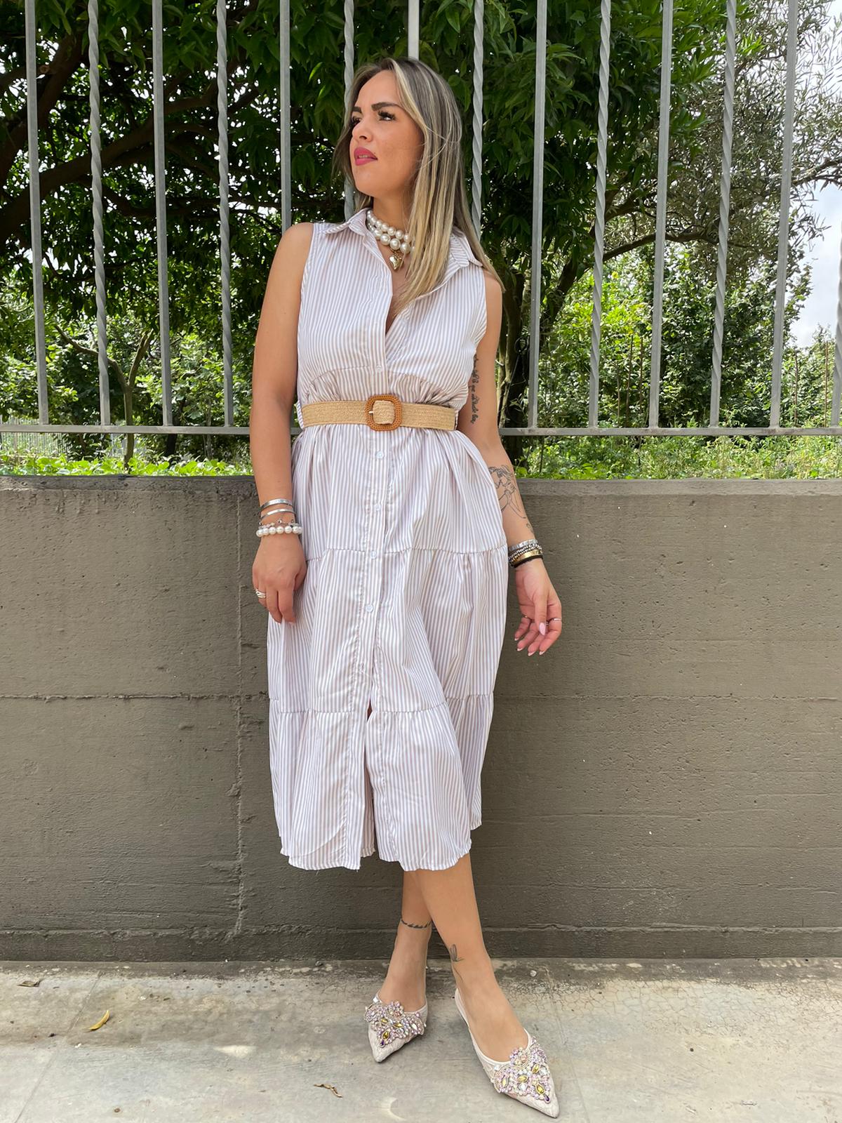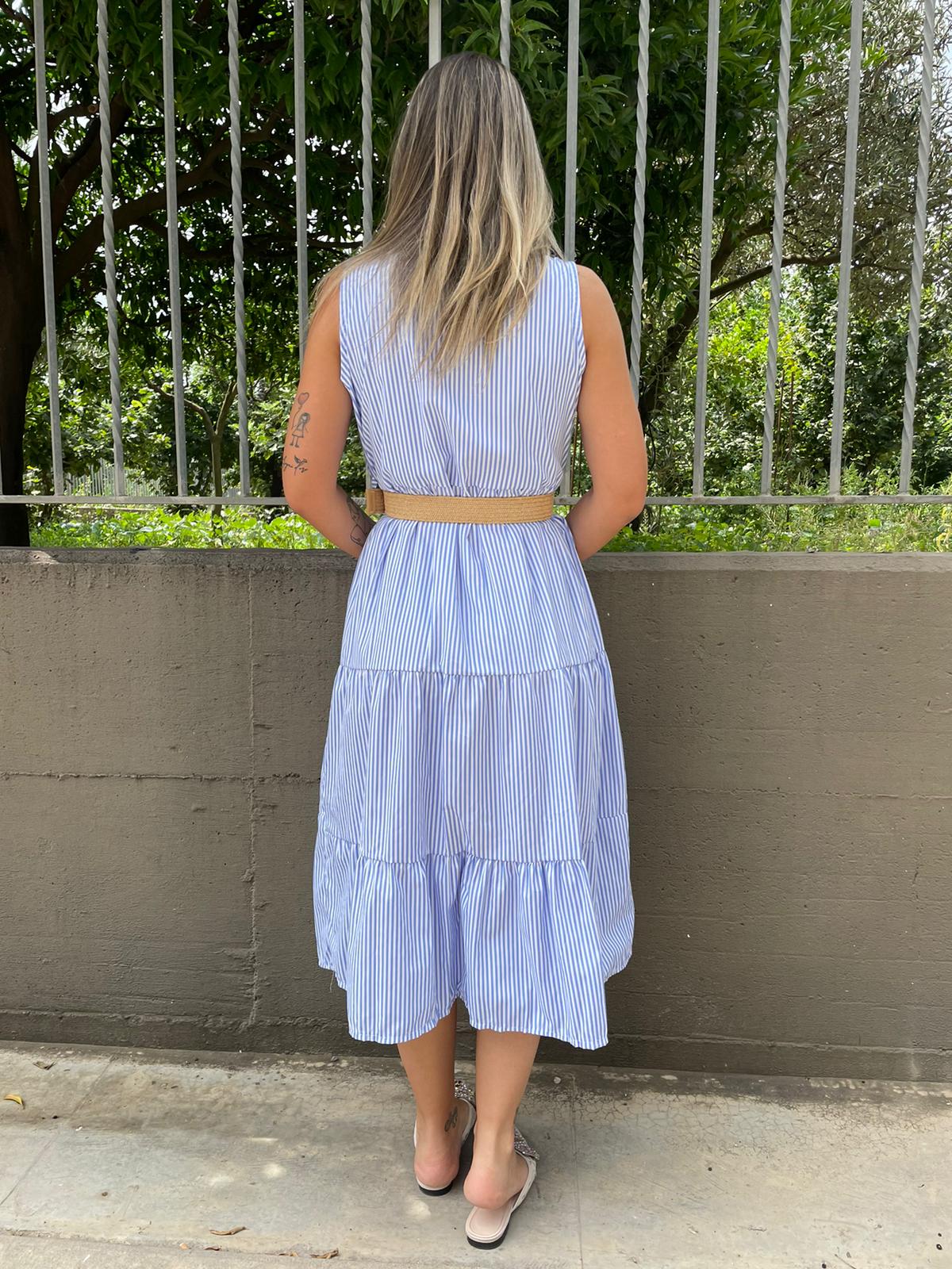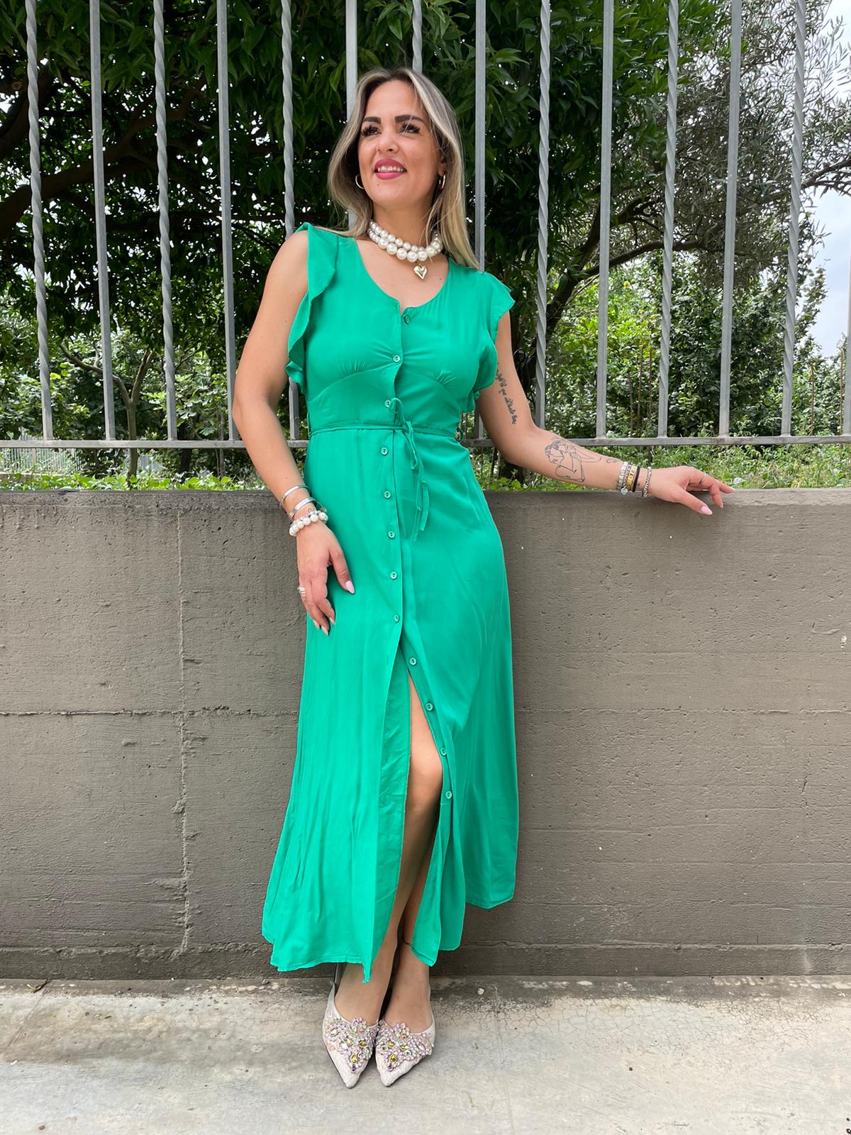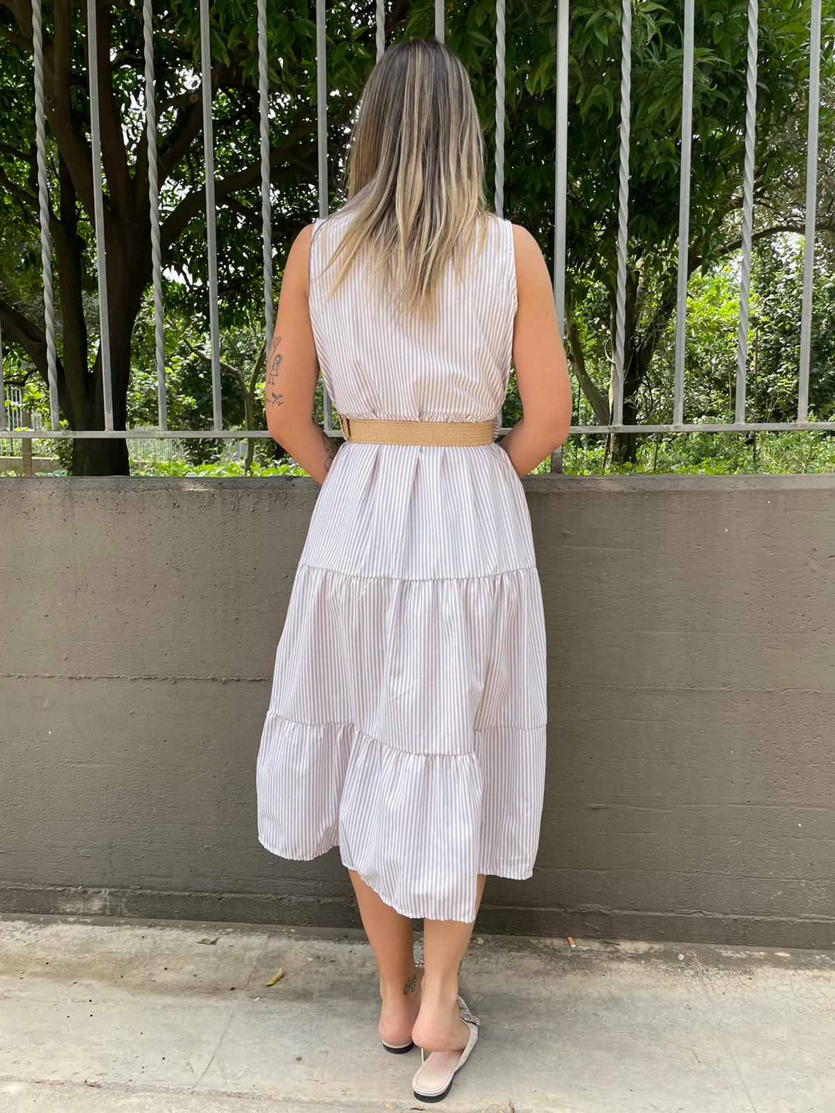 Vestito lungo effetto lino con parti ricamate e schiena scoperta