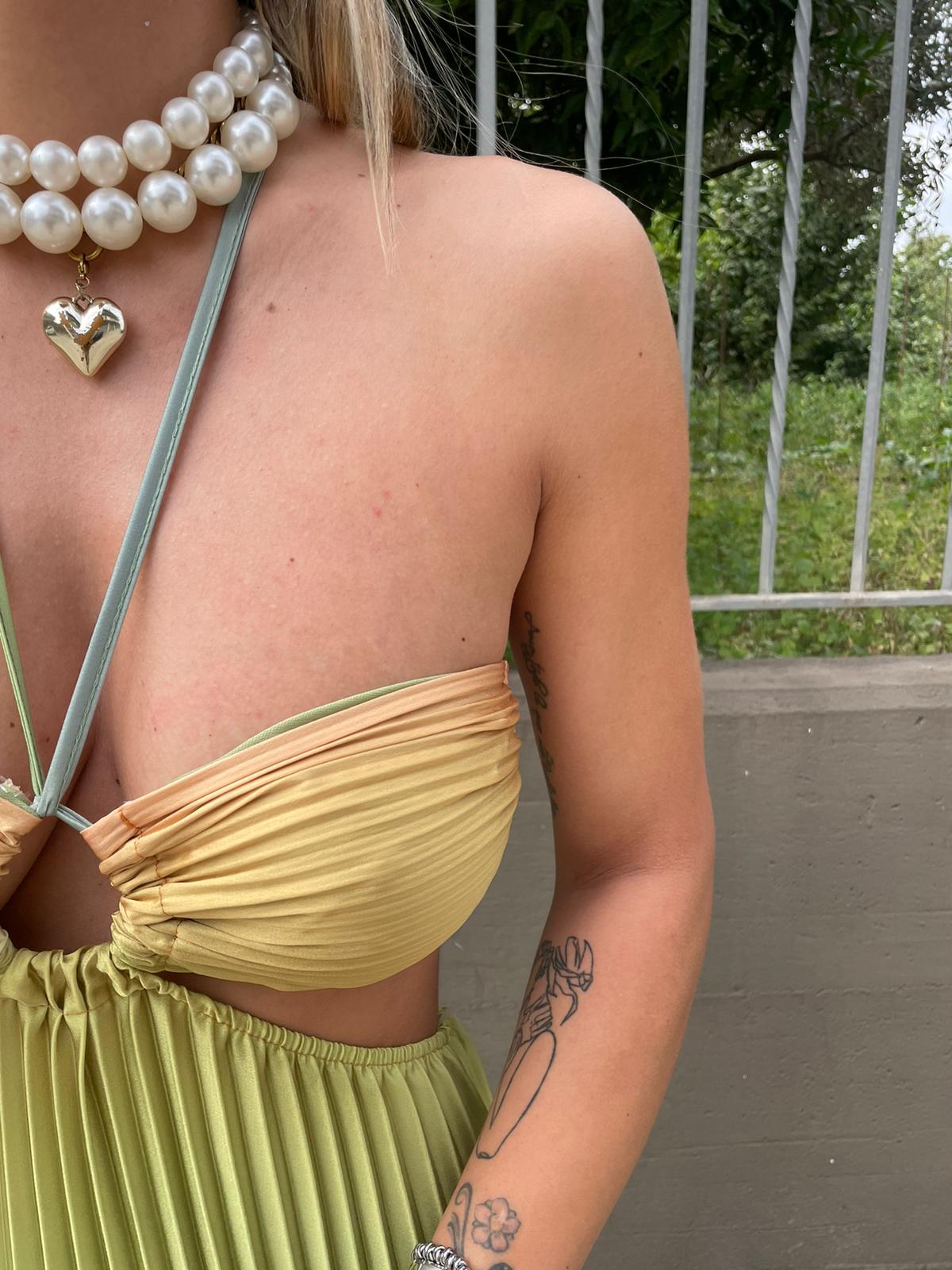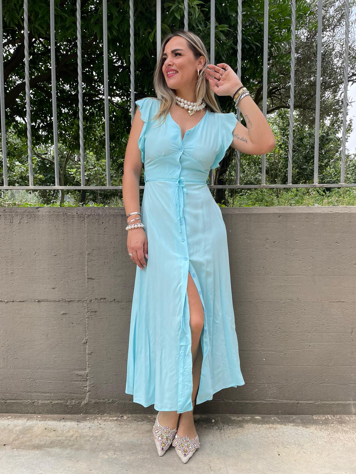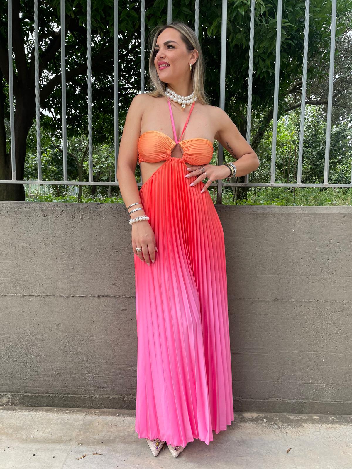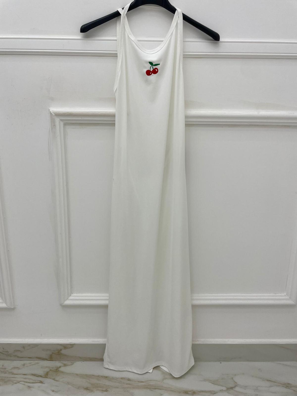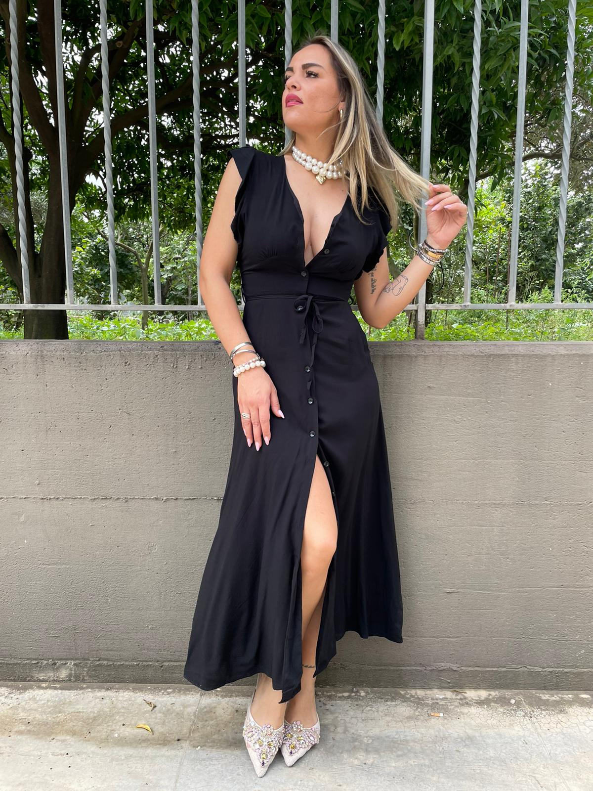 Vestito lungo effetto lino con parti ricamate e schiena scoperta