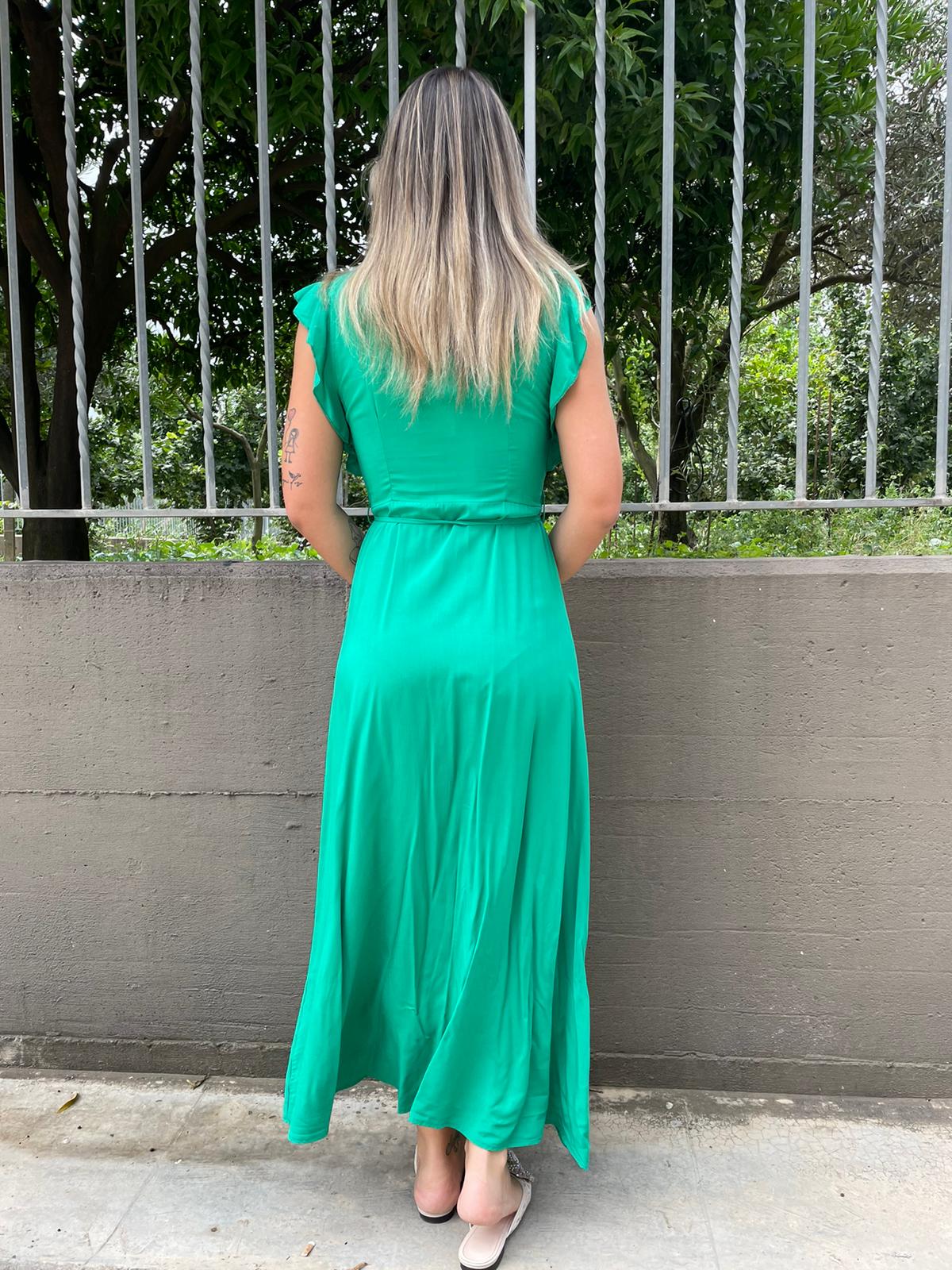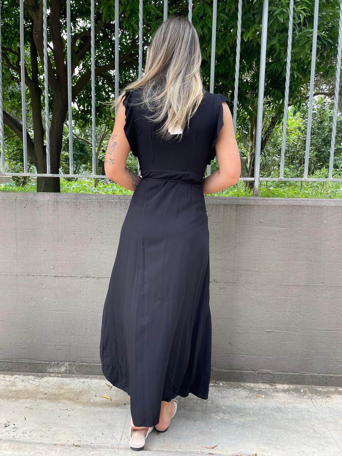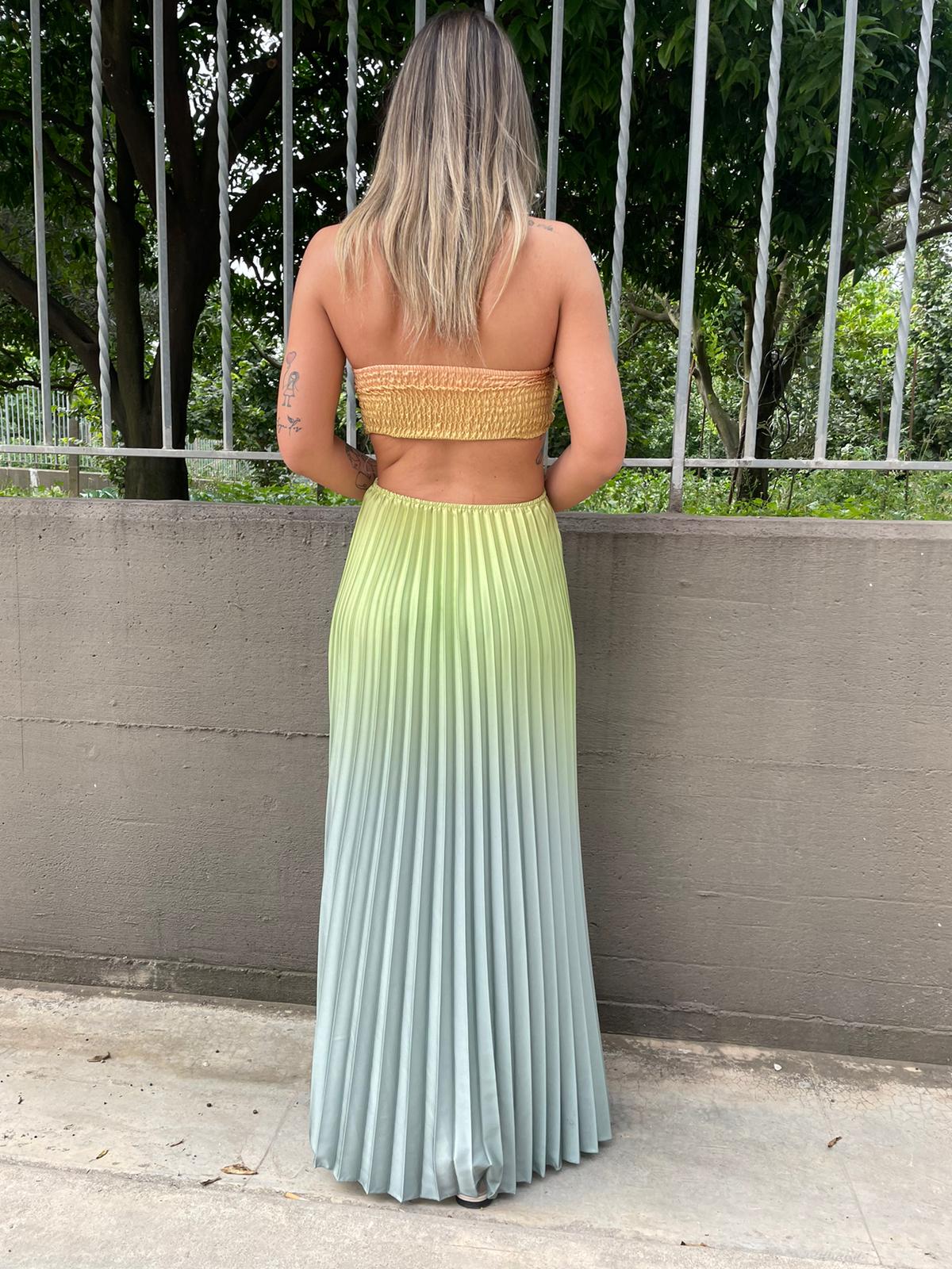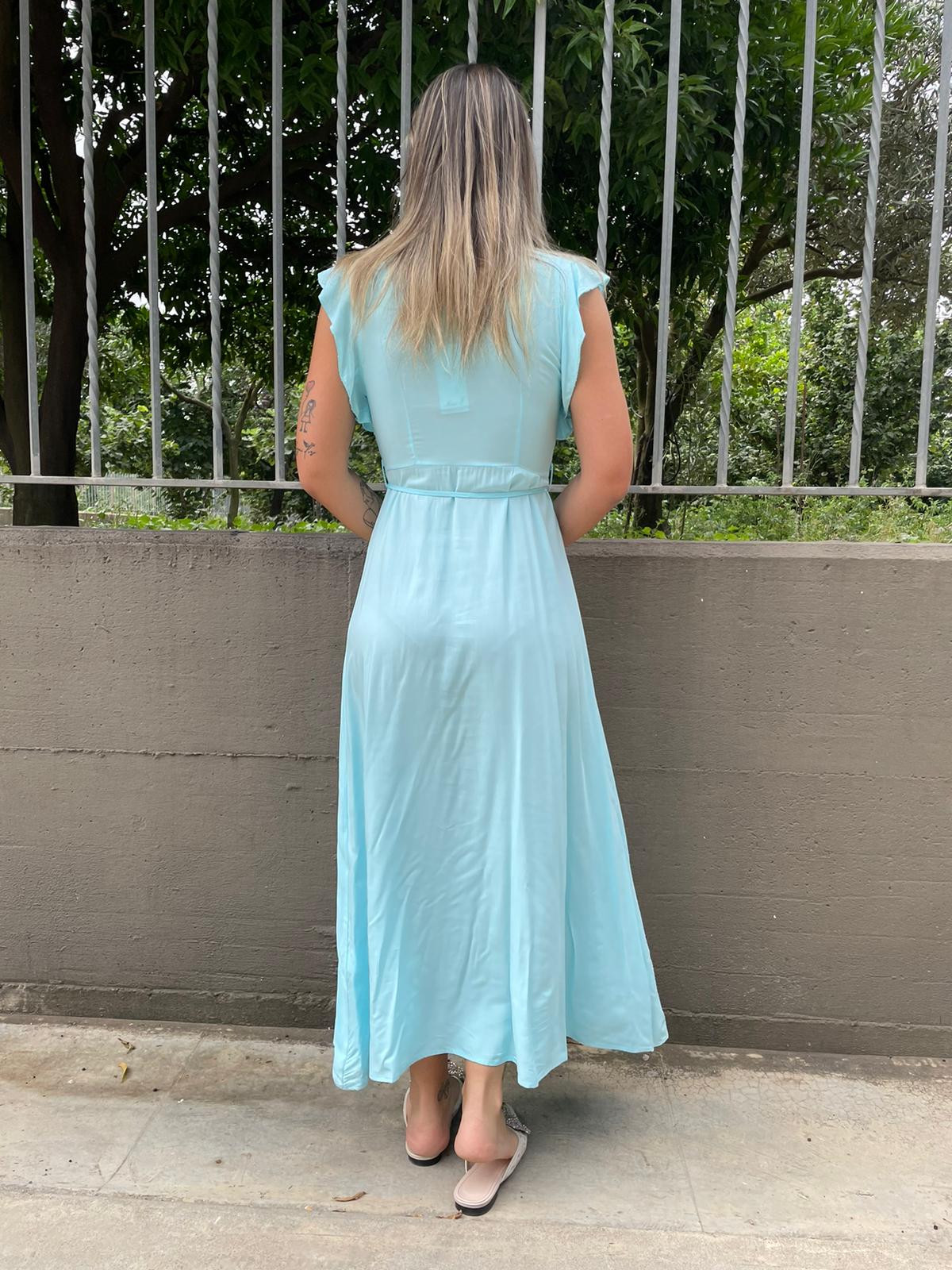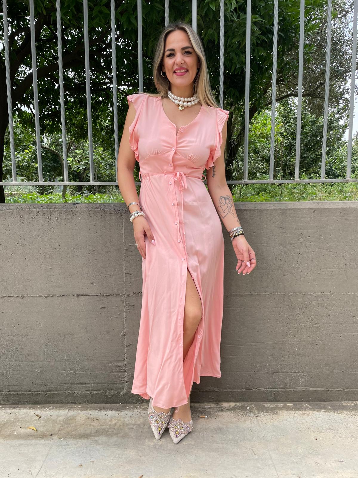 Vestito lungo effetto lino con parti ricamate e schiena scoperta