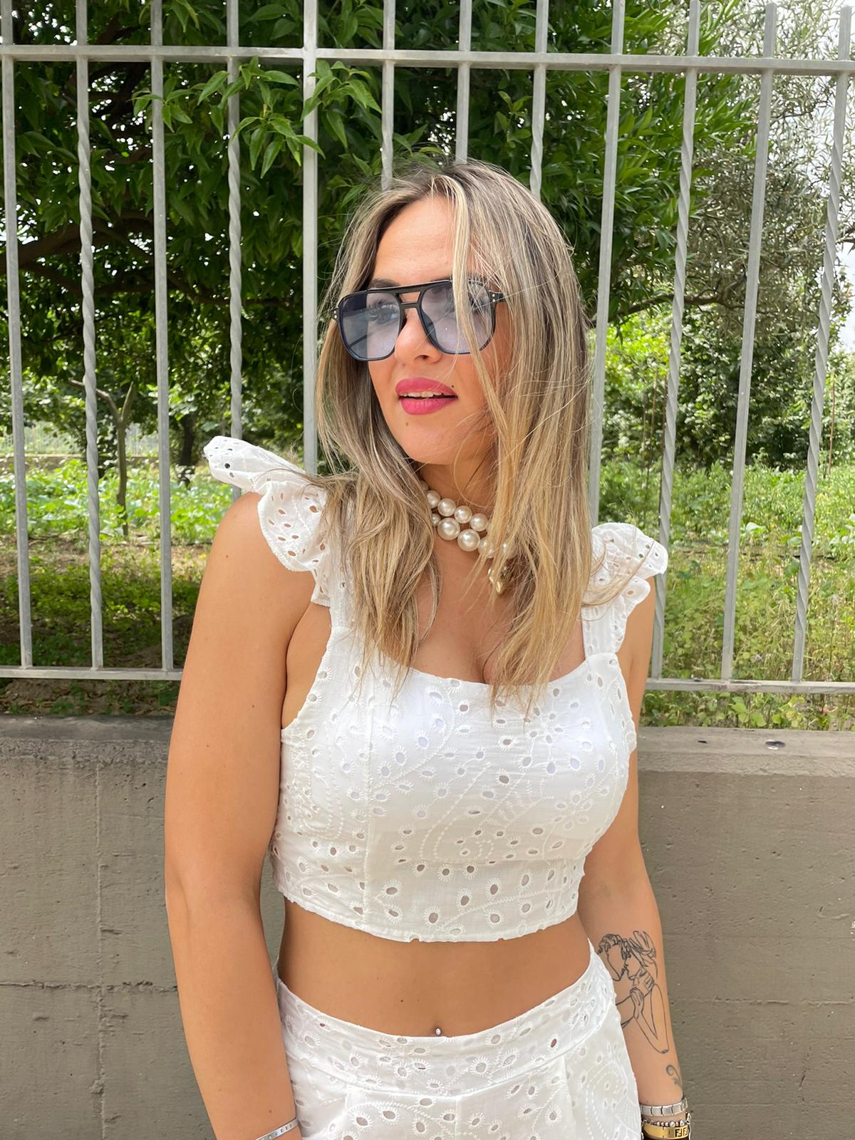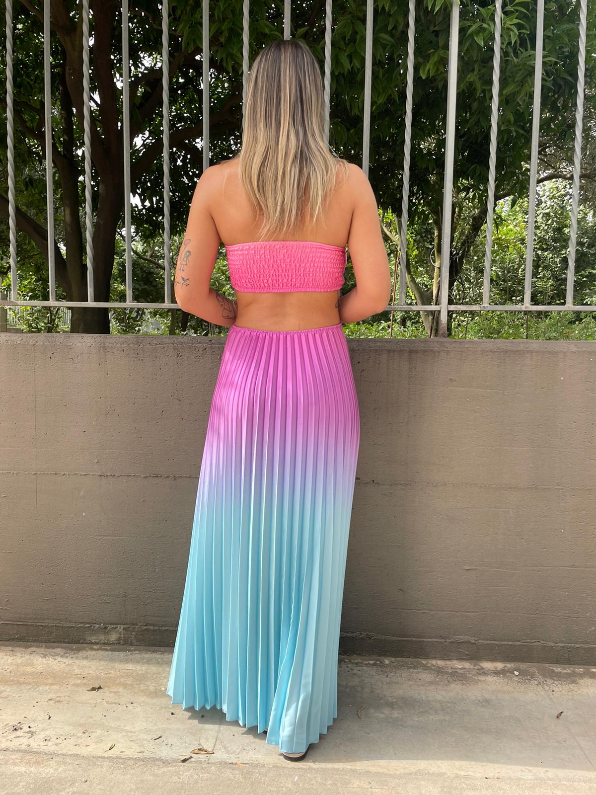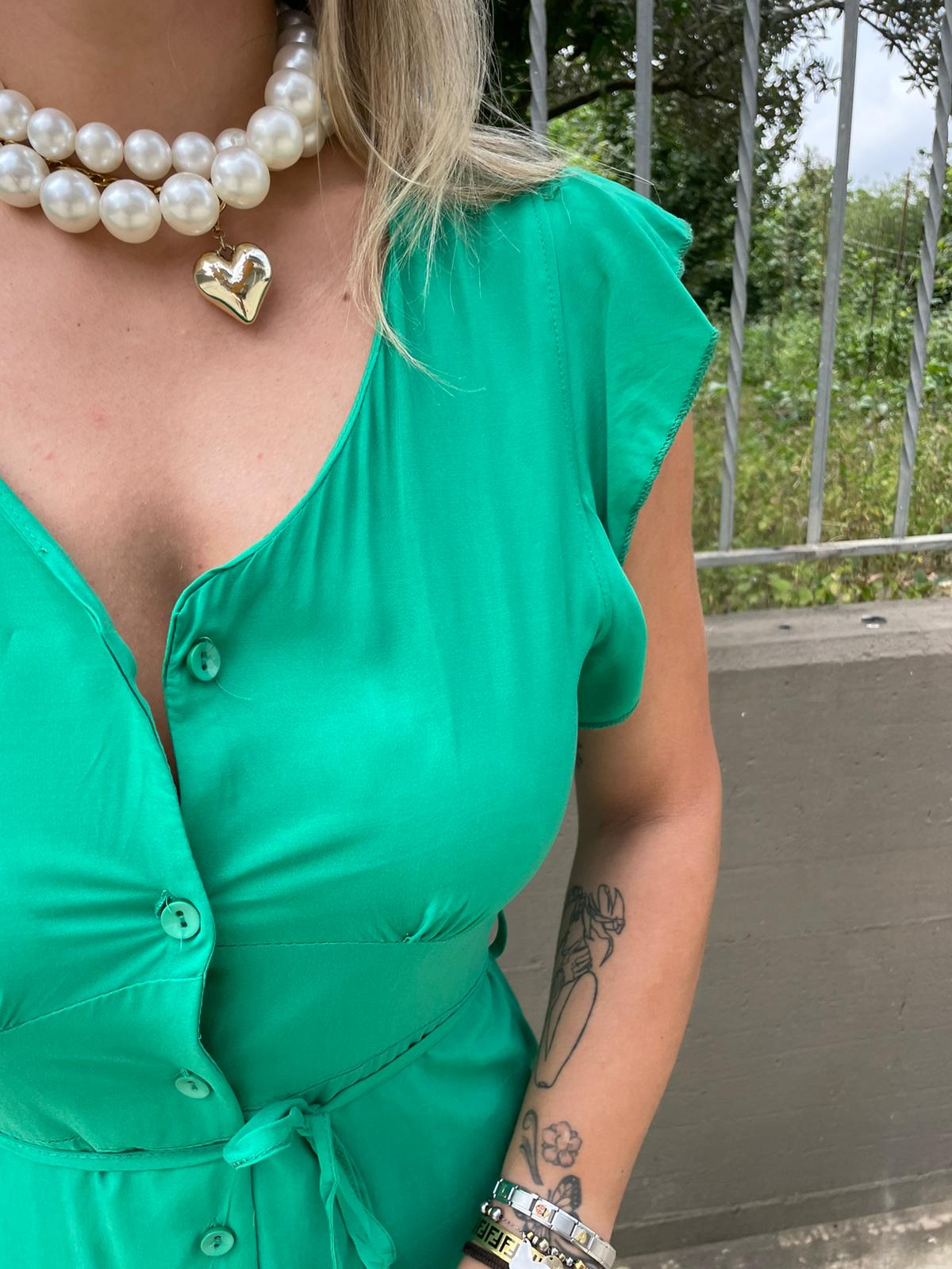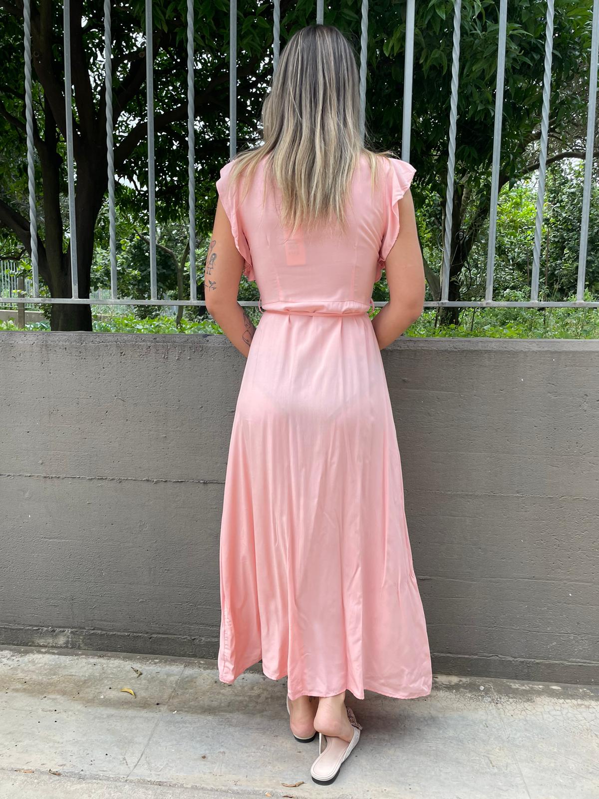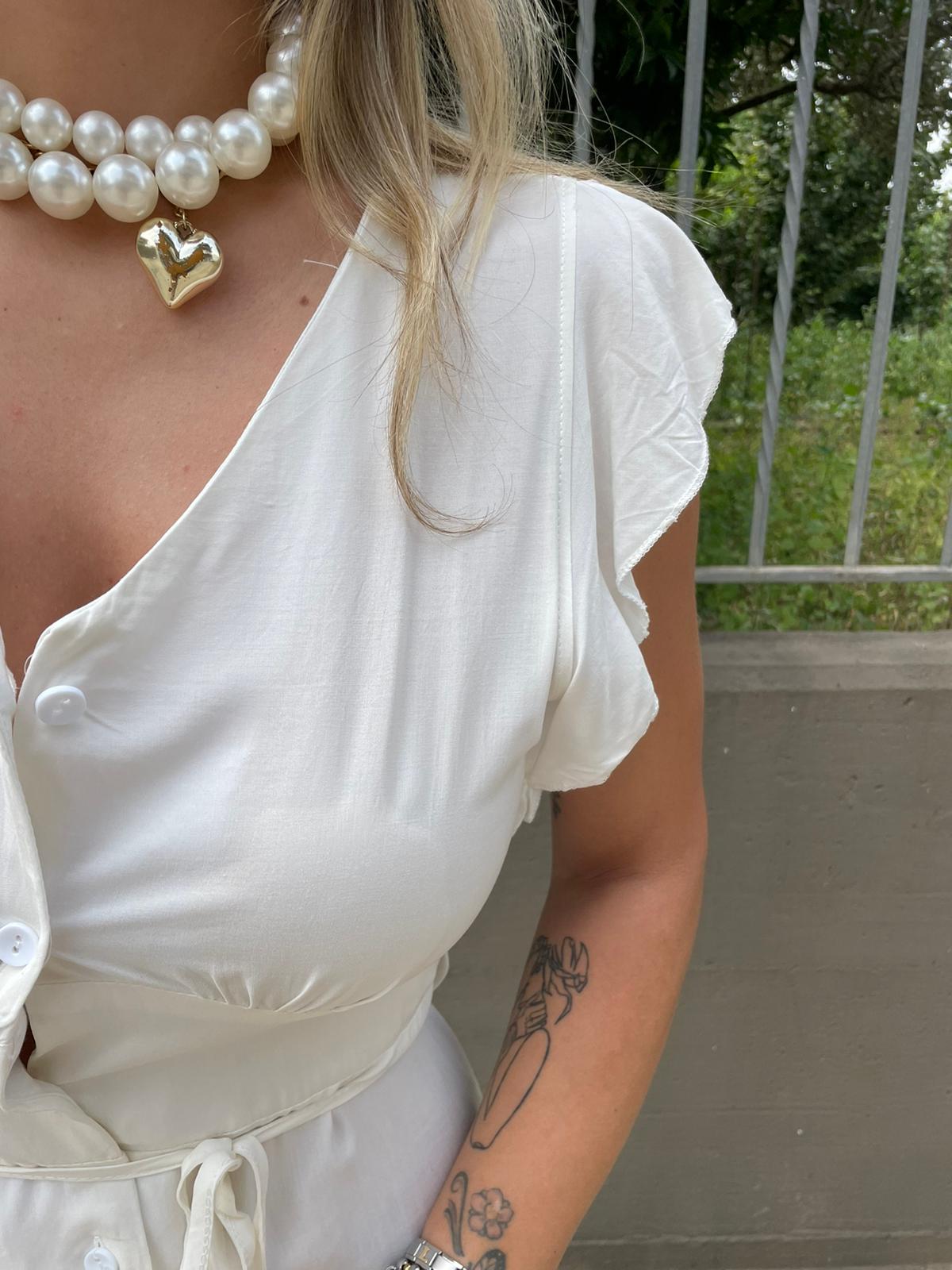 Vestito lungo effetto lino con parti ricamate e schiena scoperta