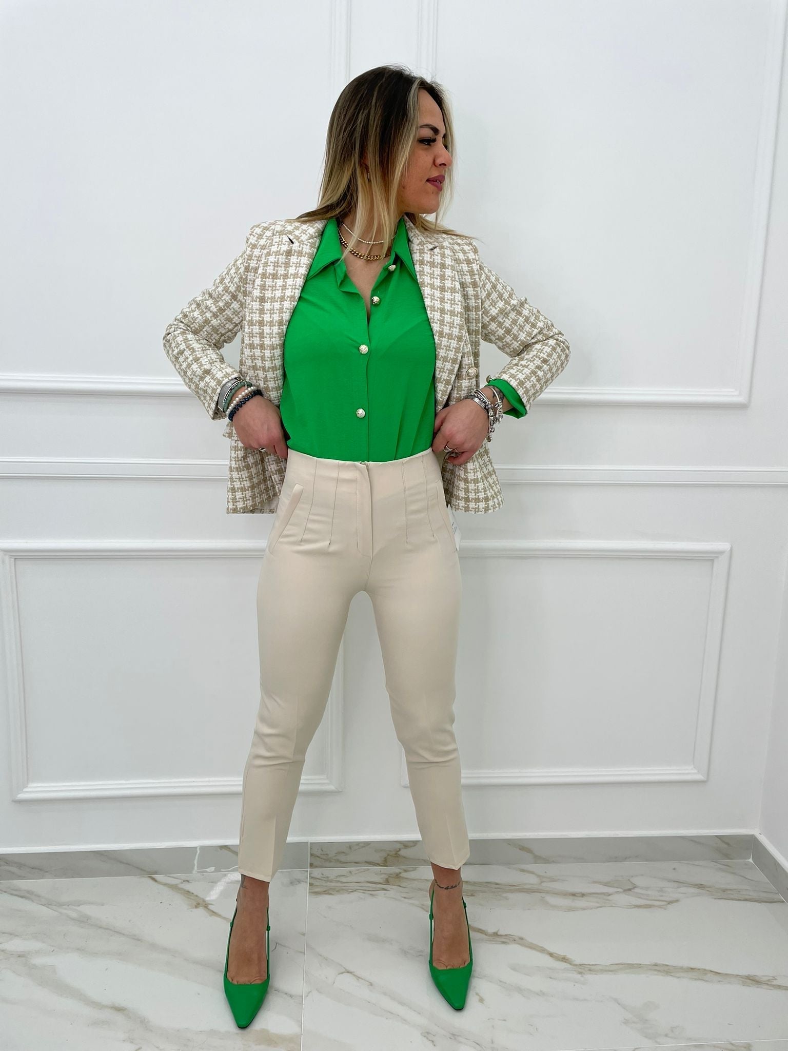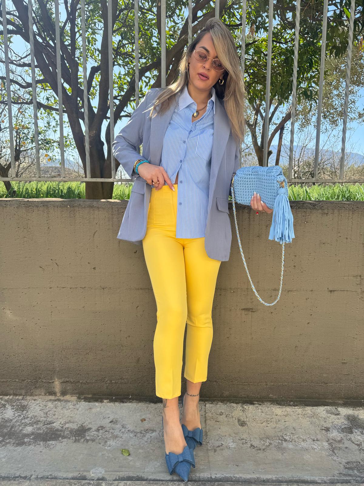 -La modella è una taglia 44, alta 1,79m e indossa una taglia M.