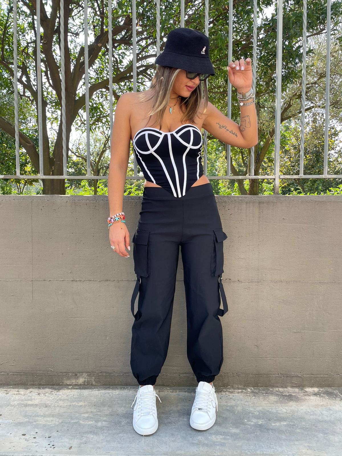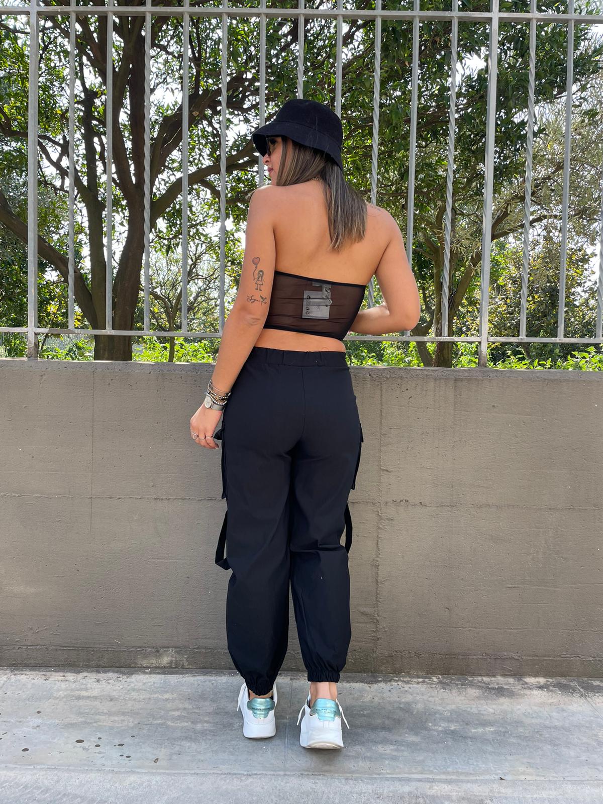 Pantalone cargo con elastico in vita e alle caviglie