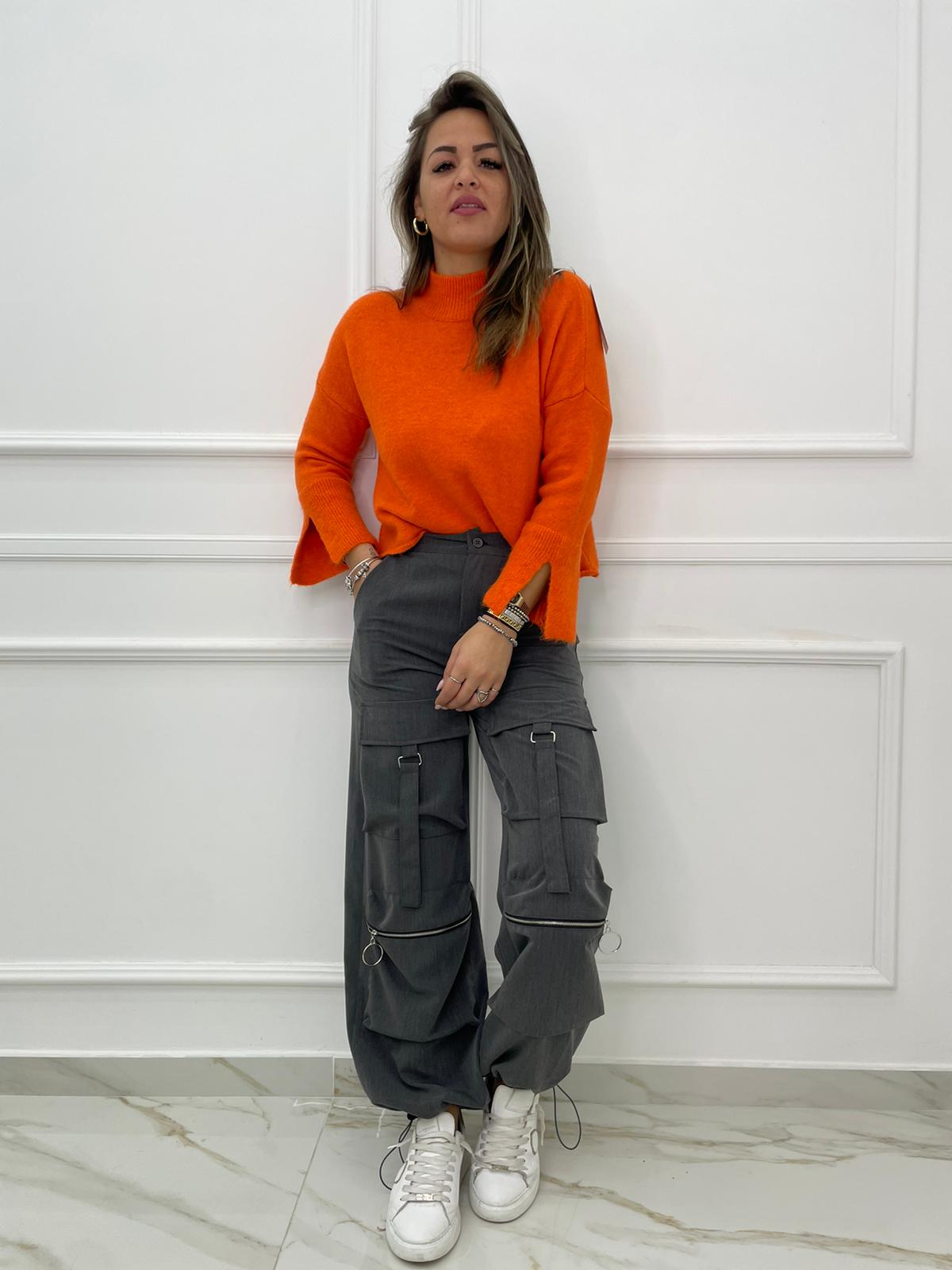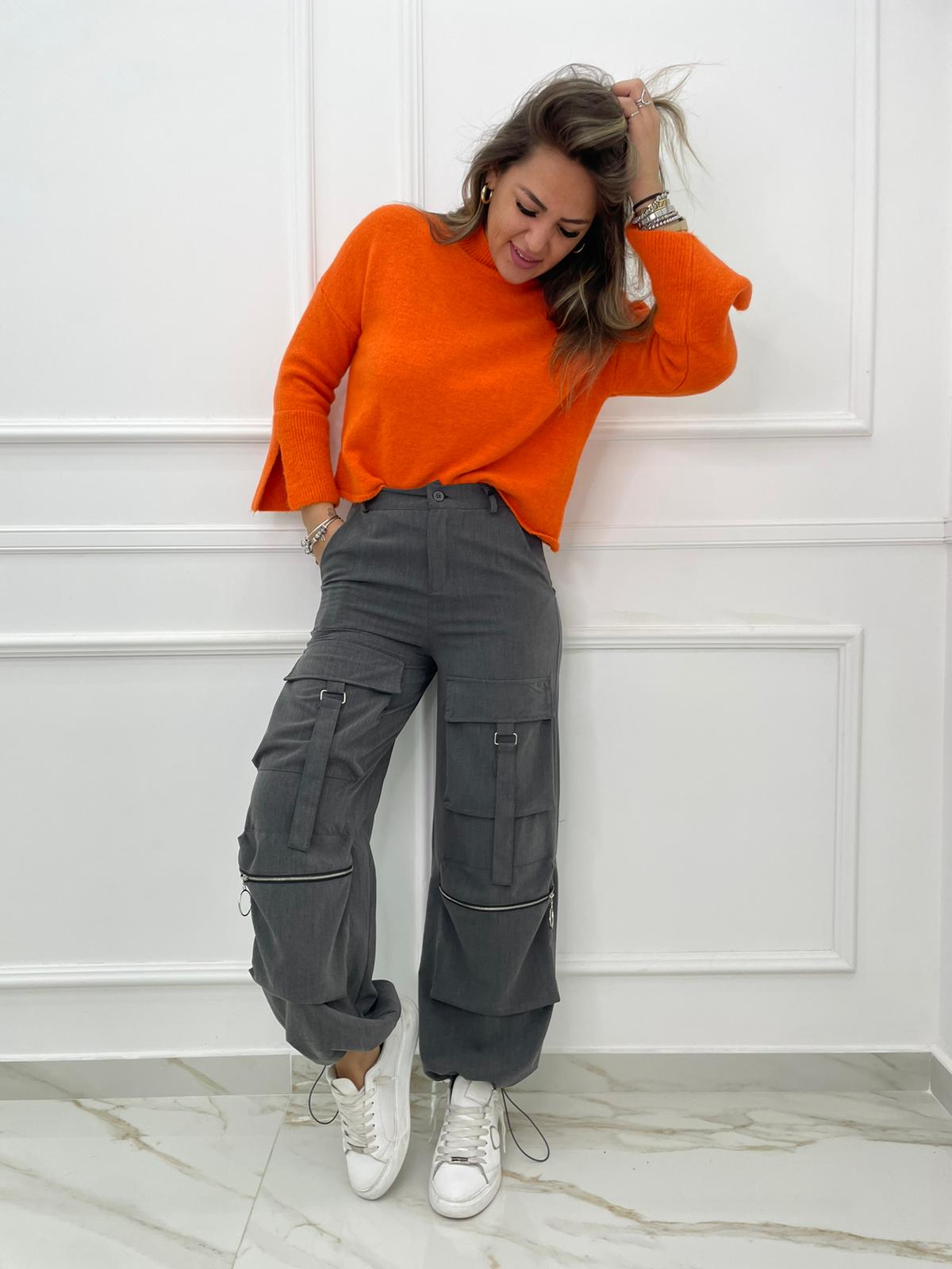 Pantalone cargo con tasconi ed elastico sotto