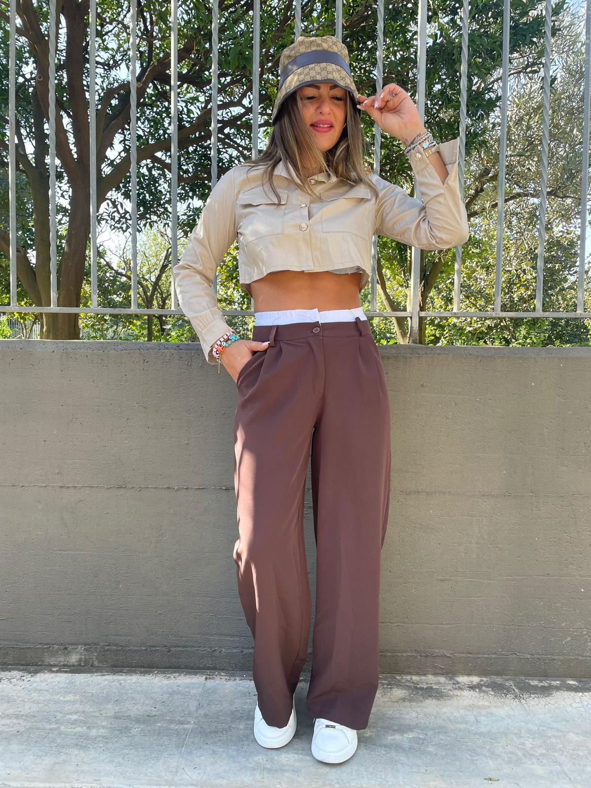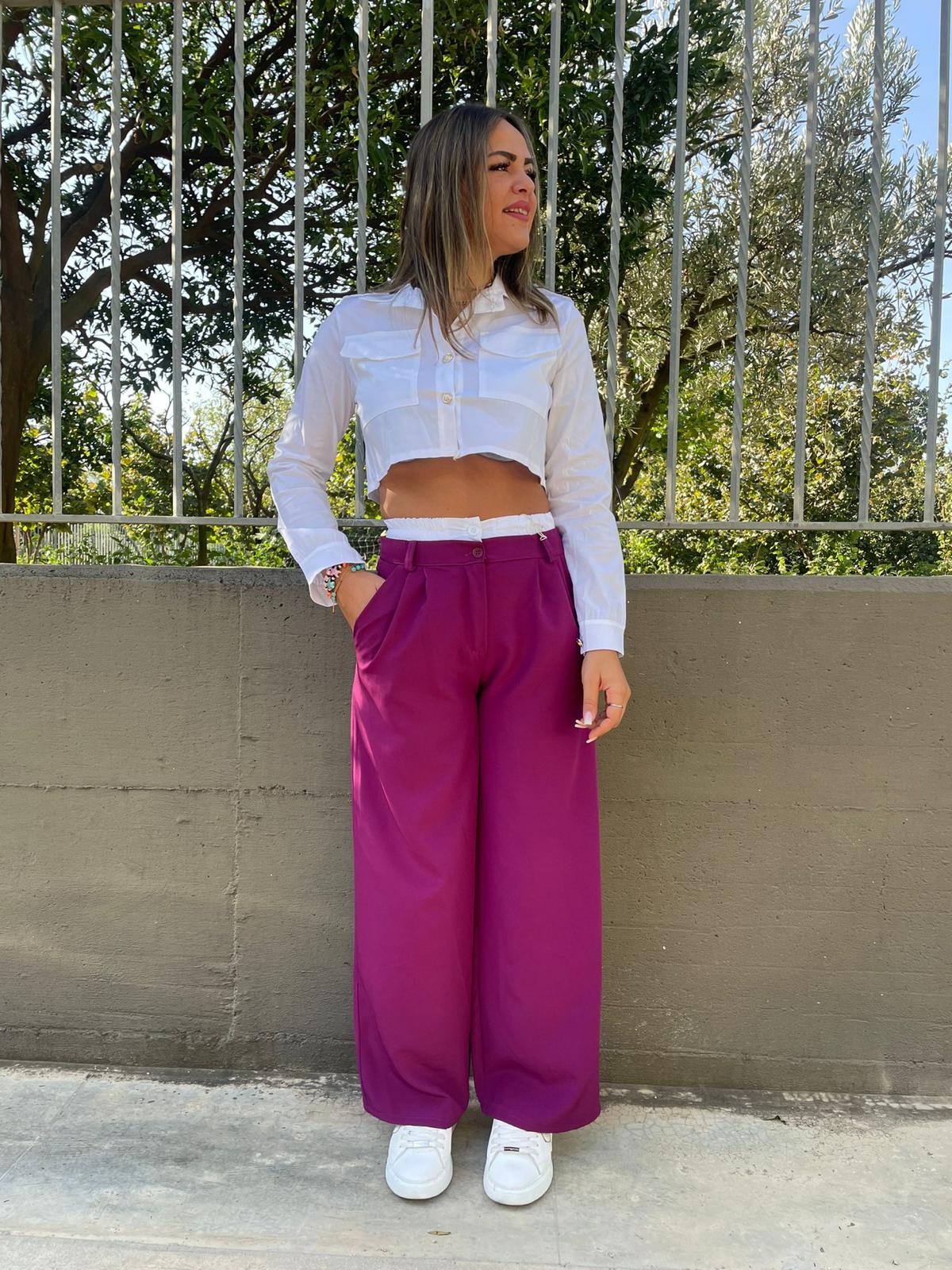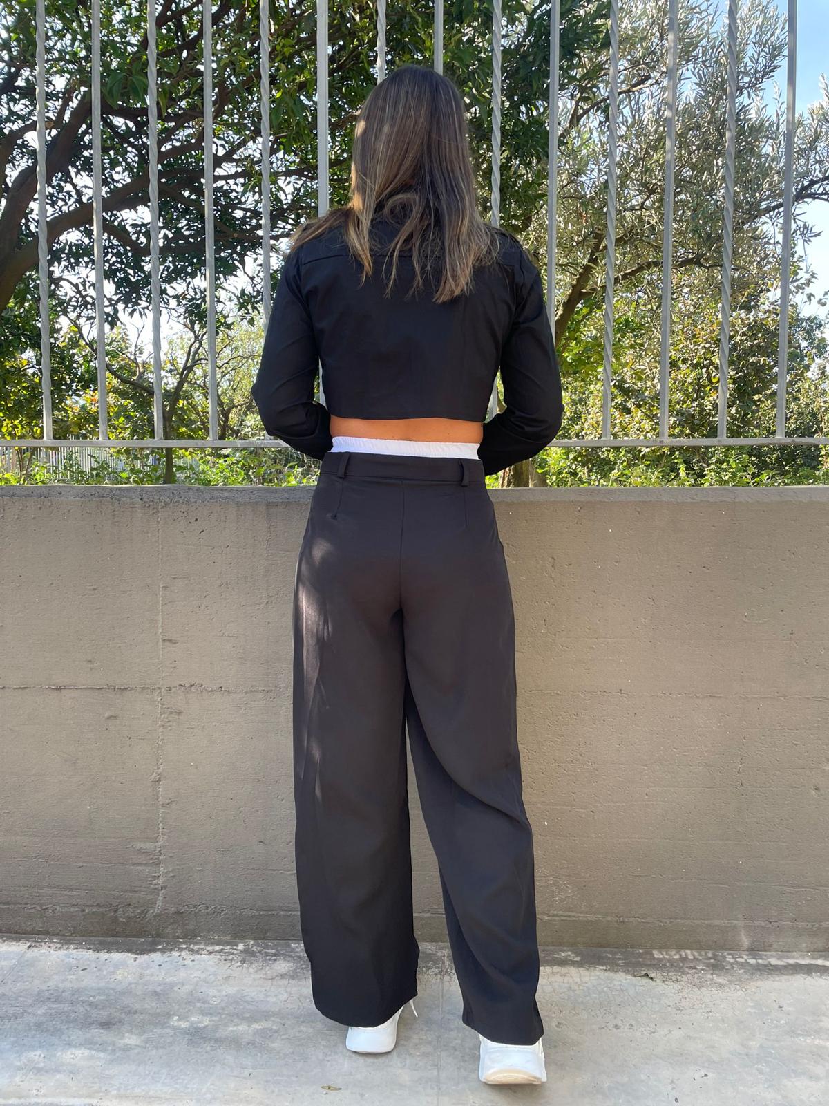 Pantalone palazzo con elastico in vista