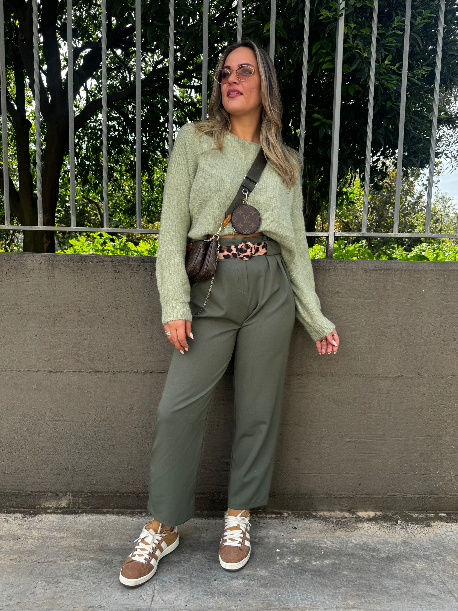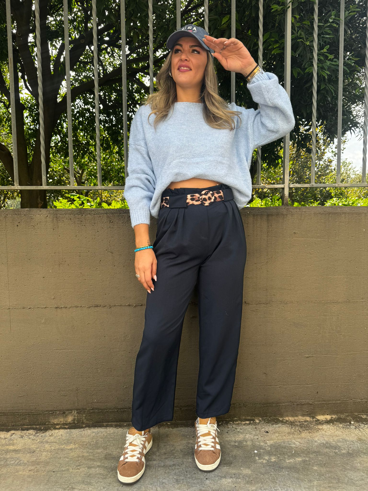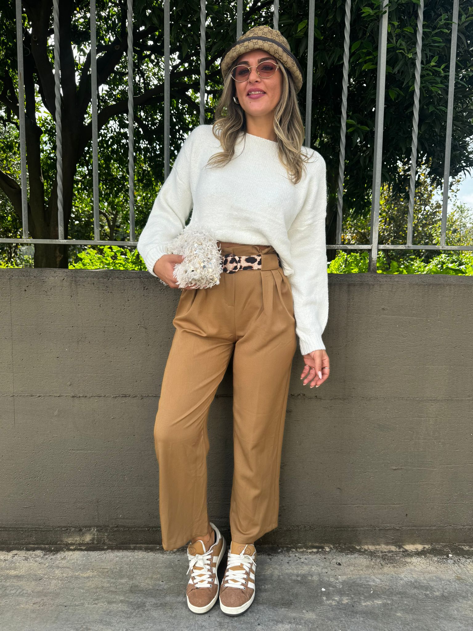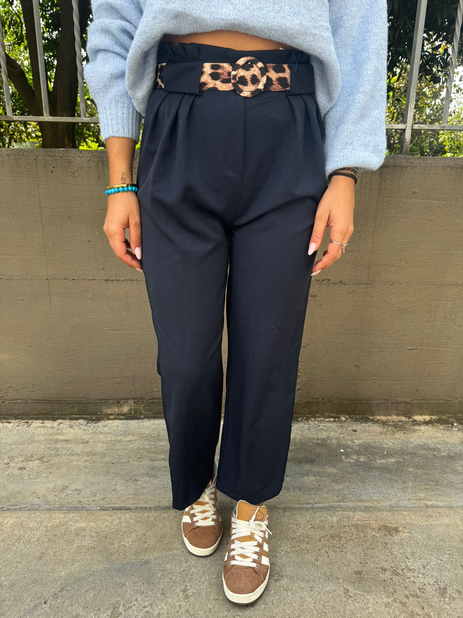 Pantalone vita alta con cintura animalier