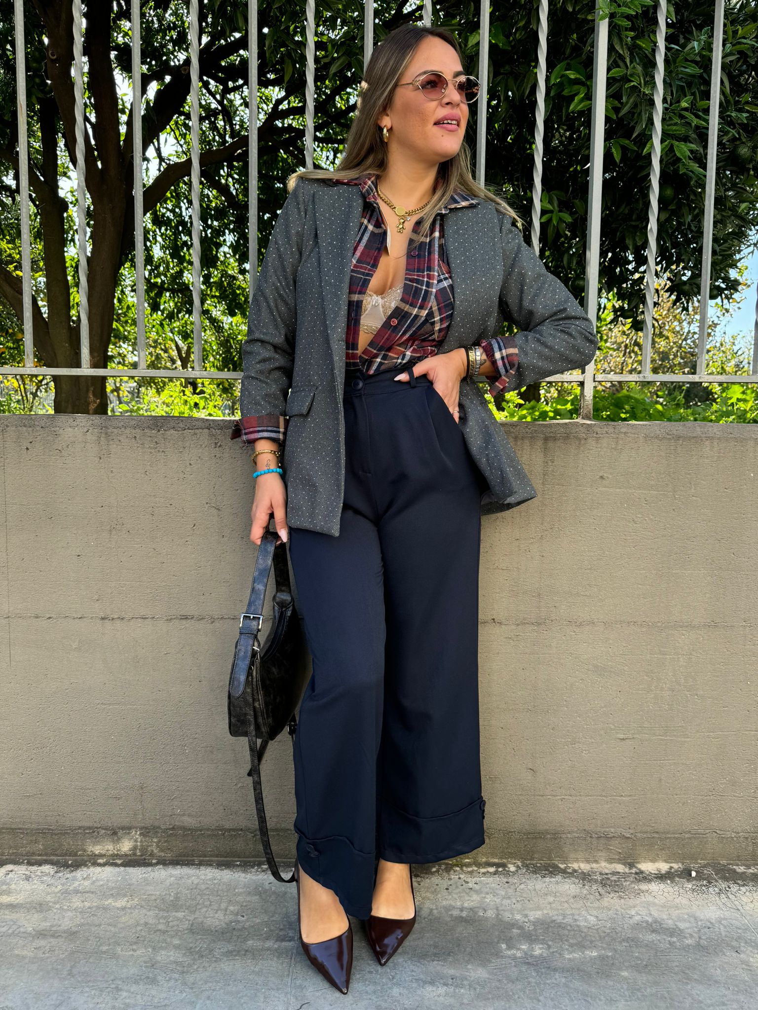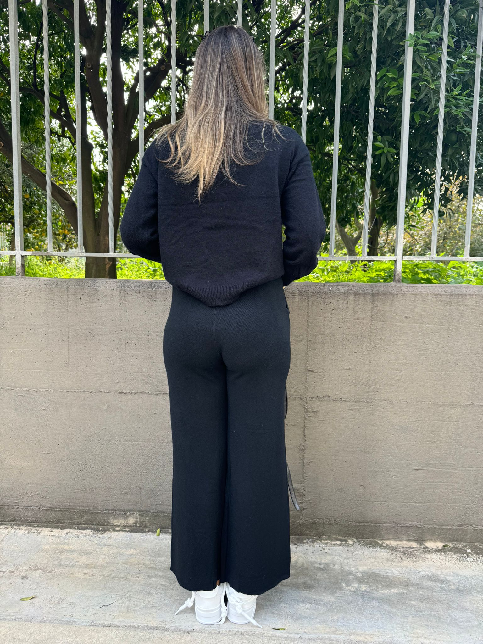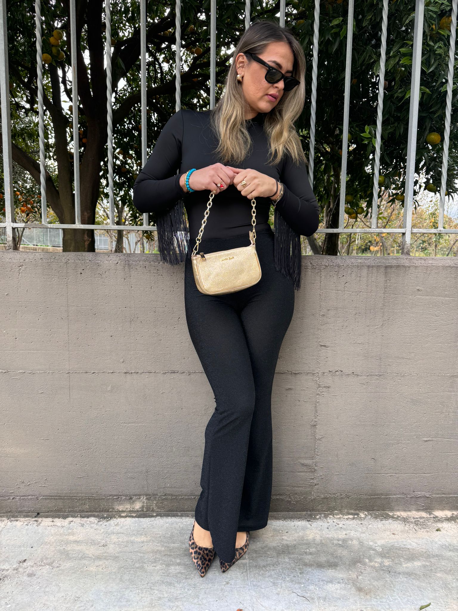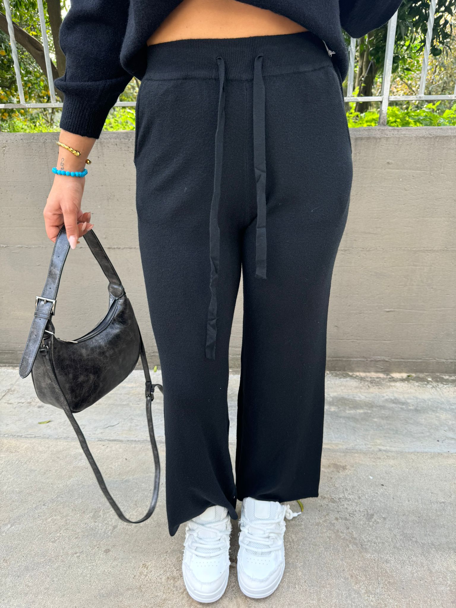 Pantalone nero palazzo con brillantini