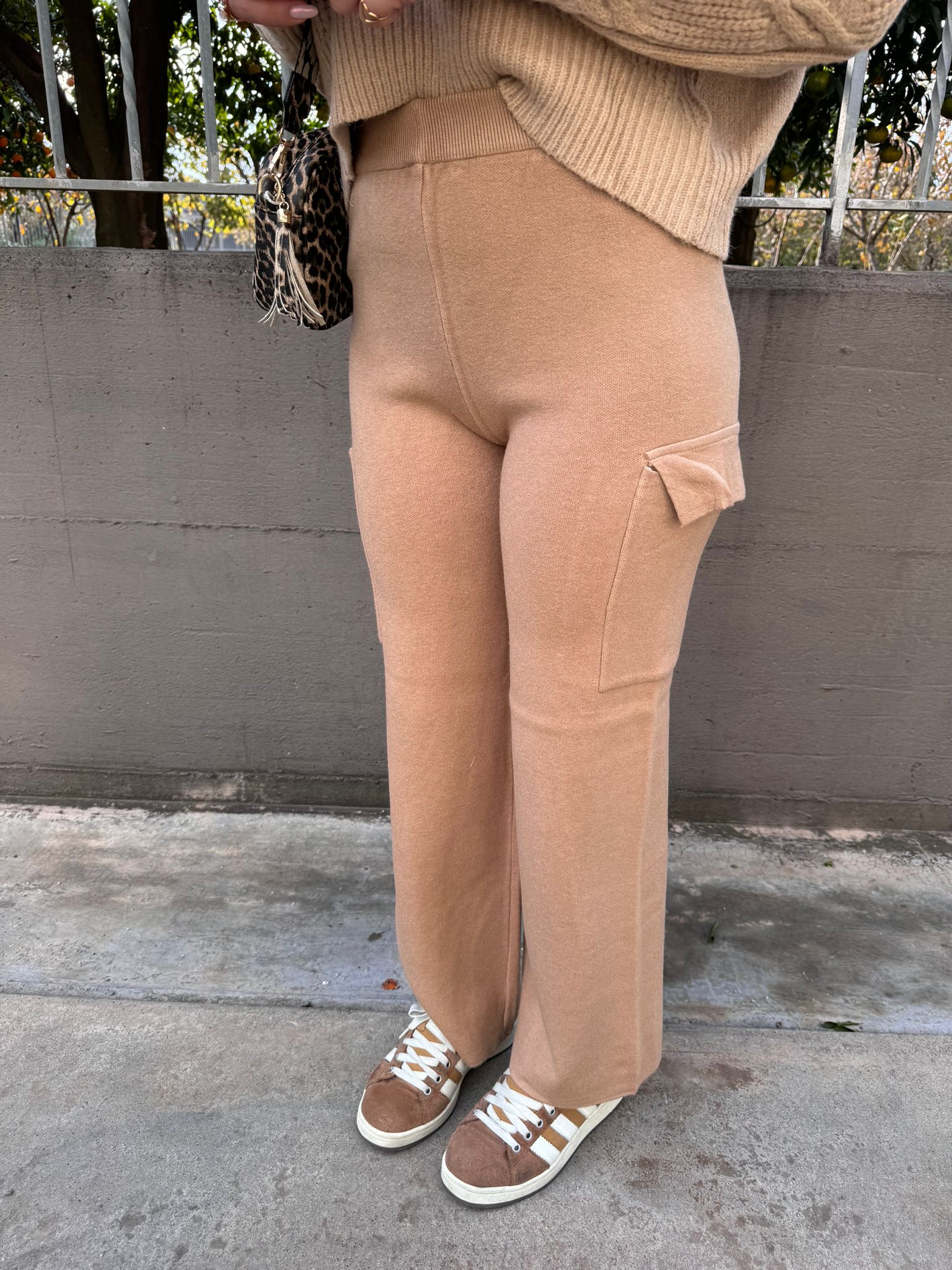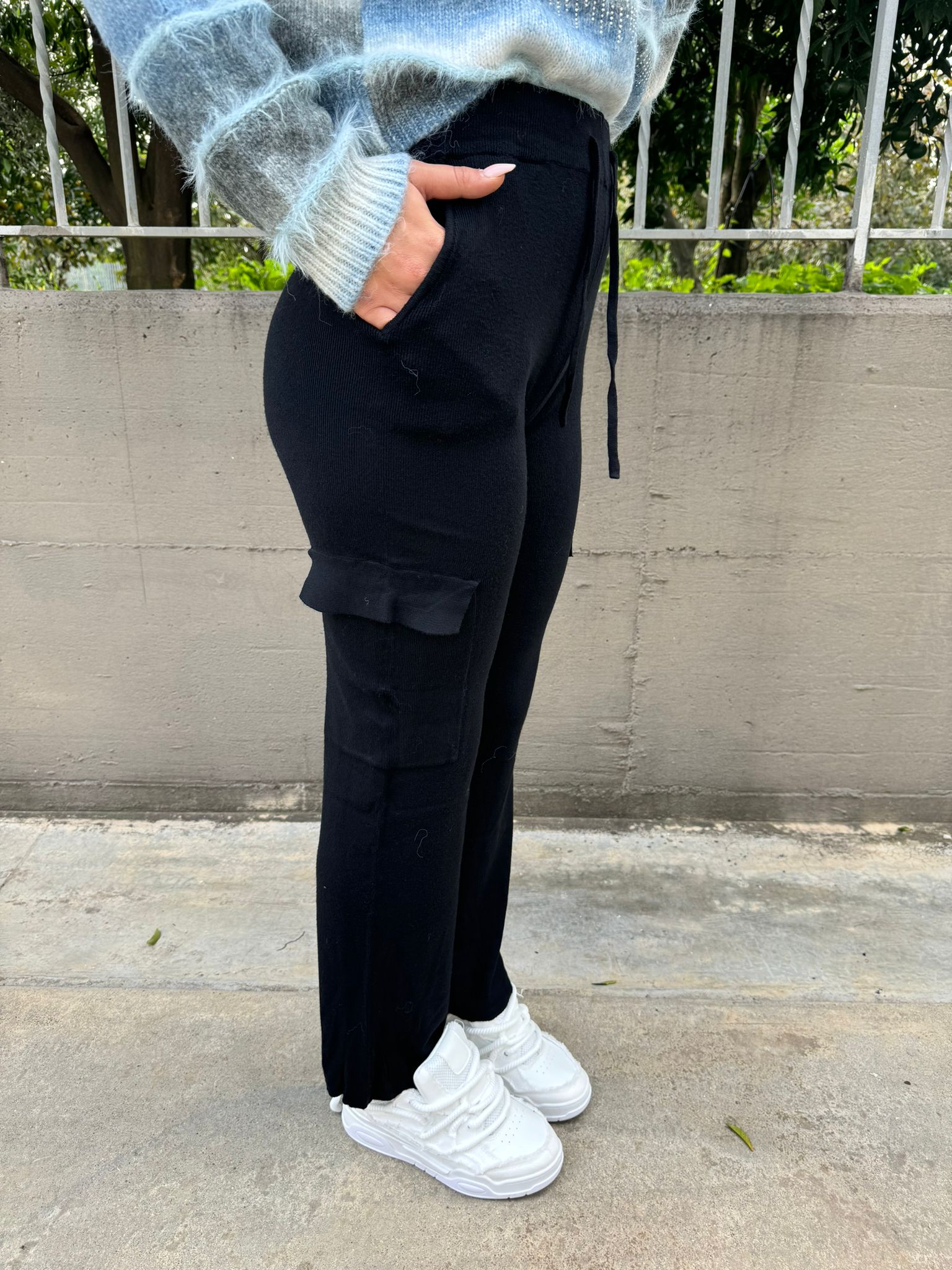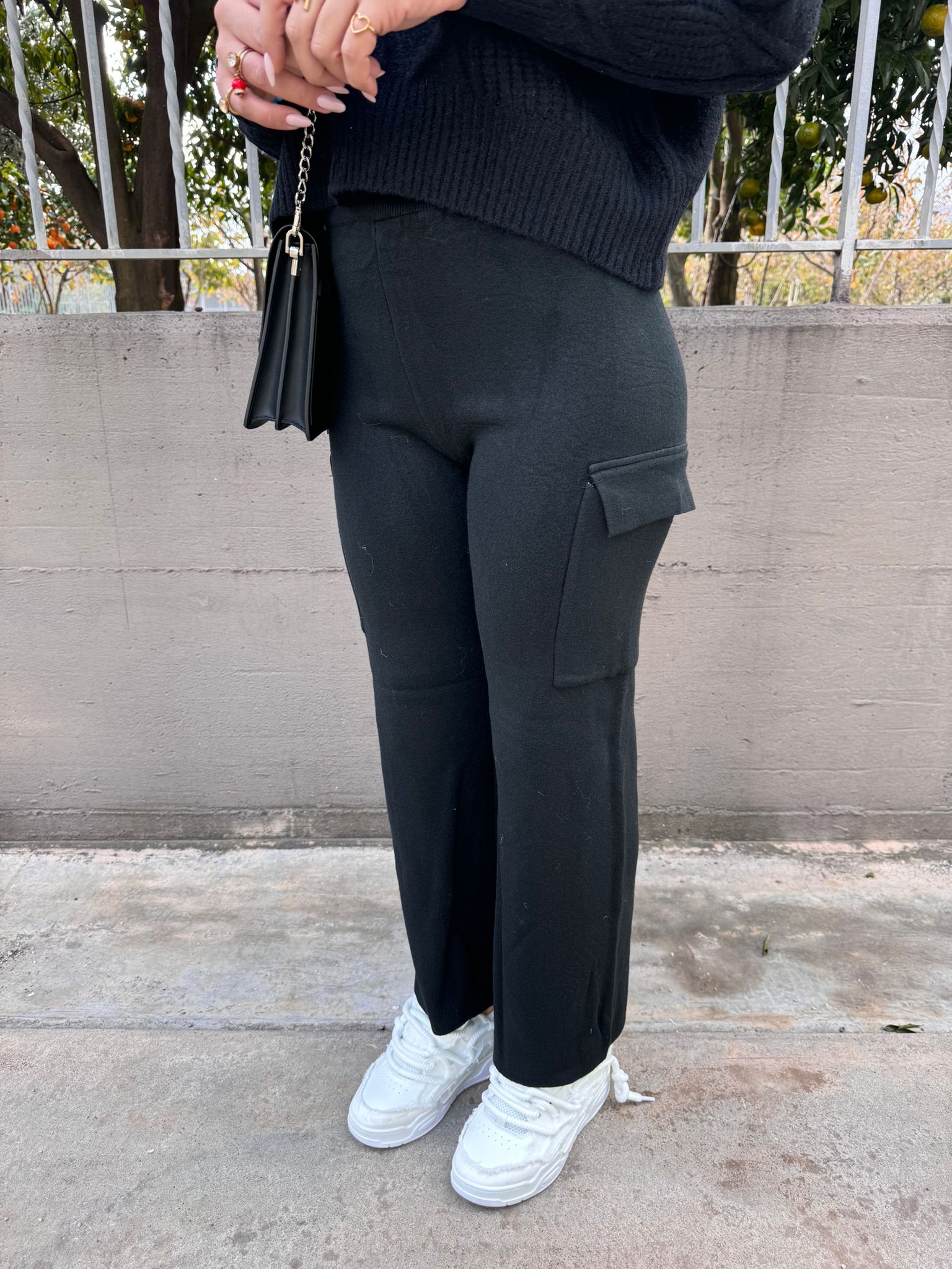 Pantalone in simil lana modello cargo