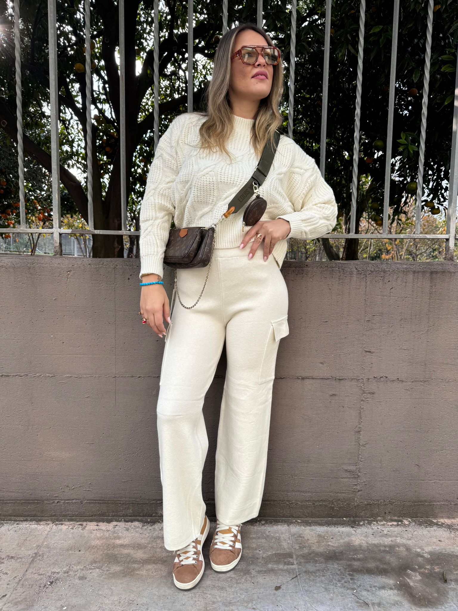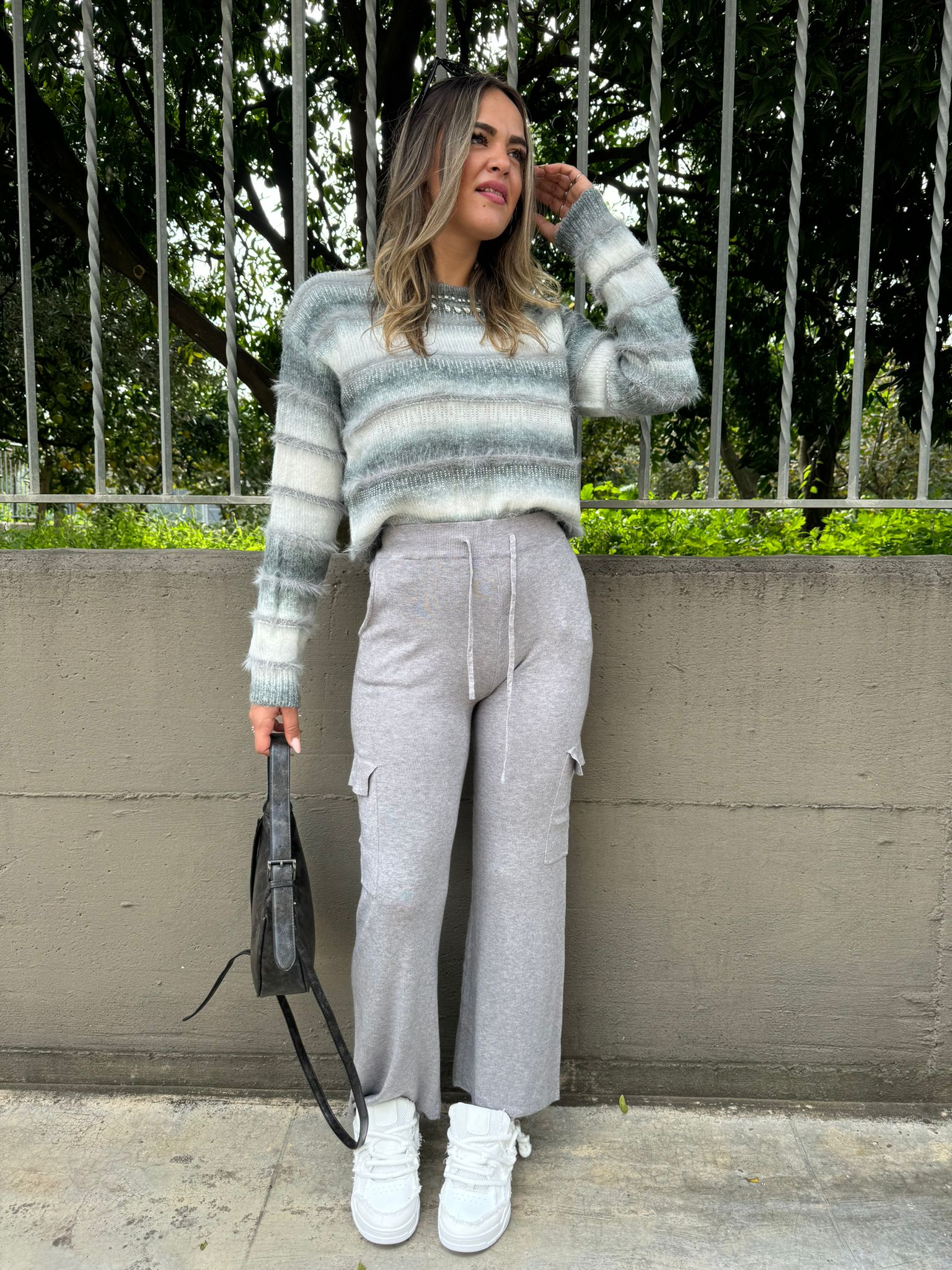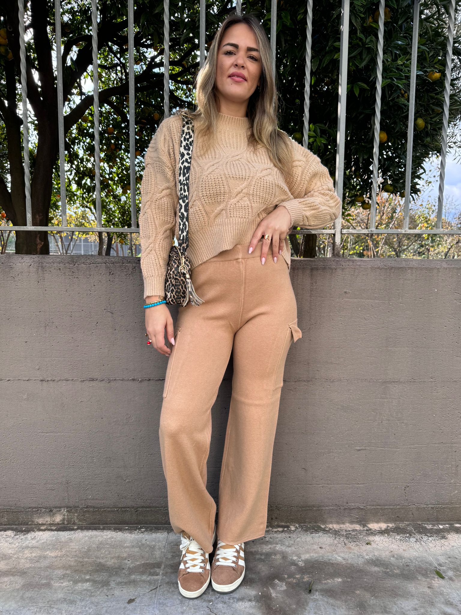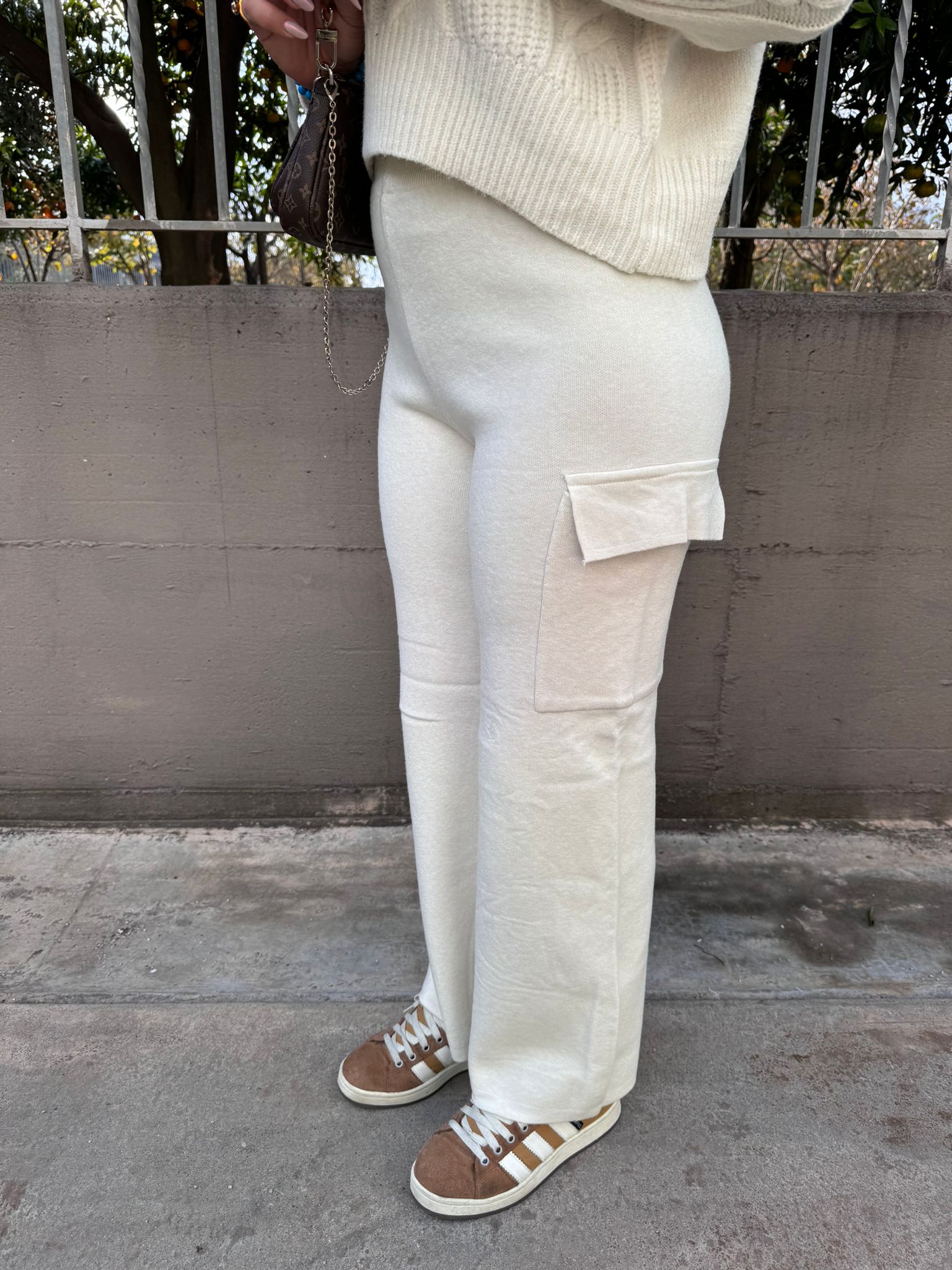 Pantalone in simil lana modello cargo