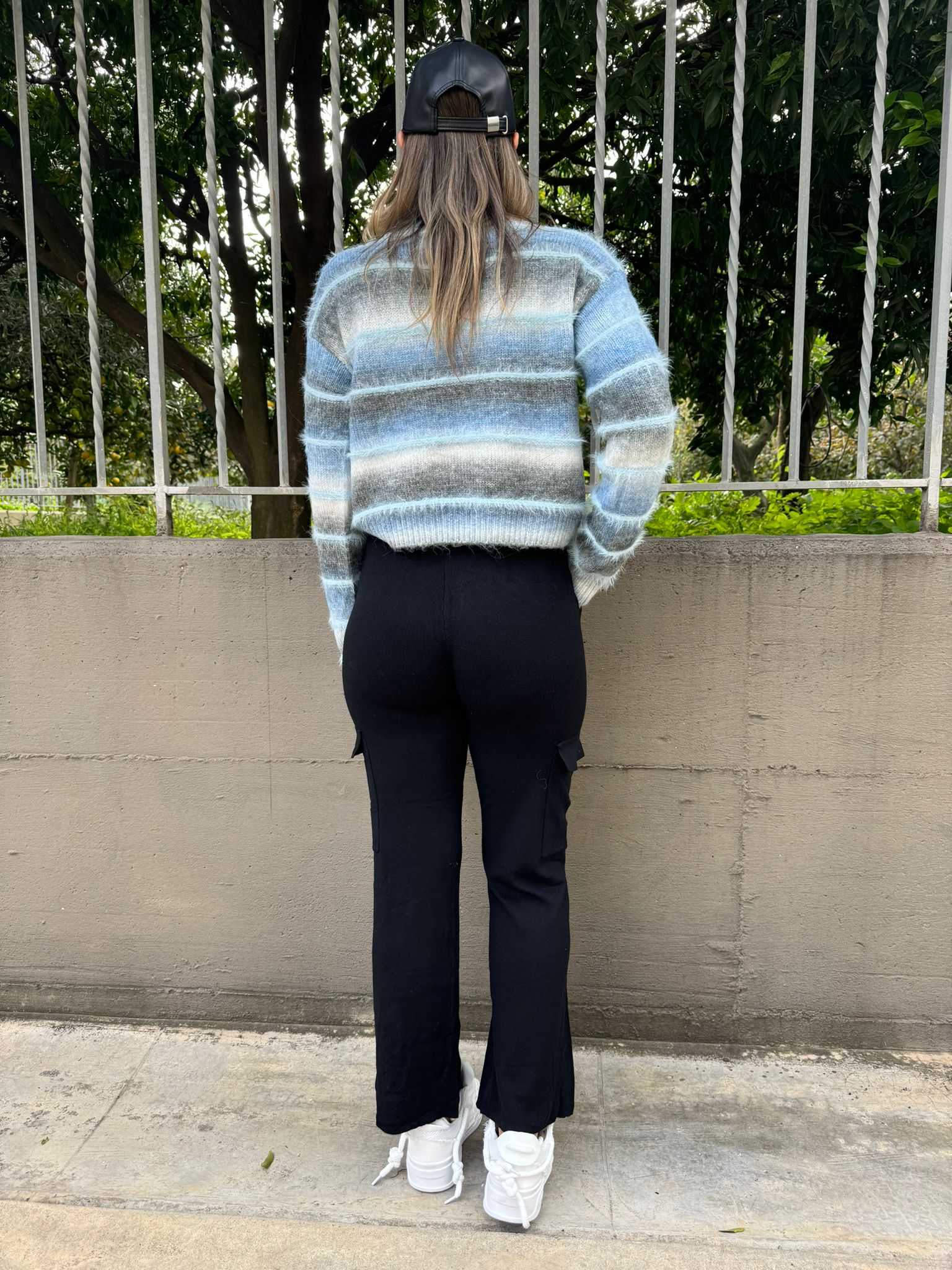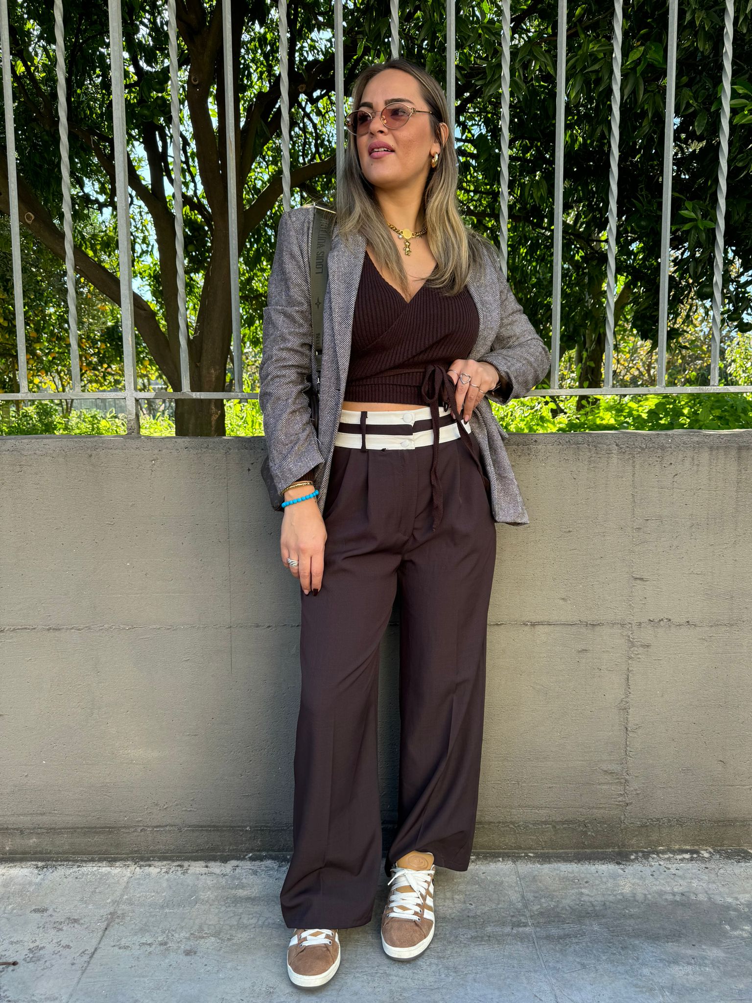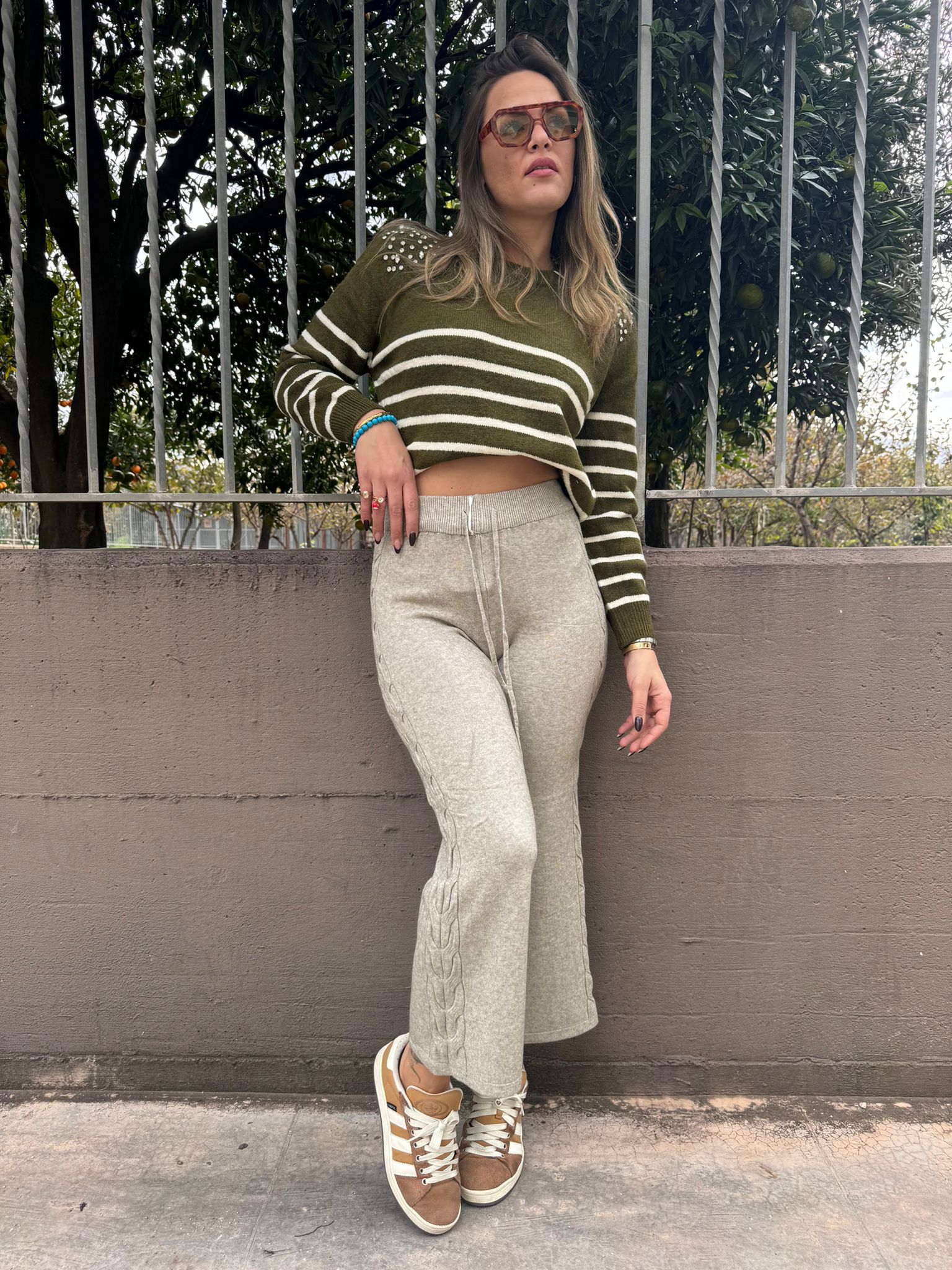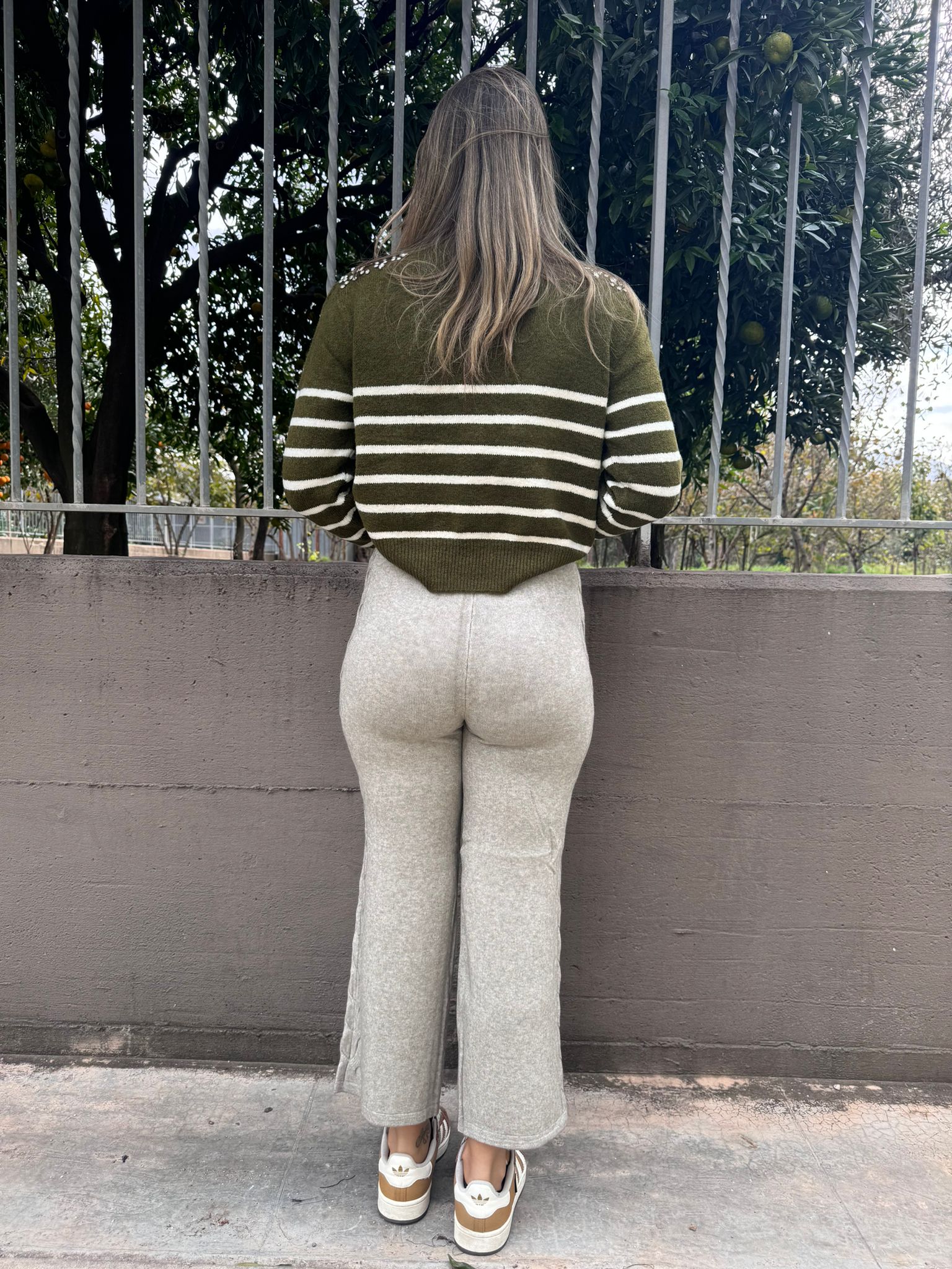 Pantalone palazzo con righe al bustino