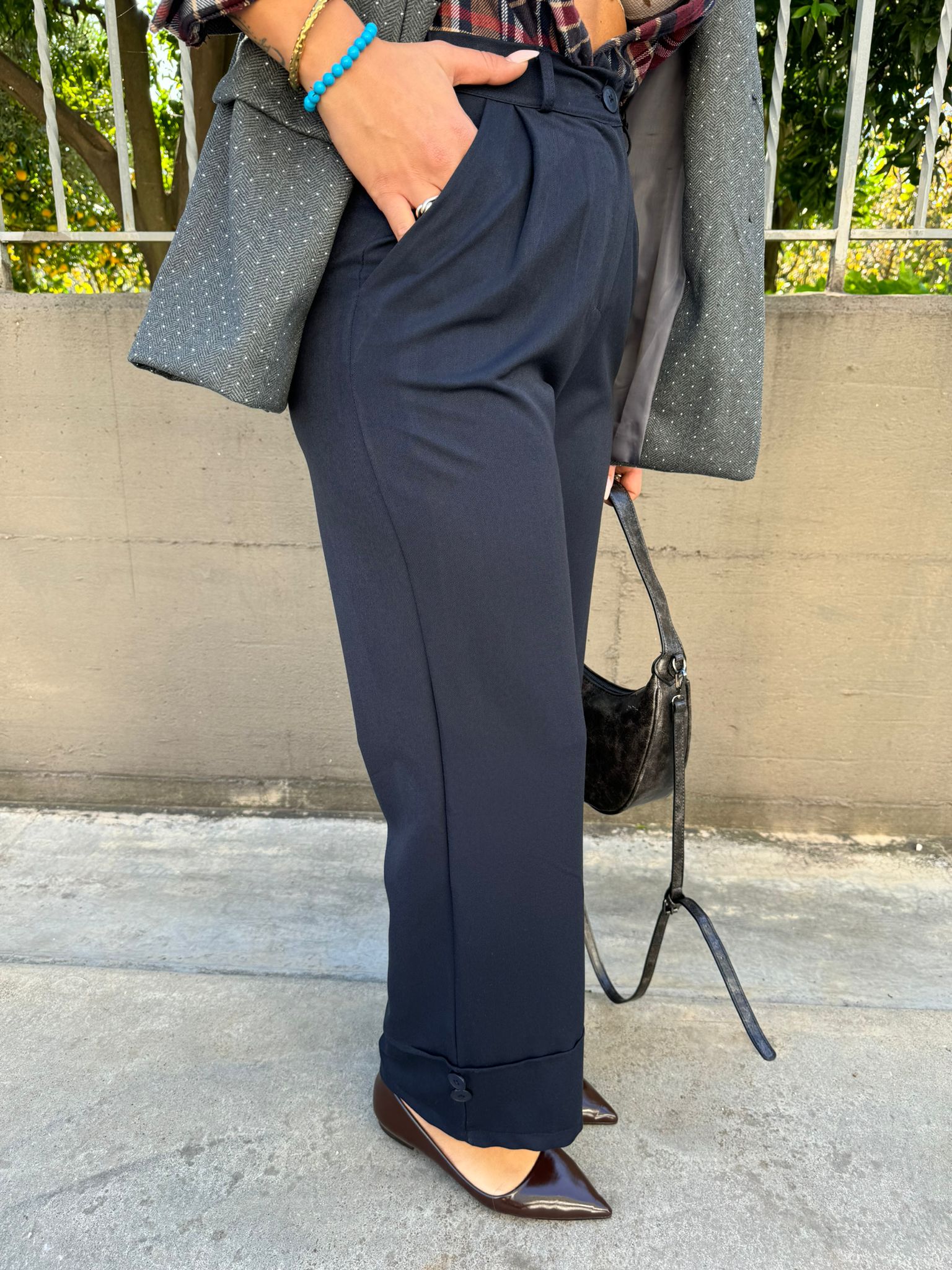 Pantalone in simil lana modello palazzo