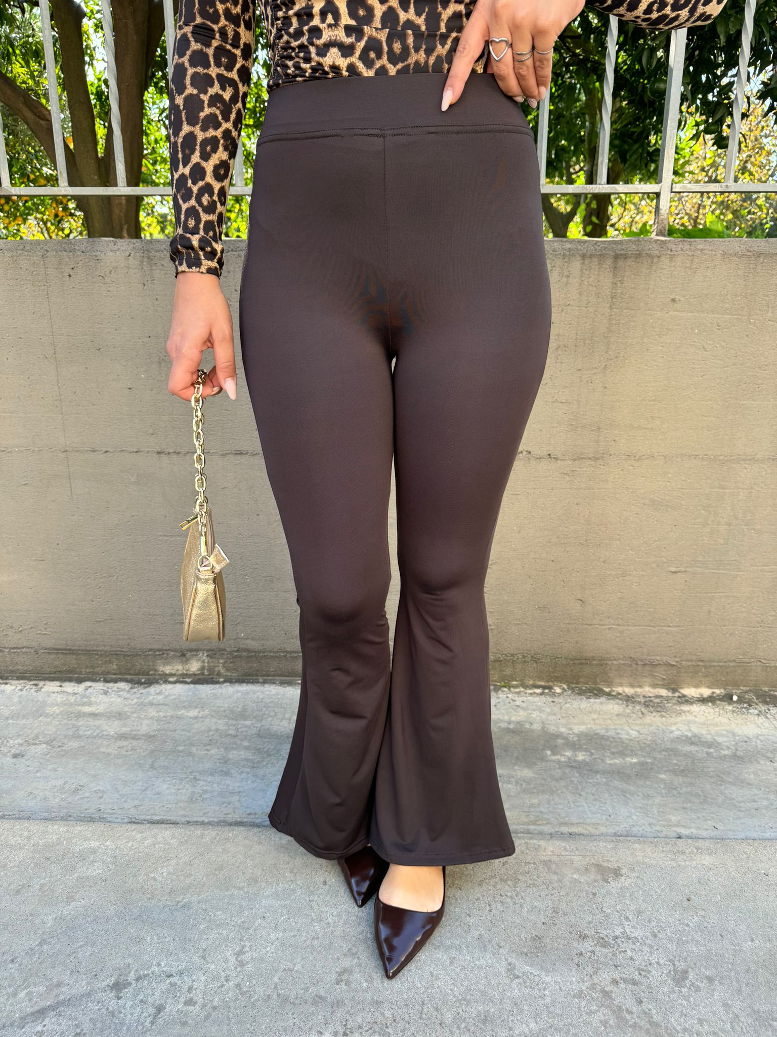 Pantalone in lycra marrone modello a zampa