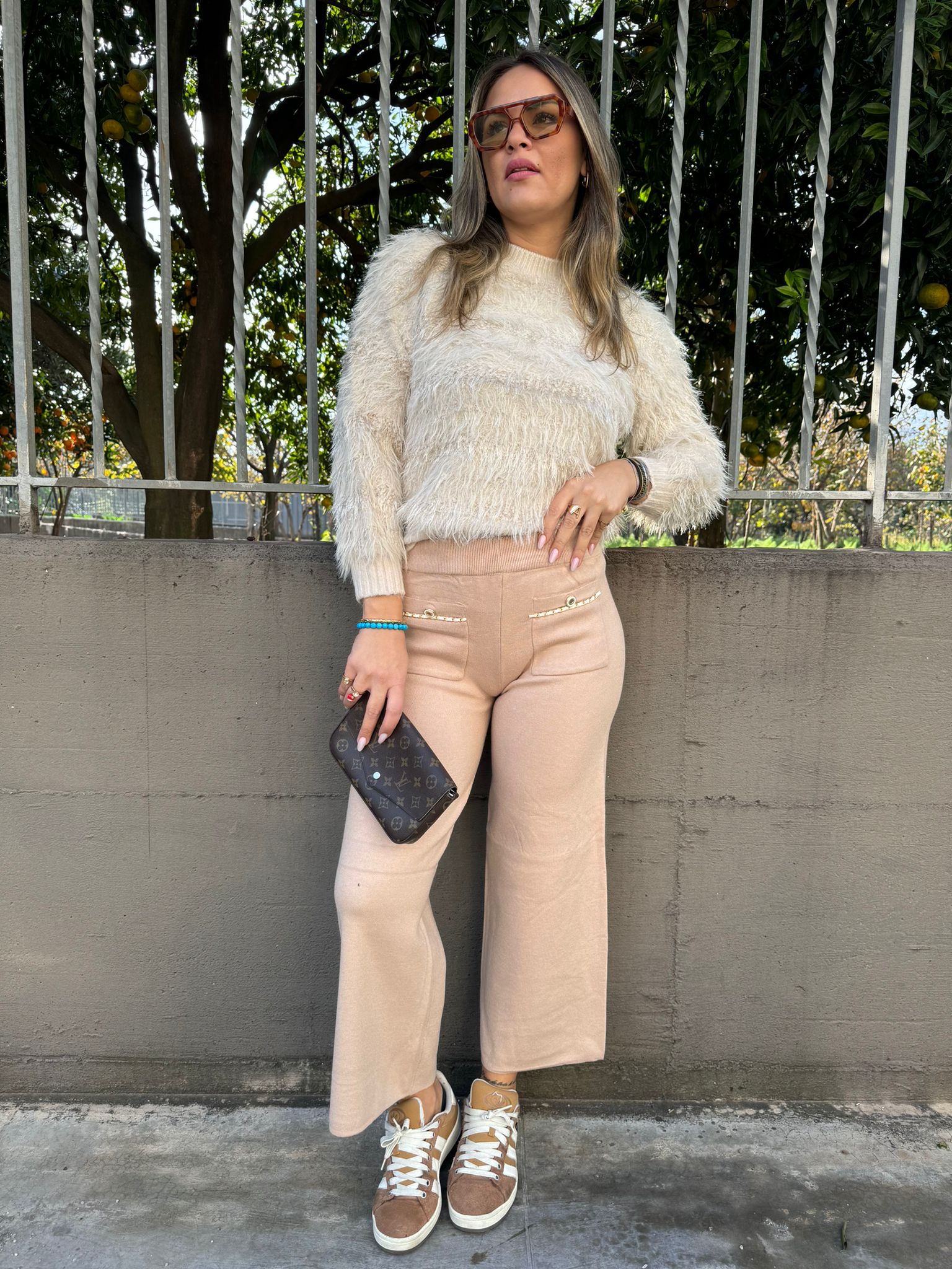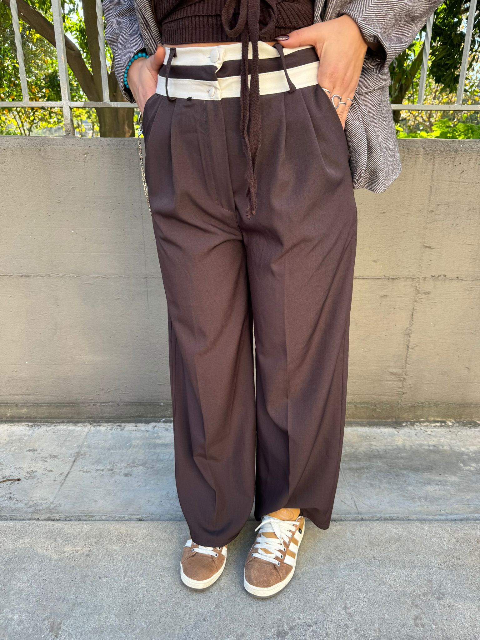 Pantalone in simil lana con taschini