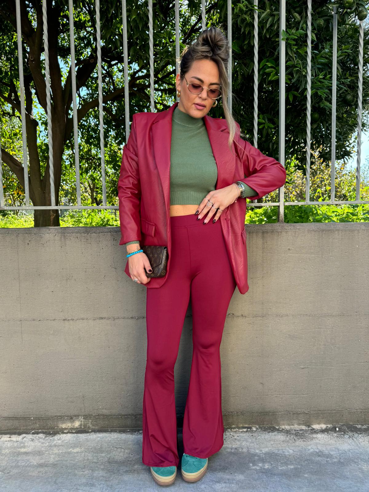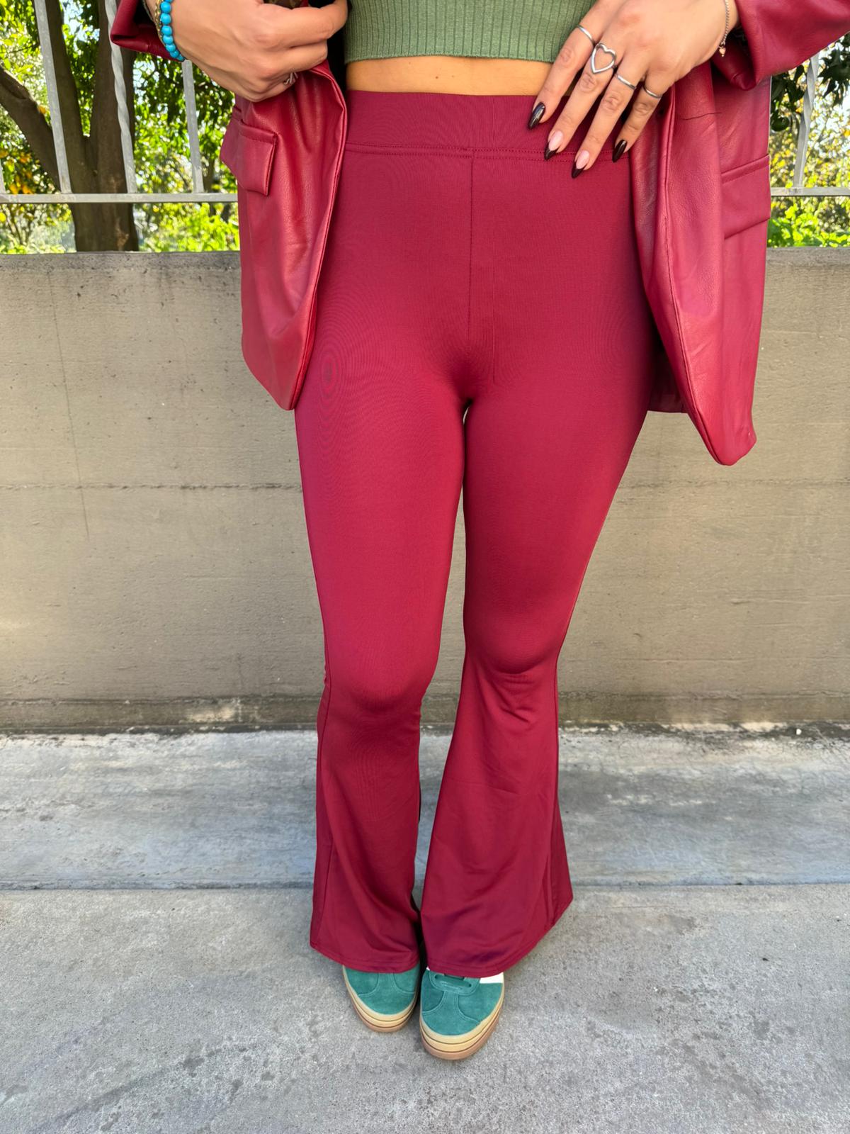 Pantalone bordeaux in lycra a zampa