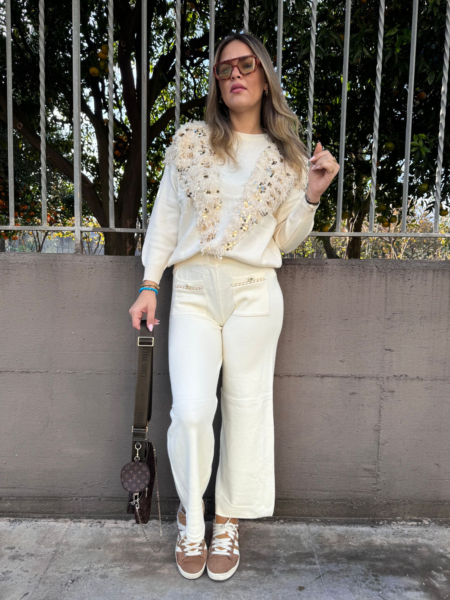 Pantalone argento modello palazzo in paillettes