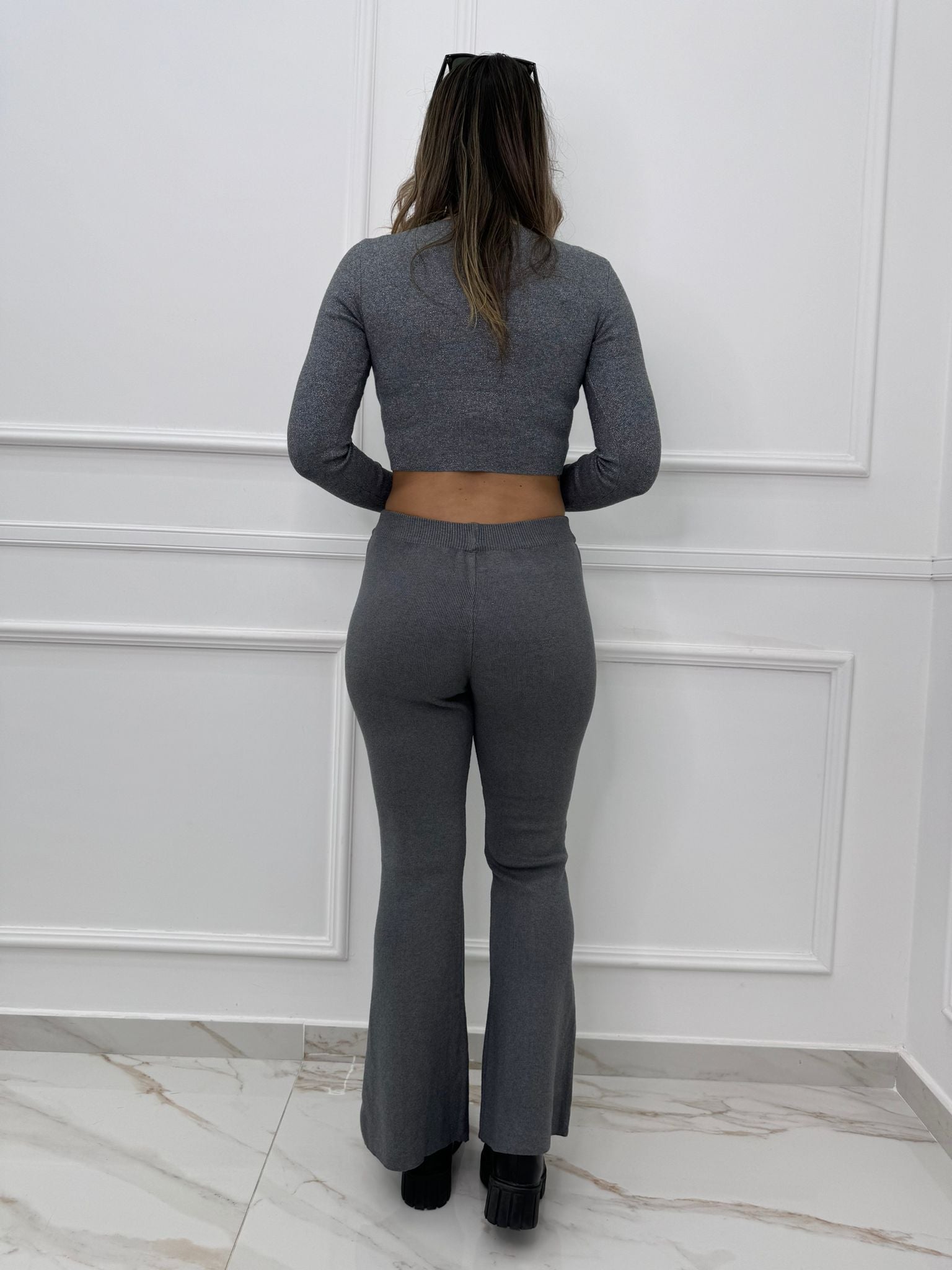 Pantalone nero lurex a zampa